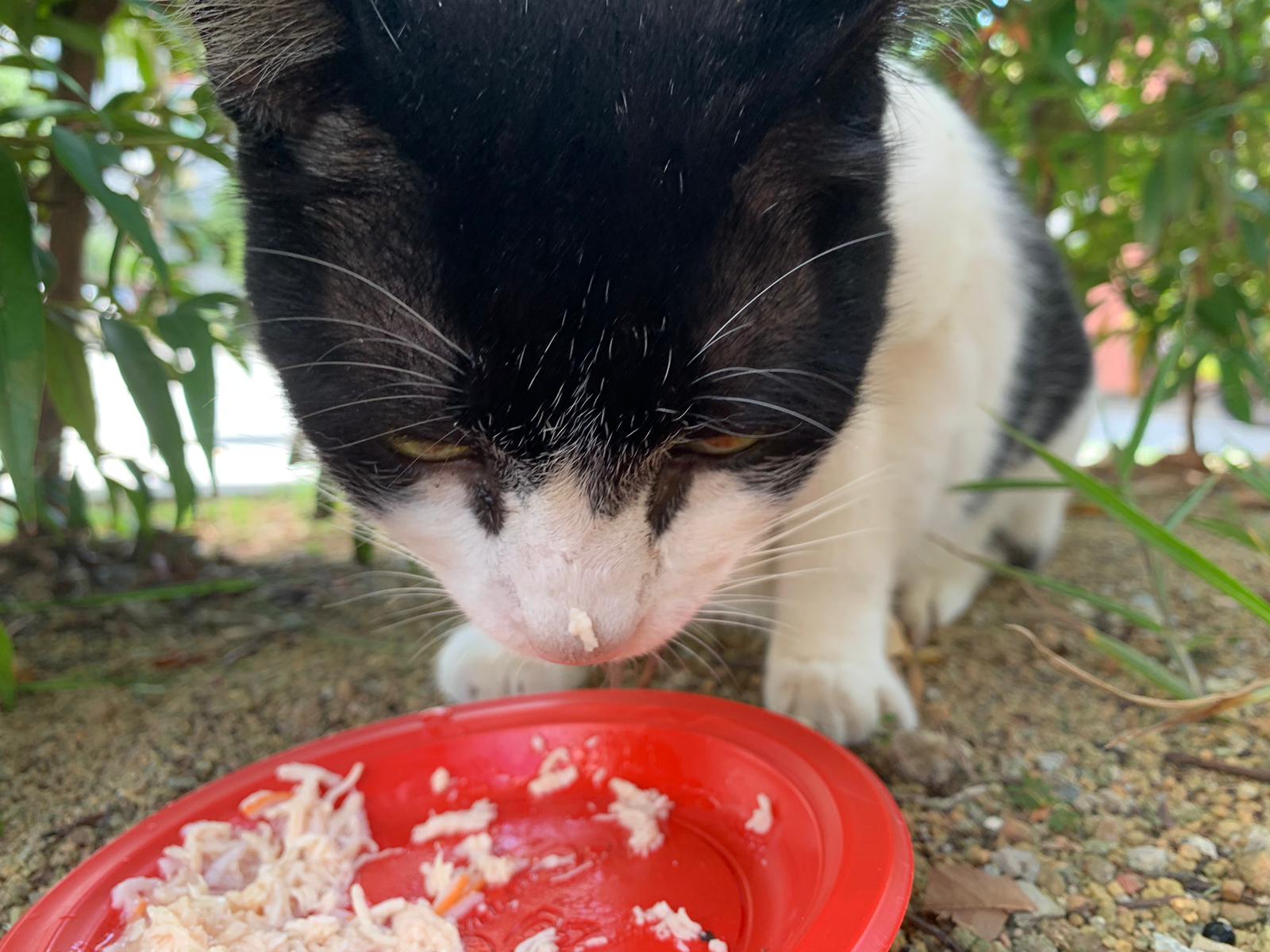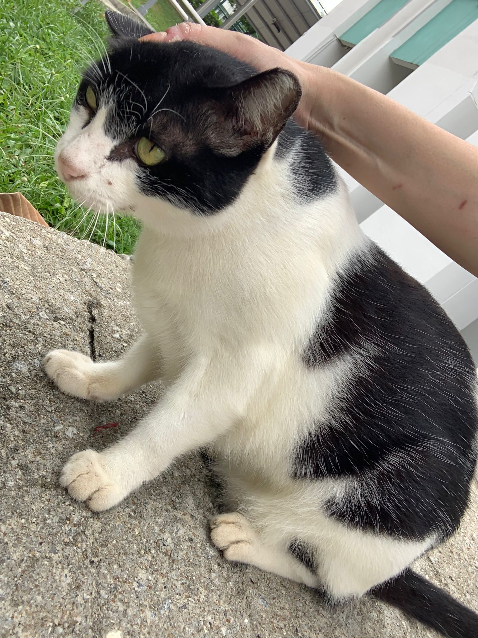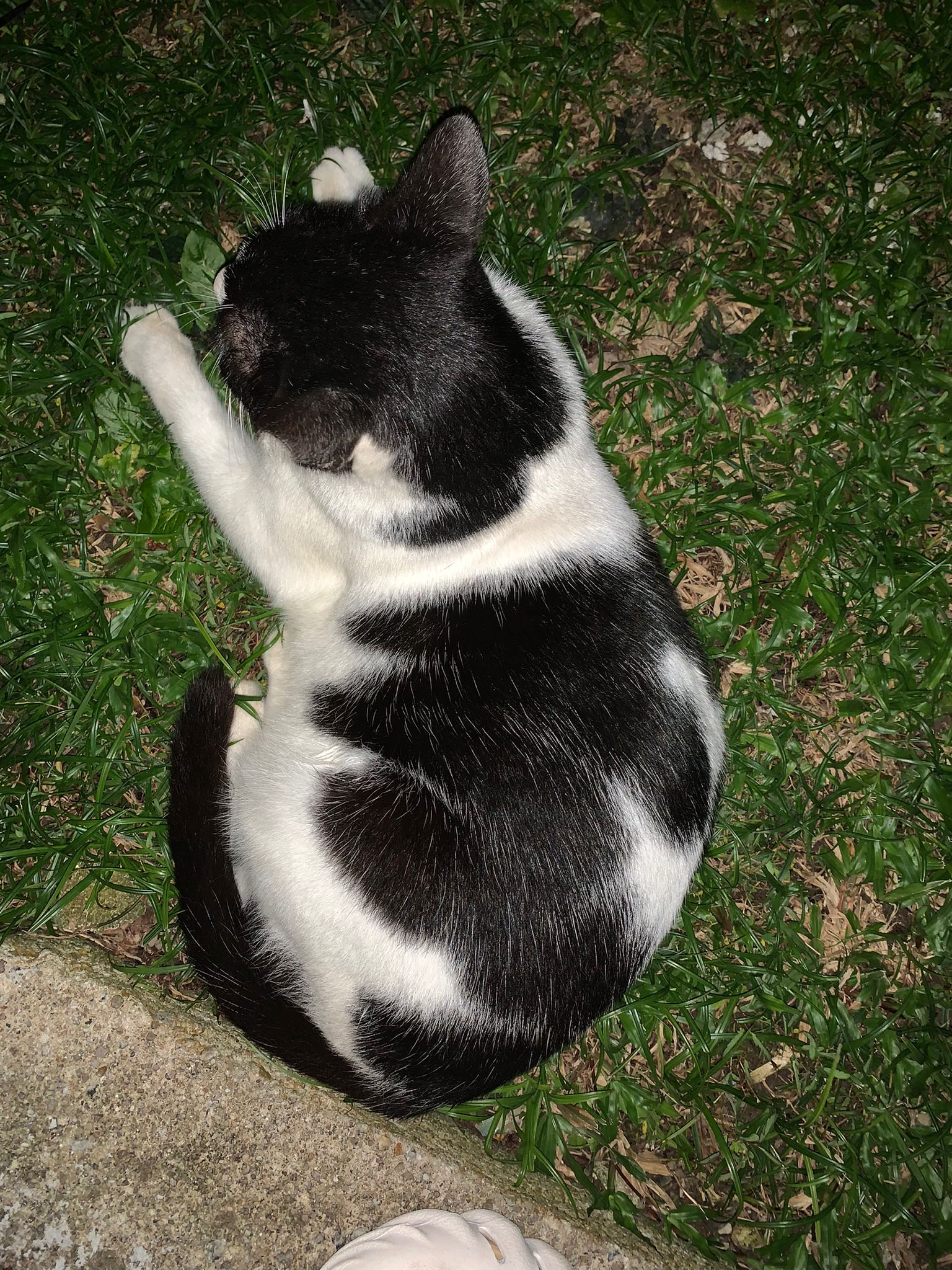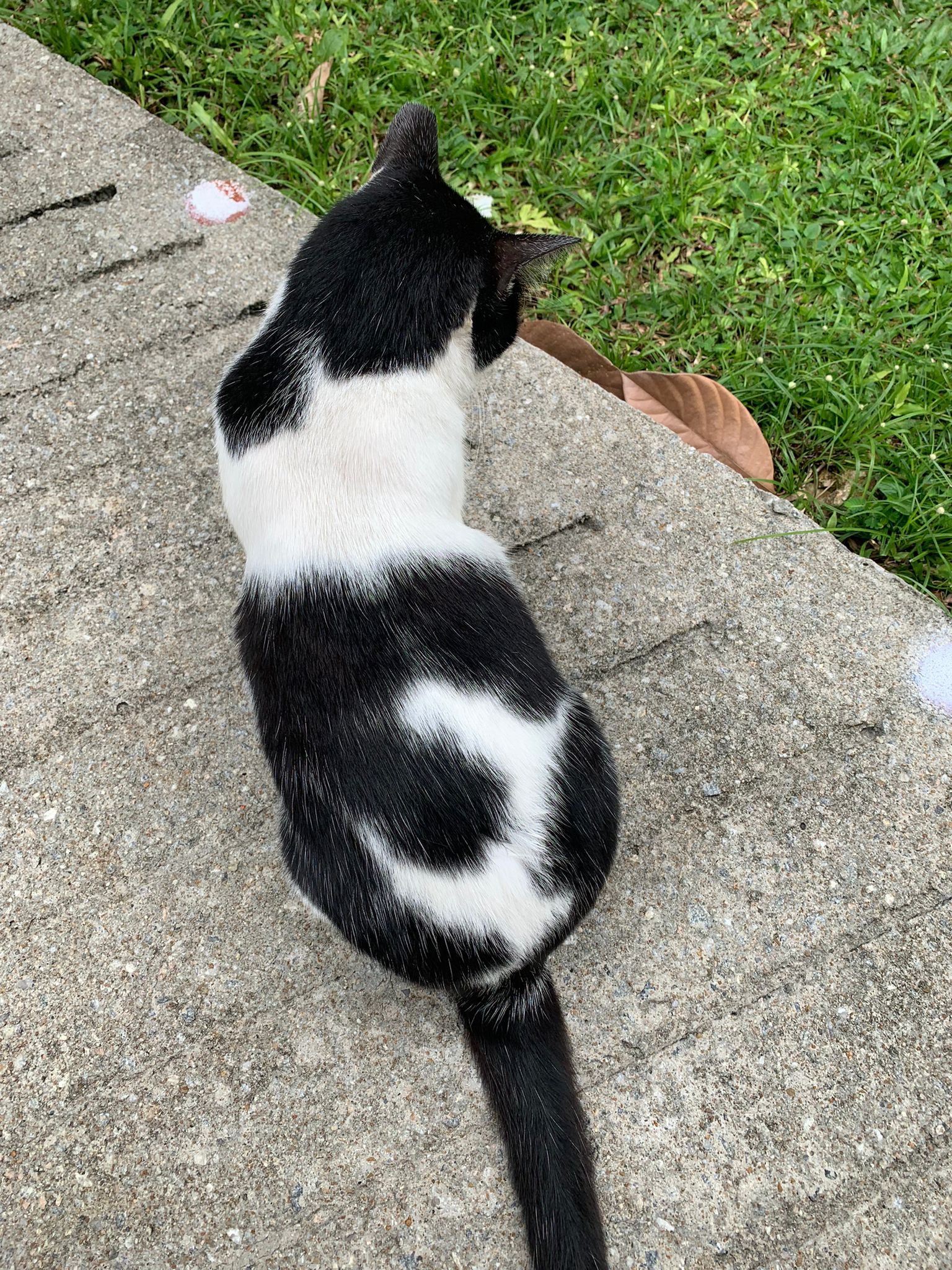 A community cat jiejie is feeding. im the health consultant. haha. sometime i talked to this family, they thought jiejie come feed them liao. 小白黑 ok w me. No time to port their old logbook here yet. just start logging here from 16.9.22