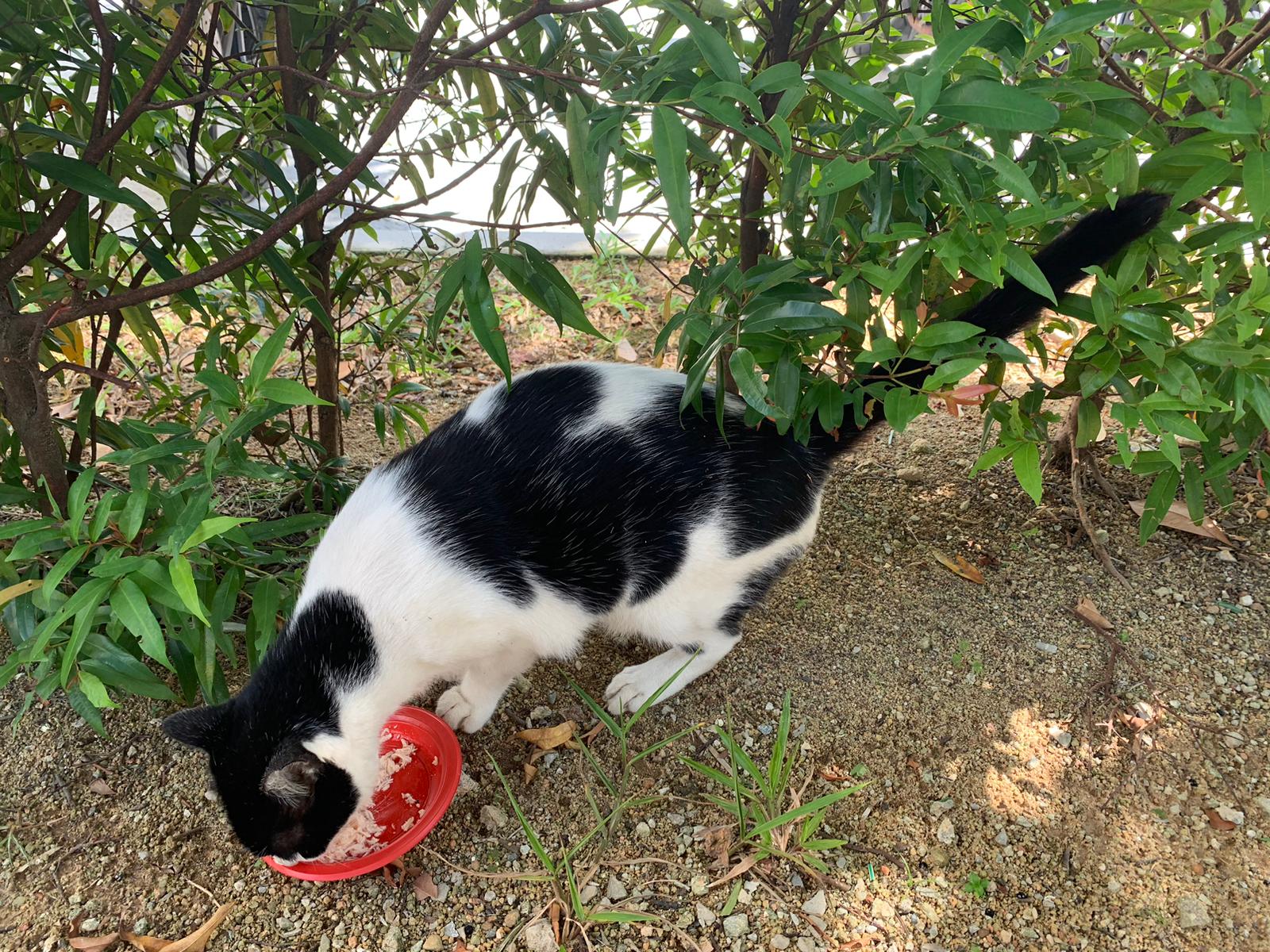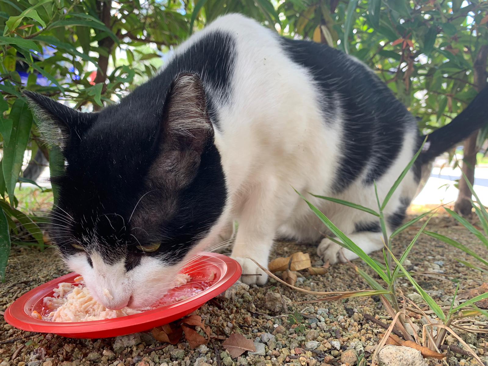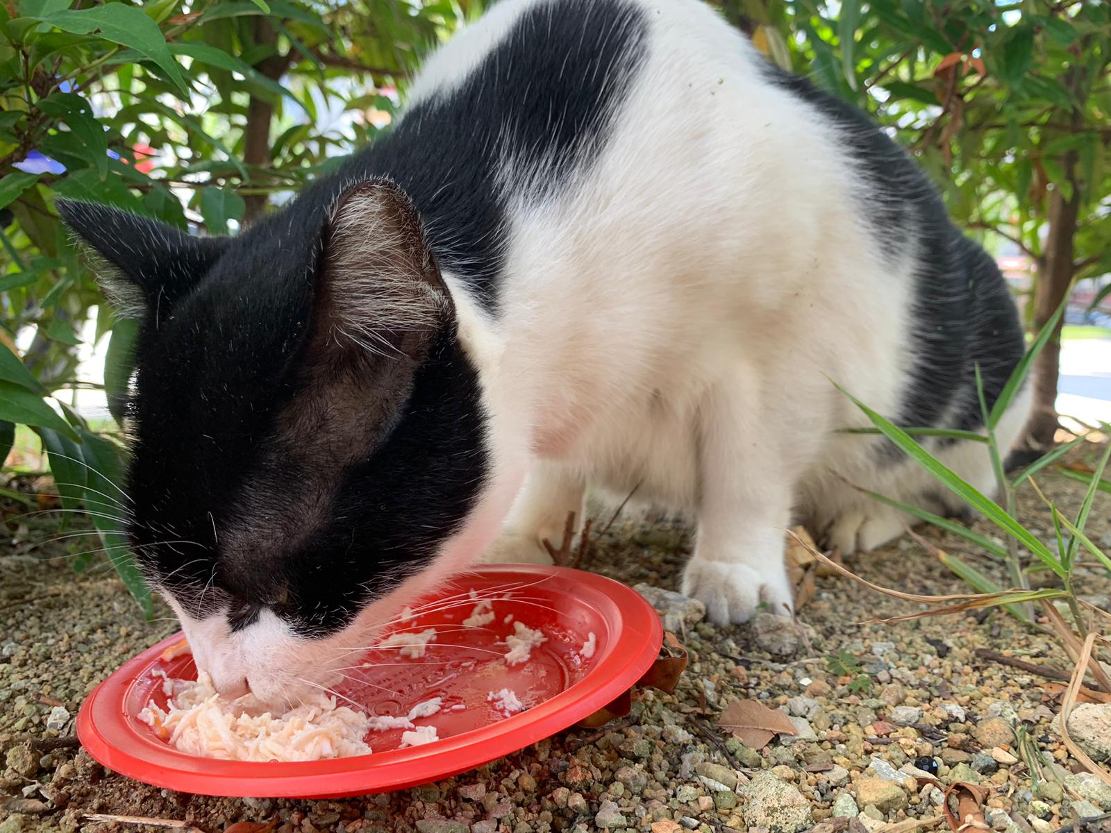 A community cat jiejie is feeding. im the health consultant. haha. sometime i talked to this family, they thought jiejie come feed them liao. 小白黑 ok w me. No time to port their old logbook here yet. just start logging here from 16.9.22