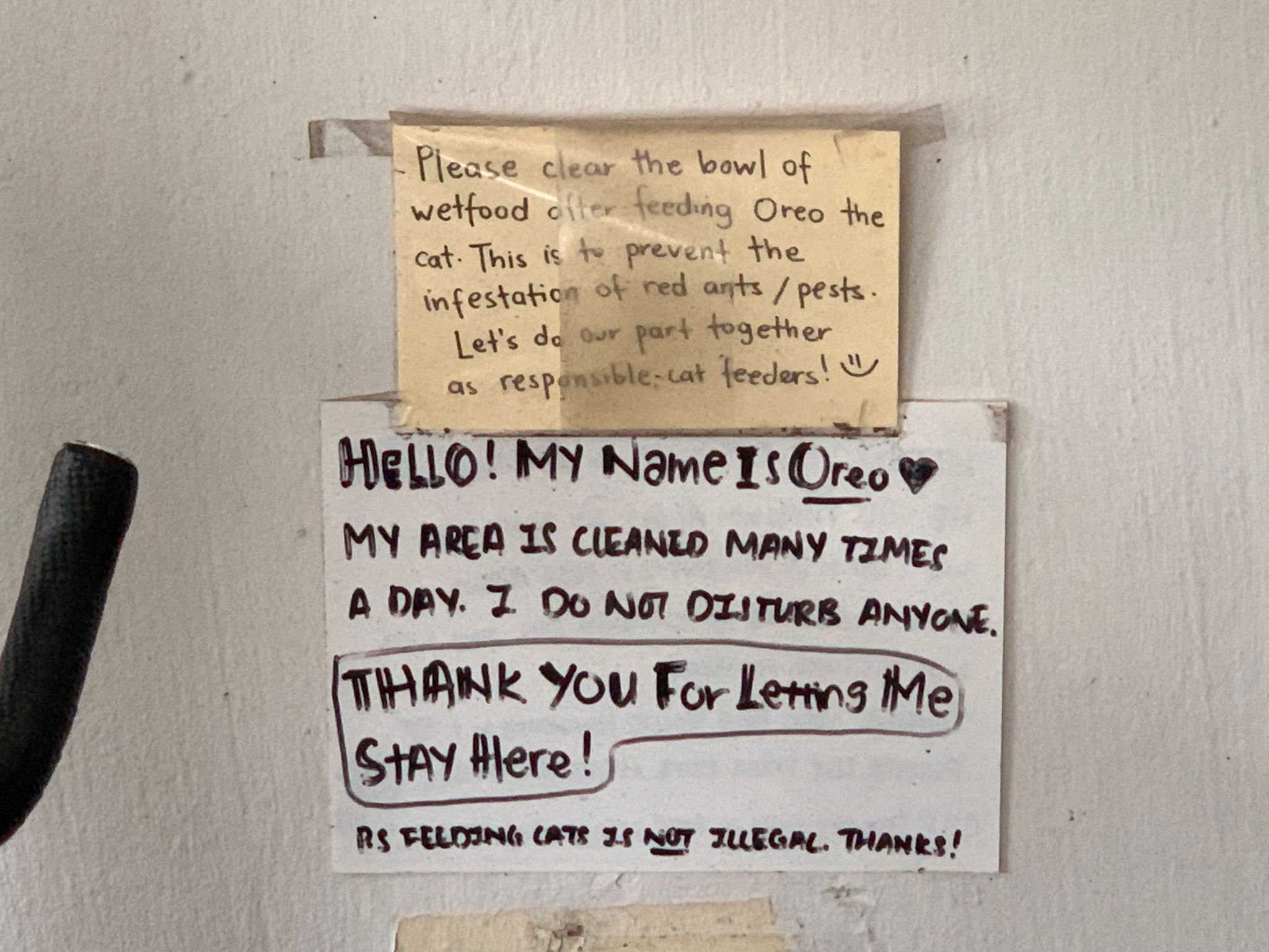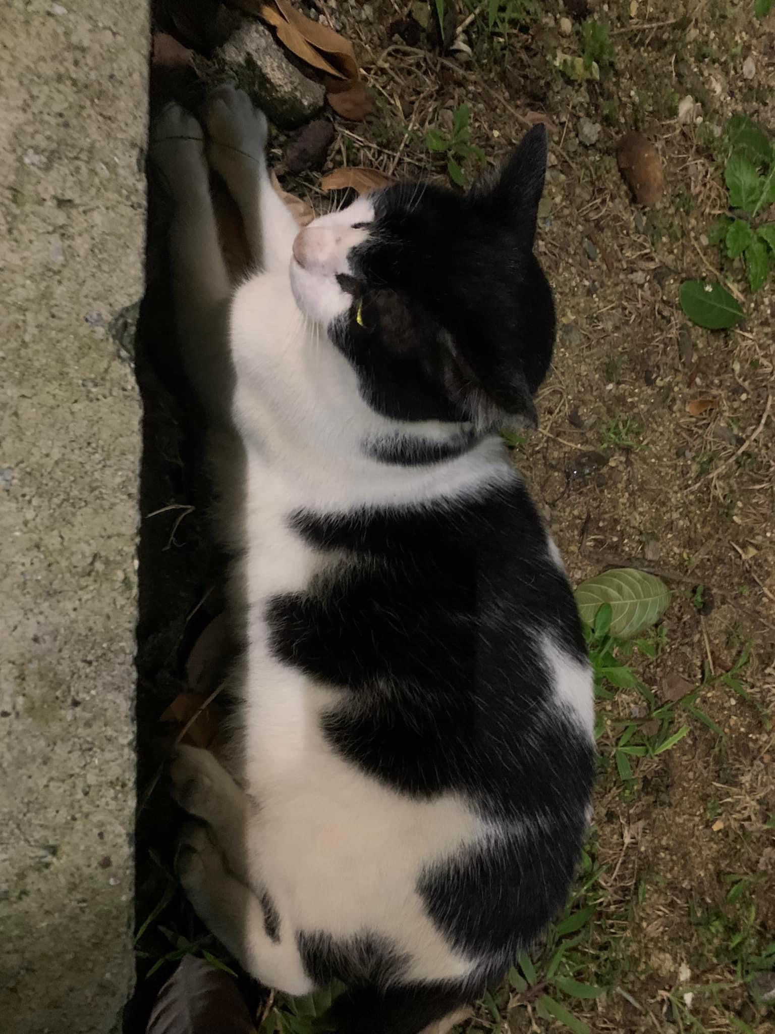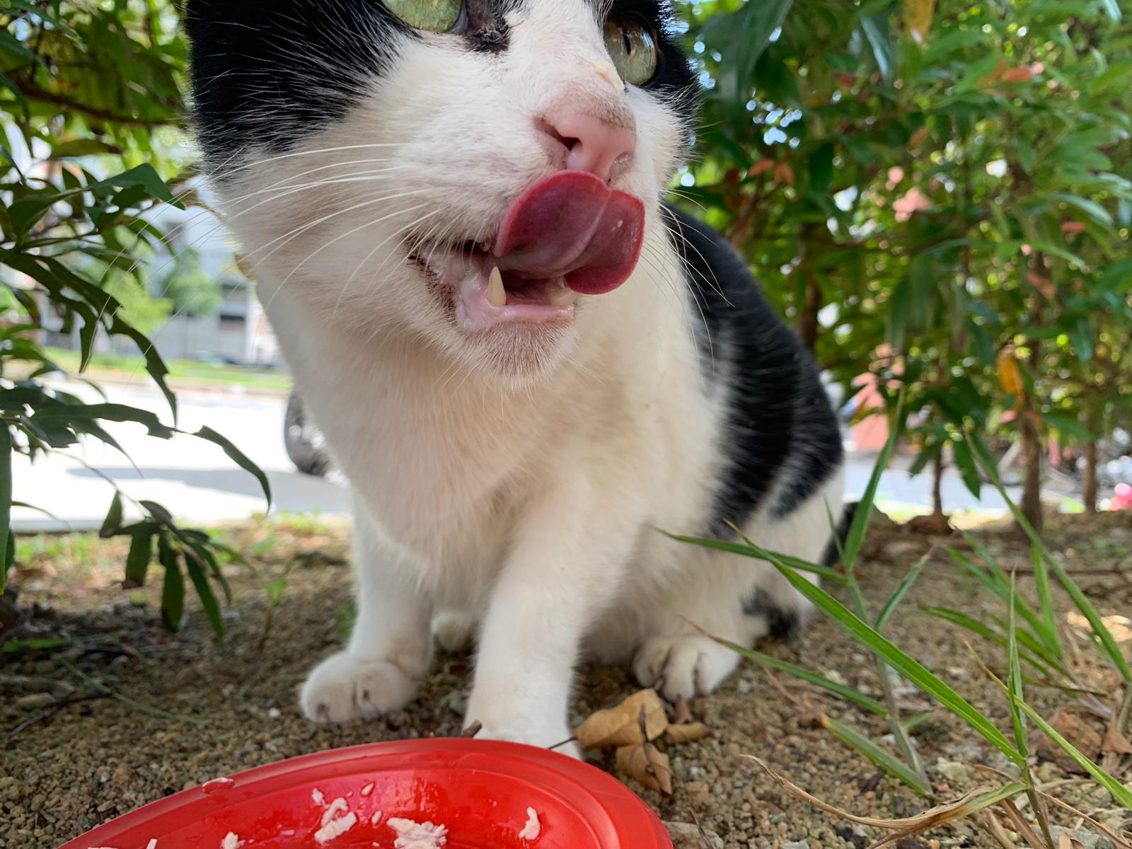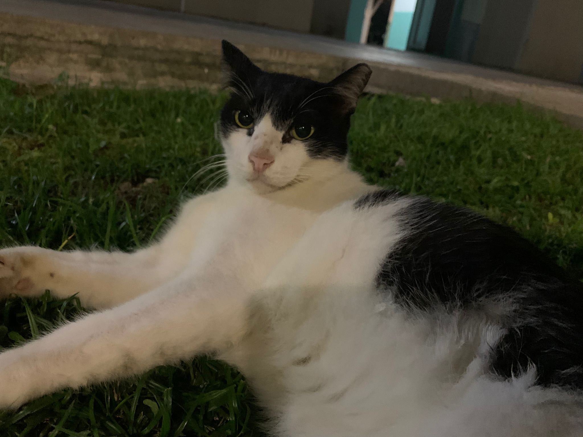 A community cat jiejie is feeding. im the health consultant. haha. sometime i talked to this family, they thought jiejie come feed them liao. 小白黑 ok w me. No time to port their old logbook here yet. just start logging here from 16.9.22