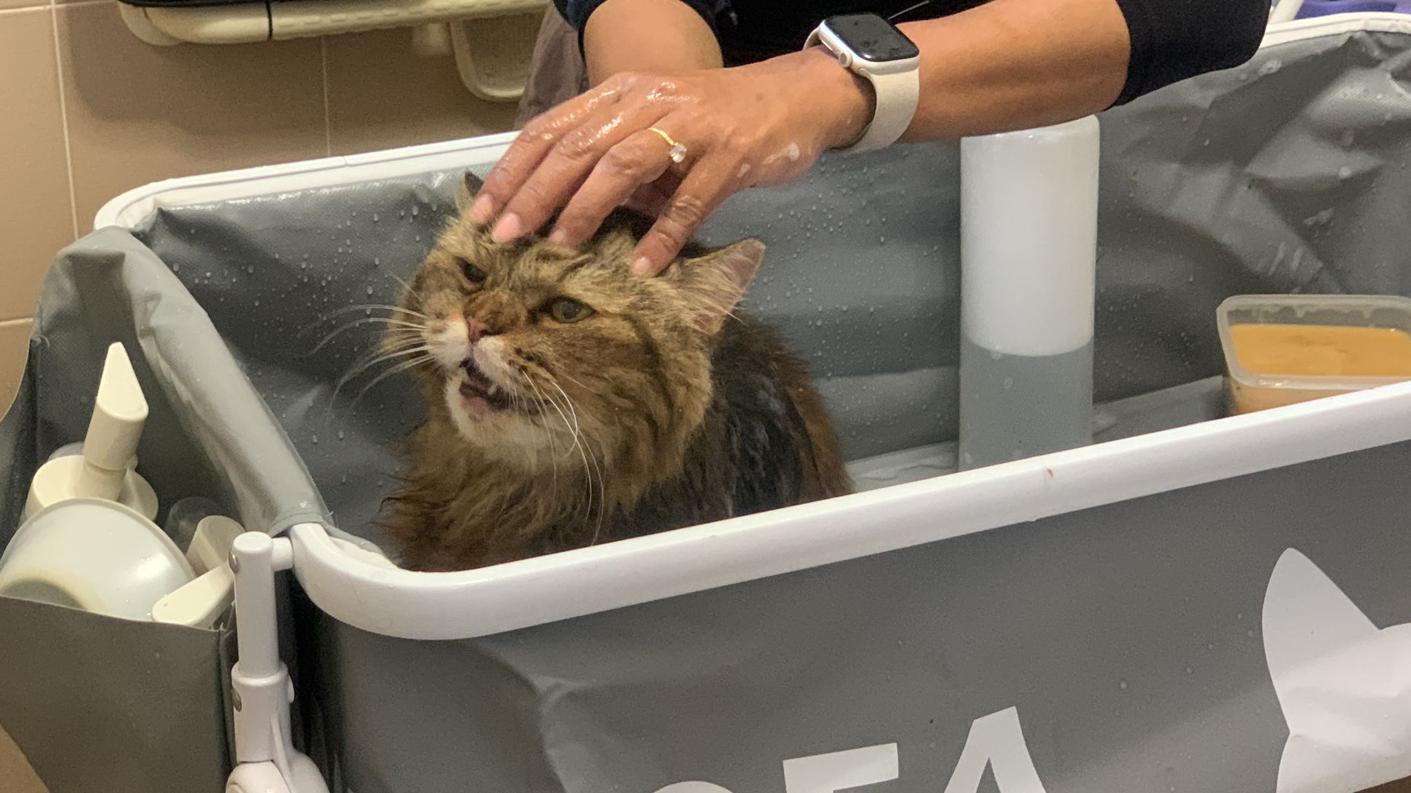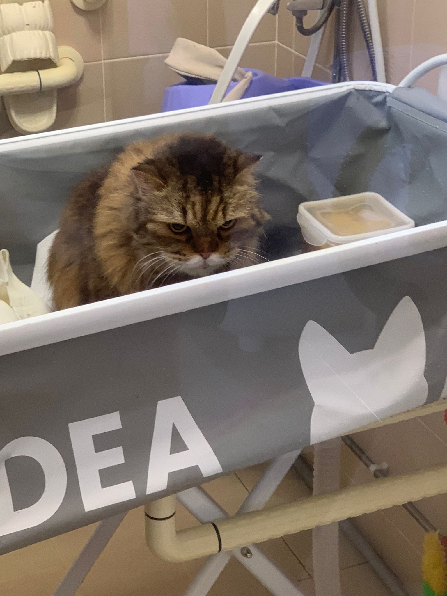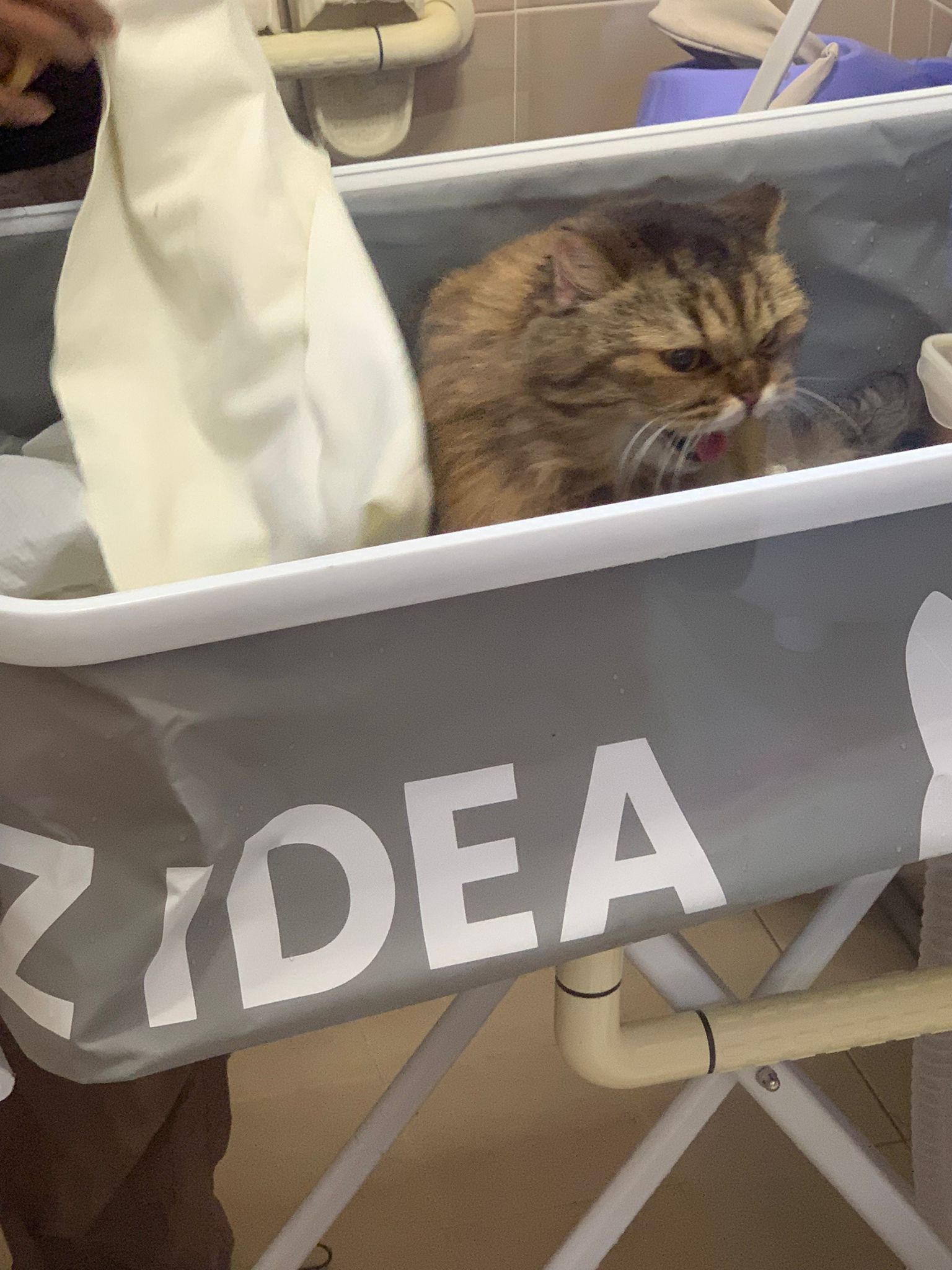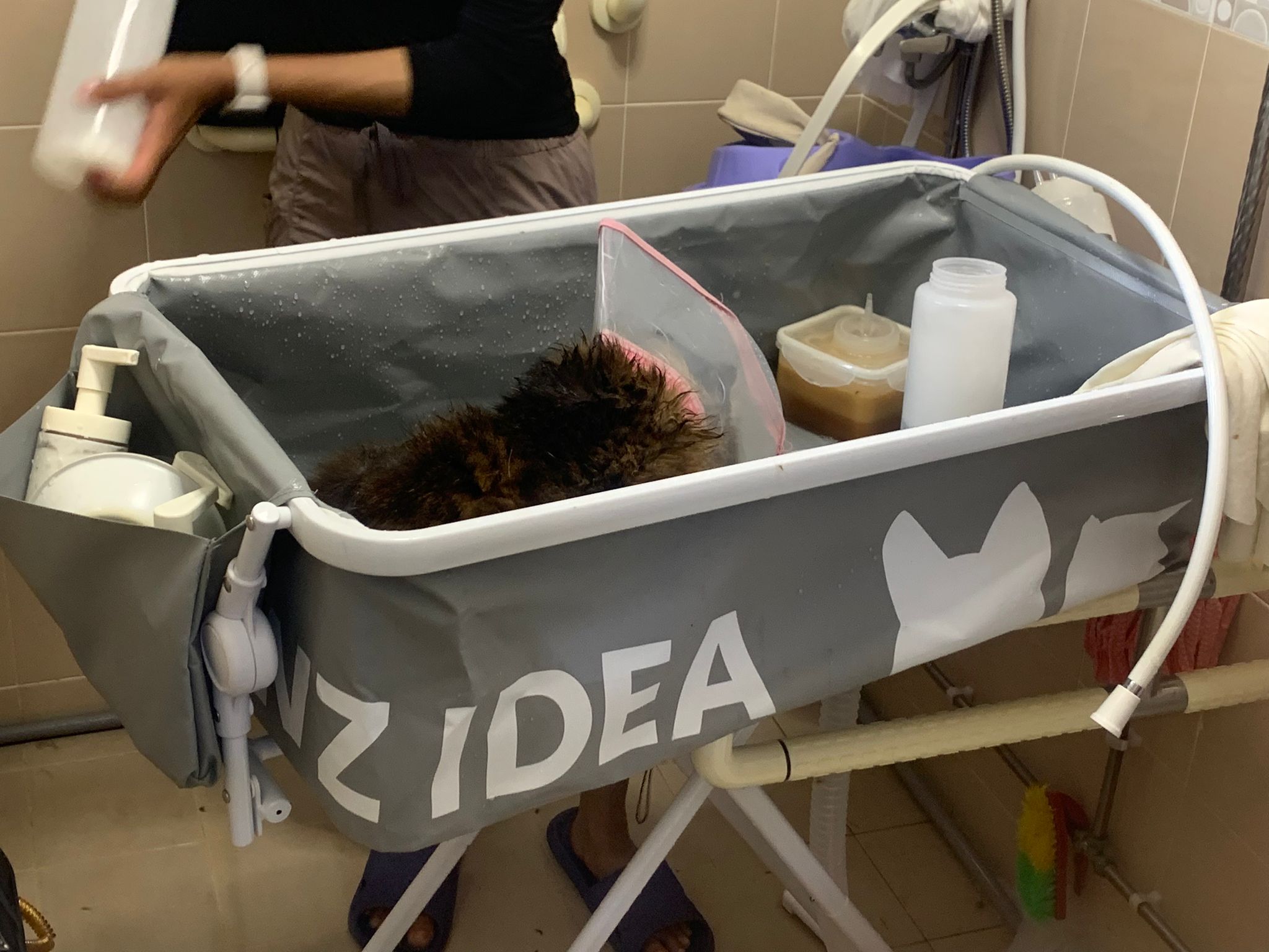 1.40pm+: enter 猫房 wait for her turn to be groom. she walk about and want to pee, think didn’t find any suitable bin.