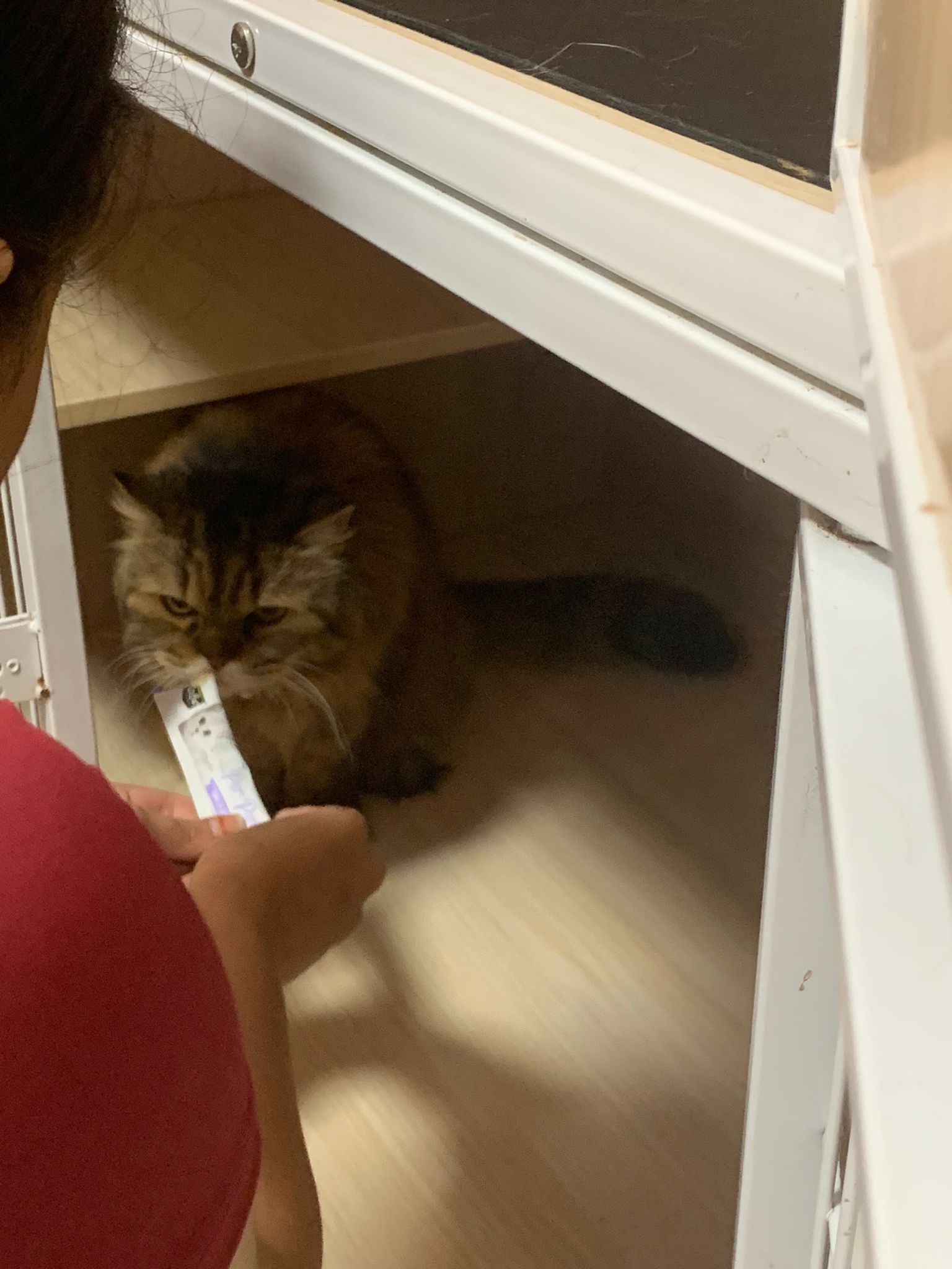 told her no more medi alr, open can food in front of her so she know it’s CLEAN and she still attack me when I opening food.