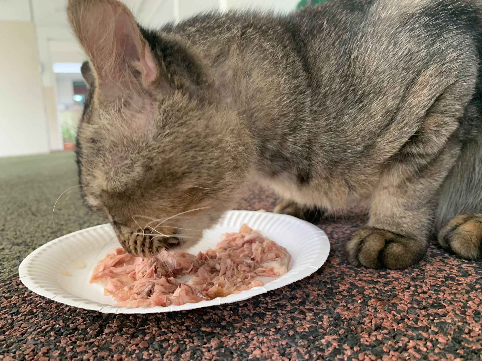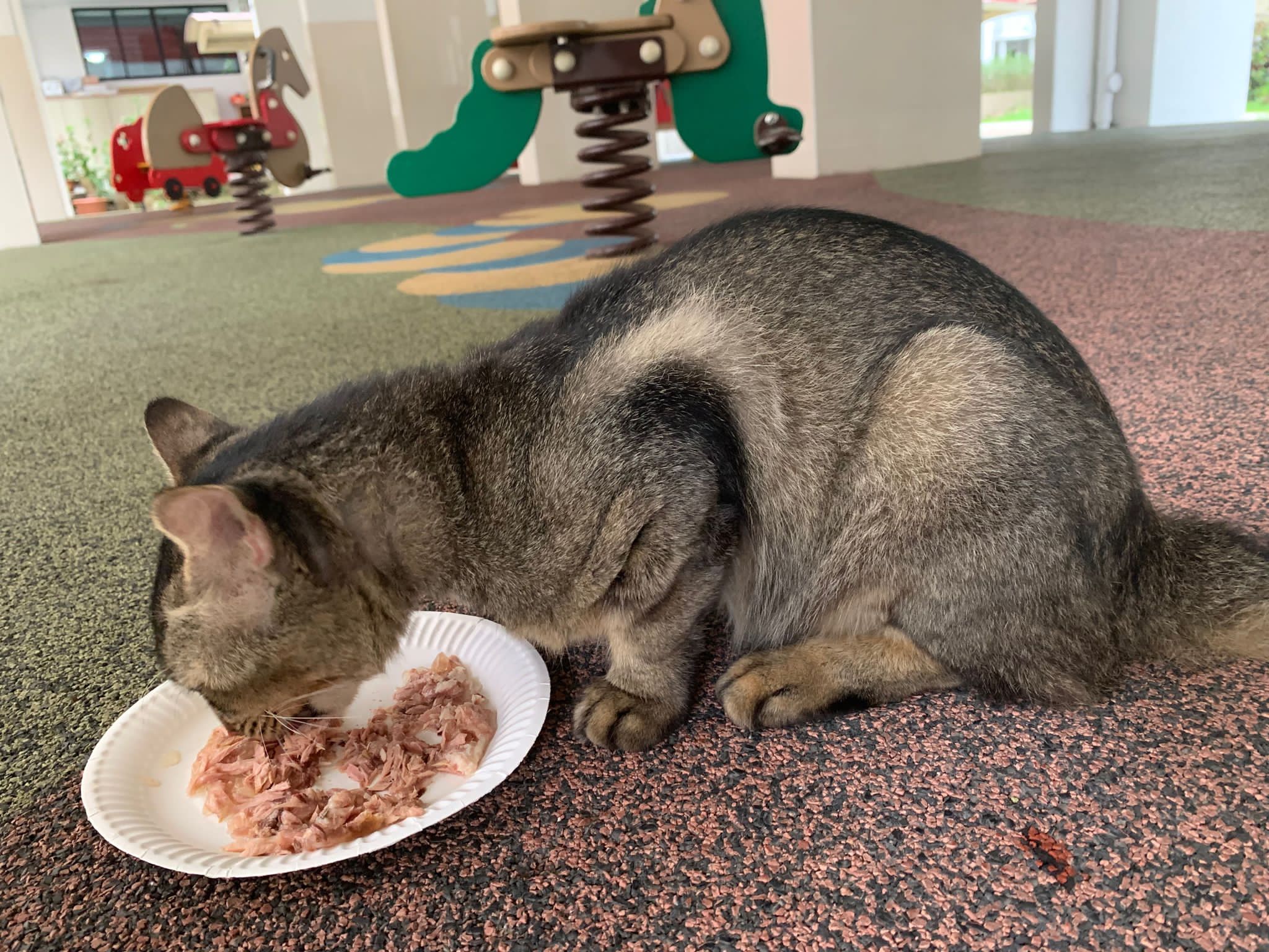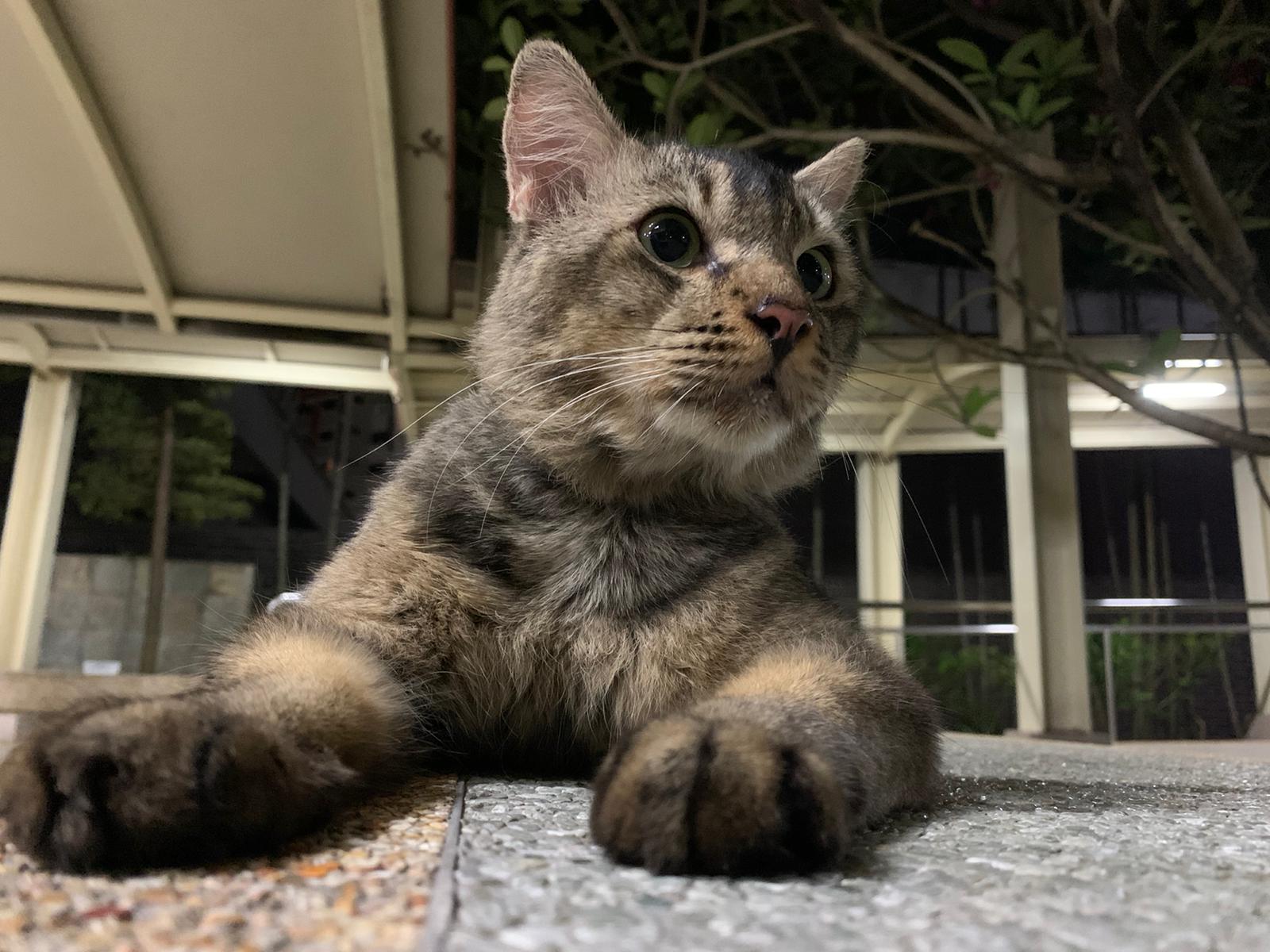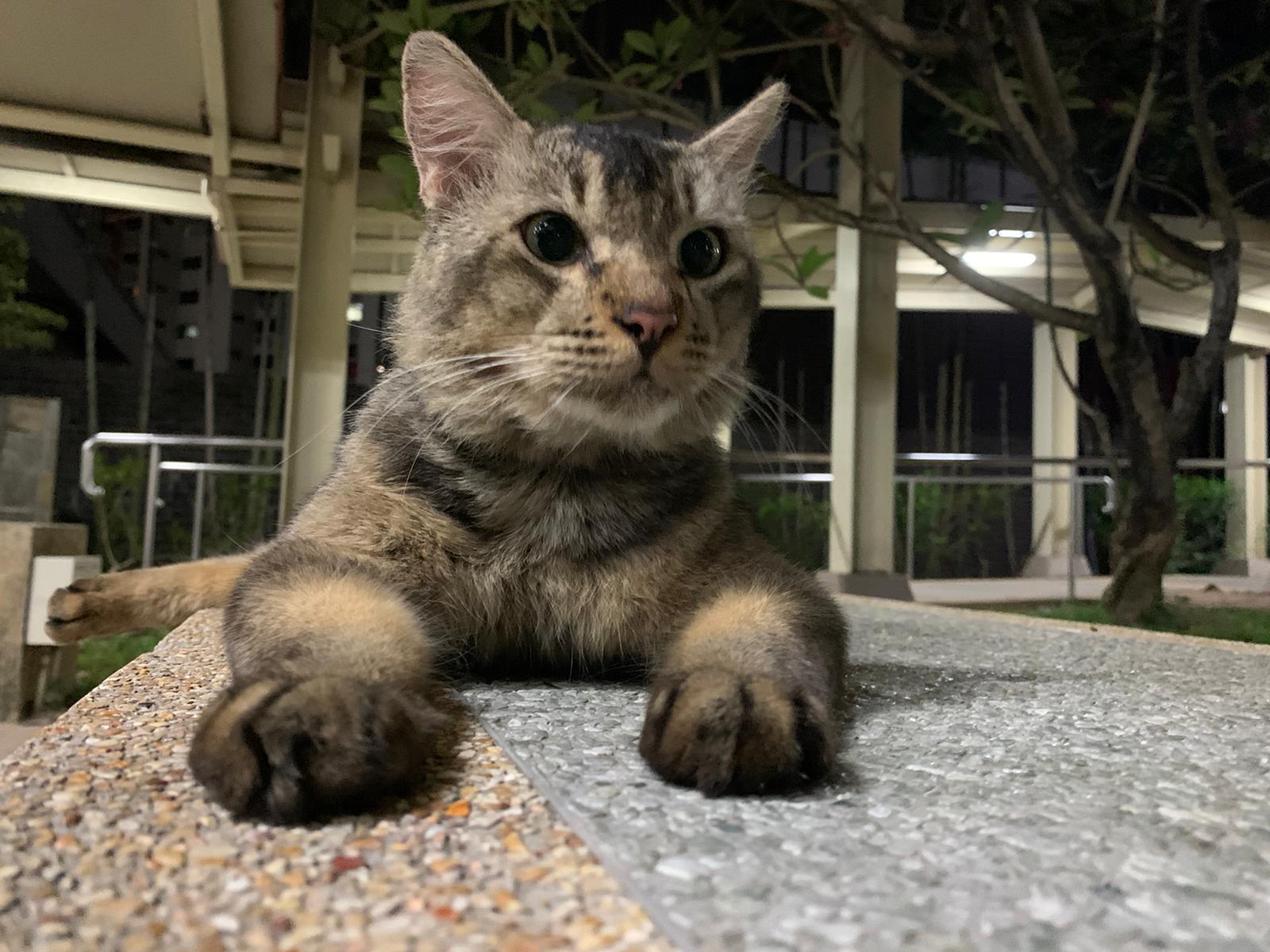 Me to scratch his left head/ face – later I find myself damn itchy. He confirm got mites. He looks so poor thing, sleep on a mat (quite smart, can scratch n sleep) on a cold night. Give him a can of tuna w salmon, he finish all. Erm I have to put paper plate n food in my bag in case I see him again.