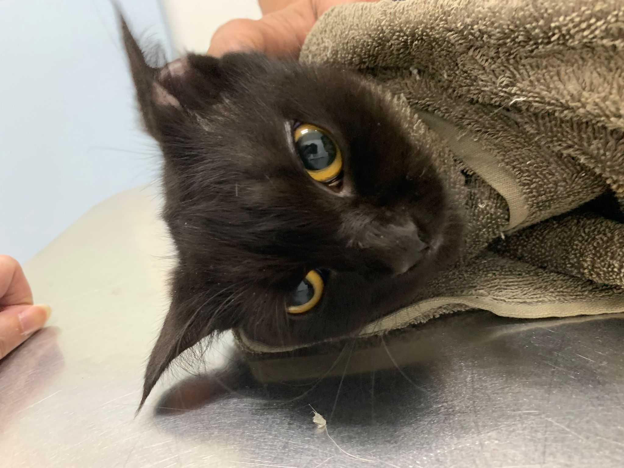 As of 28.8, waiting for skin and fur to settle and go for spaying. Fiv and felv negative. Healthy. V young girl