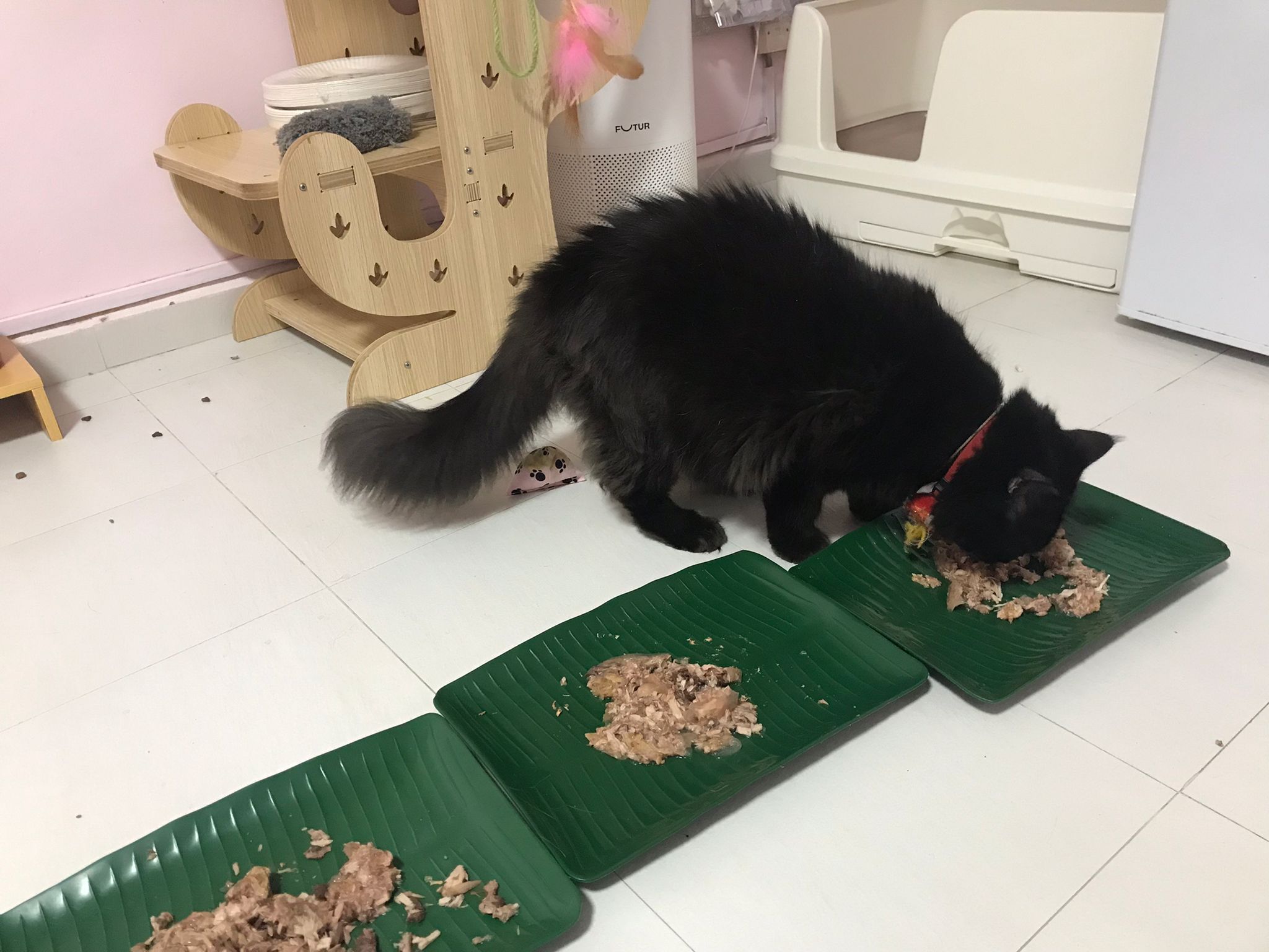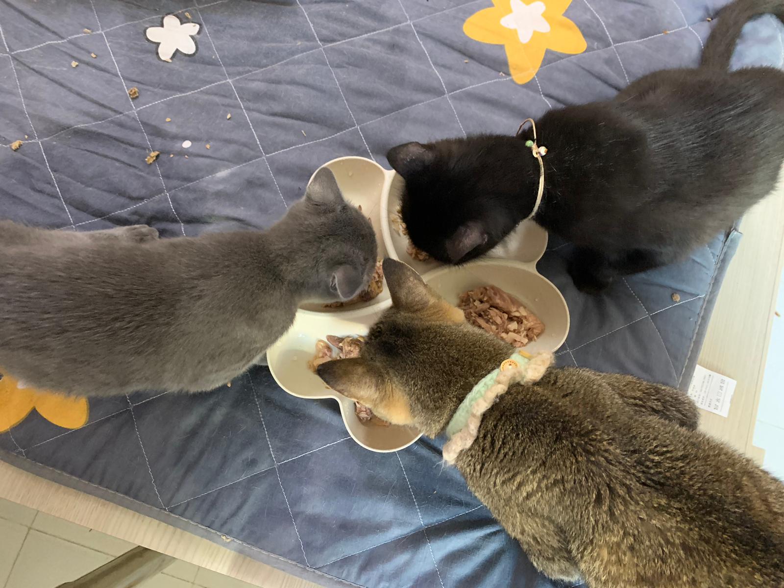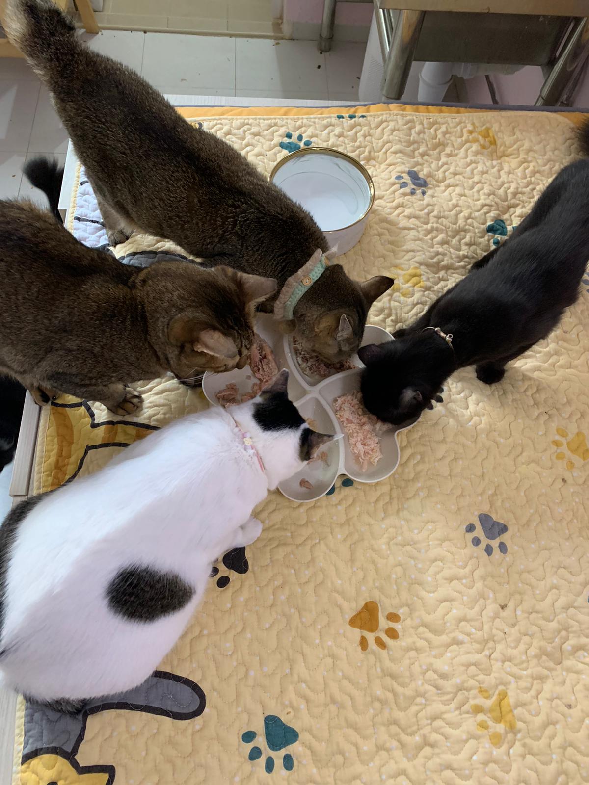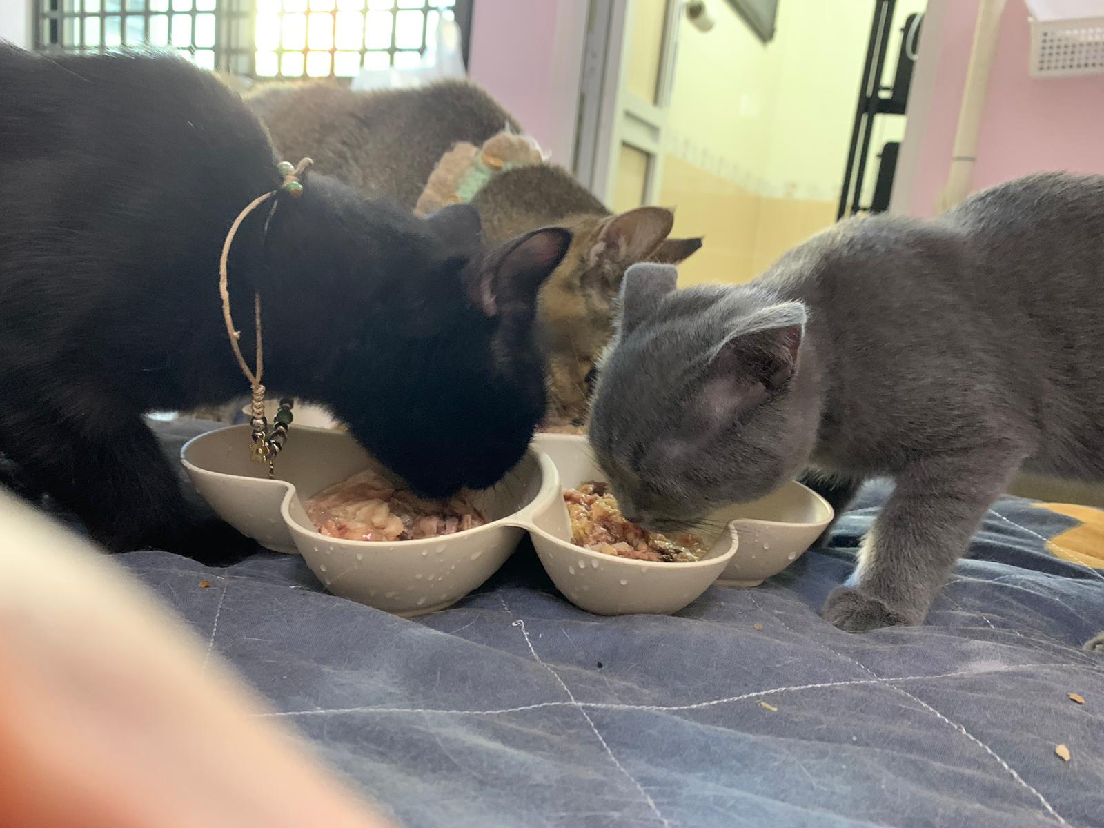 11am+: I’m back to 猫房. Their food plates almost all empty. Eating well for breakfast.