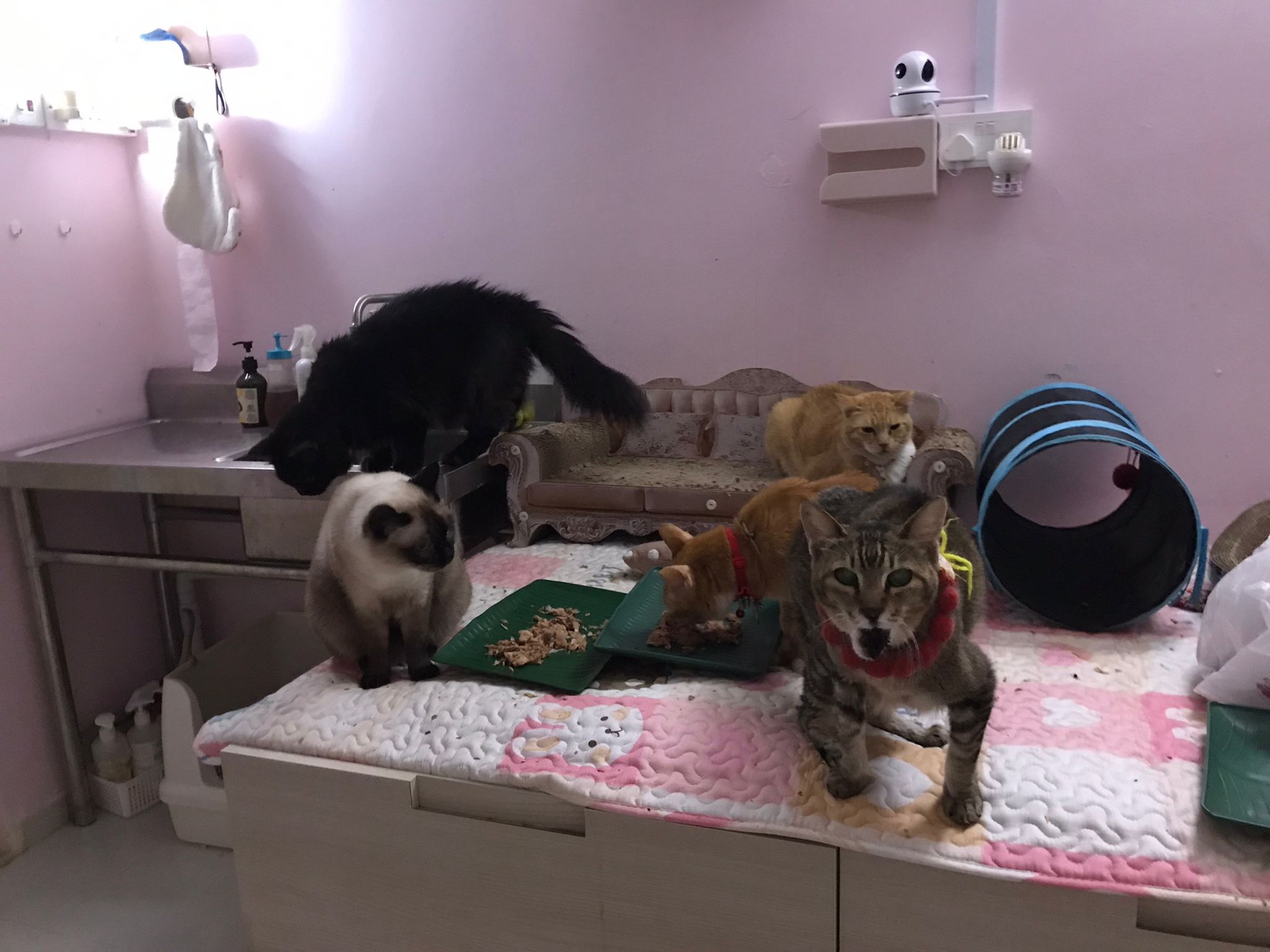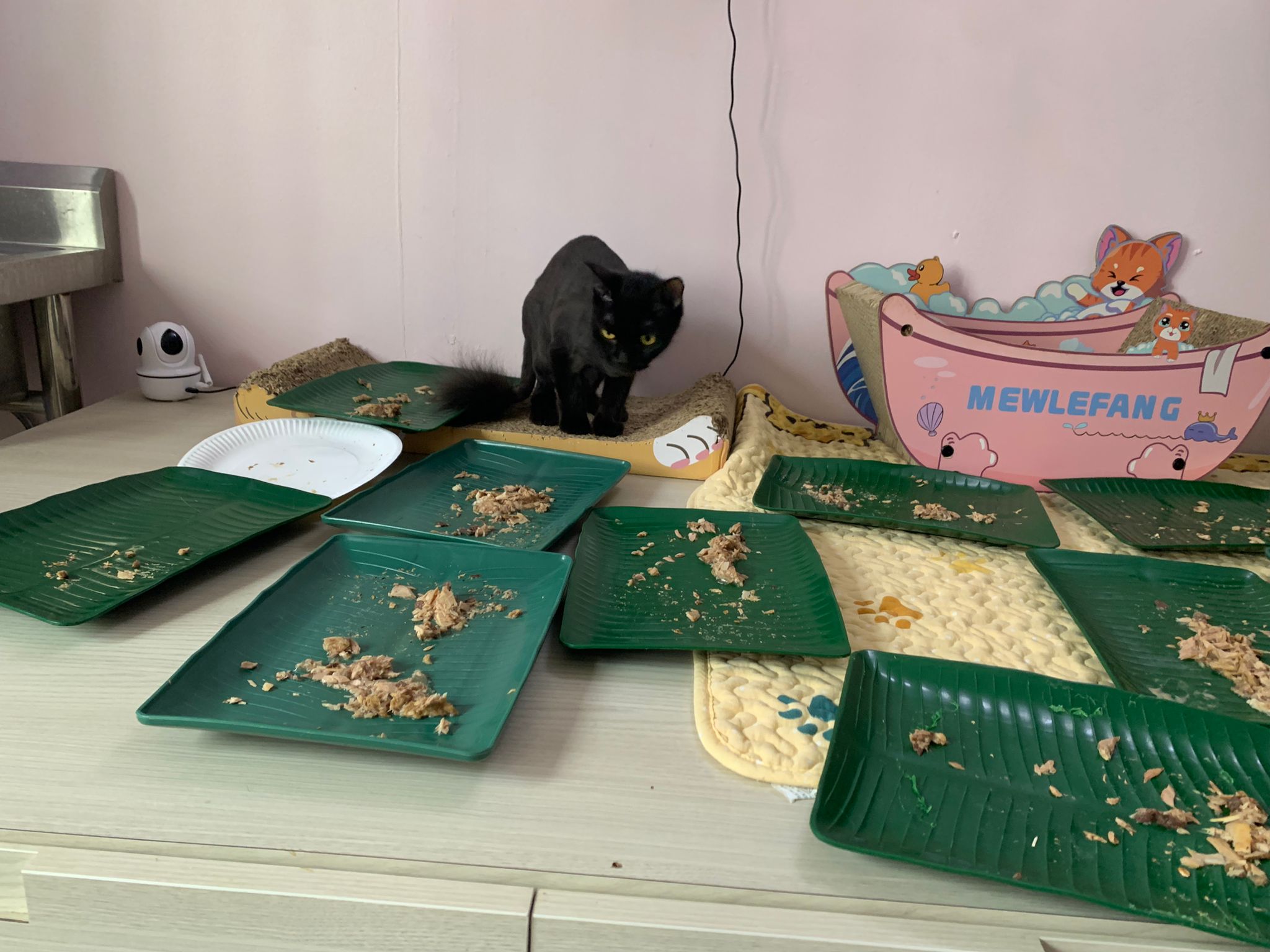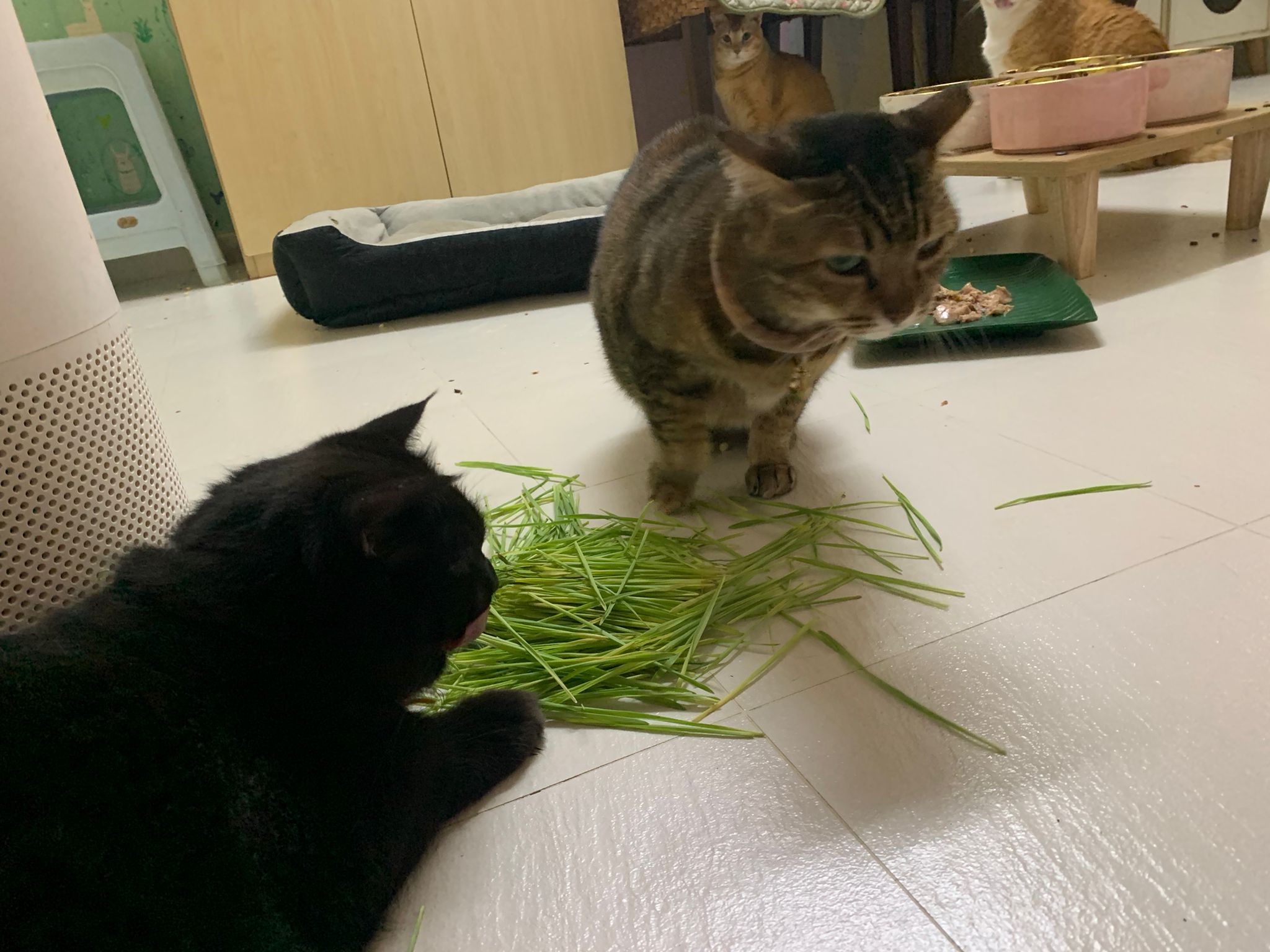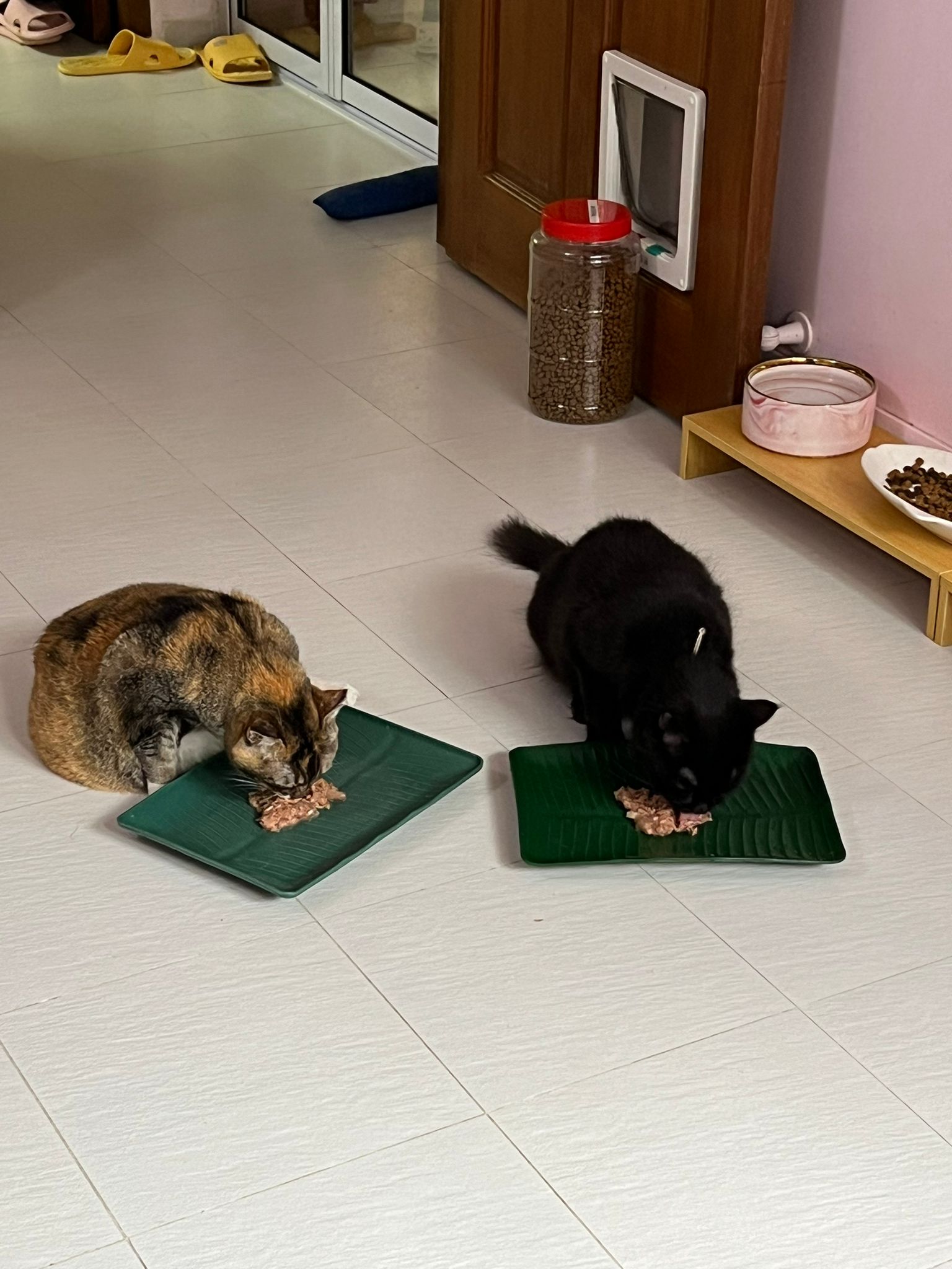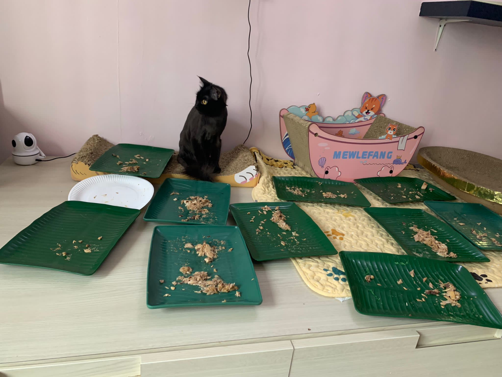 11am+: I’m back to 猫房. Their food plates almost all empty. Eating well for breakfast.