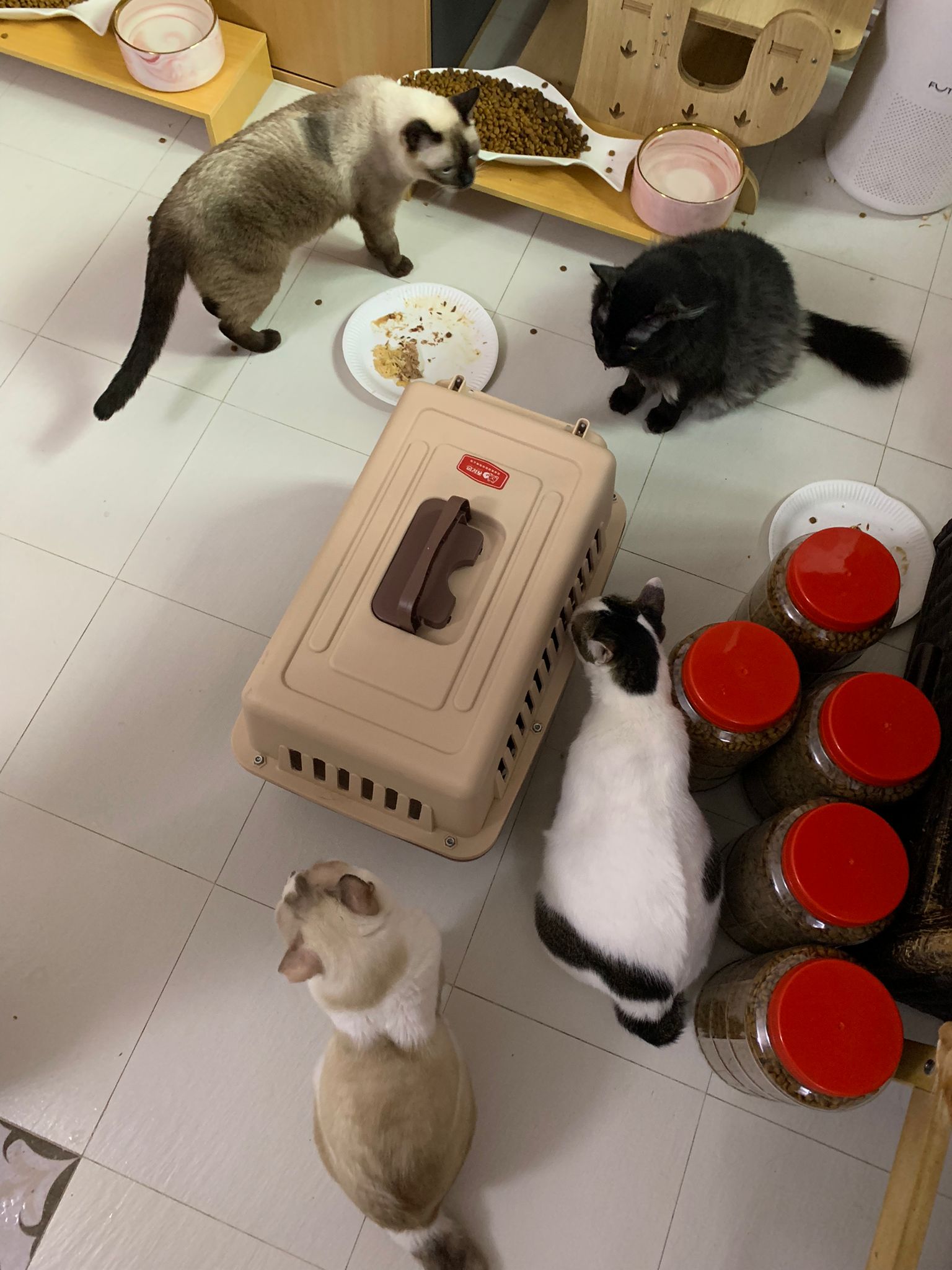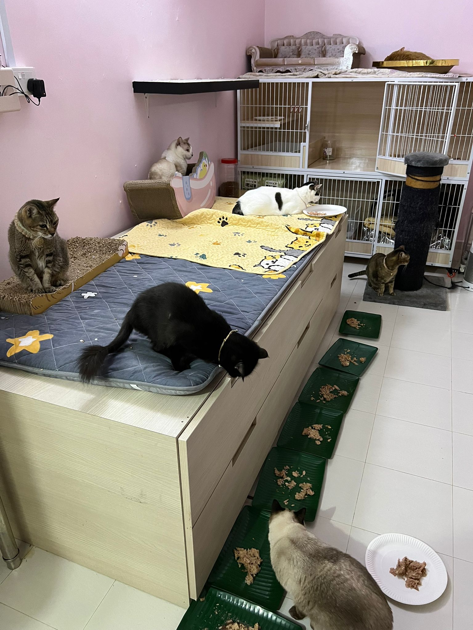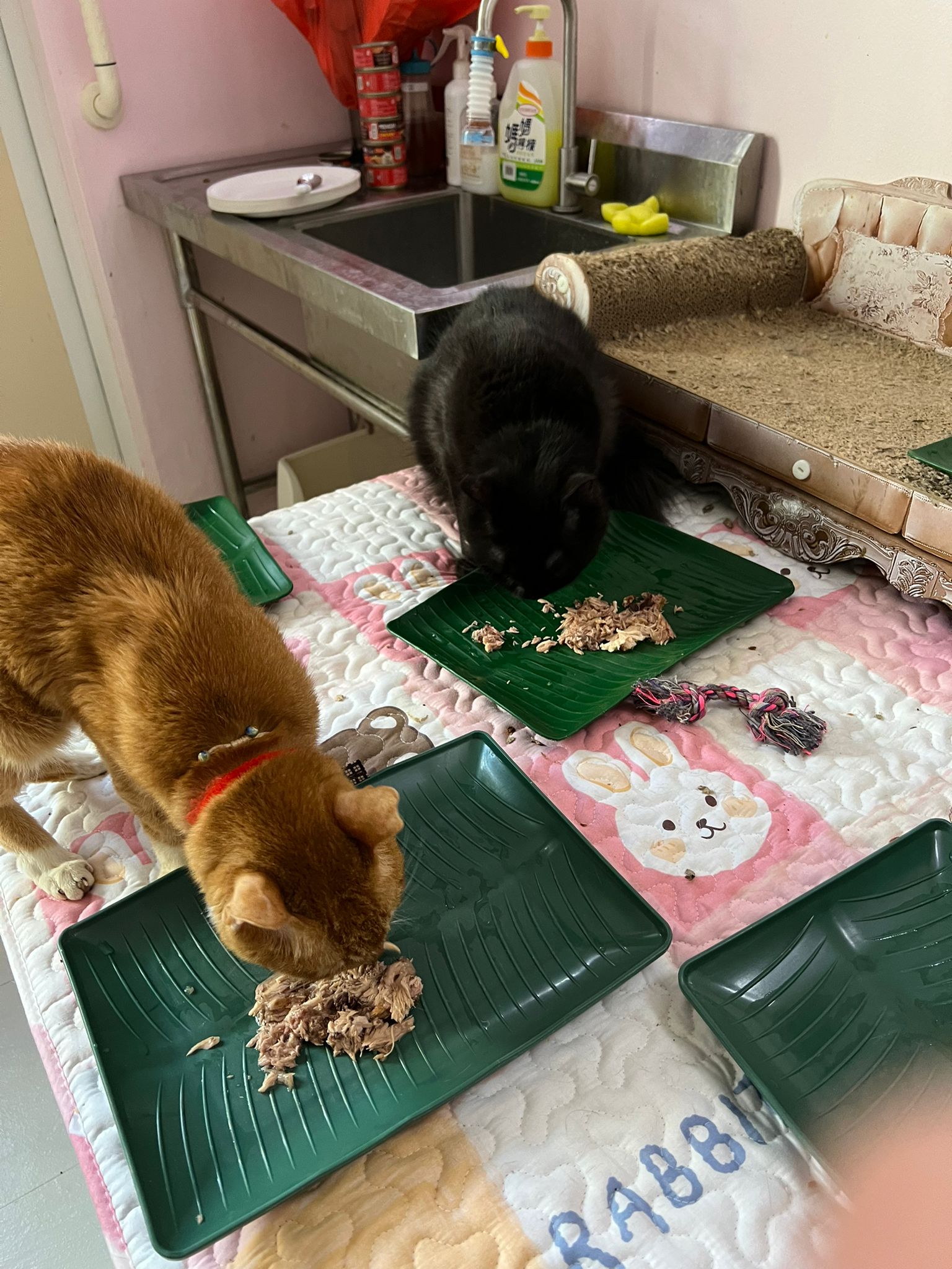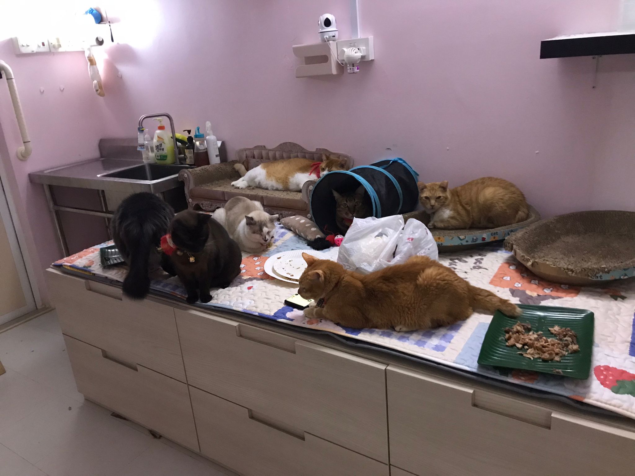 11am+: I’m back to 猫房. Their food plates almost all empty. Eating well for breakfast.