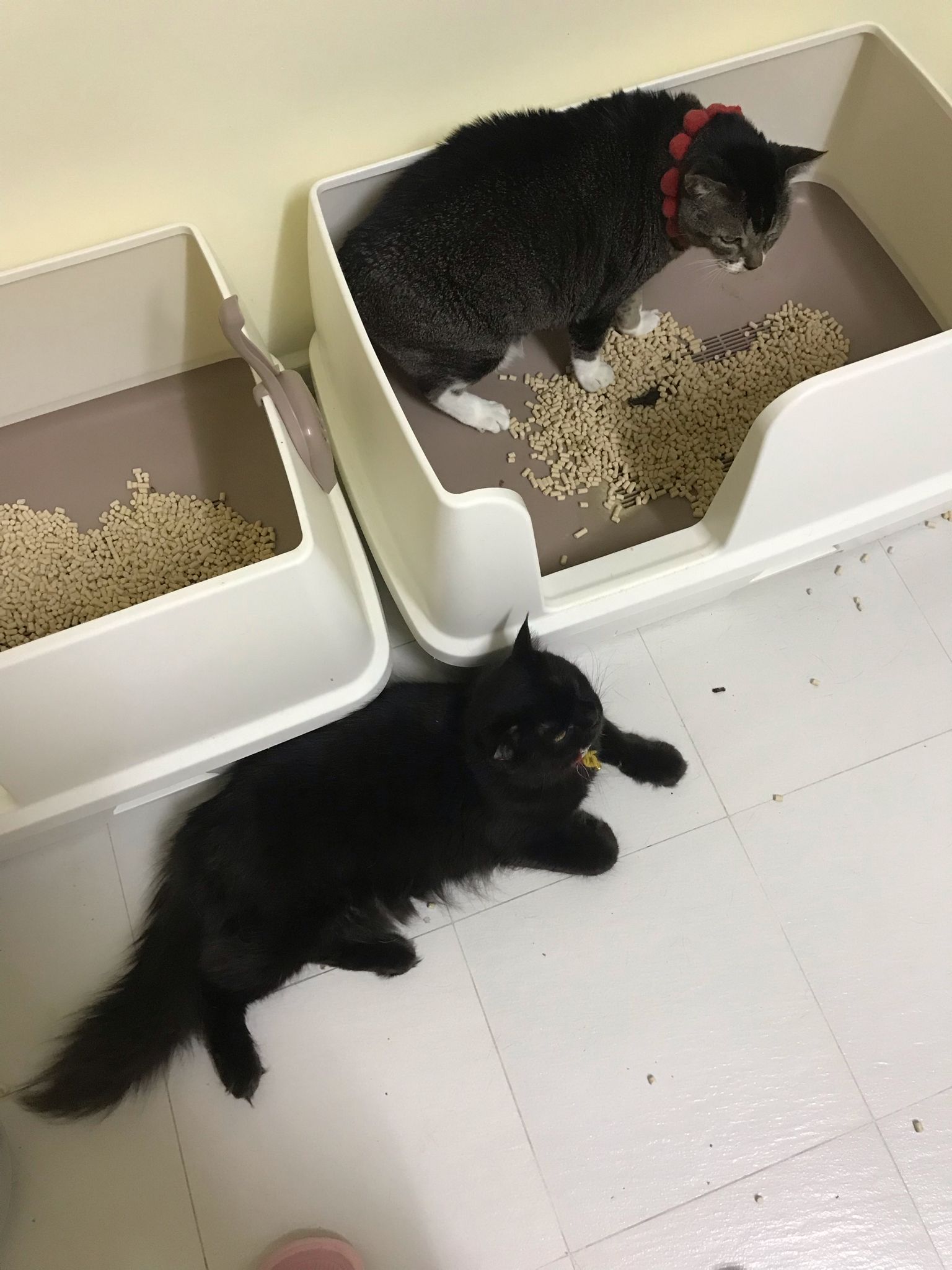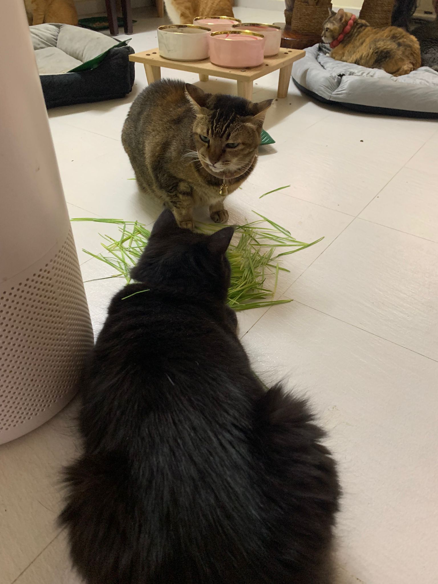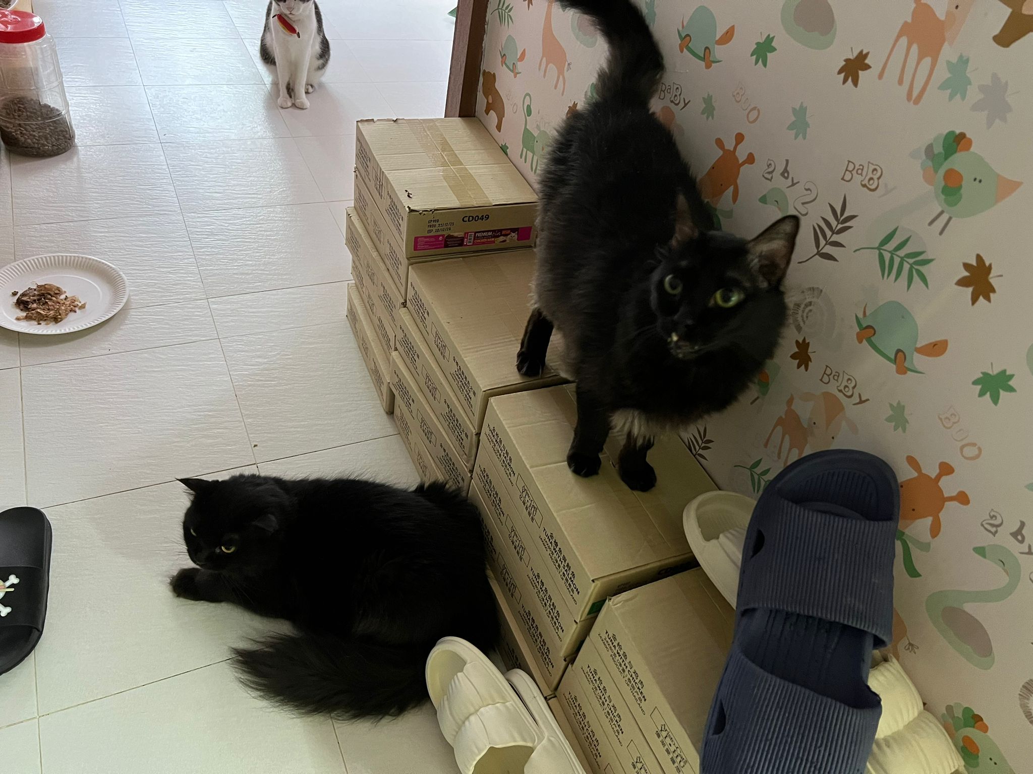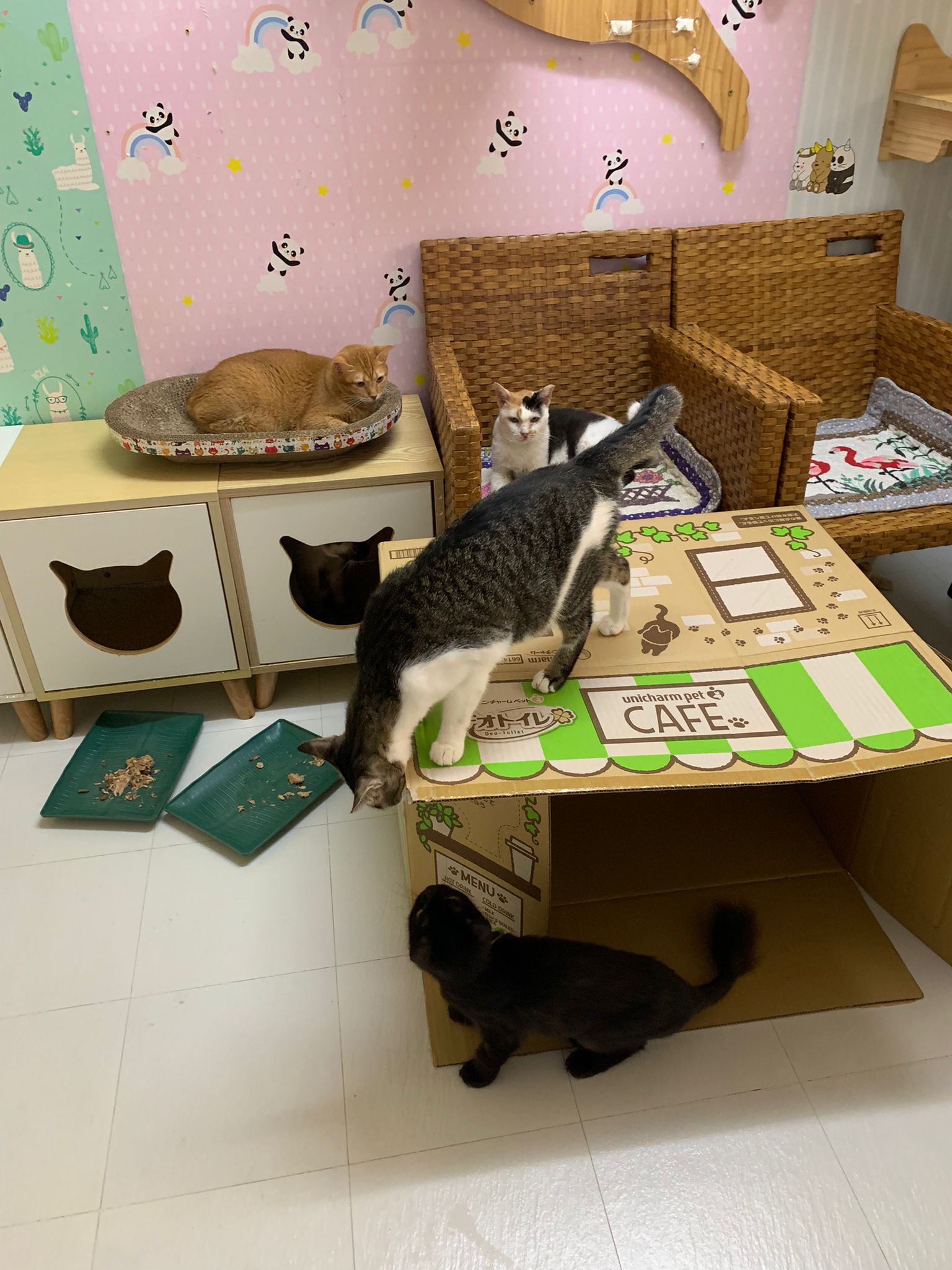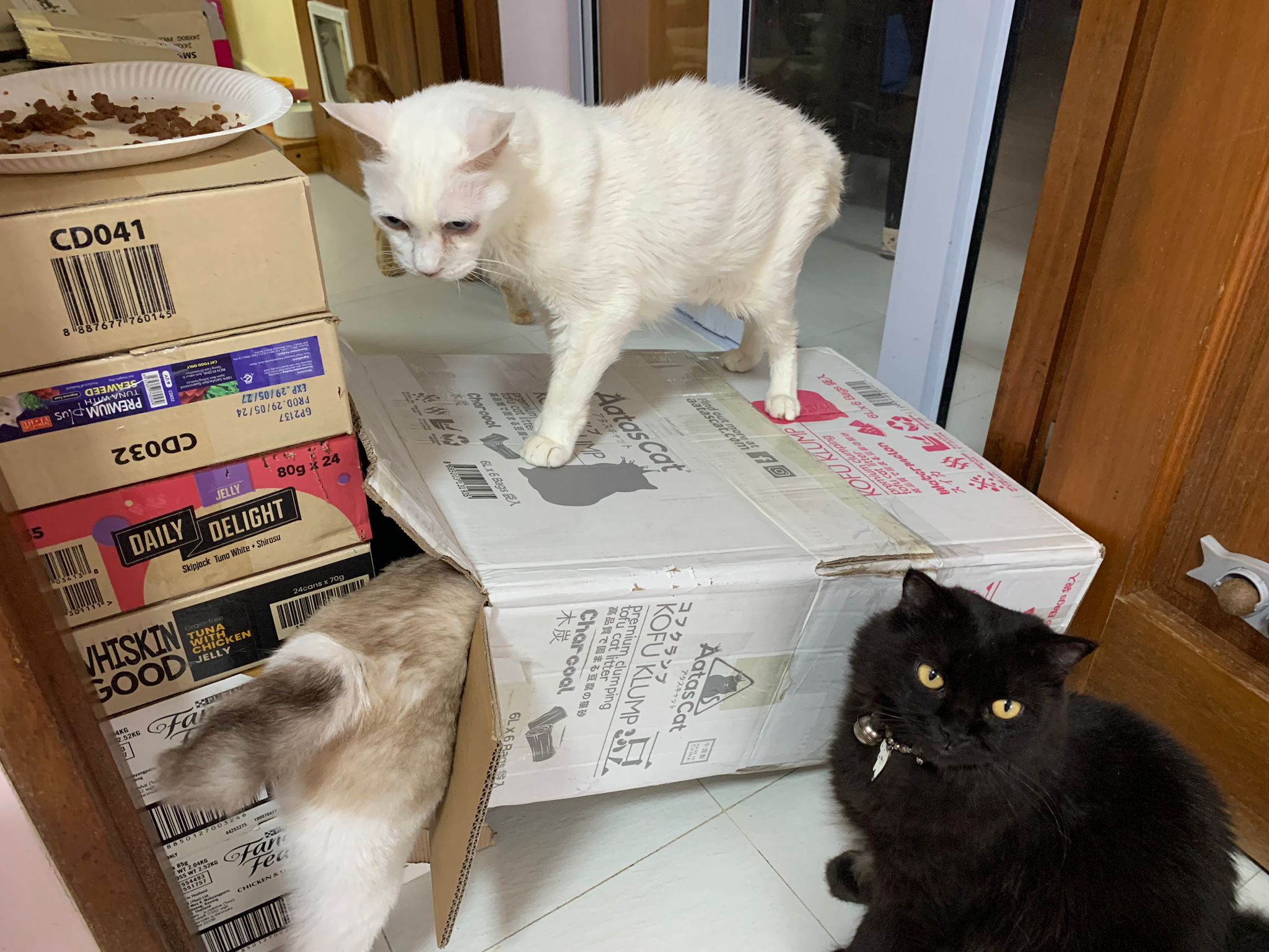 11am+: I’m back to 猫房. Their food plates almost all empty. Eating well for breakfast.