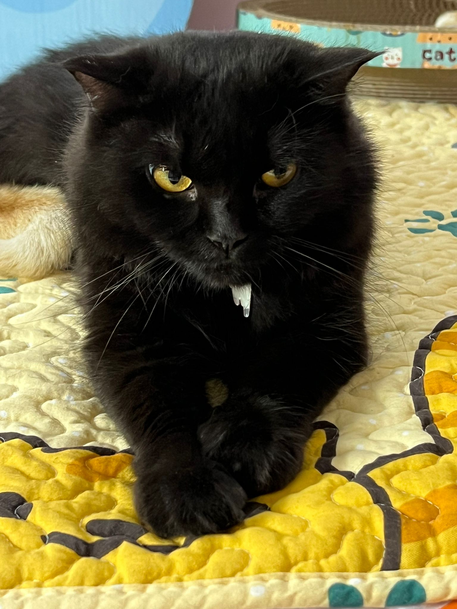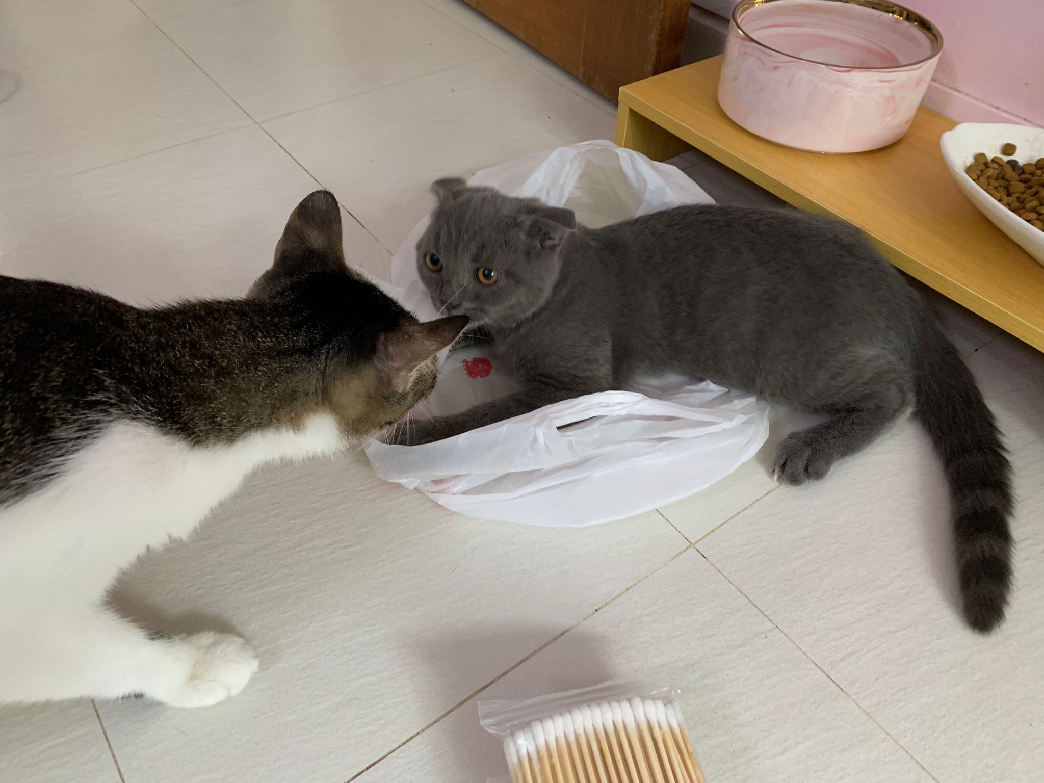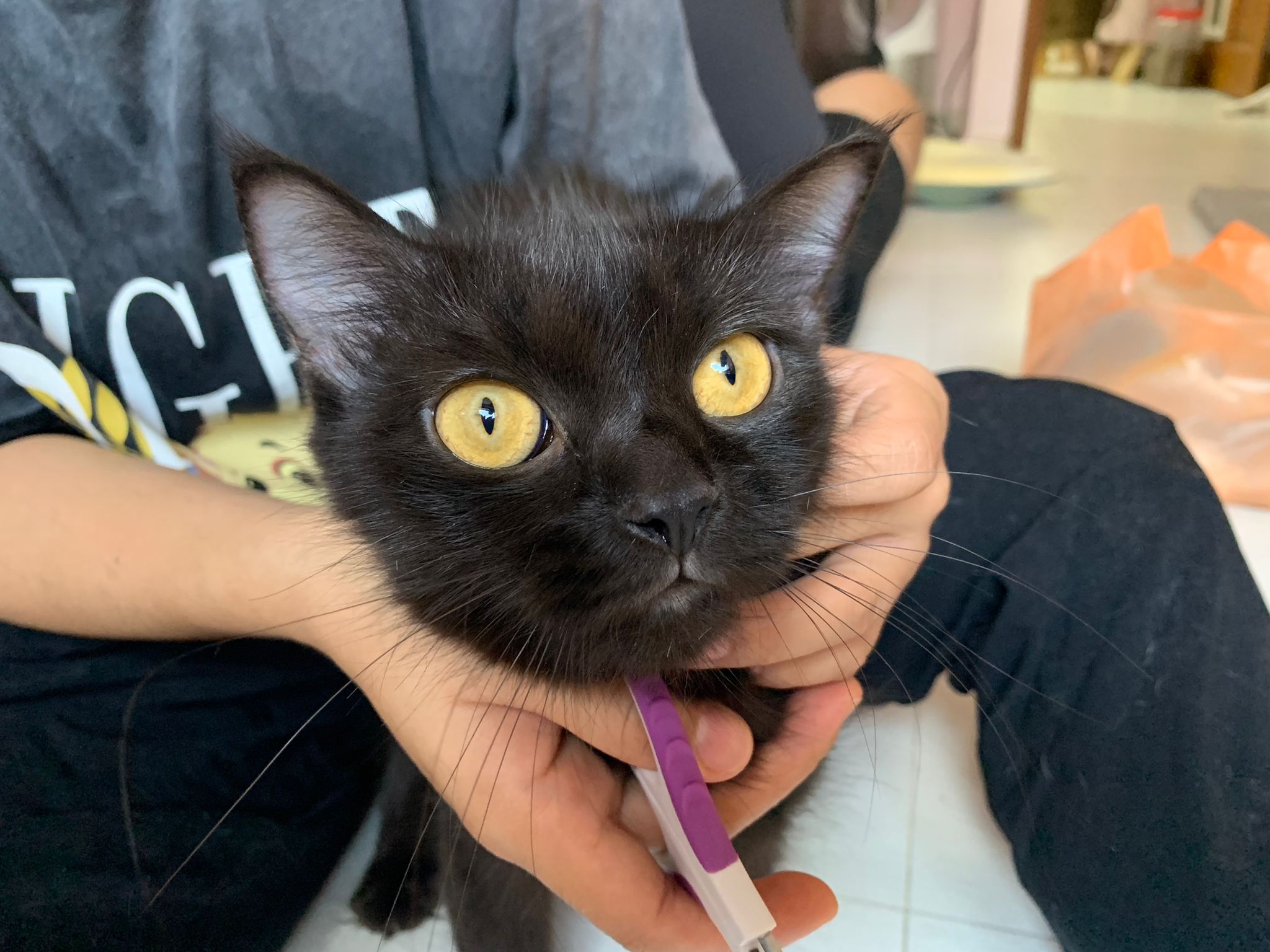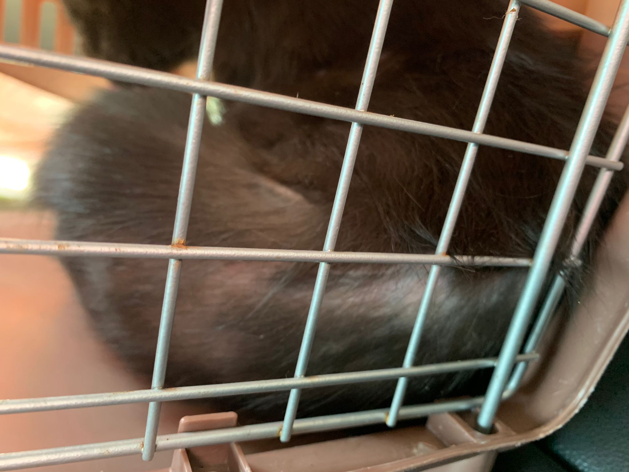 then receive her results she is clean so put her carrier in front of Cora. Cora ah boy sweeties tao check her out. I did hear some hissing sound going on, but no one show amber or aggression. Peaceful good. She can stay here. I just want her to be groom properly and settle down then come out to merge. she like to groom herself too. In carrier otw back just now she drool Duno is it cos of stress or she lick a little broadline. her right upper teeth a little tartar. That’s all. Rest of the mouth can see is a young cat.