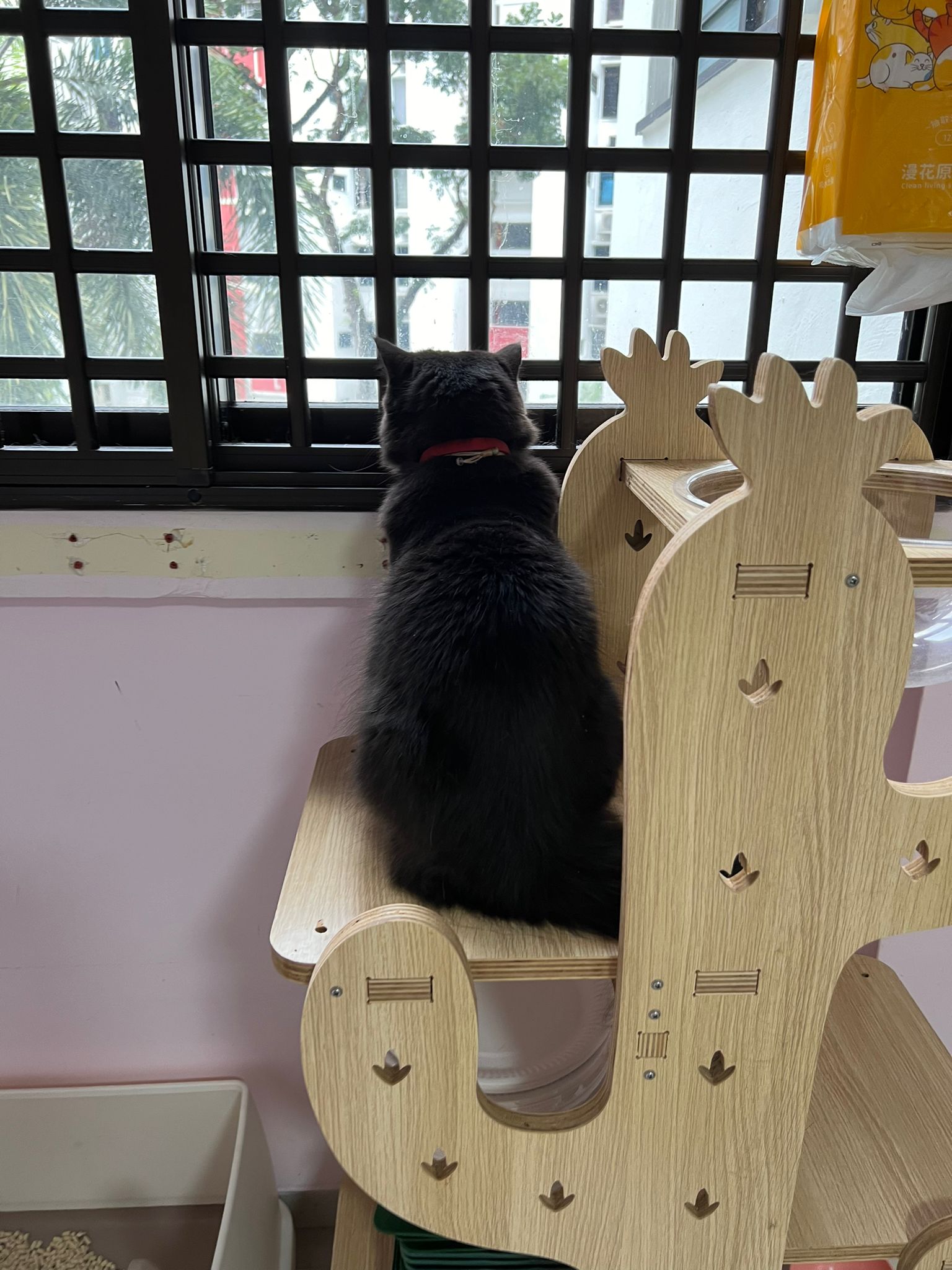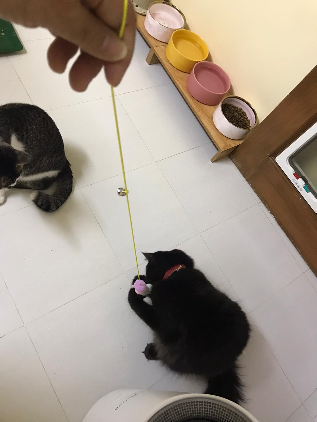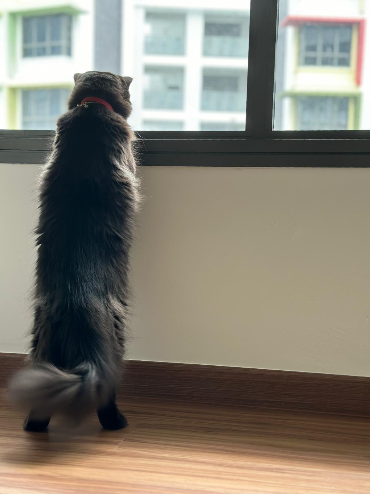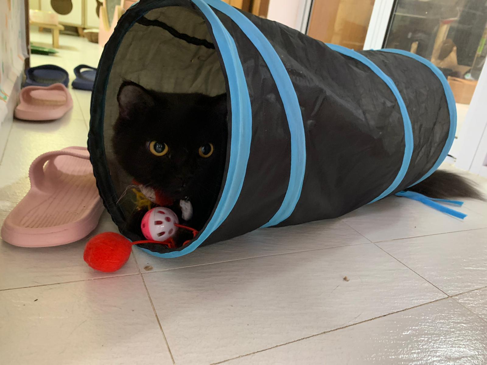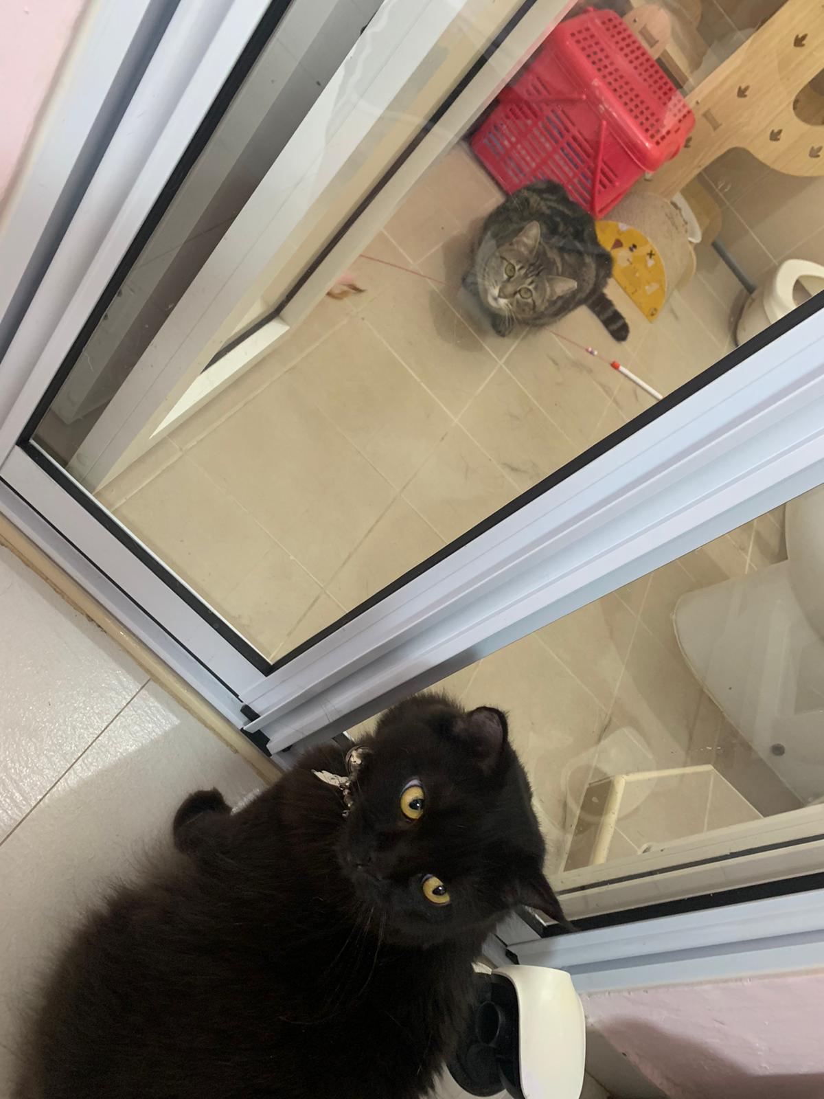 Erm her house, should be ok. I thought the automatic litterbin is scarier than the risk of windows. noted the “a1 screen” window mesh if any adopter need next time. Met Riri, let him mentally prepared that he gonna have a sister. he like catnip toy also.