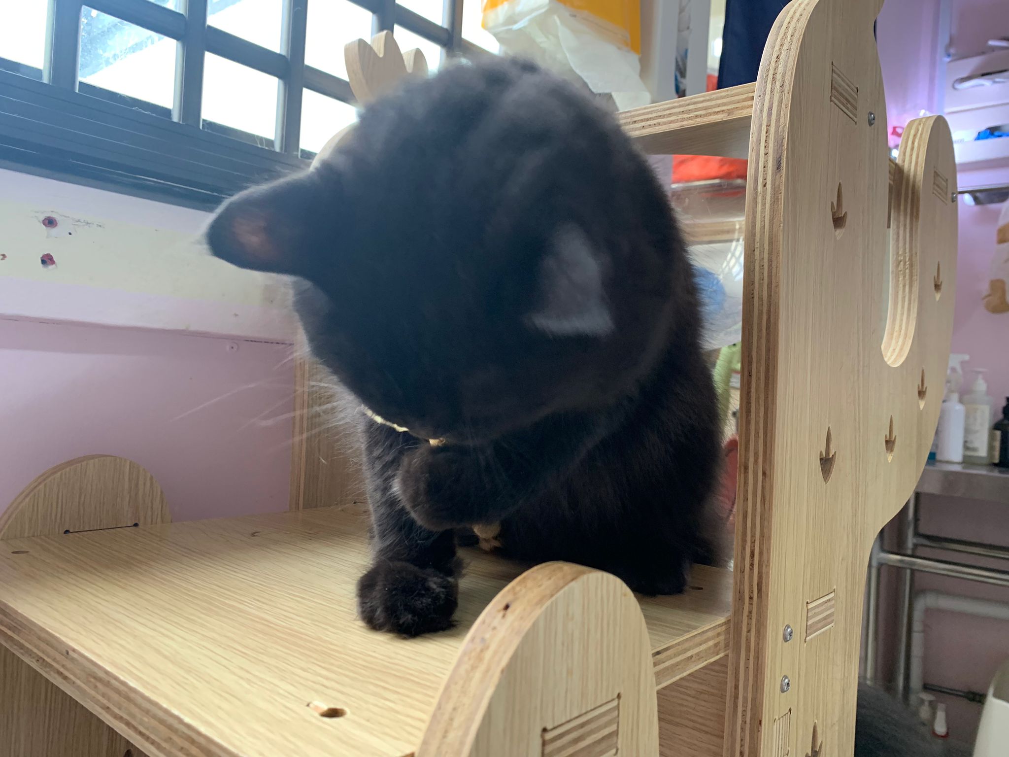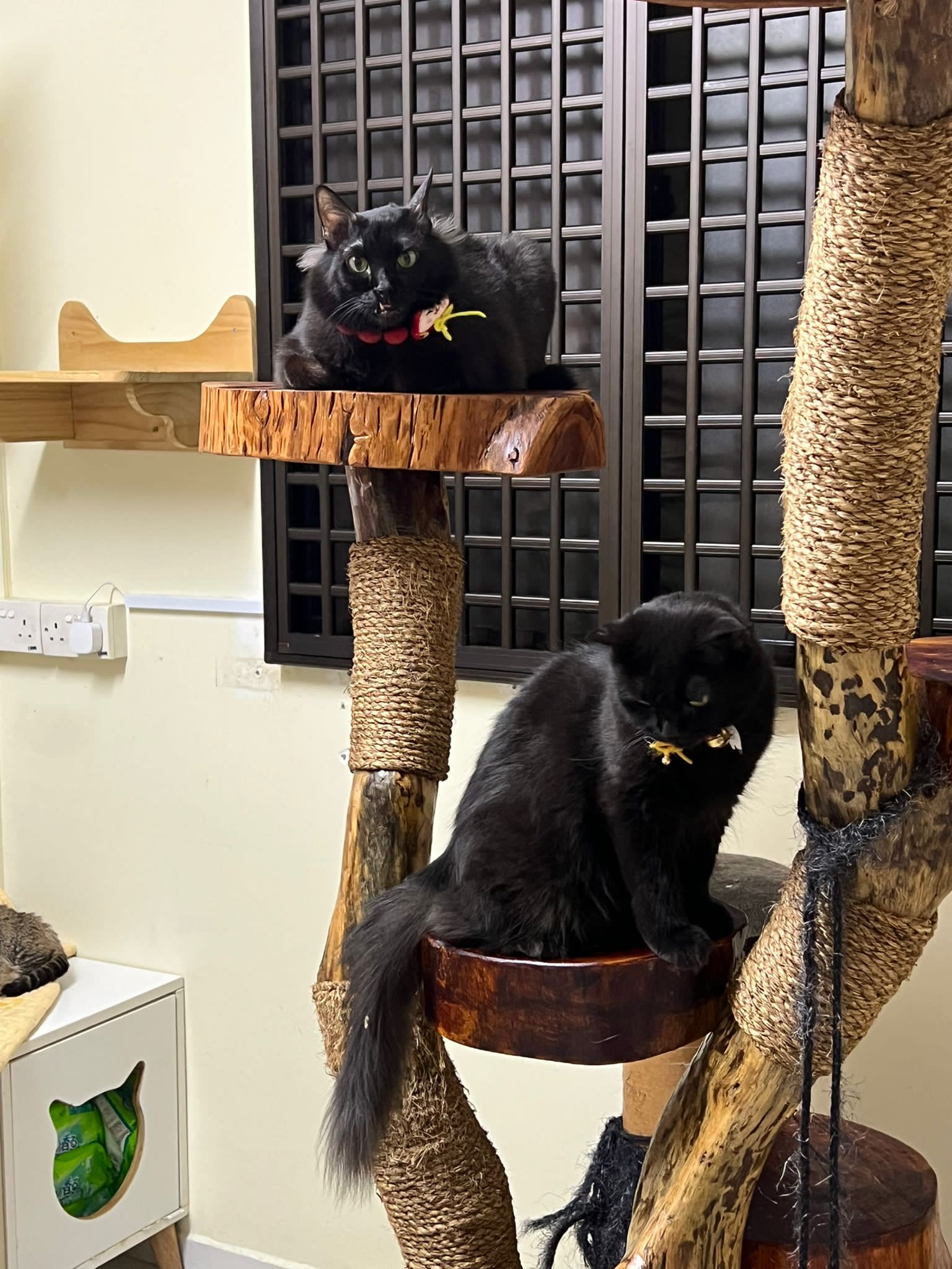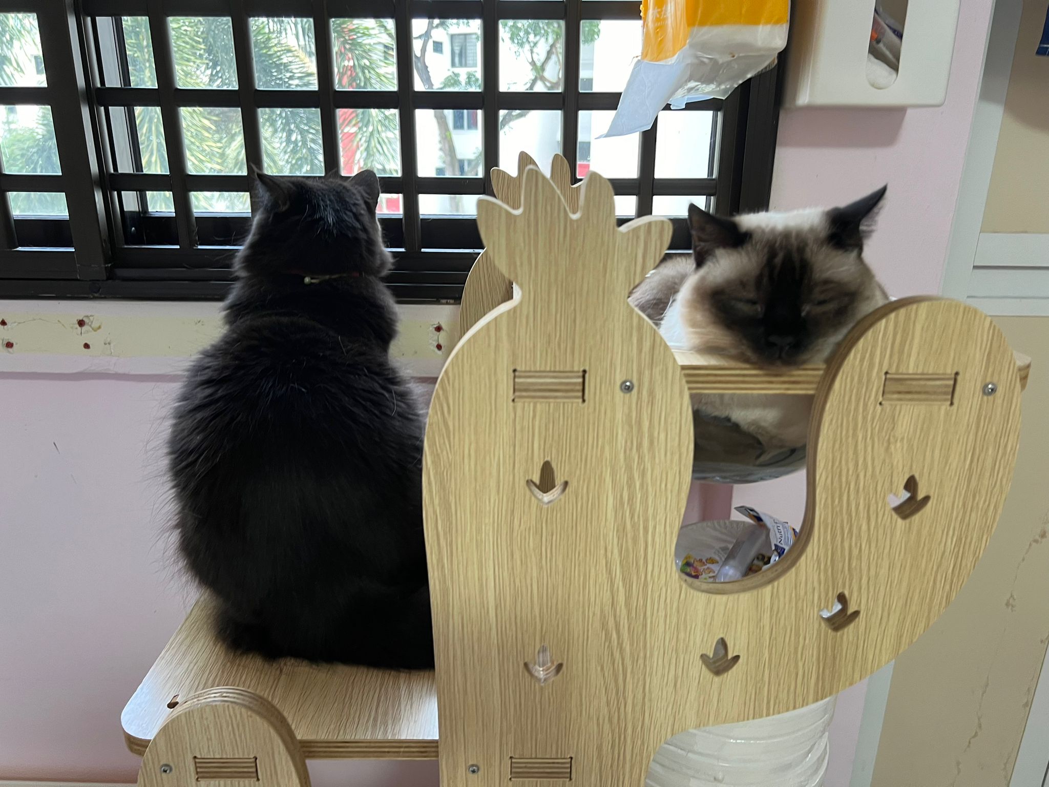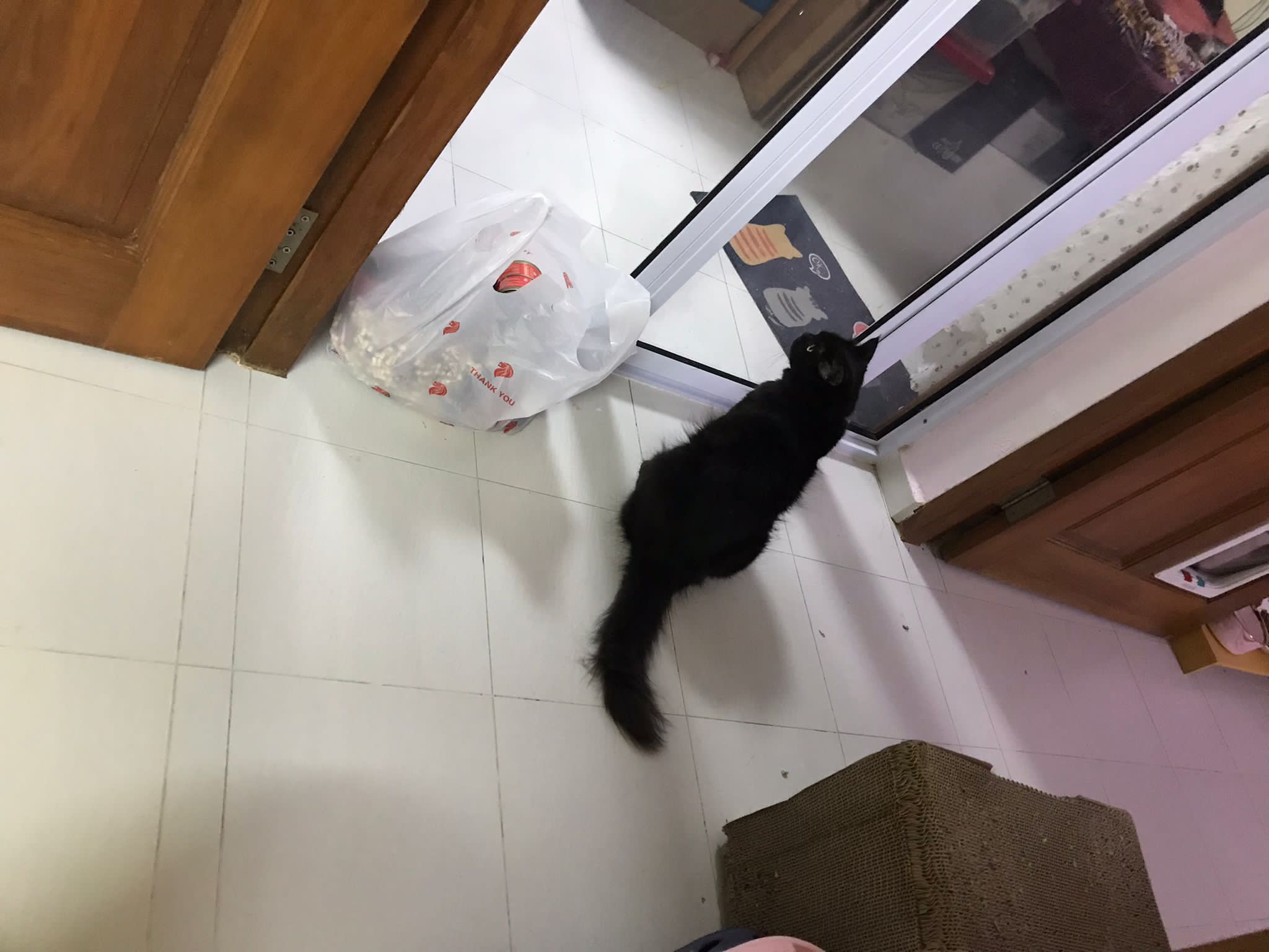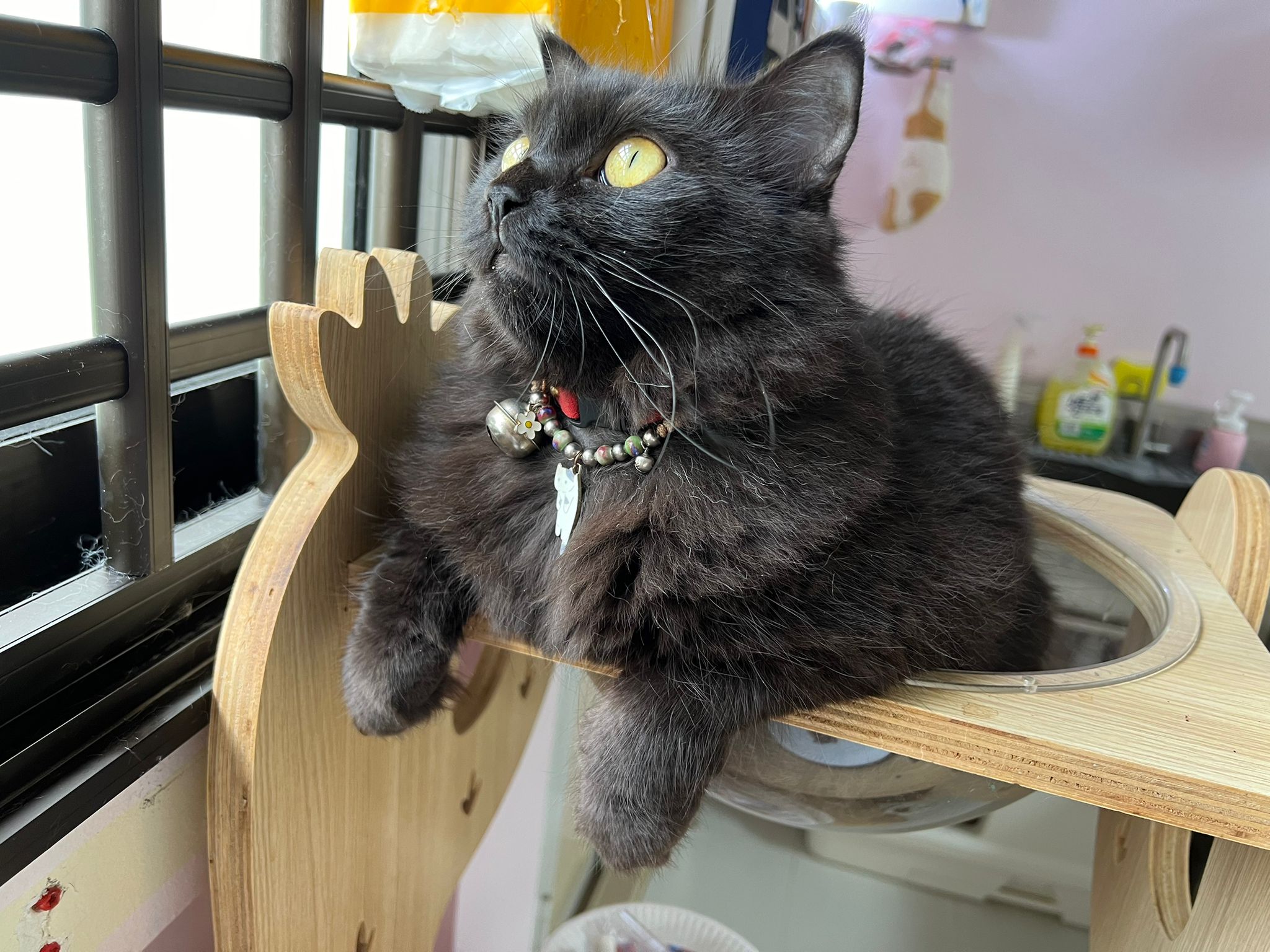Erm her house, should be ok. I thought the automatic litterbin is scarier than the risk of windows. noted the “a1 screen” window mesh if any adopter need next time. Met Riri, let him mentally prepared that he gonna have a sister. he like catnip toy also.