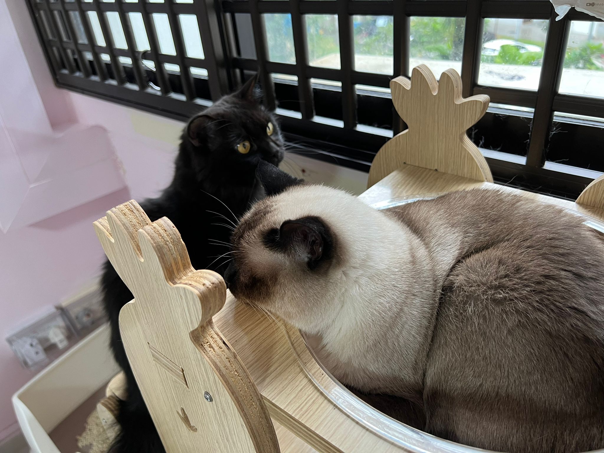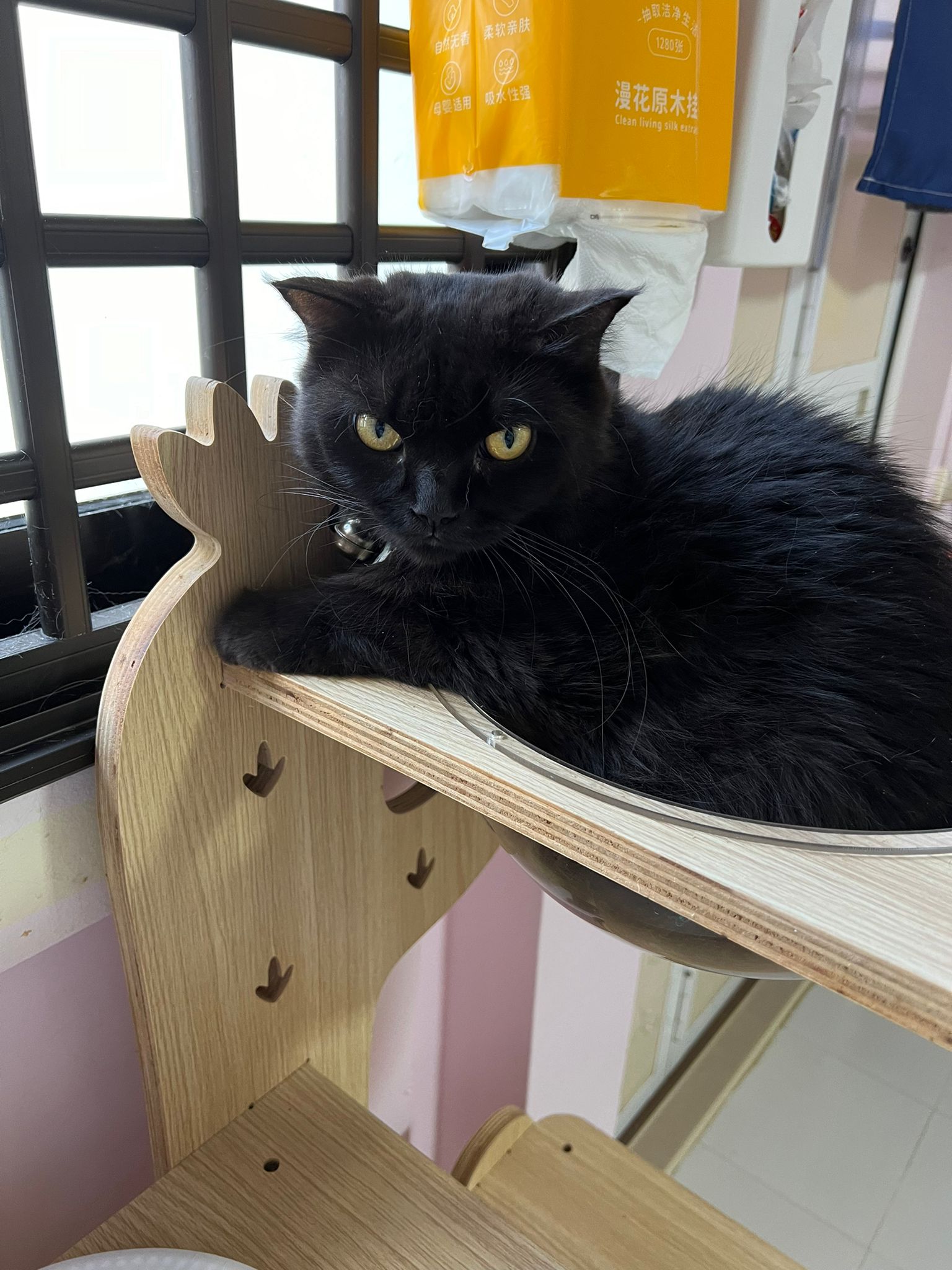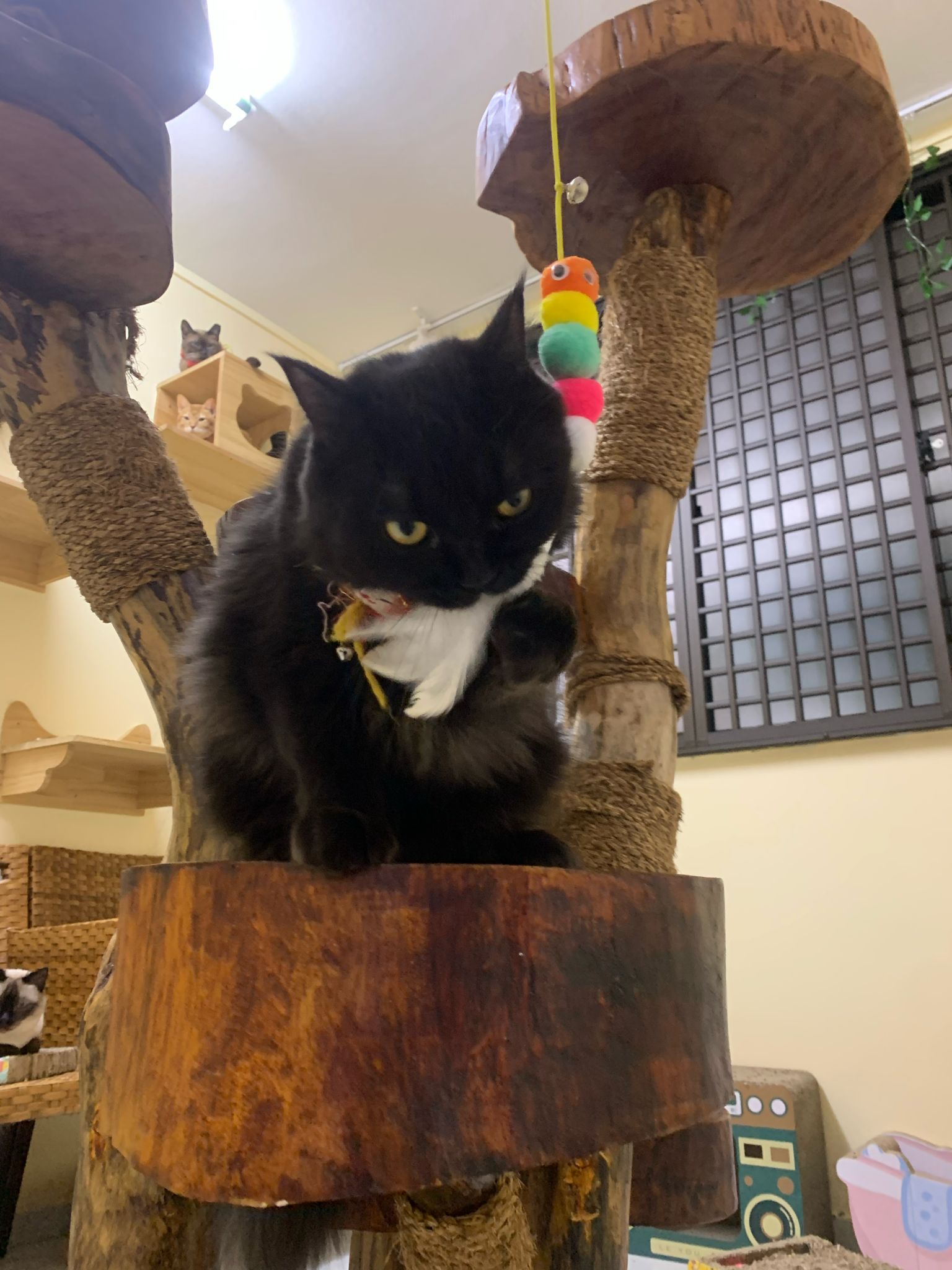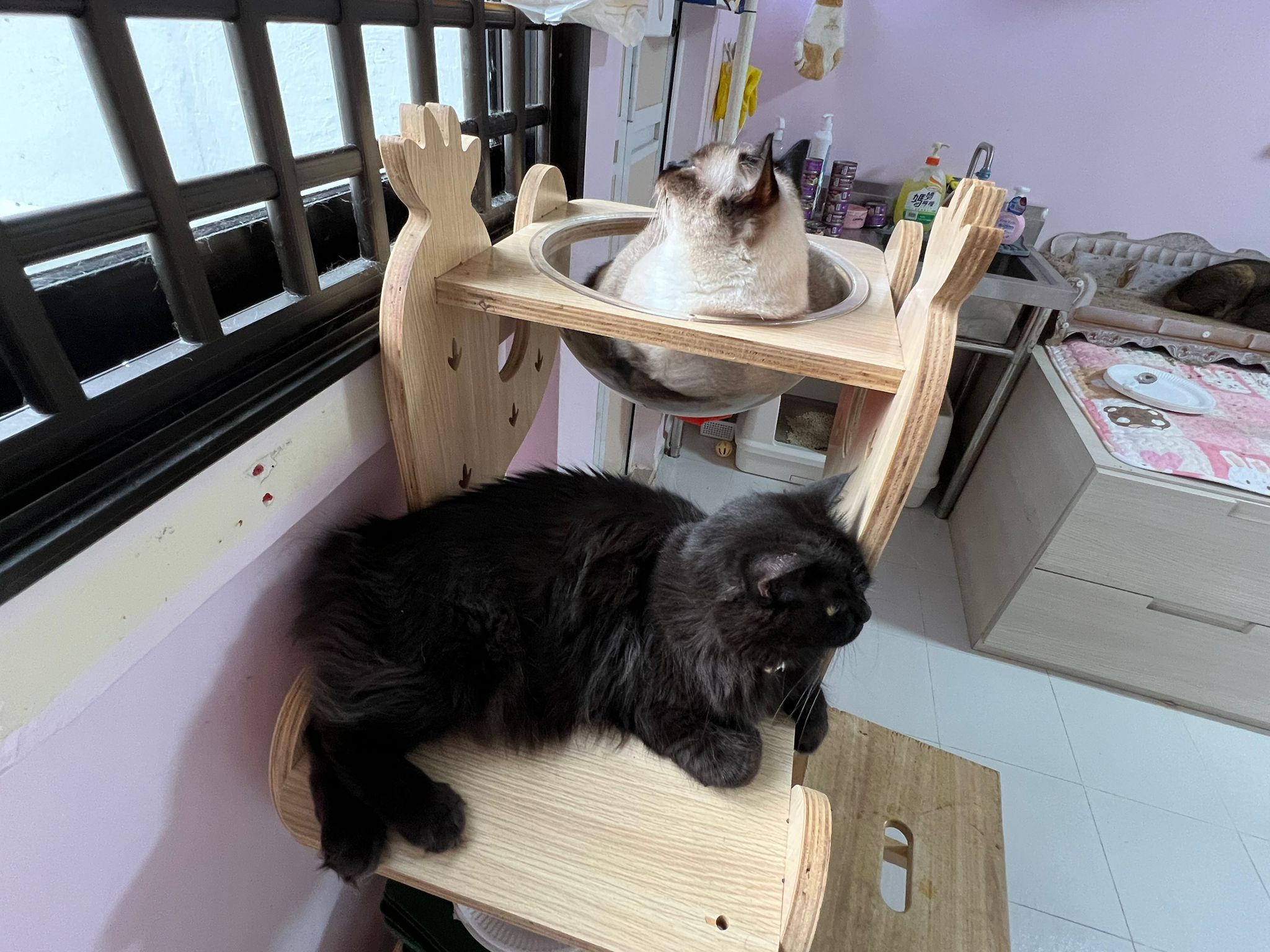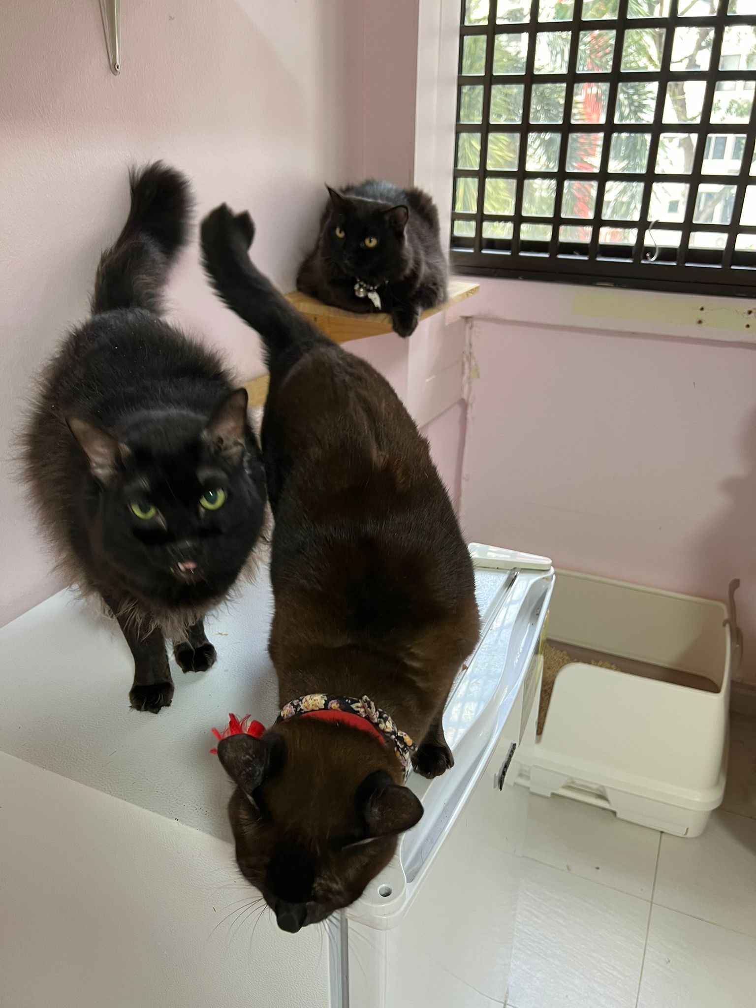 Erm her house, should be ok. I thought the automatic litterbin is scarier than the risk of windows. noted the “a1 screen” window mesh if any adopter need next time. Met Riri, let him mentally prepared that he gonna have a sister. he like catnip toy also.