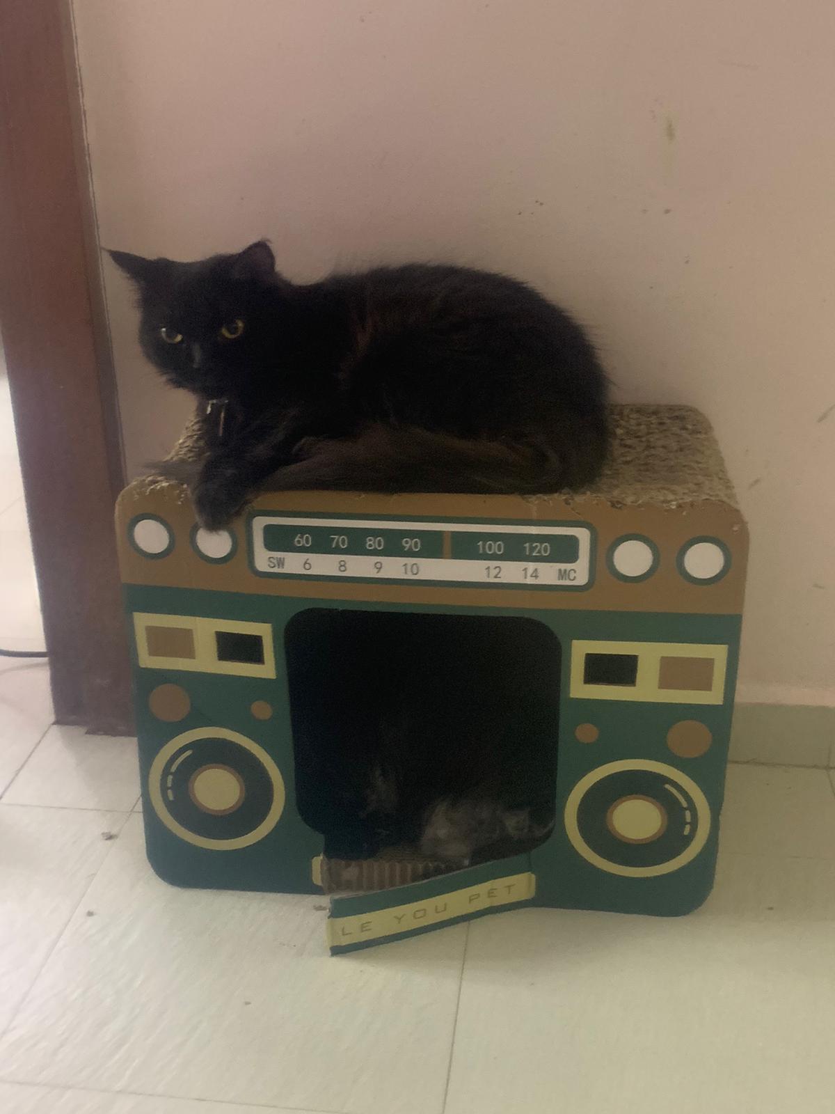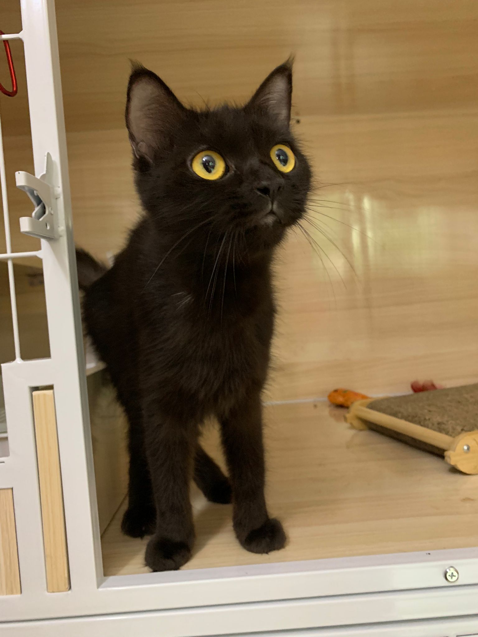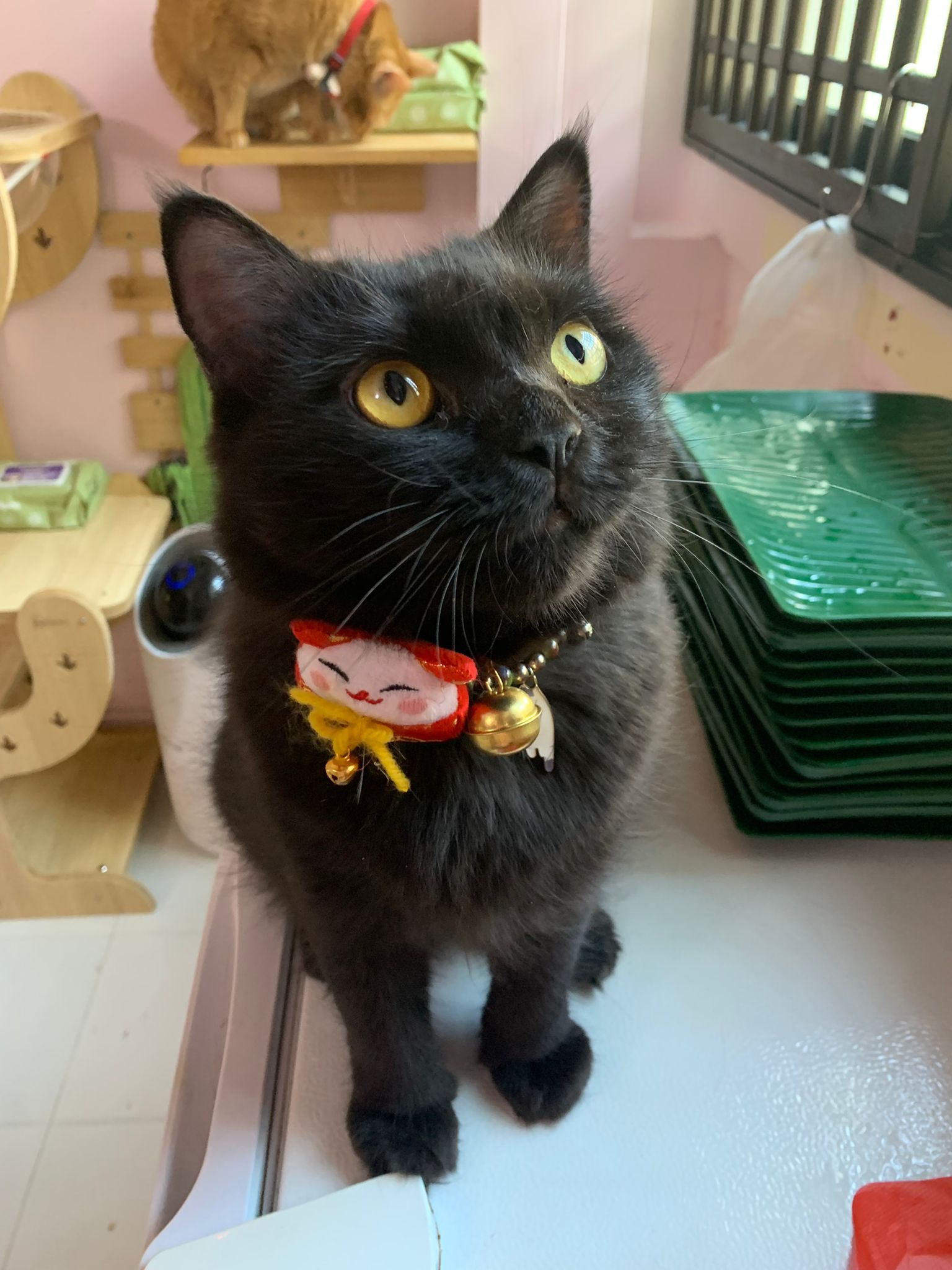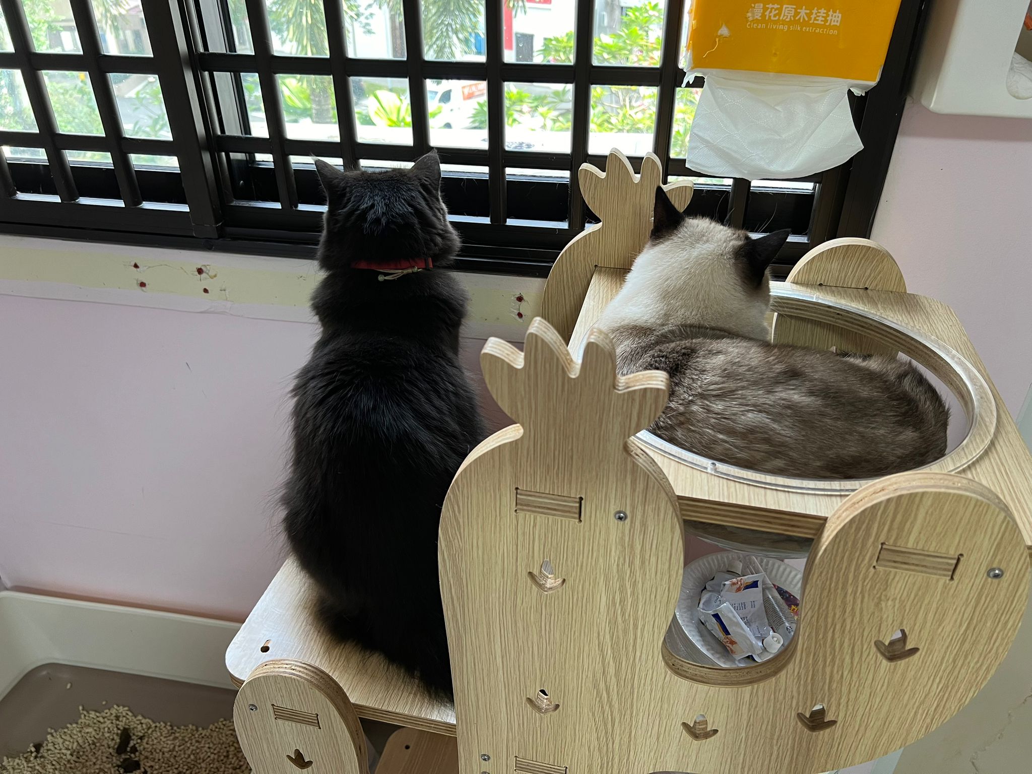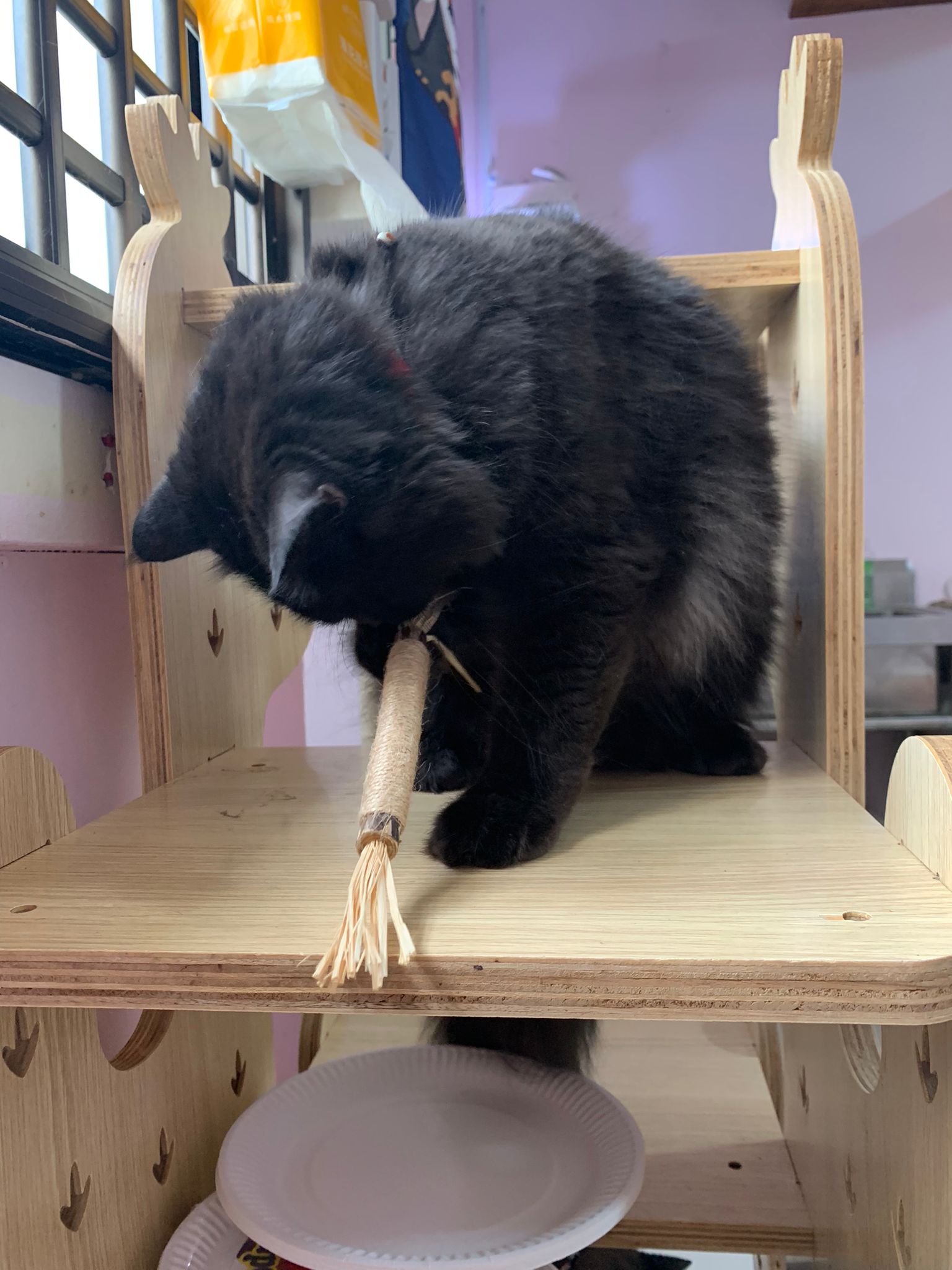 Erm her house, should be ok. I thought the automatic litterbin is scarier than the risk of windows. noted the “a1 screen” window mesh if any adopter need next time. Met Riri, let him mentally prepared that he gonna have a sister. he like catnip toy also.