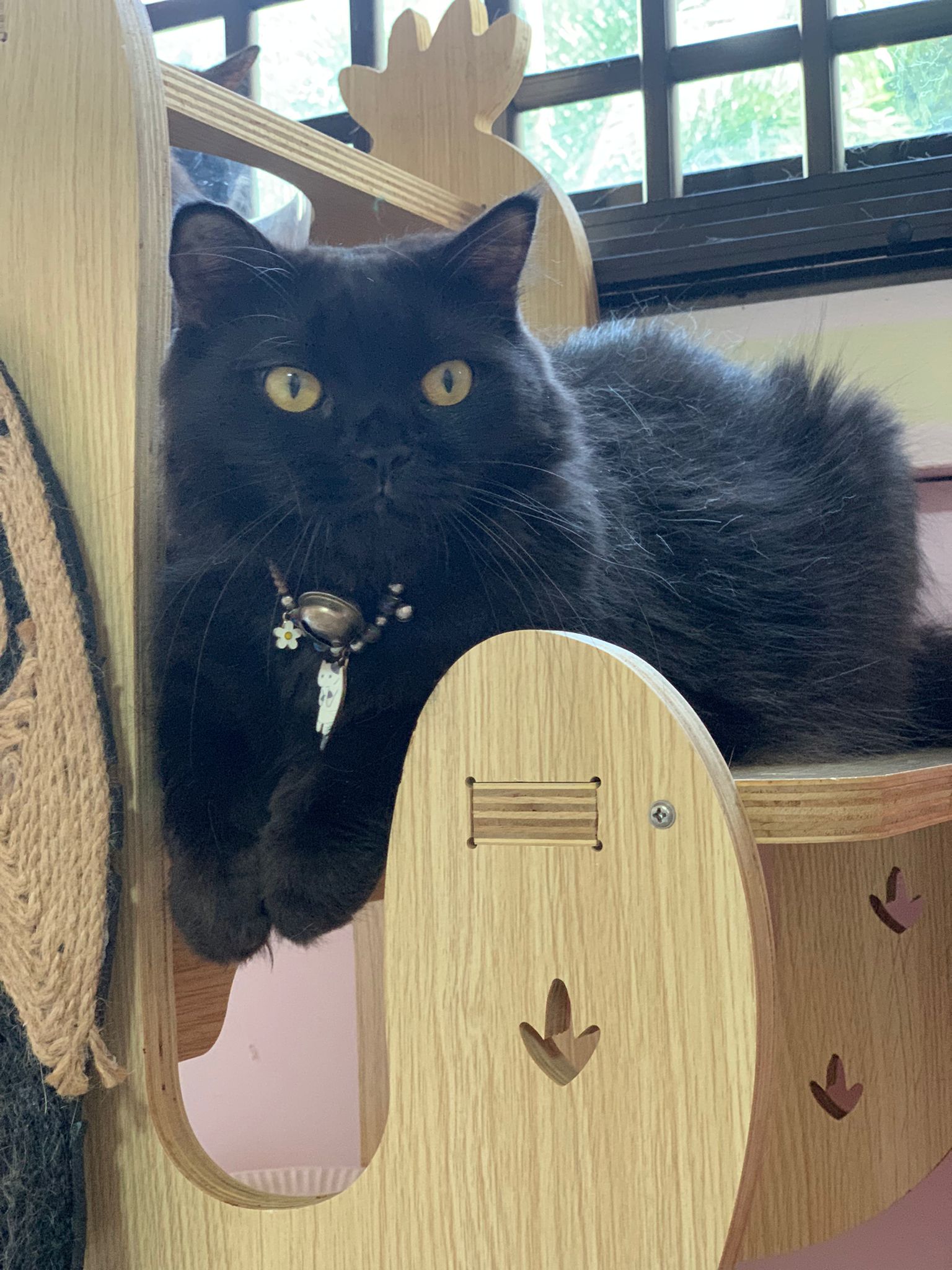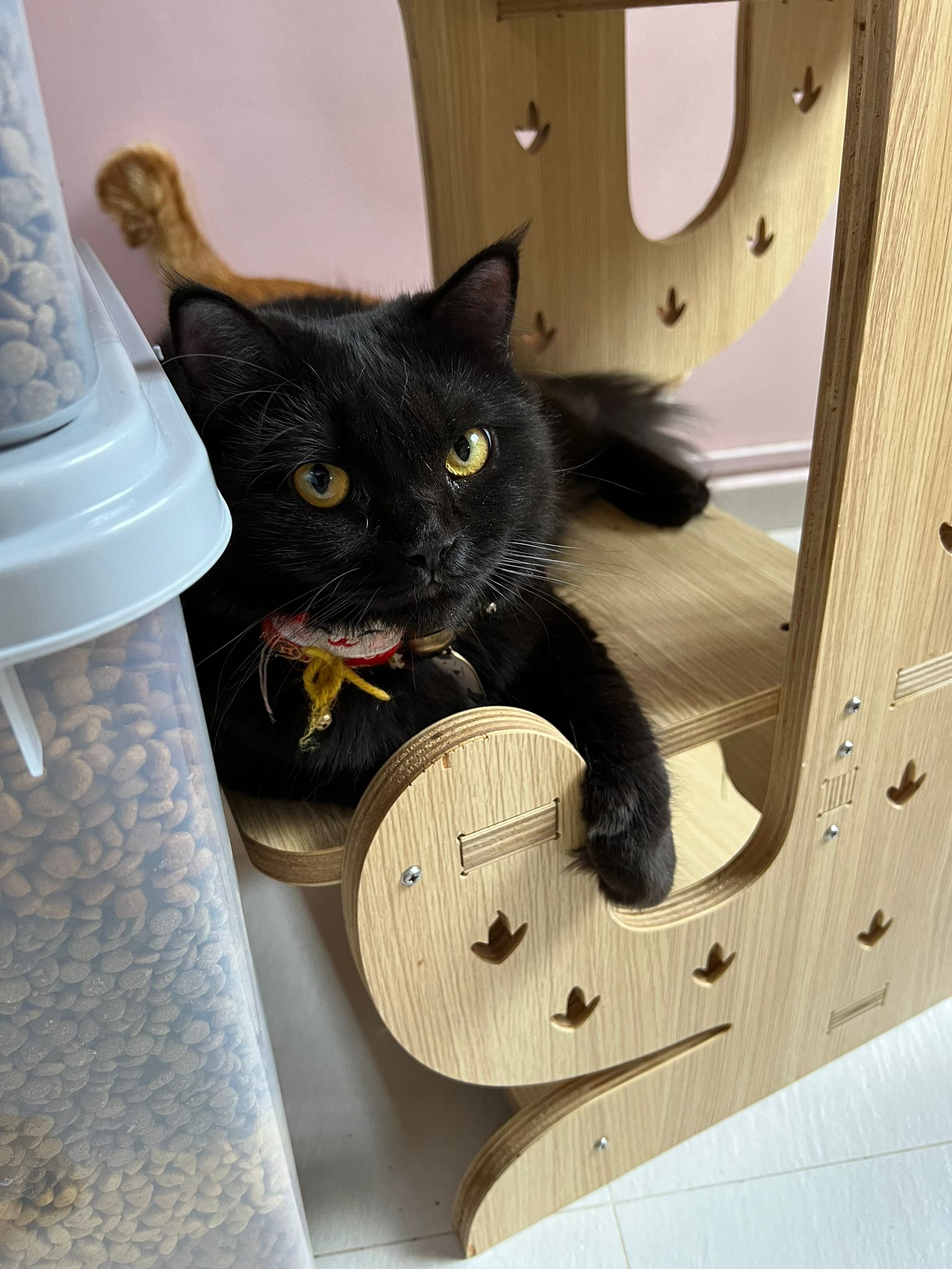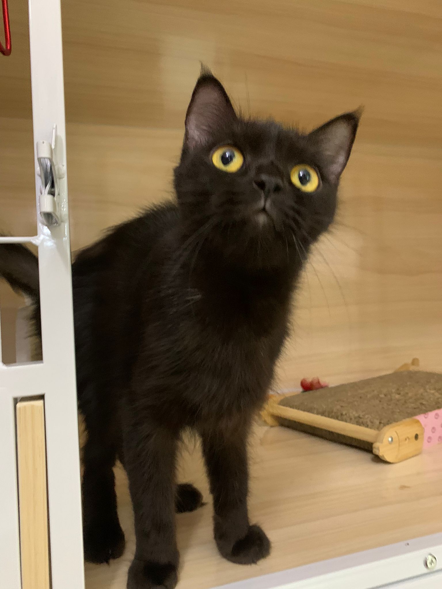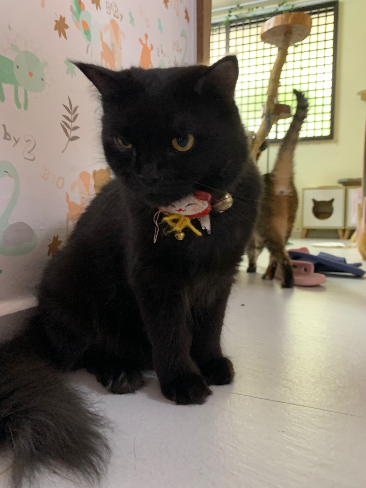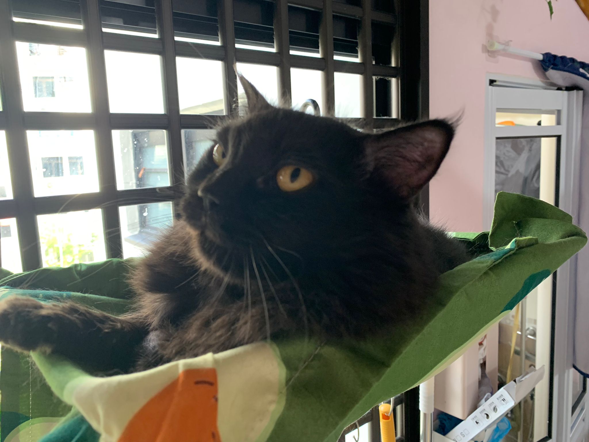 Erm her house, should be ok. I thought the automatic litterbin is scarier than the risk of windows. noted the “a1 screen” window mesh if any adopter need next time. Met Riri, let him mentally prepared that he gonna have a sister. he like catnip toy also.