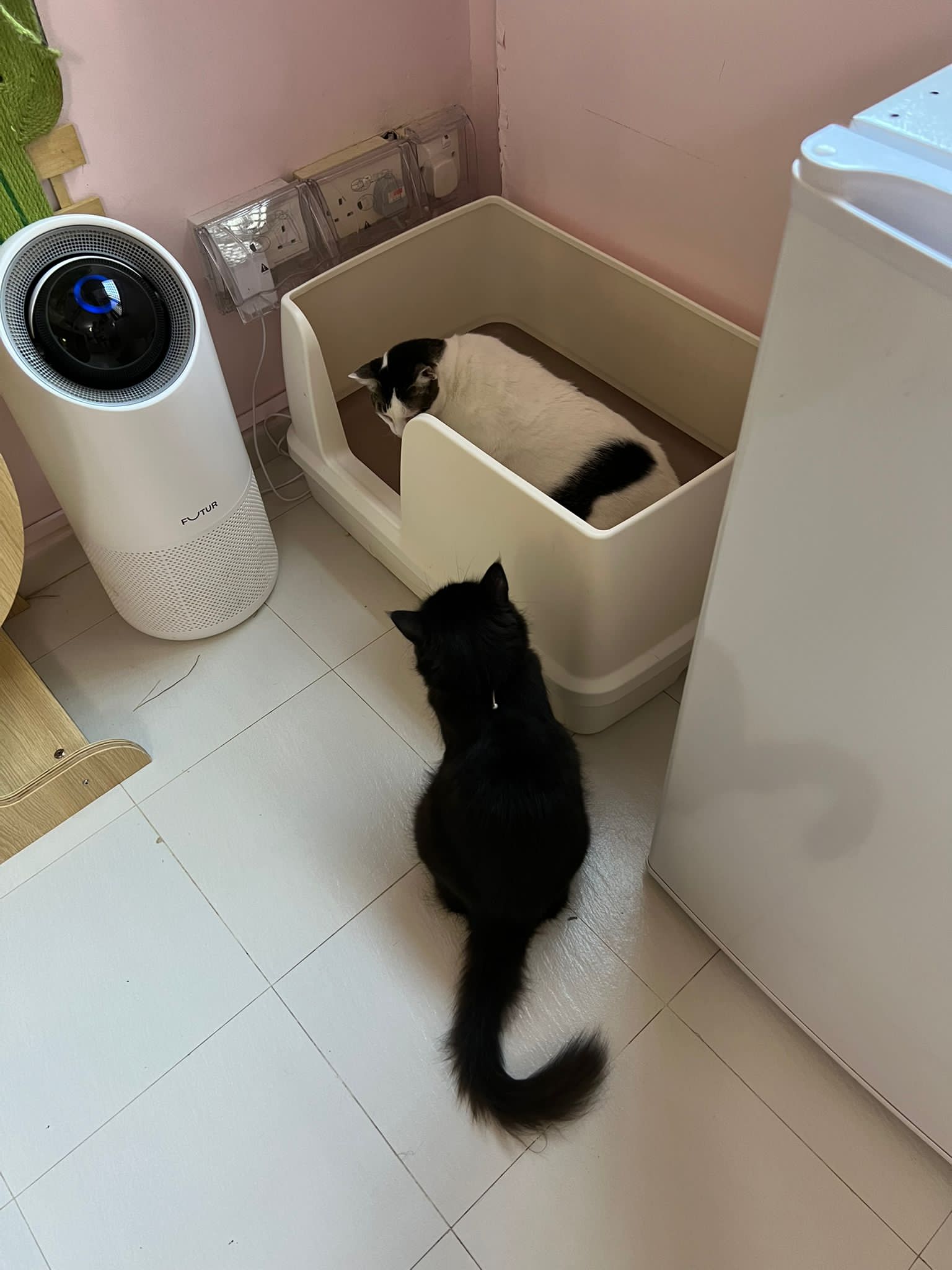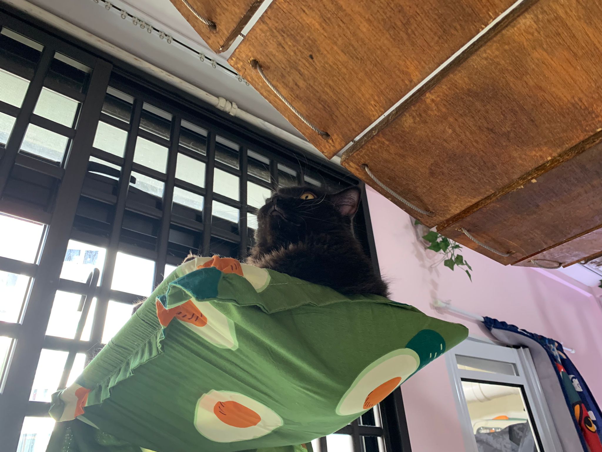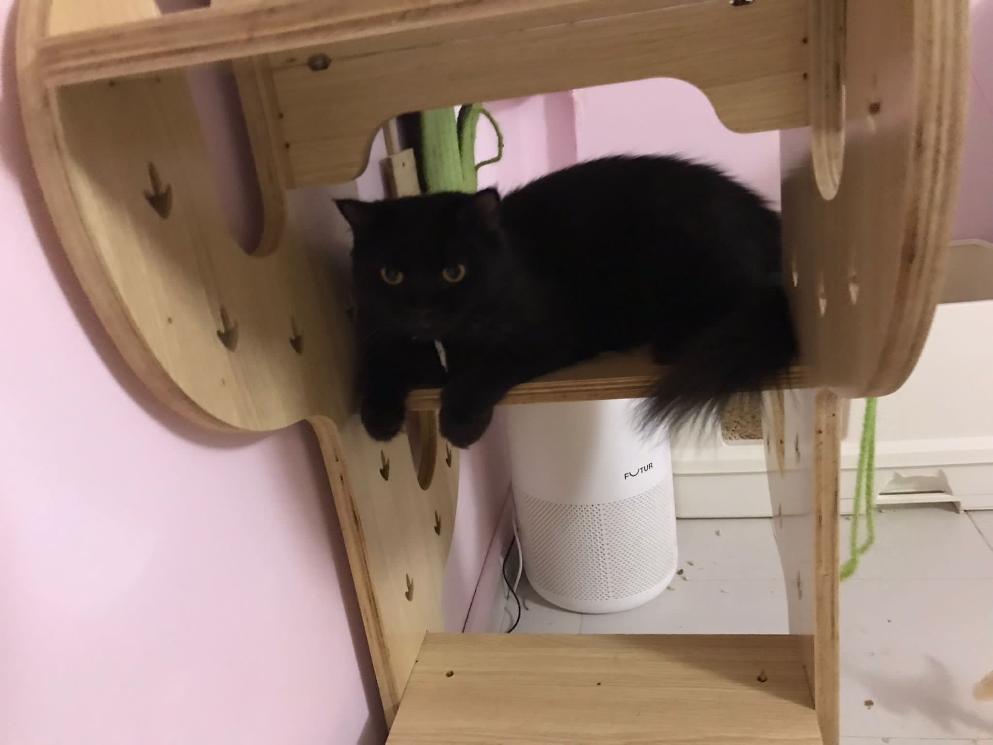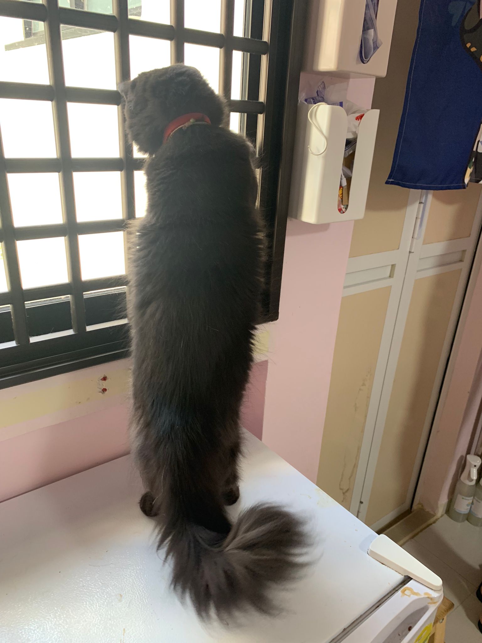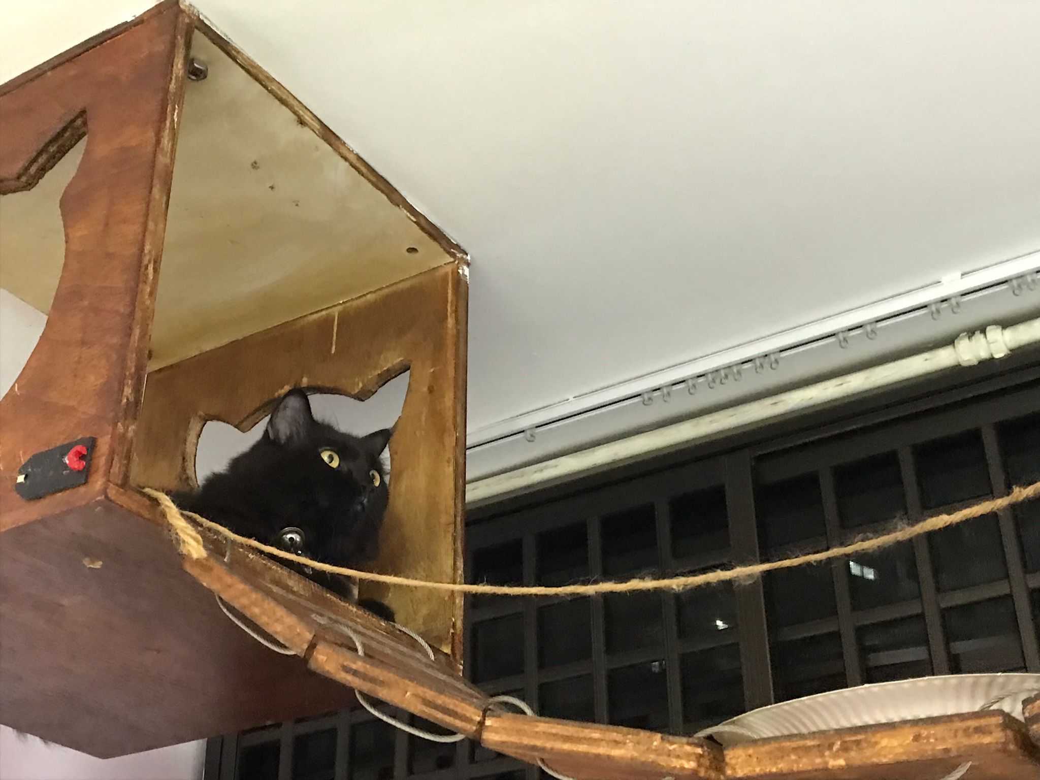 Erm her house, should be ok. I thought the automatic litterbin is scarier than the risk of windows. noted the “a1 screen” window mesh if any adopter need next time. Met Riri, let him mentally prepared that he gonna have a sister. he like catnip toy also.