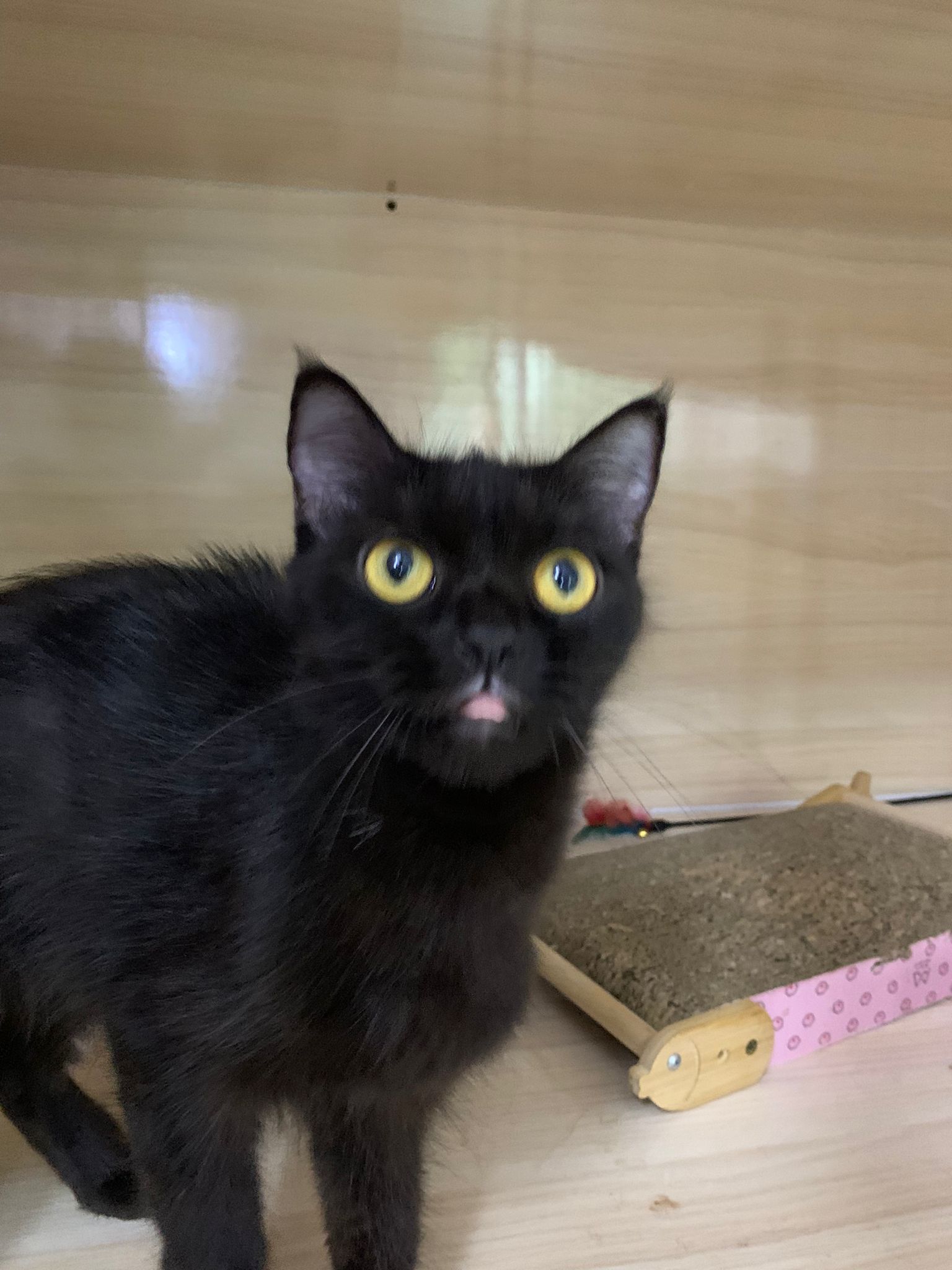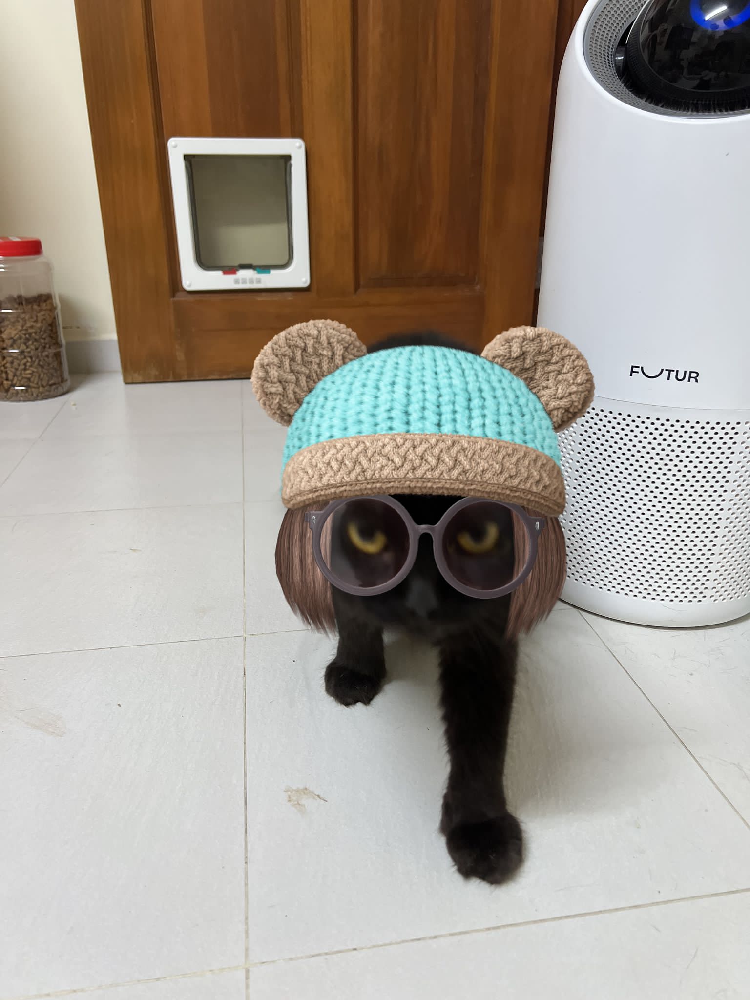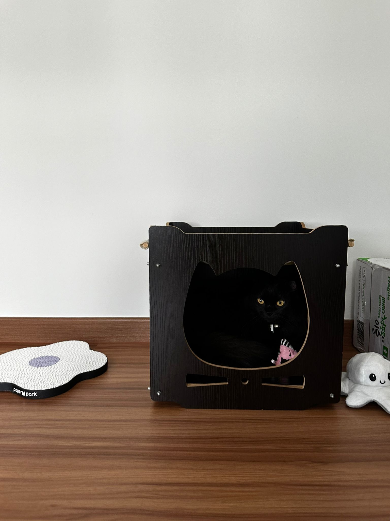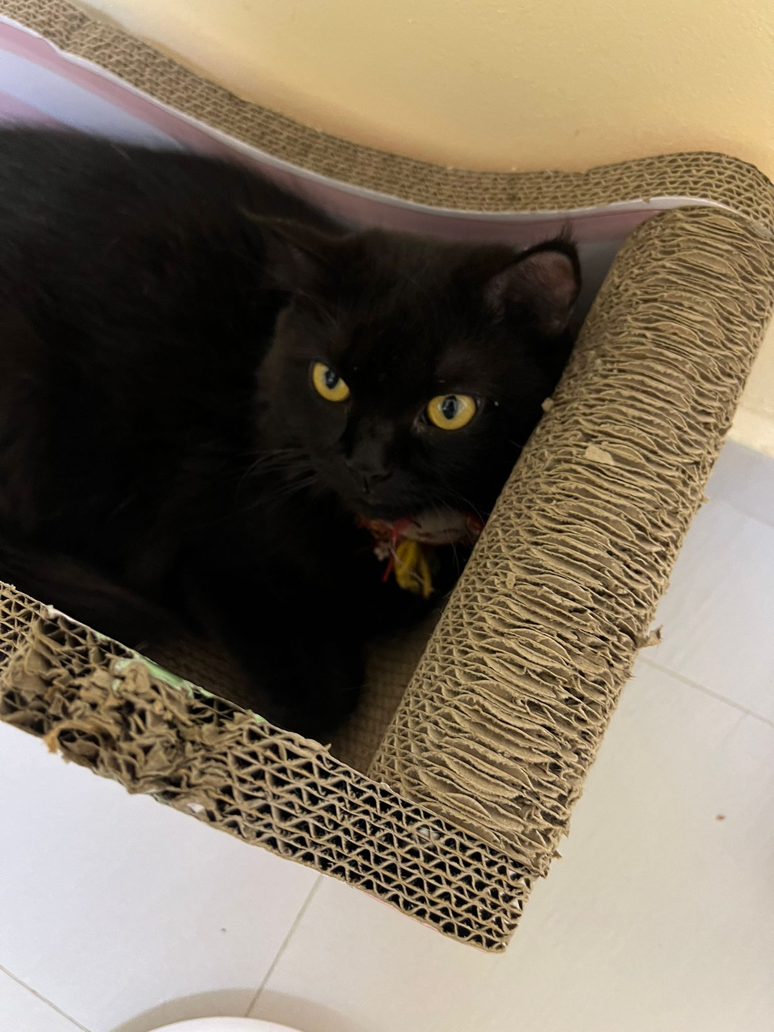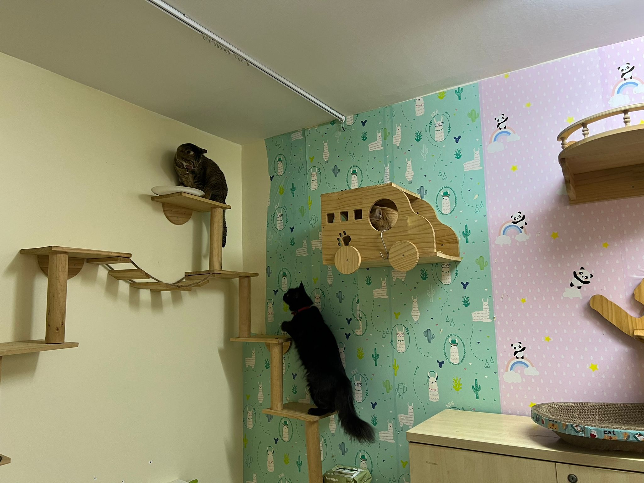 Erm her house, should be ok. I thought the automatic litterbin is scarier than the risk of windows. noted the “a1 screen” window mesh if any adopter need next time. Met Riri, let him mentally prepared that he gonna have a sister. he like catnip toy also.