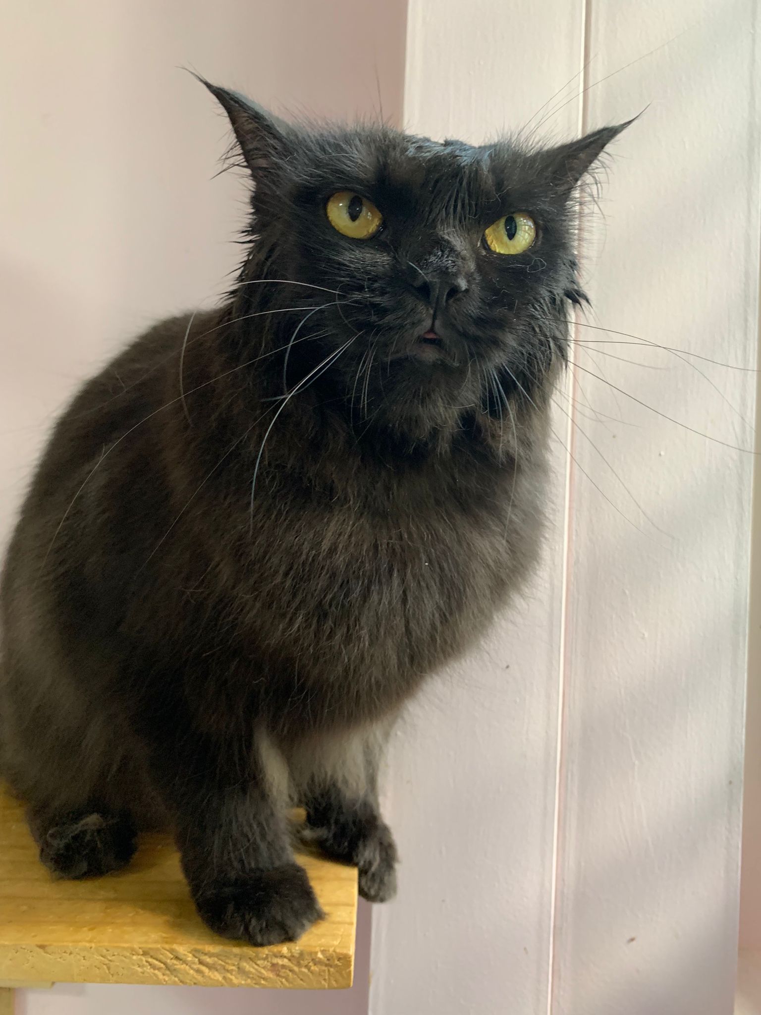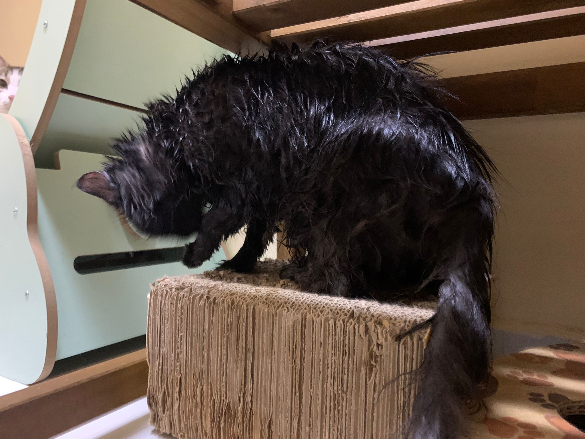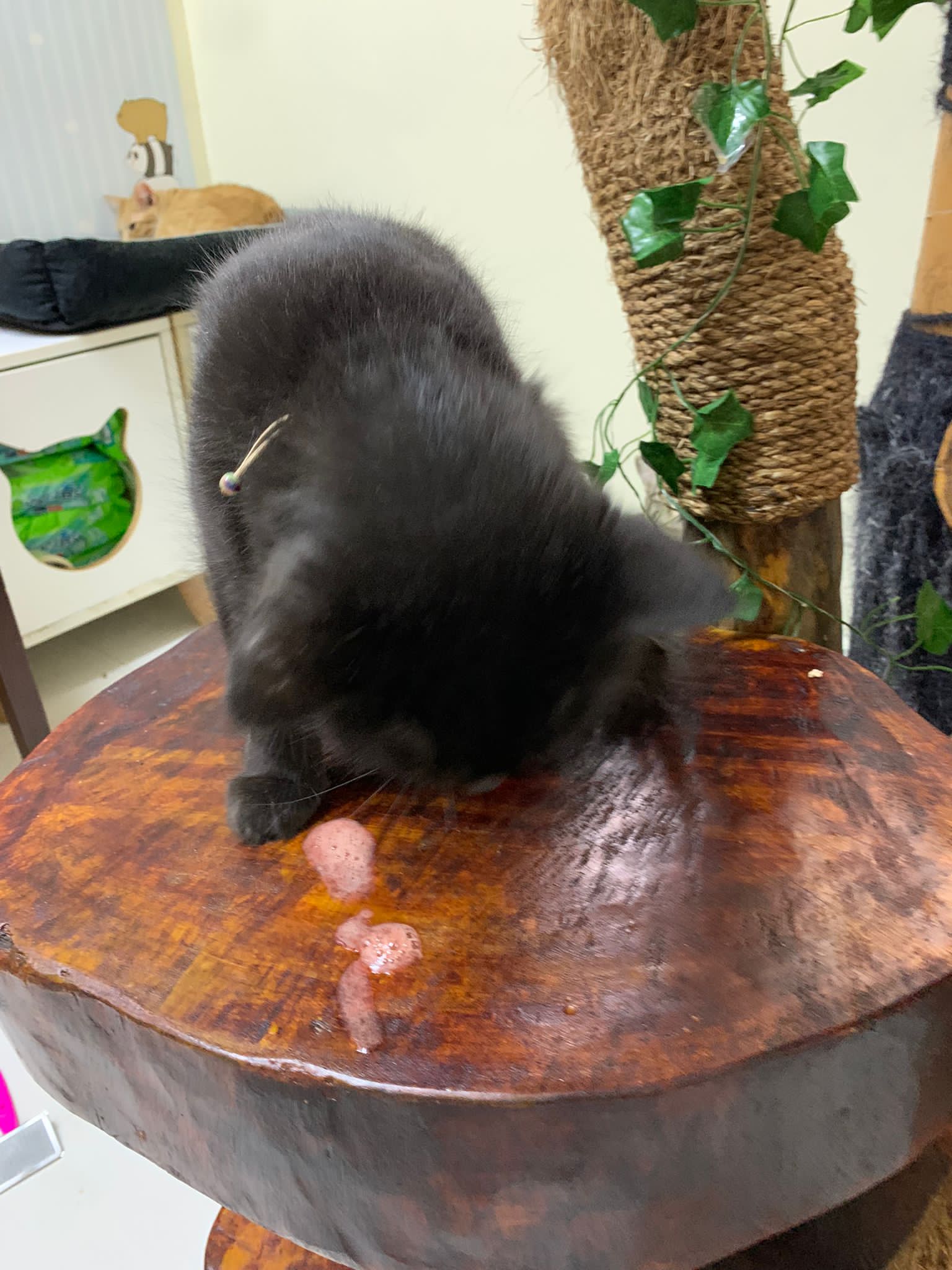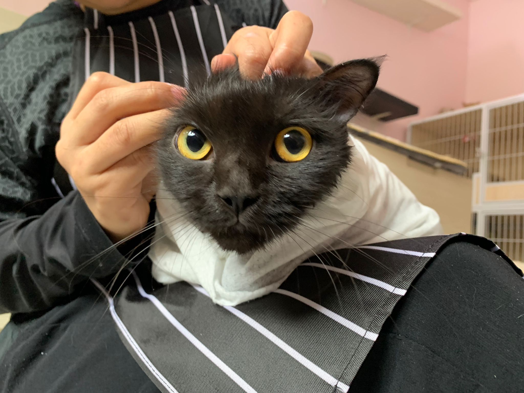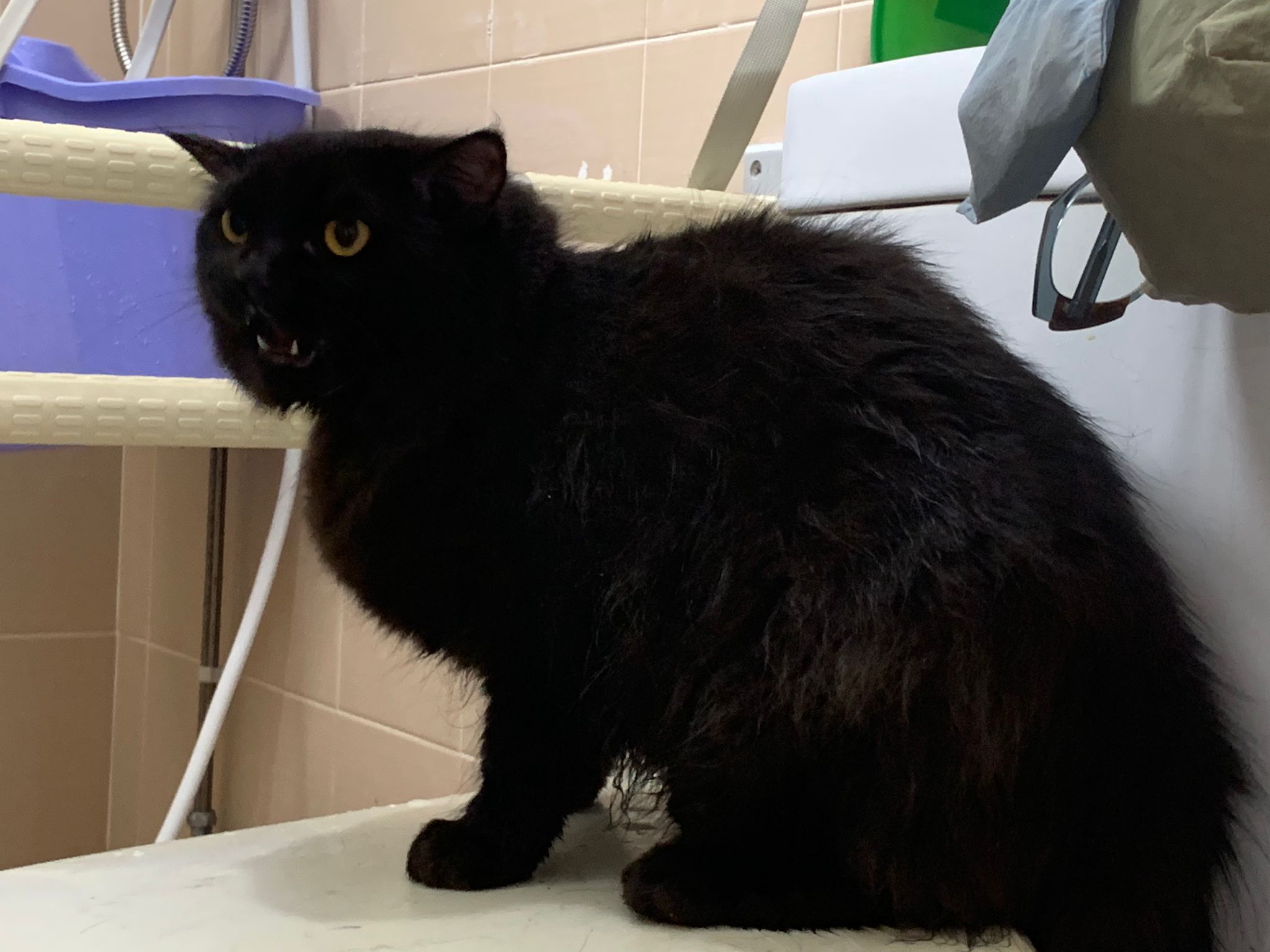 Still quite ok in shaving but did struggle la. Cut short. Tao came near and she hiss at tao. But she didn’t angry or fierce to human. got some scars on body. Scratch groomer when didi come near. Pee all over the groomer. clean up her cage and told her Tmr free roam alr. Drying still quite ok. Stay in cage, monitor see the rest. Groom herself. Given a b12 jab.