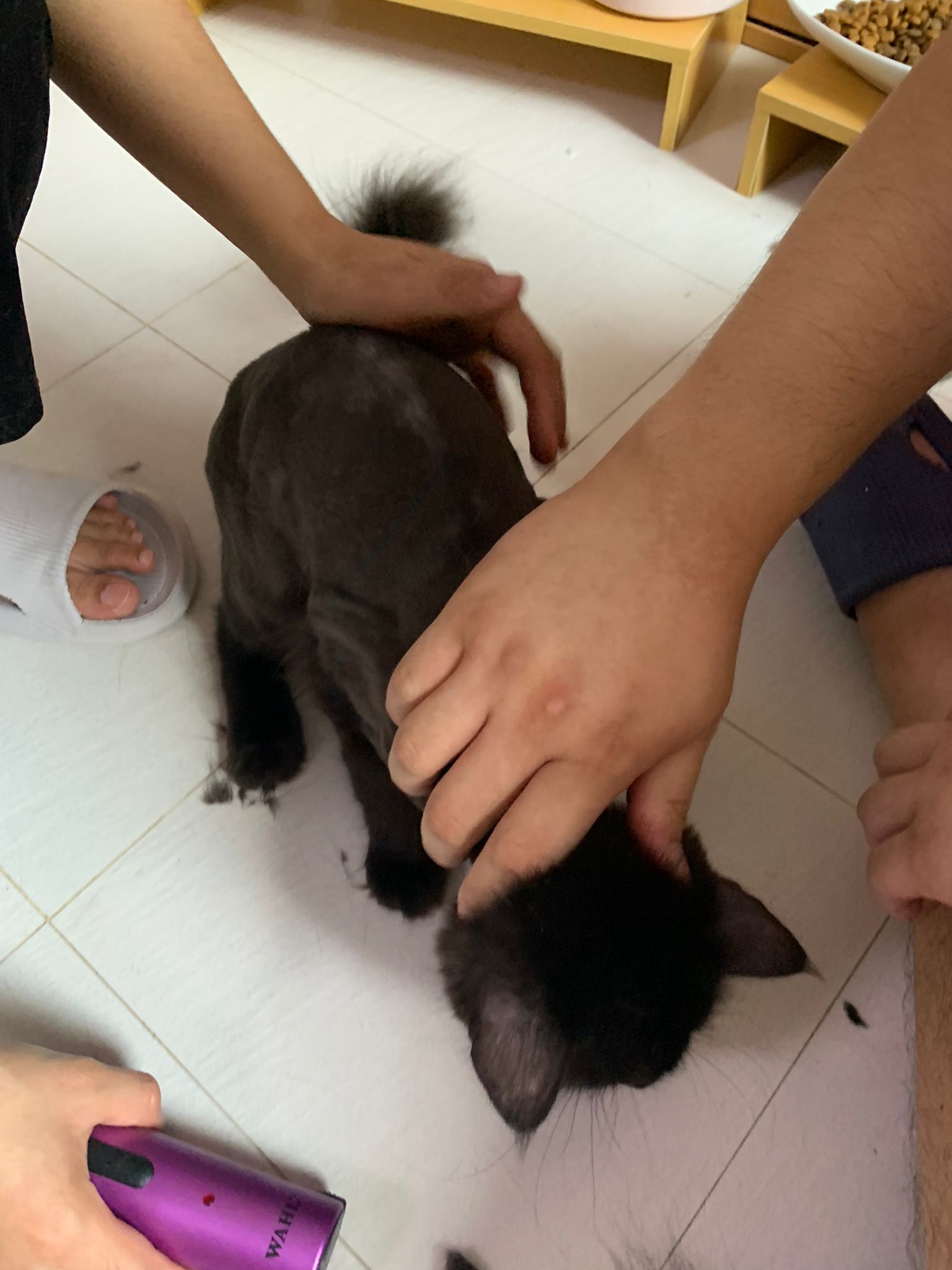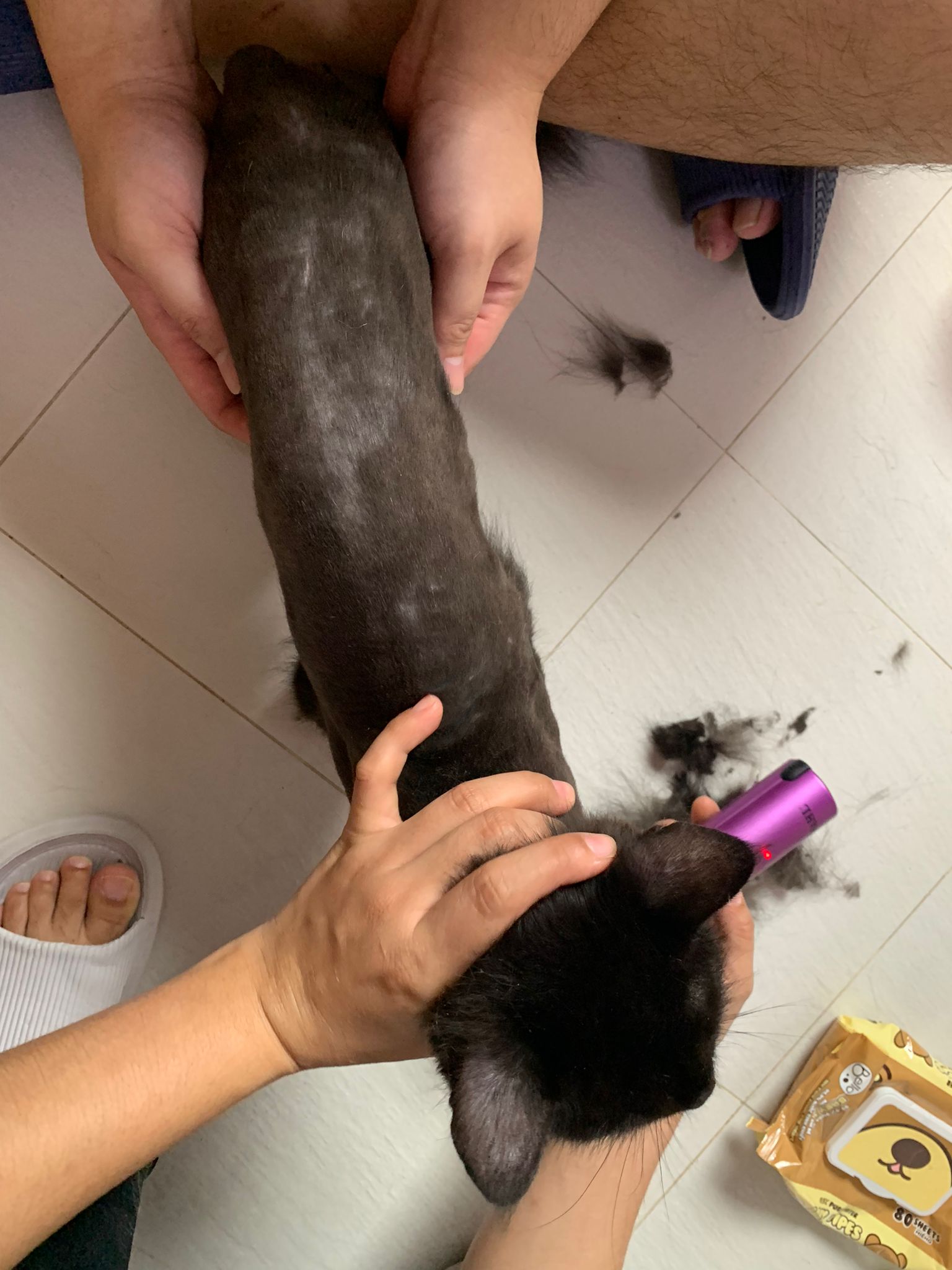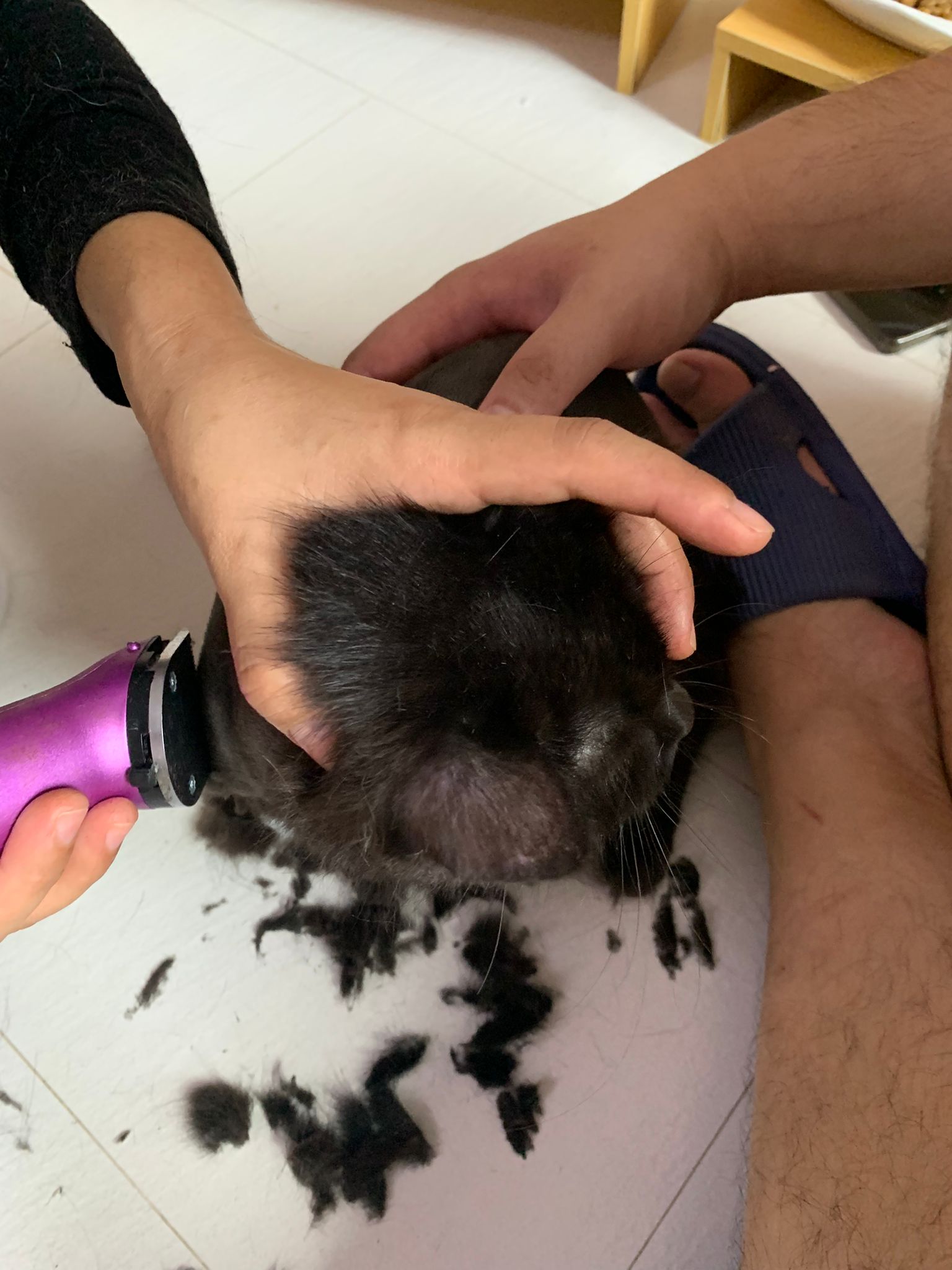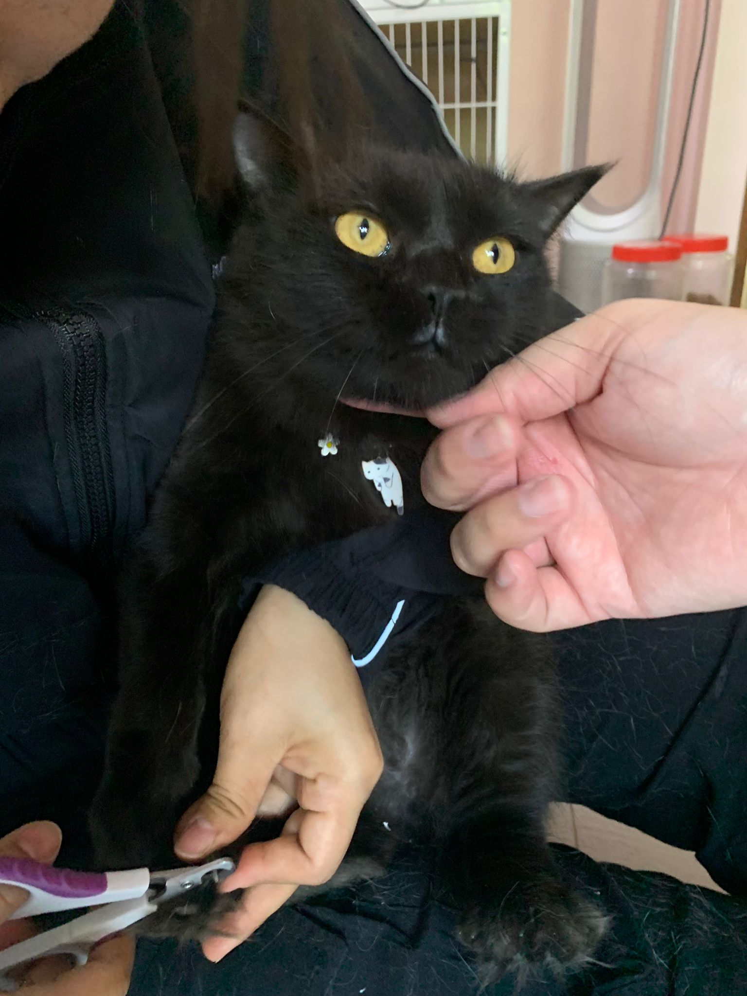 11.51am: the difficult is done – nails. Ears cleaned and paw fur shaved so she is clean and near. I think later shower w water no issue le 🙂 Carrara understand malay de.