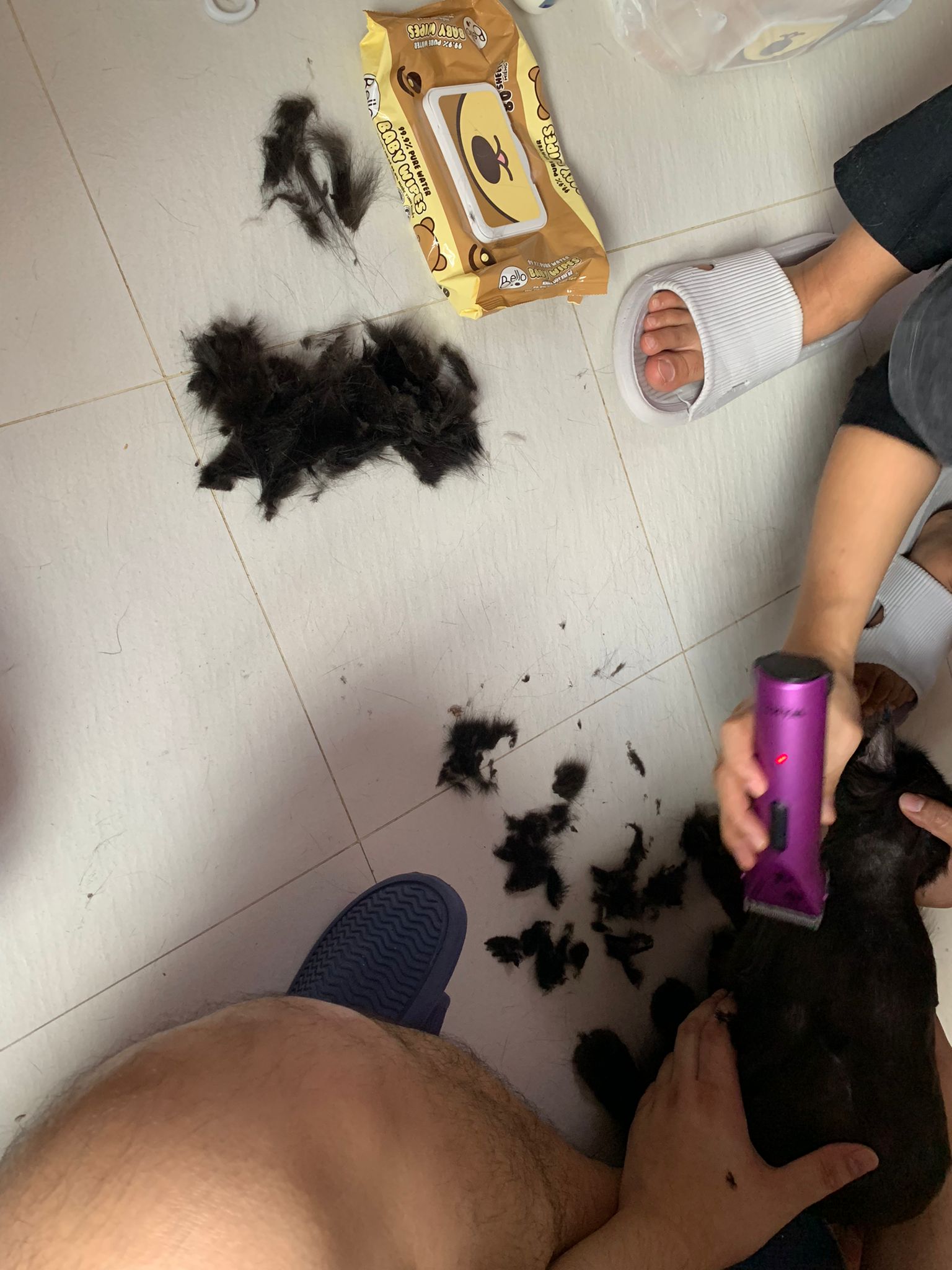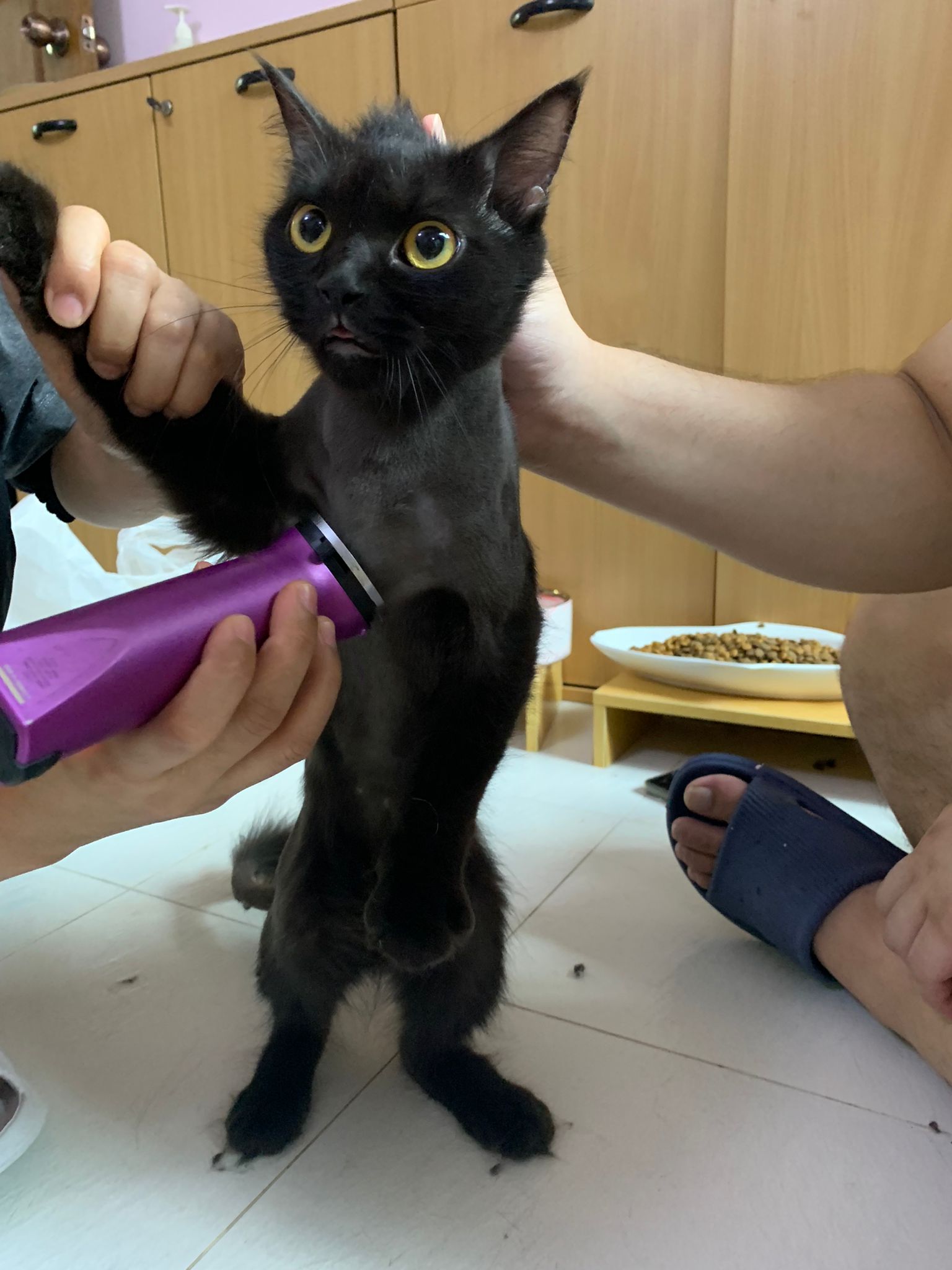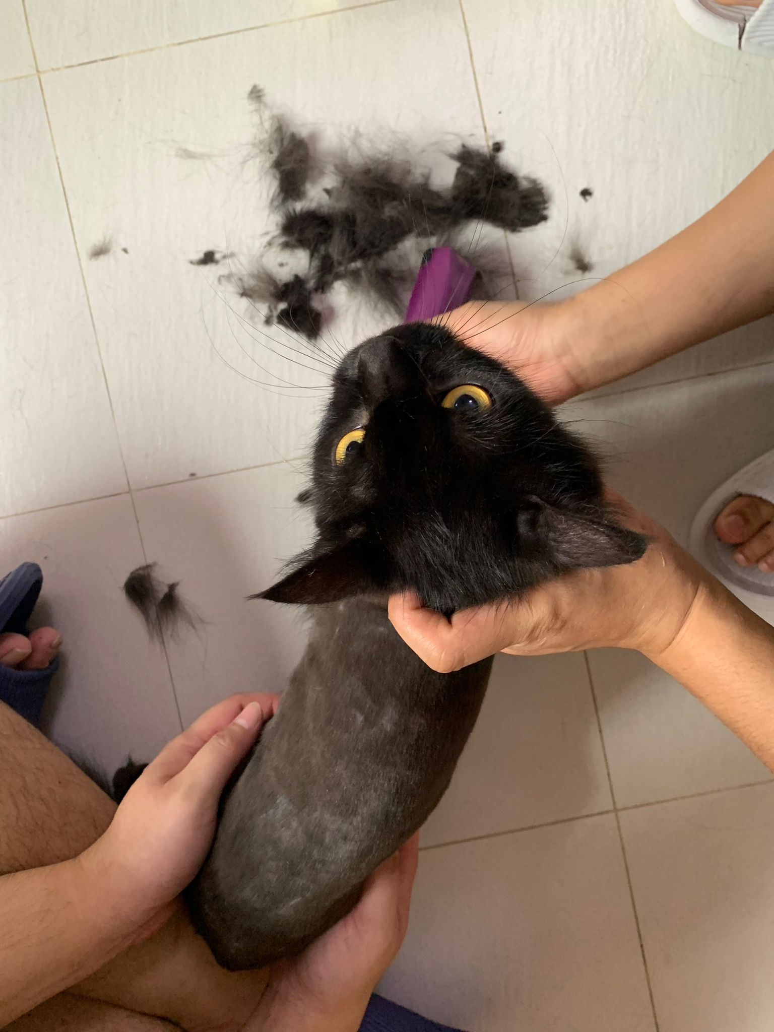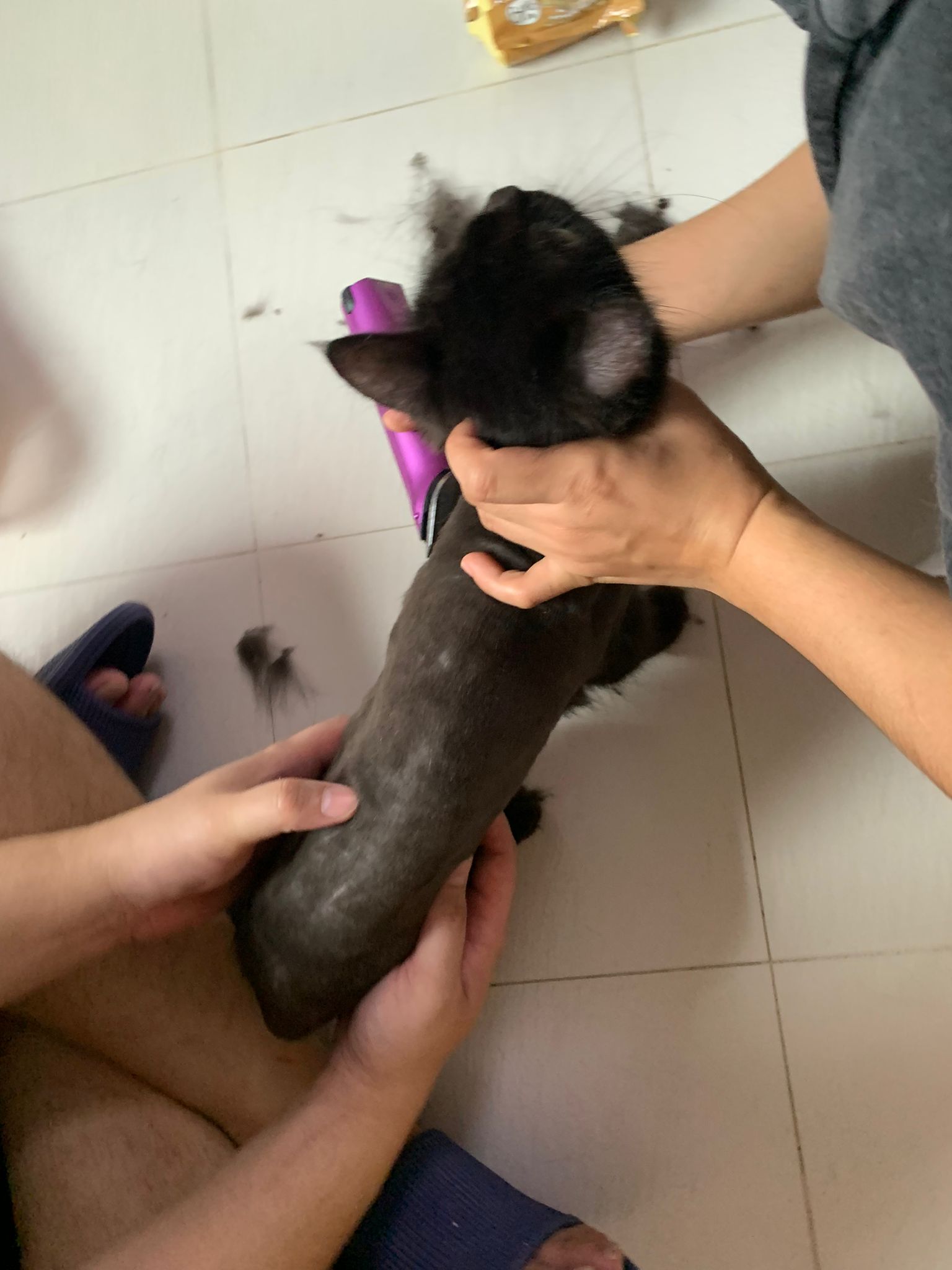 11.51am: the difficult is done – nails. Ears cleaned and paw fur shaved so she is clean and near. I think later shower w water no issue le 🙂 Carrara understand malay de.