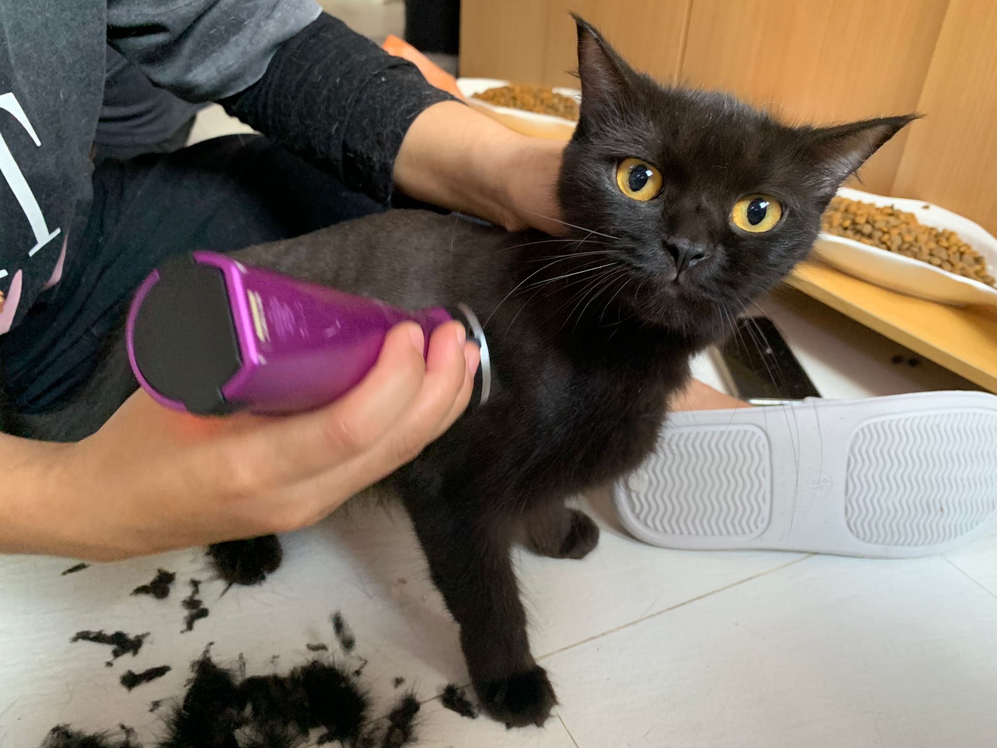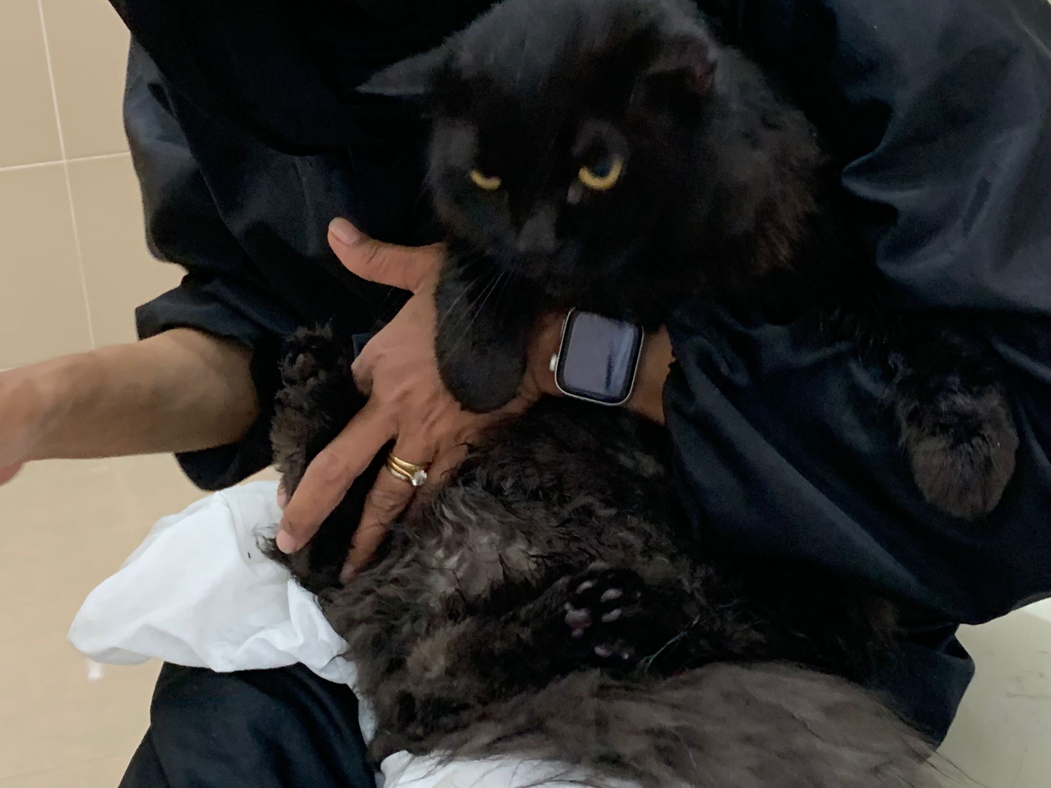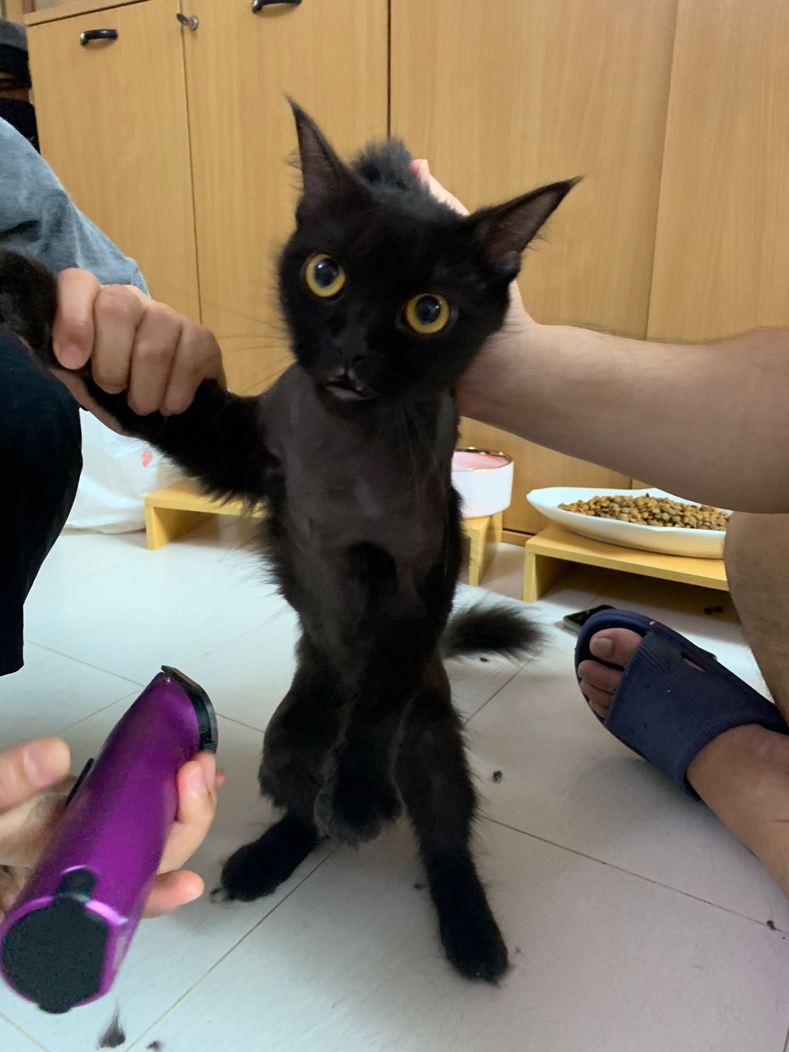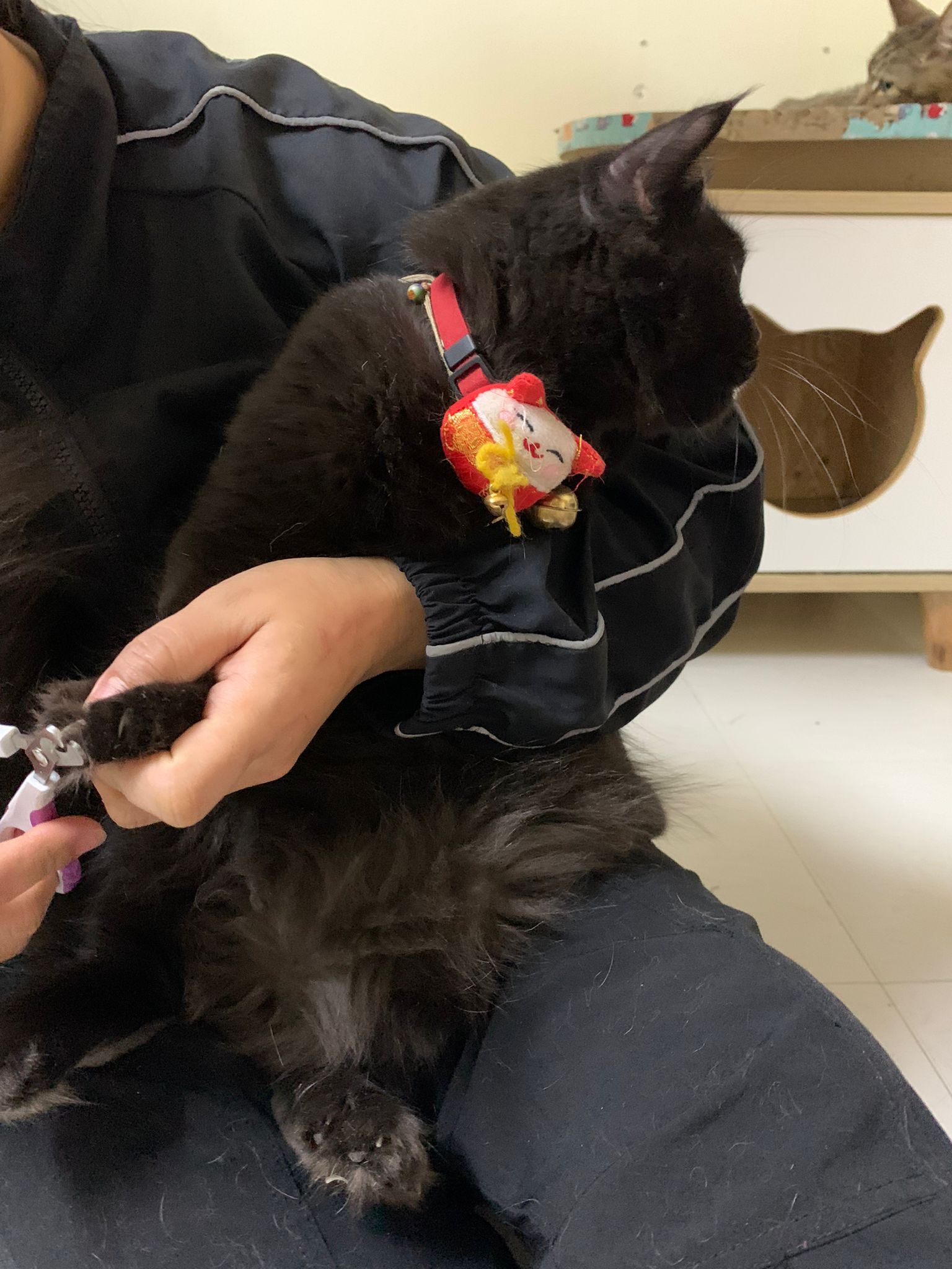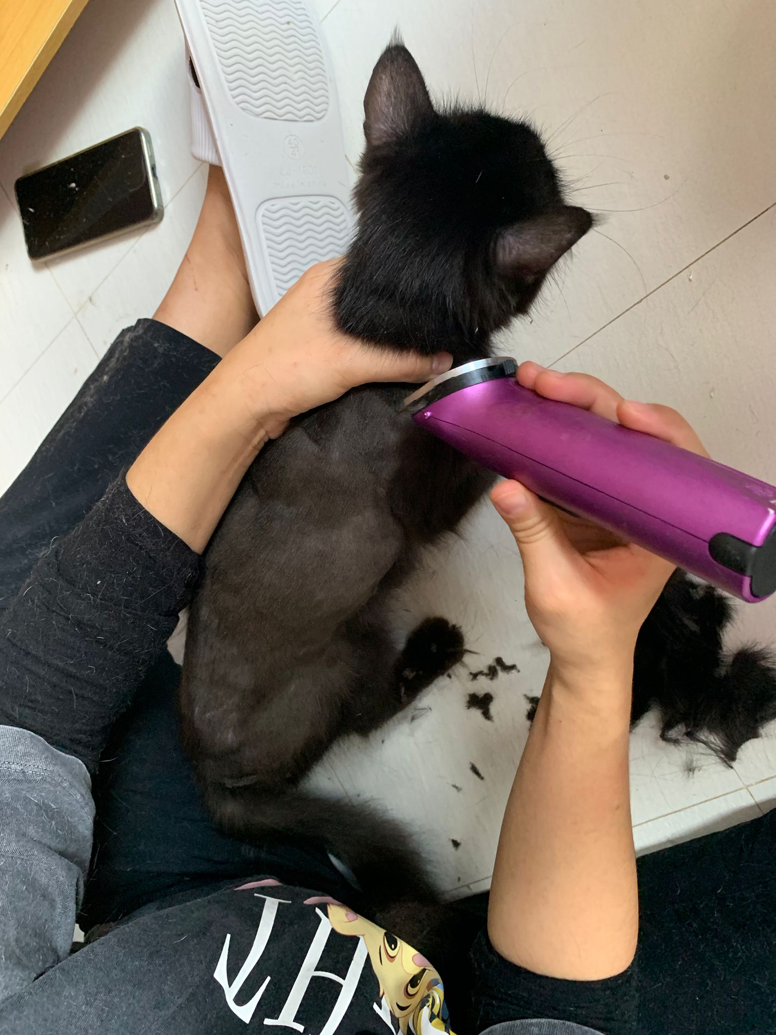 11.51am: the difficult is done – nails. Ears cleaned and paw fur shaved so she is clean and near. I think later shower w water no issue le 🙂 Carrara understand malay de.