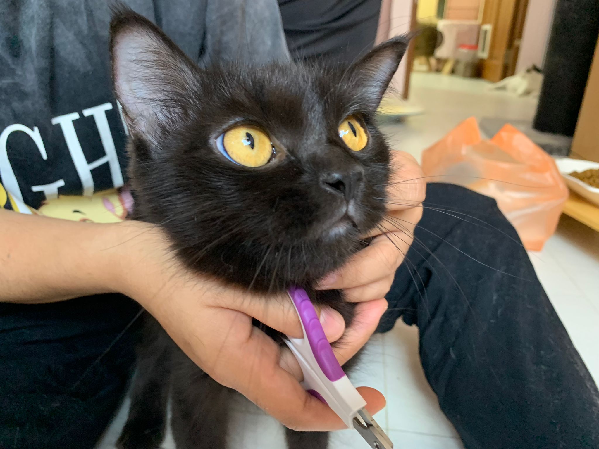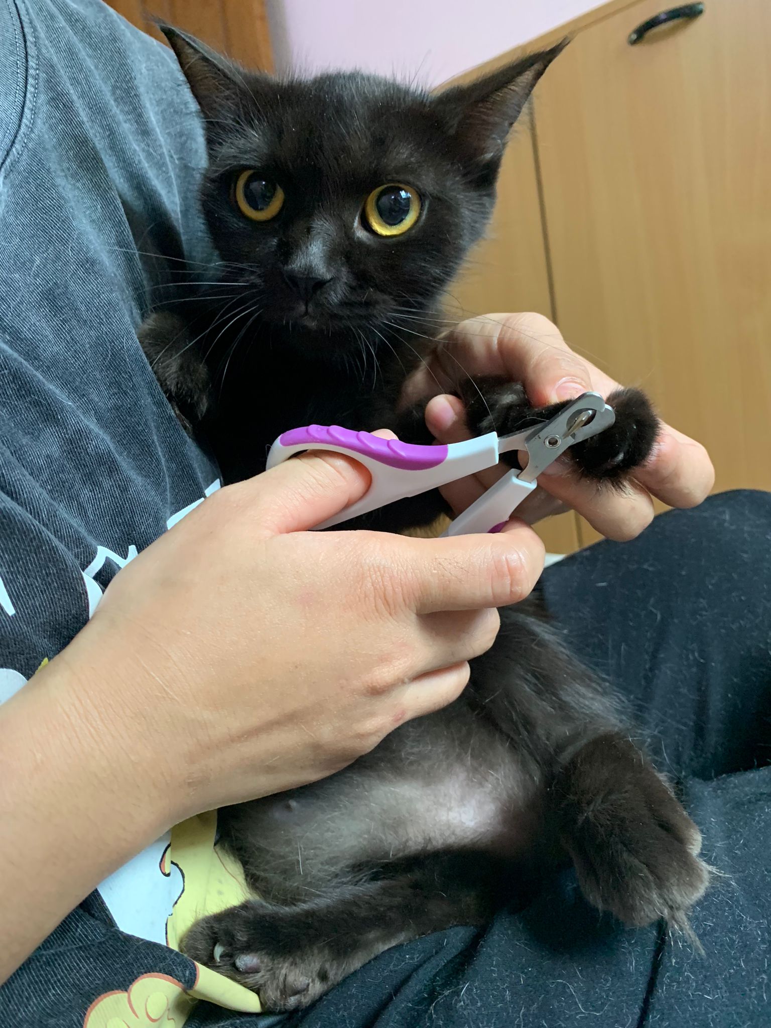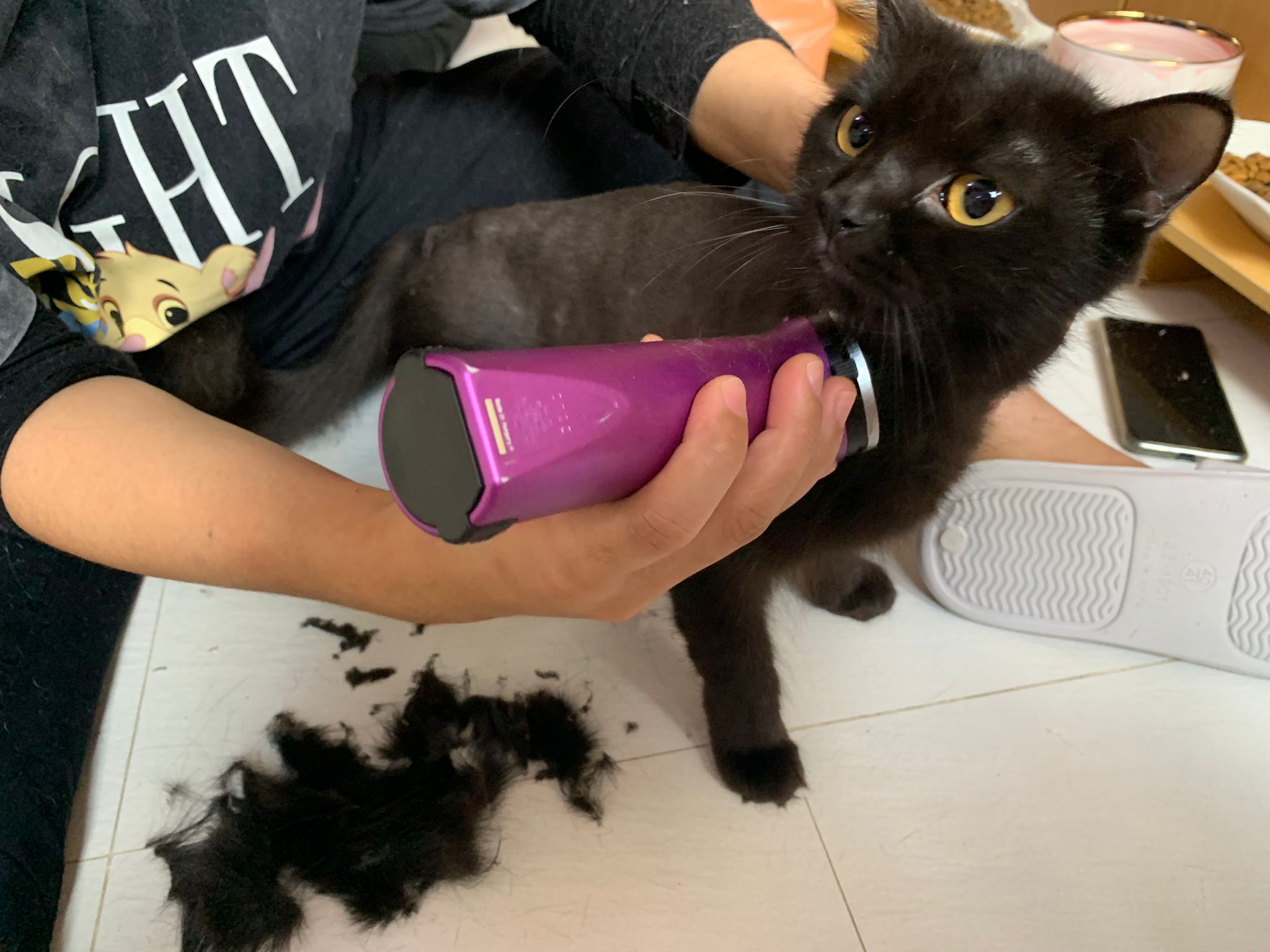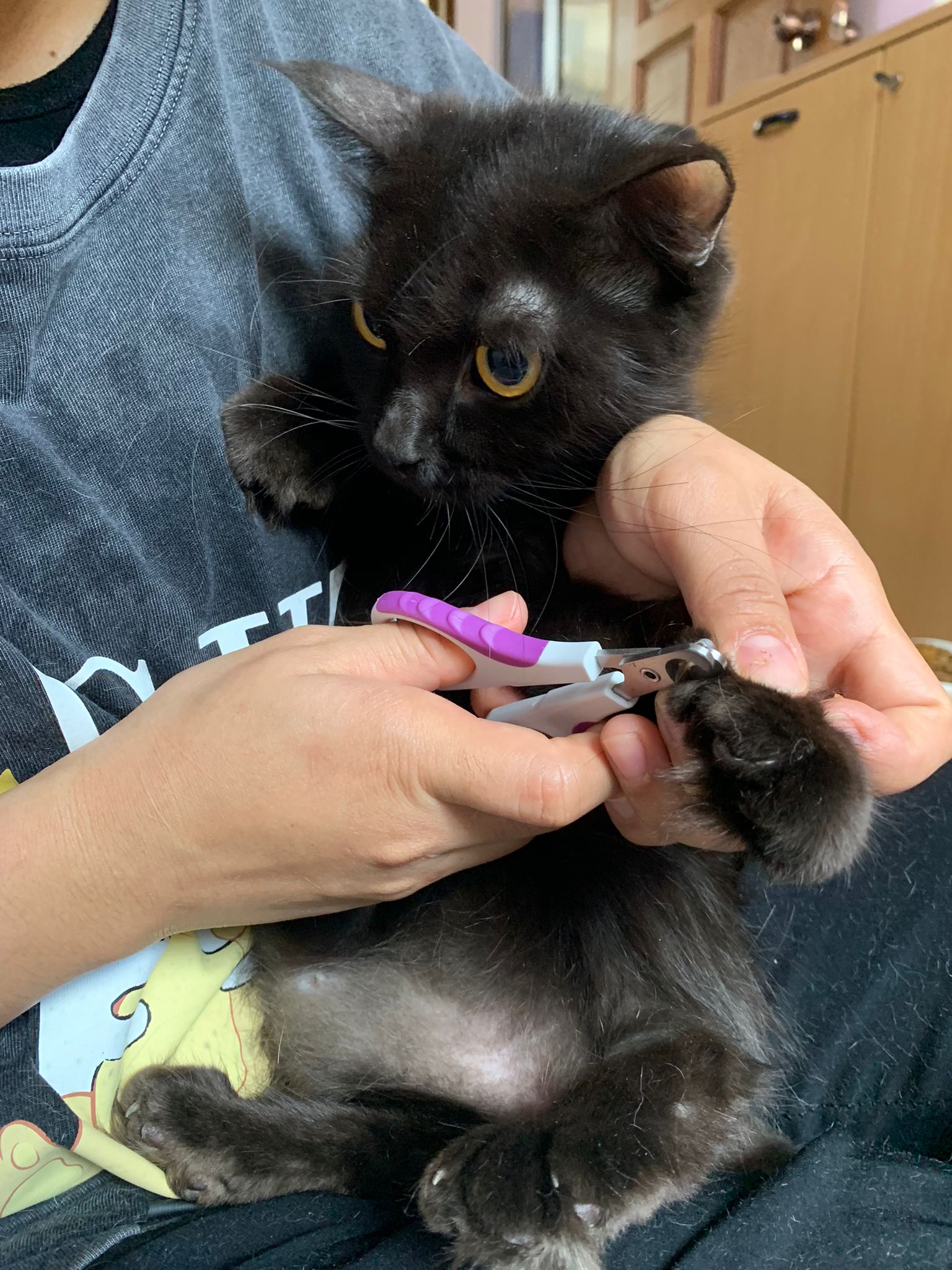 11.51am: the difficult is done – nails. Ears cleaned and paw fur shaved so she is clean and near. I think later shower w water no issue le 🙂 Carrara understand malay de.