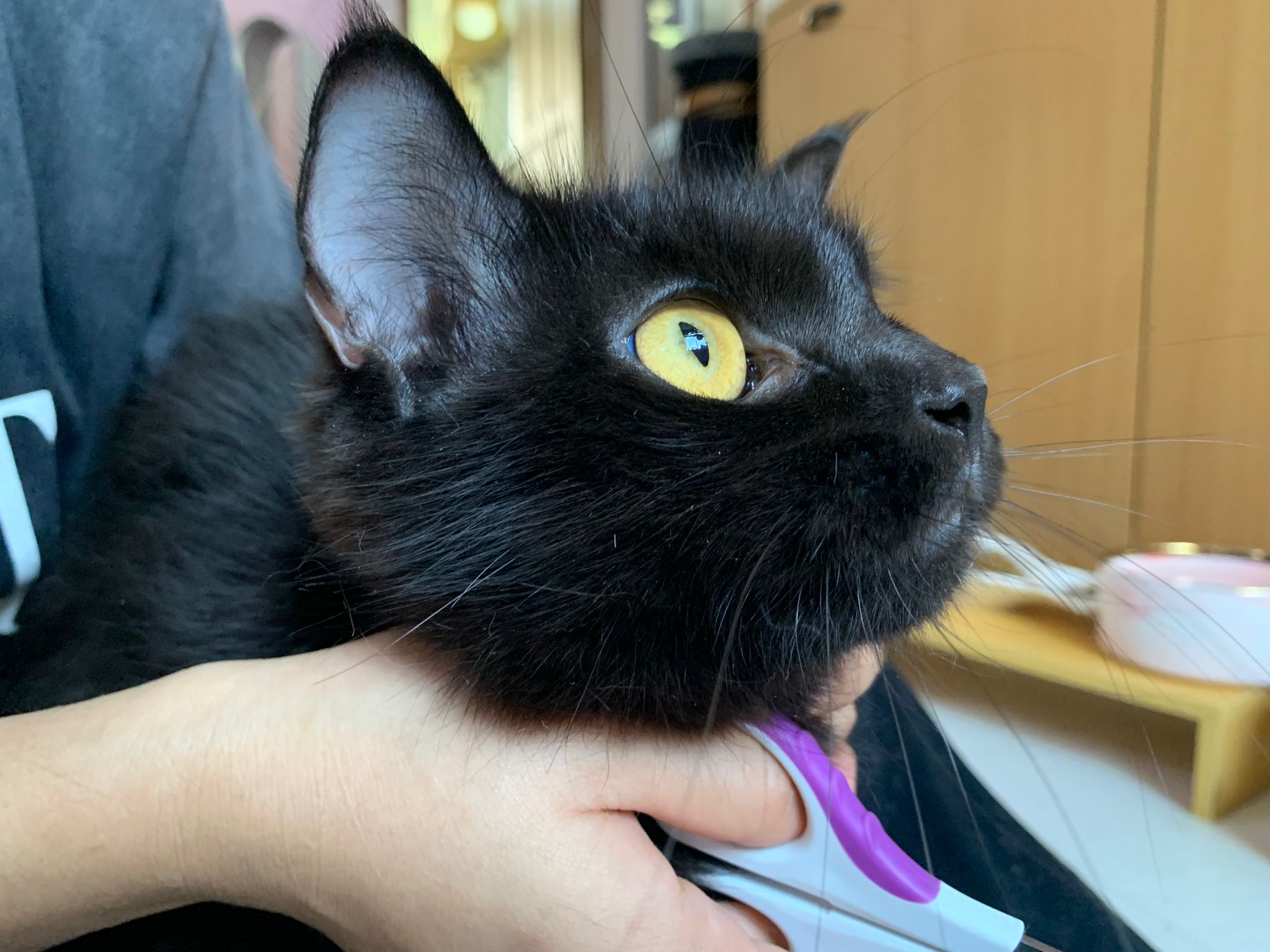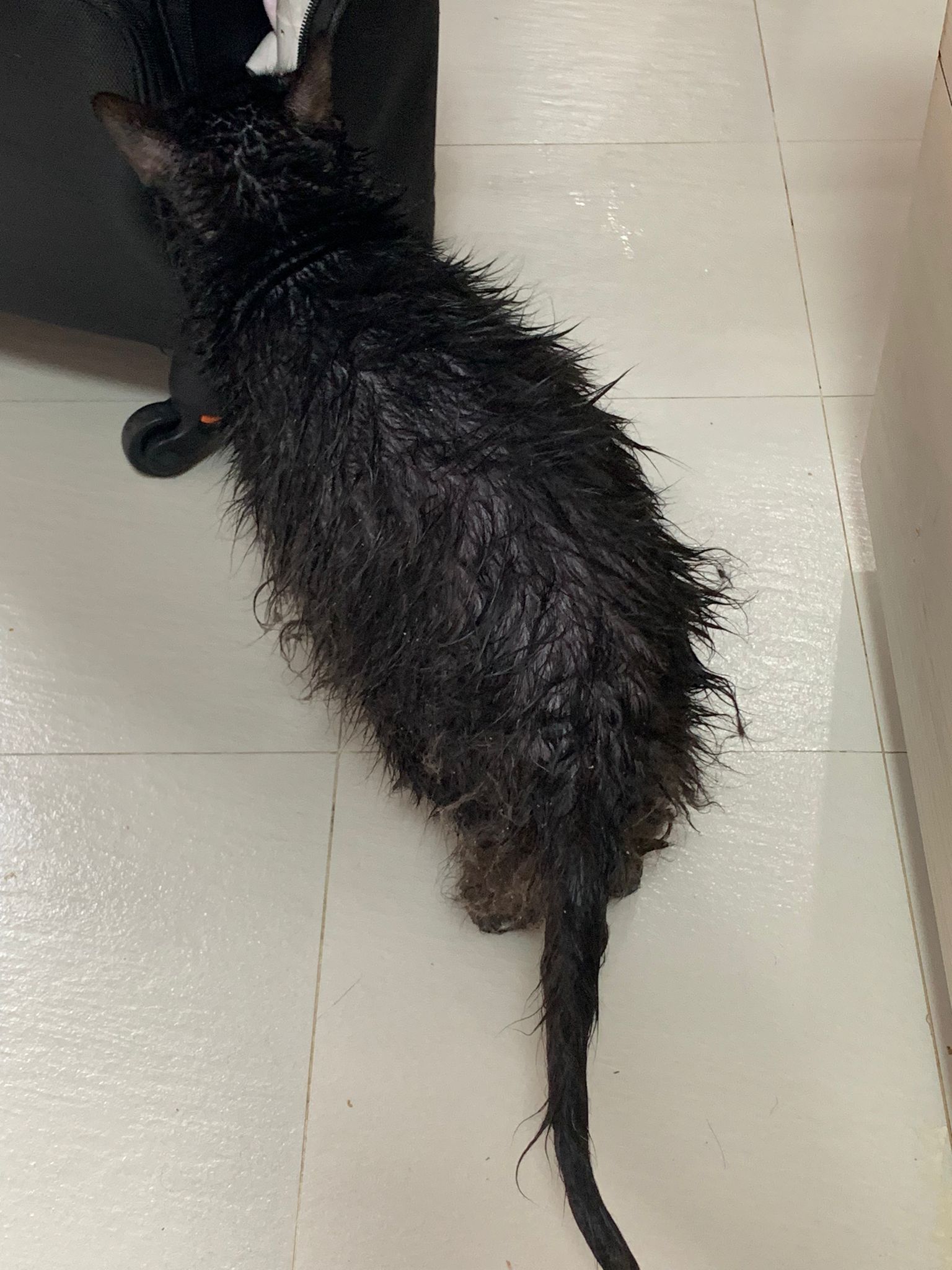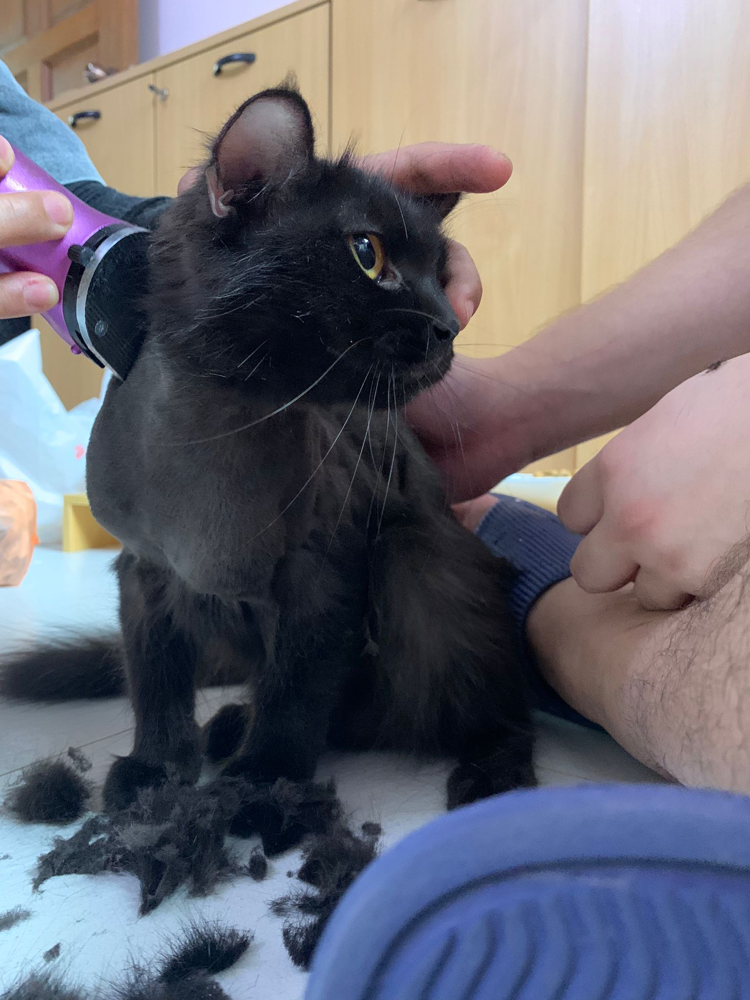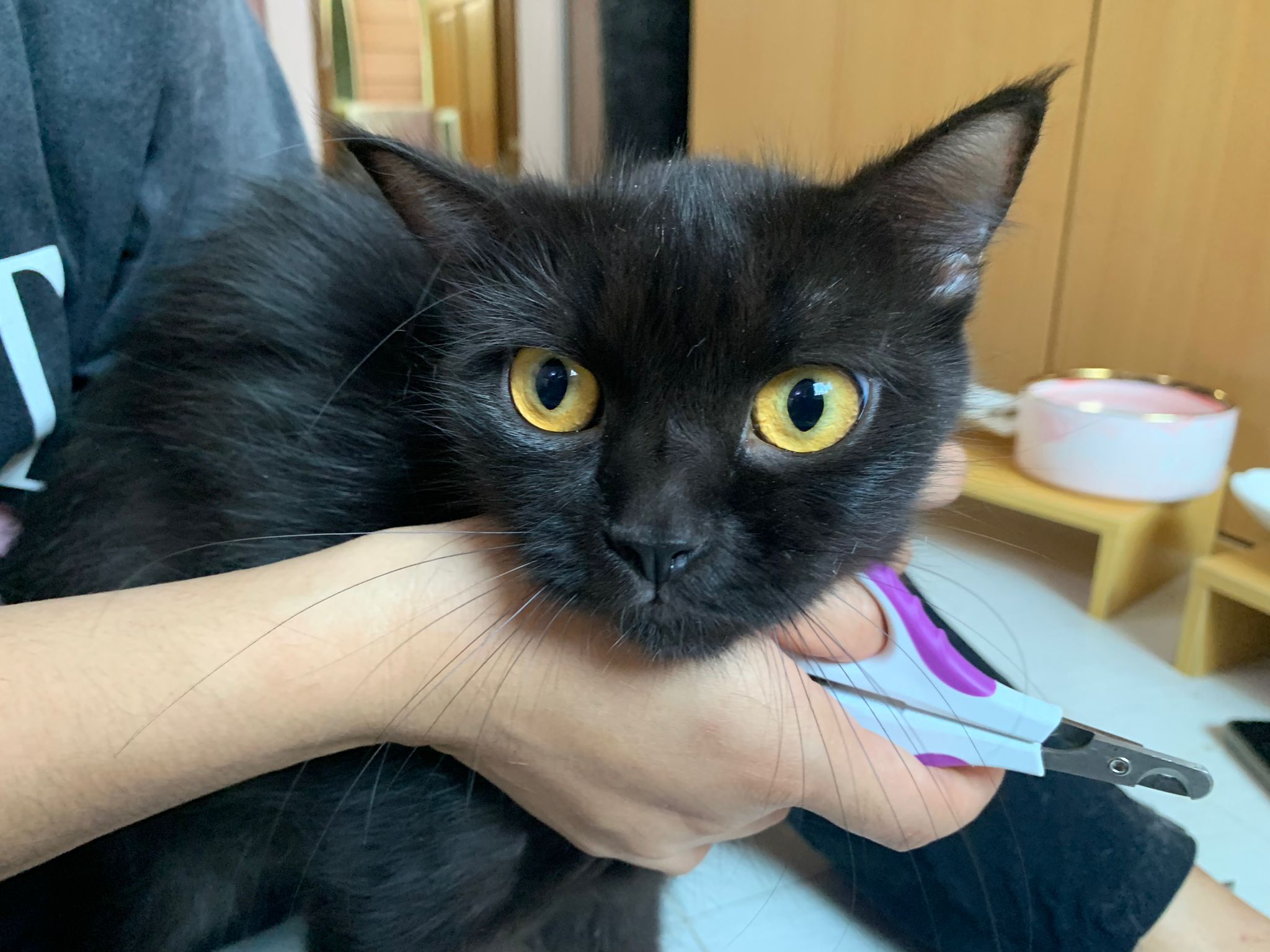 11.51am: the difficult is done – nails. Ears cleaned and paw fur shaved so she is clean and near. I think later shower w water no issue le 🙂 Carrara understand malay de.