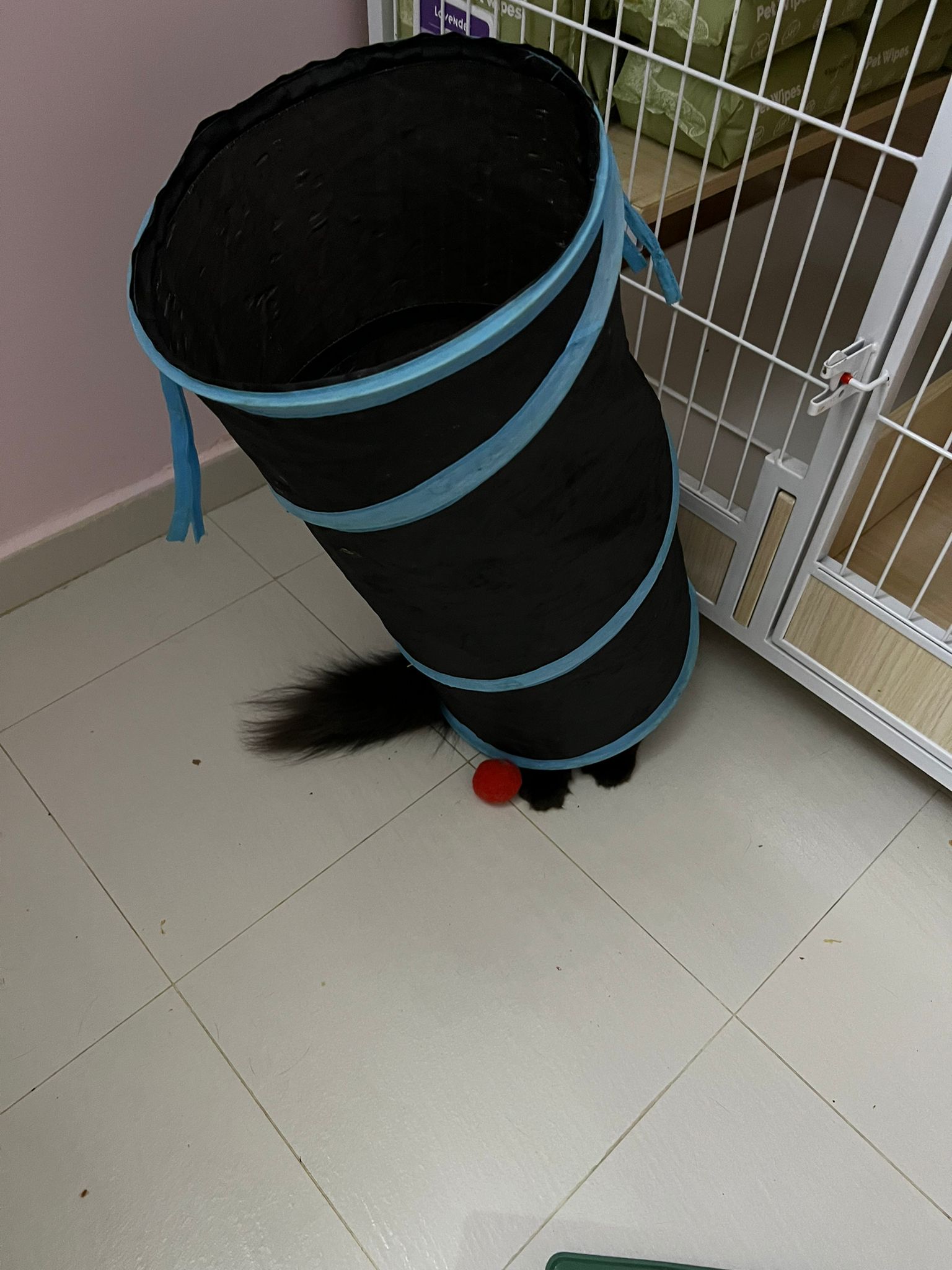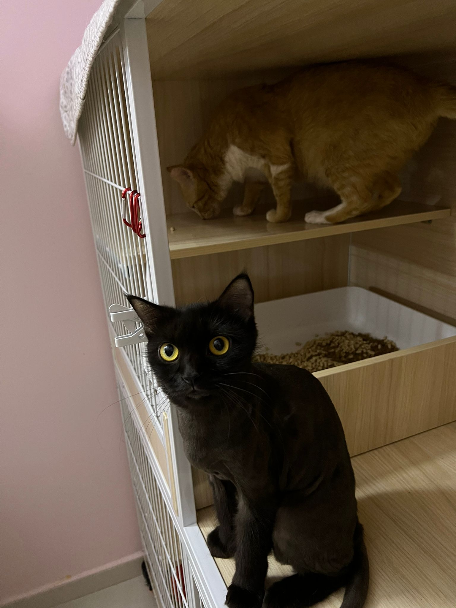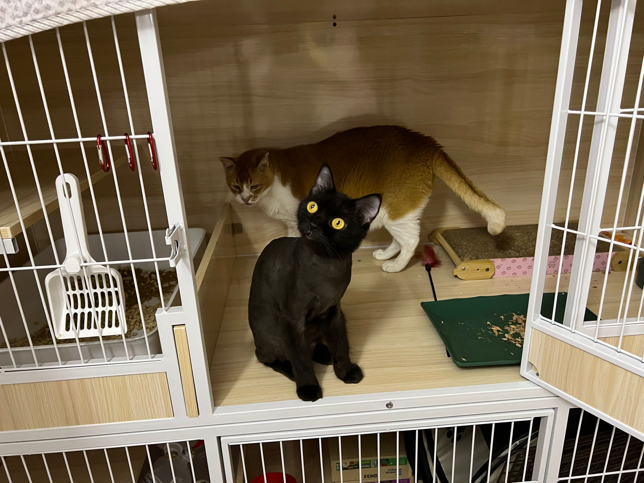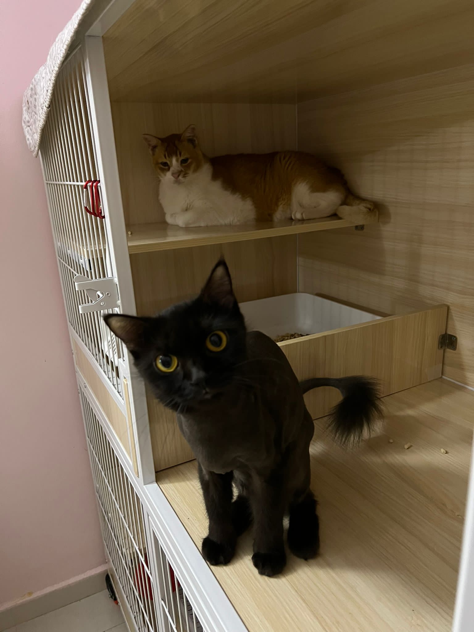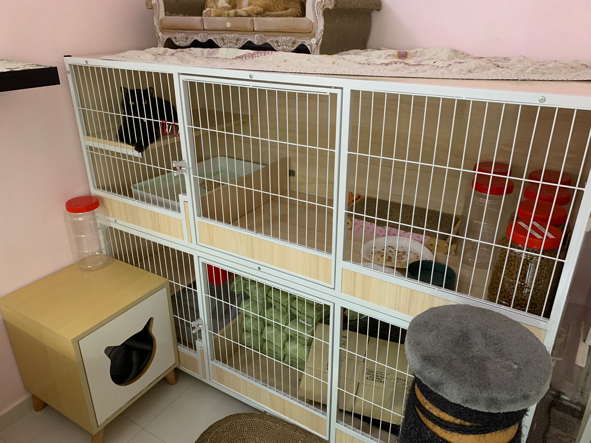back in 猫房 – go straight to toilet cos haven’t receive her results. I unpacked the whole iso cage to filter a space for her. I think I need to buy more cabinets and throw the ratten chair and sauna box to make way.