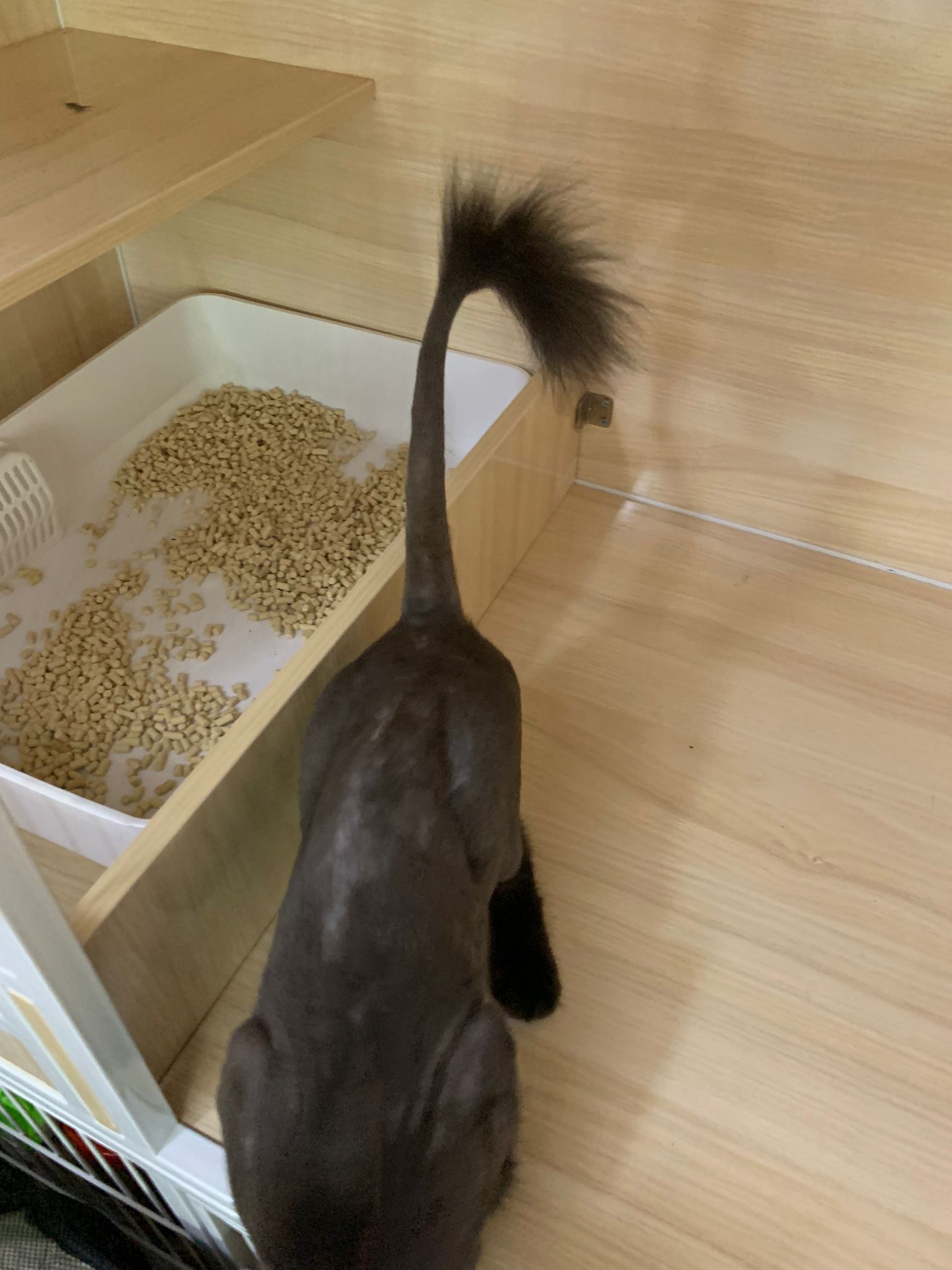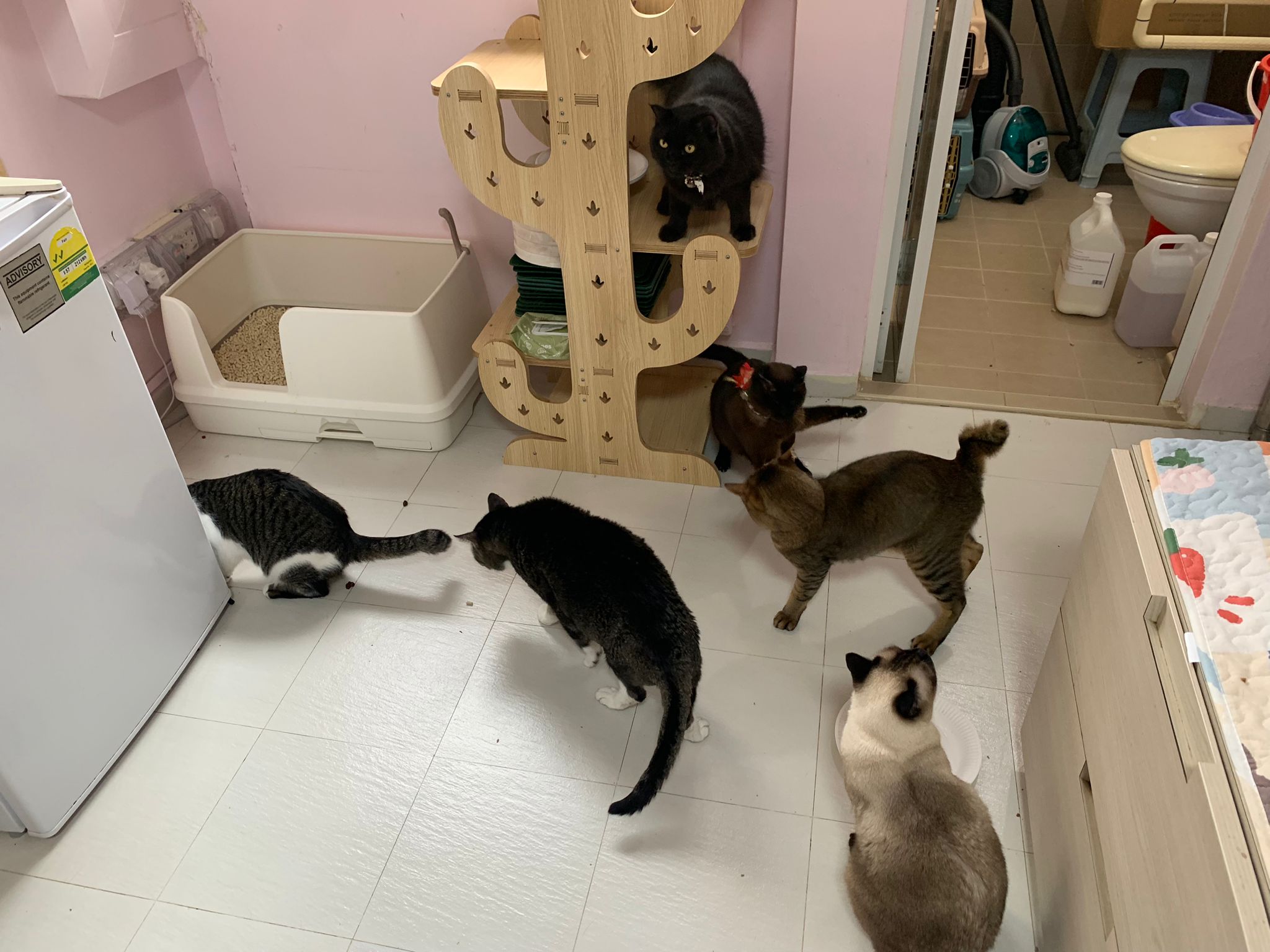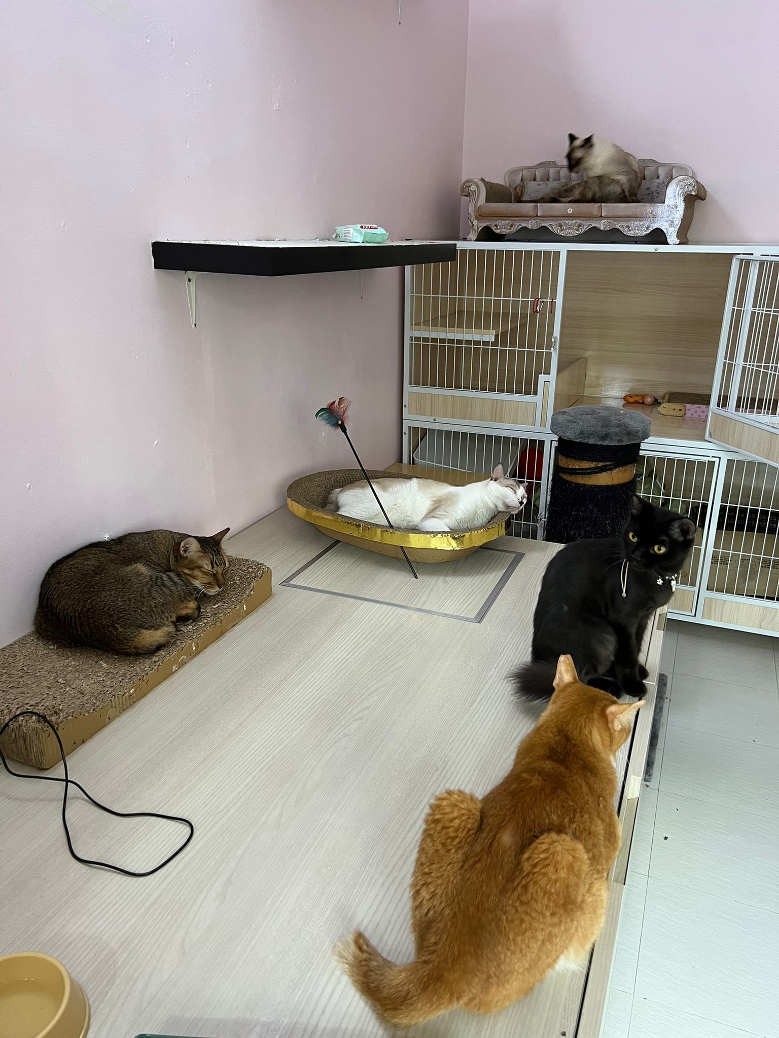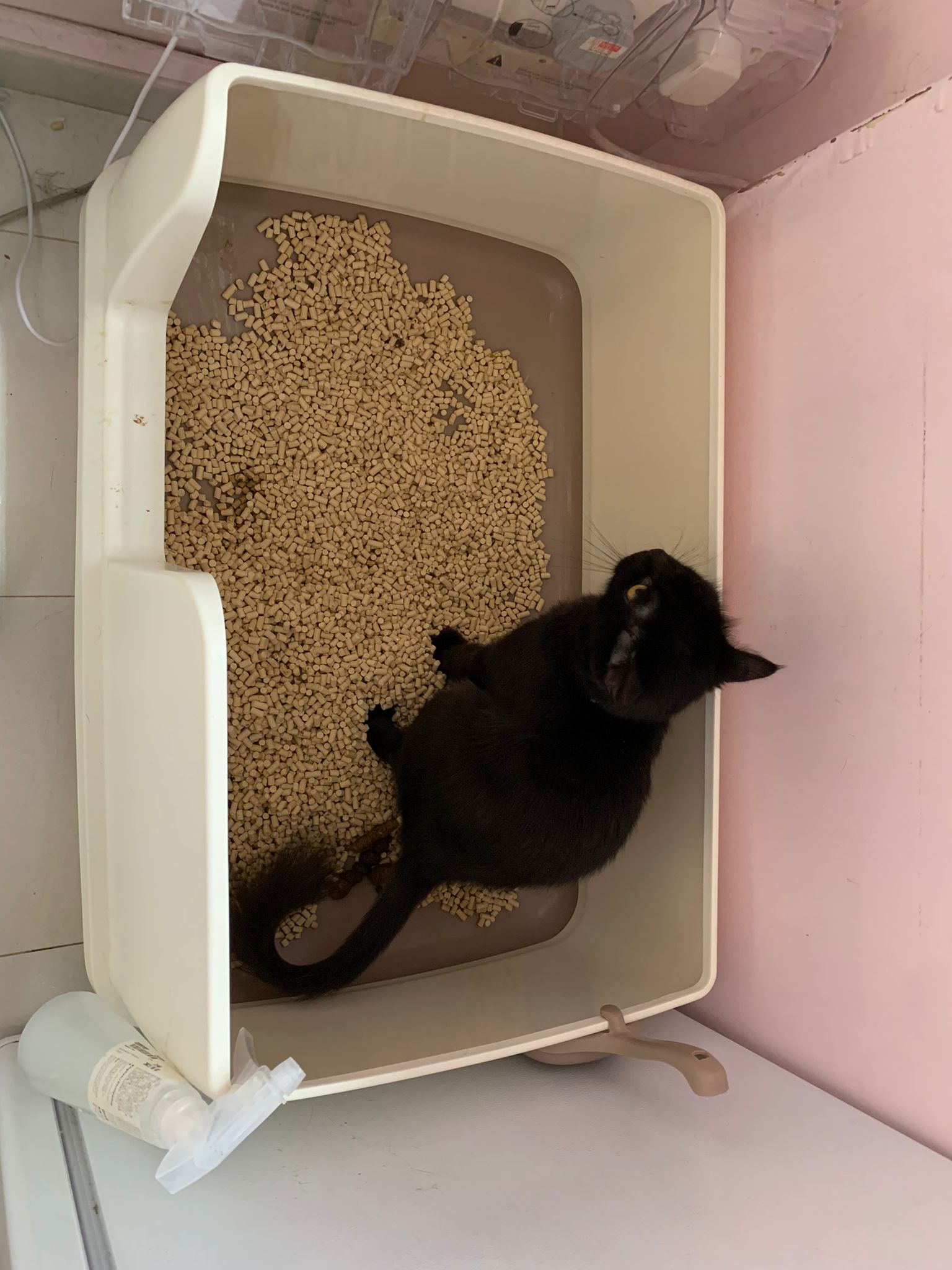 back in 猫房 – go straight to toilet cos haven’t receive her results. I unpacked the whole iso cage to filter a space for her. I think I need to buy more cabinets and throw the ratten chair and sauna box to make way.