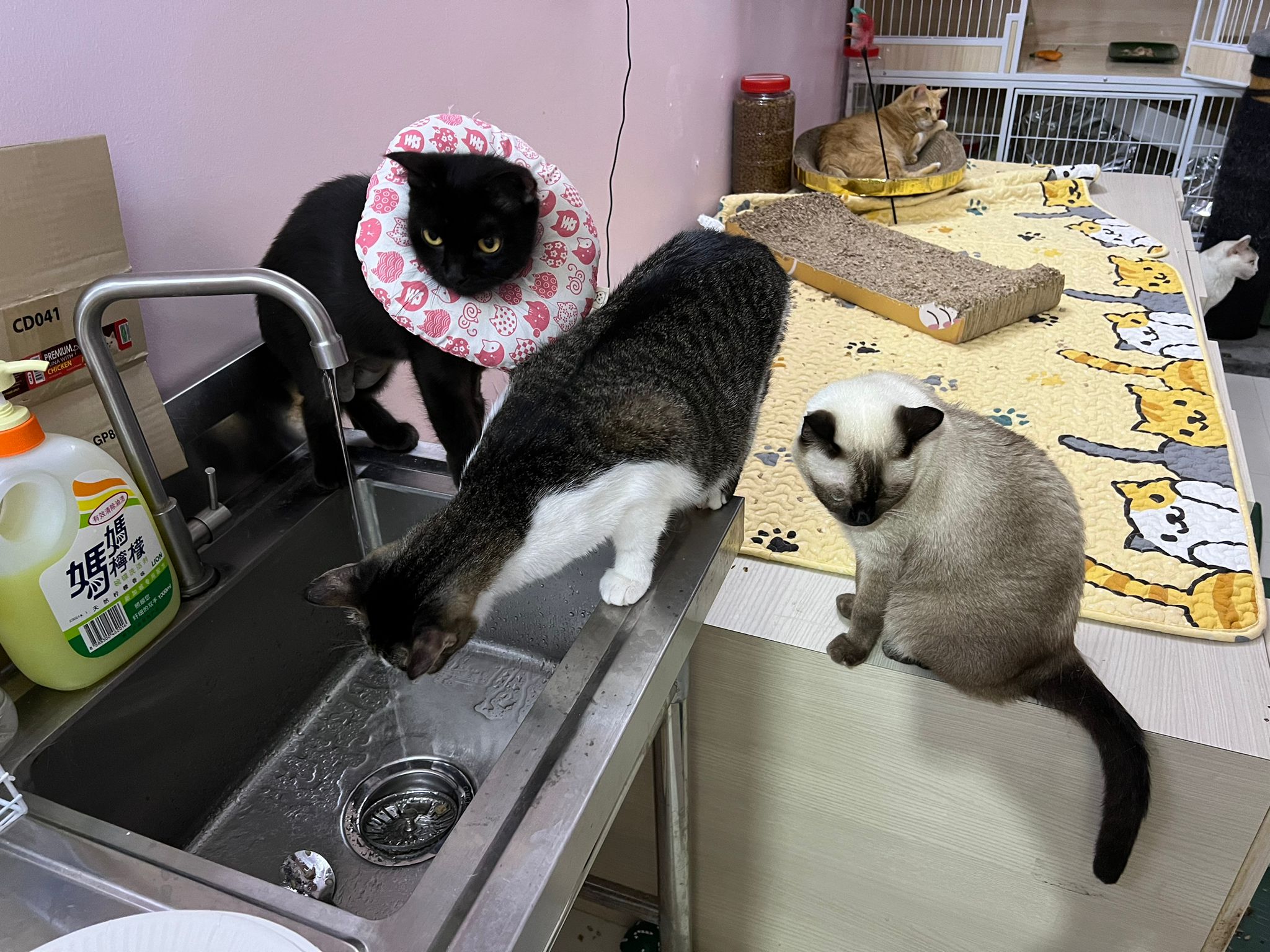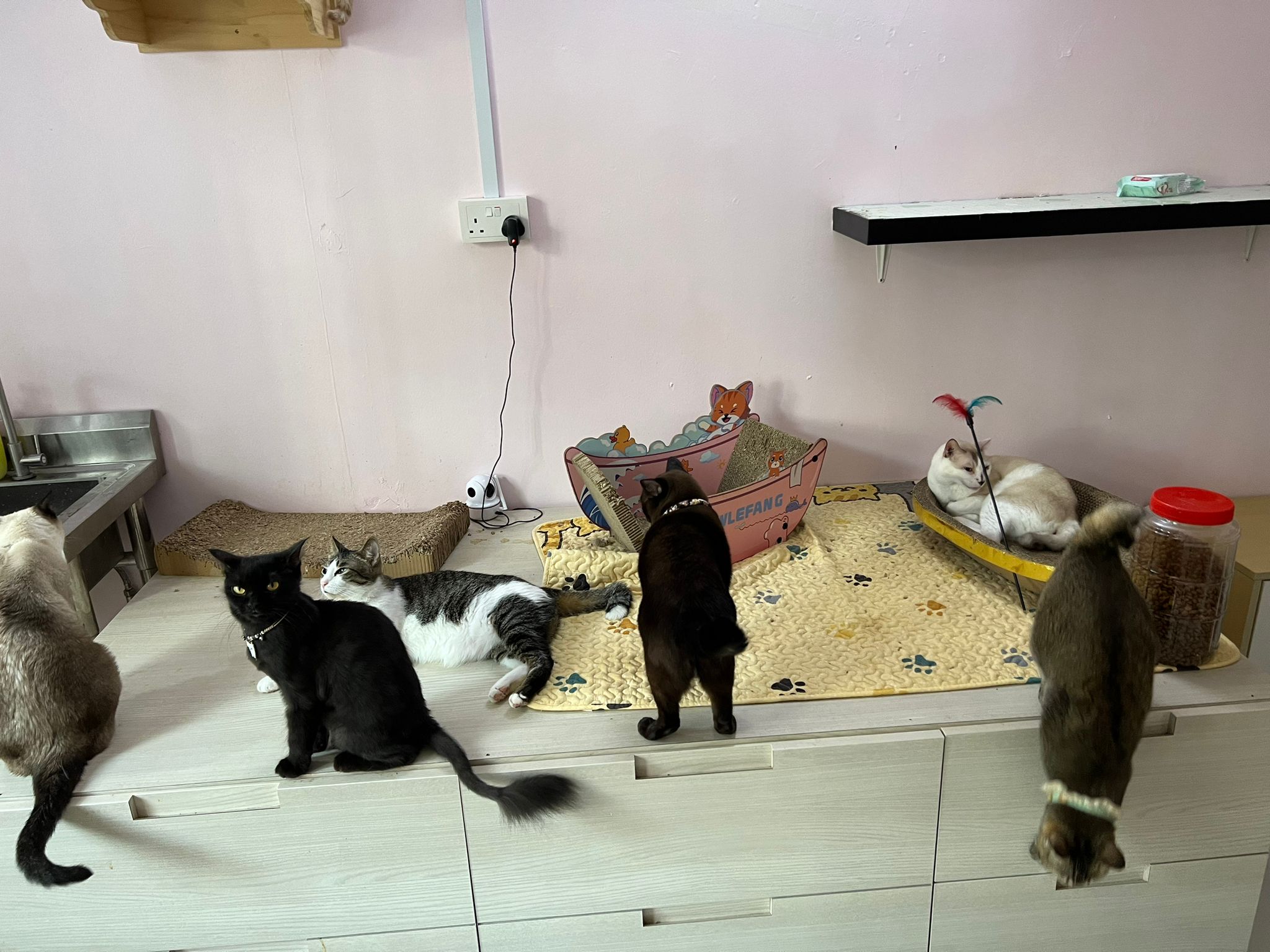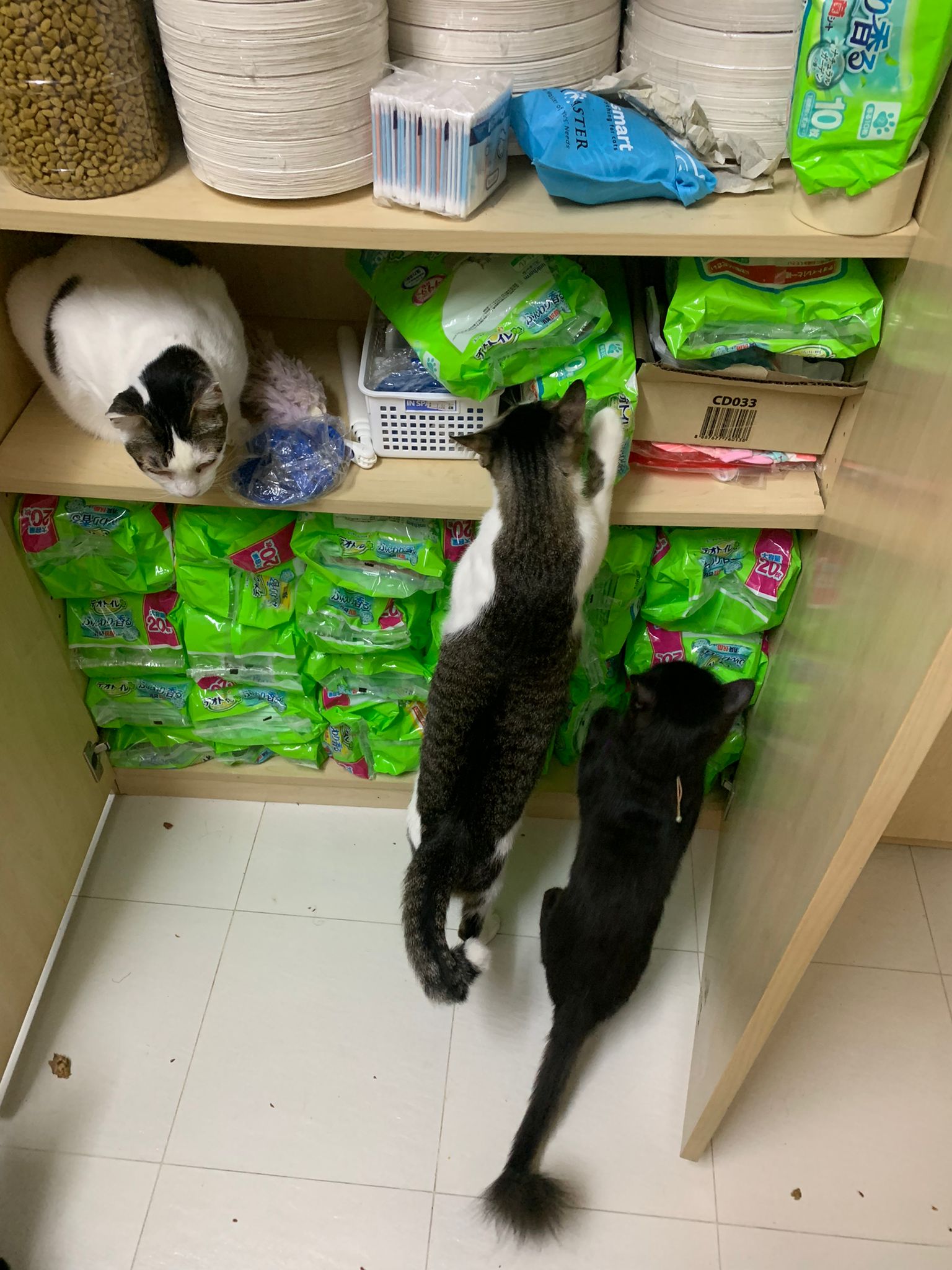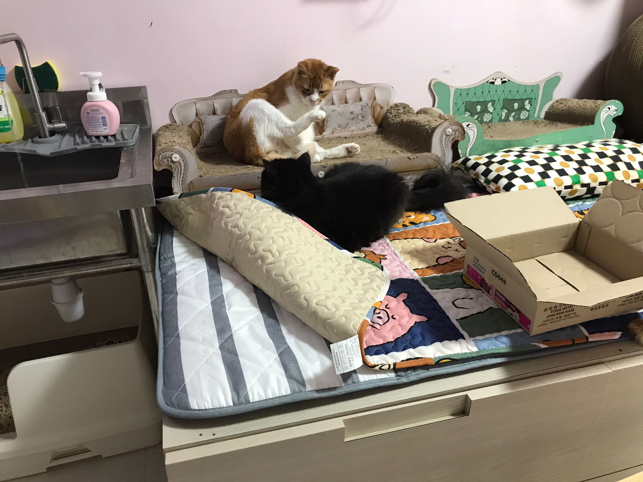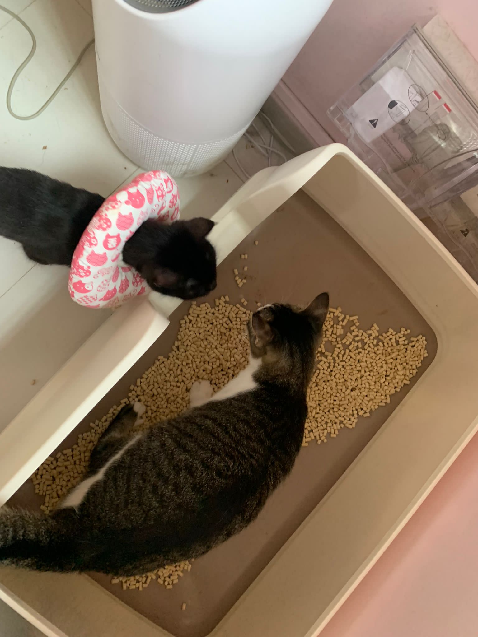 back in 猫房 – go straight to toilet cos haven’t receive her results. I unpacked the whole iso cage to filter a space for her. I think I need to buy more cabinets and throw the ratten chair and sauna box to make way.