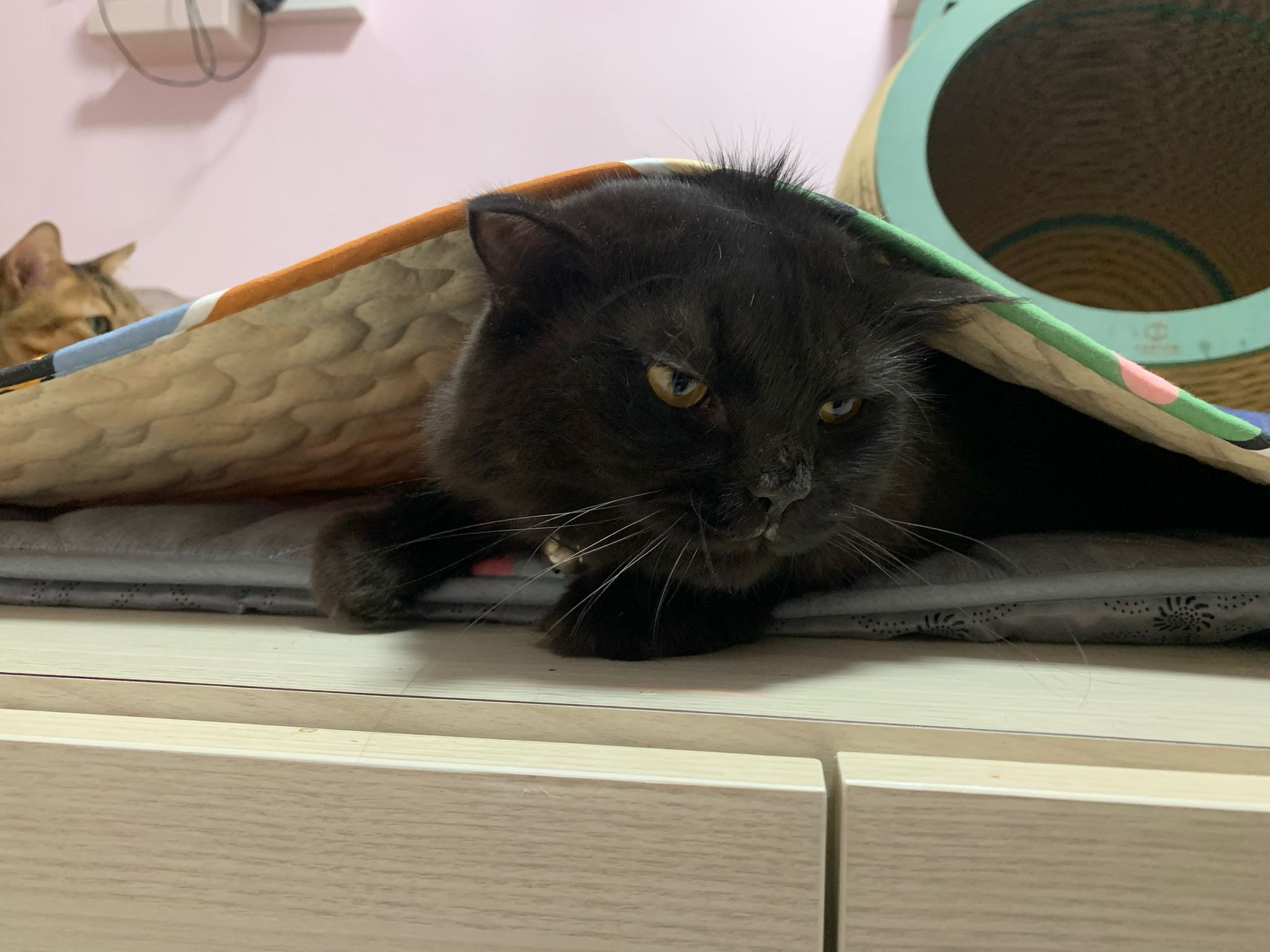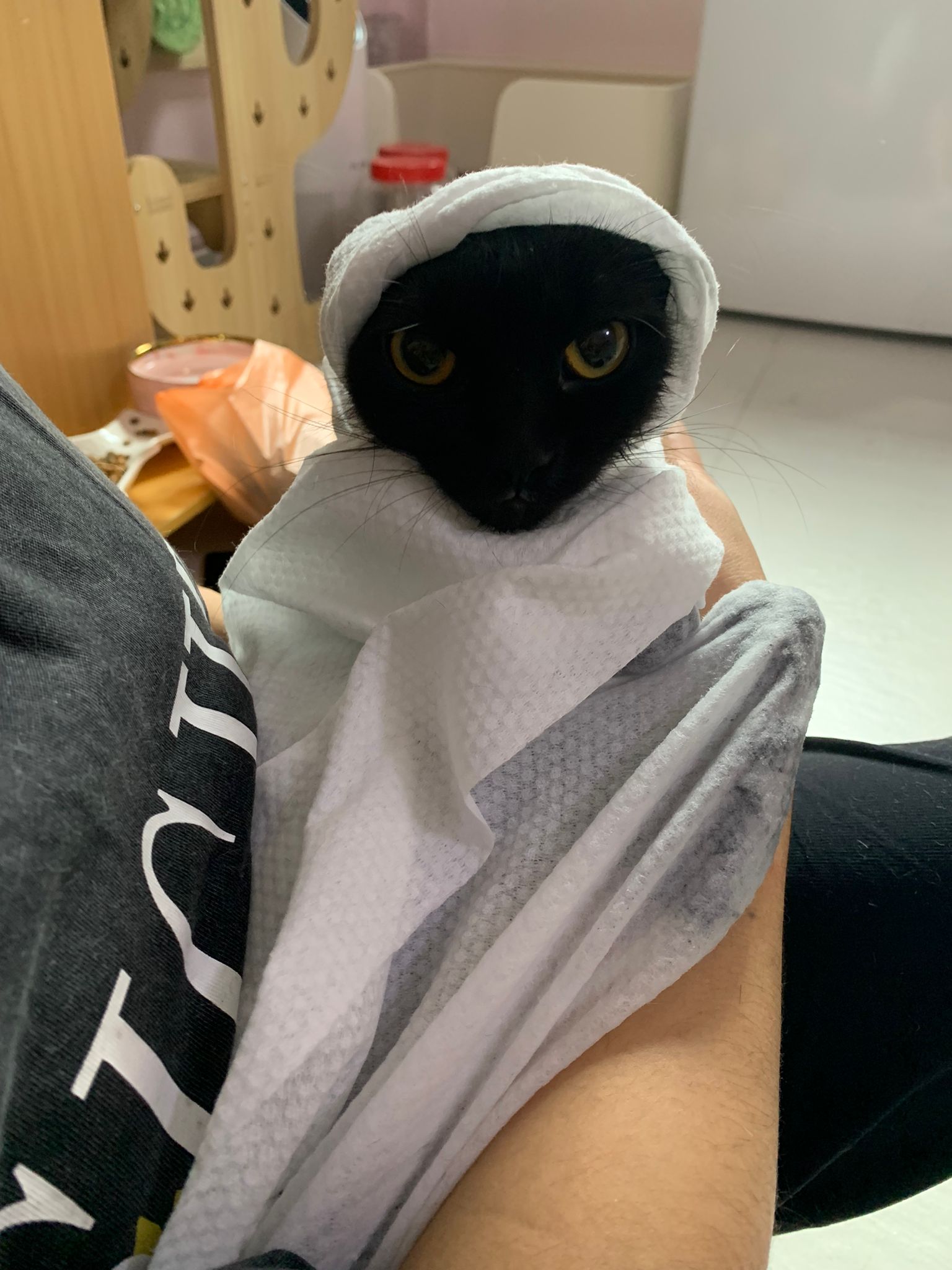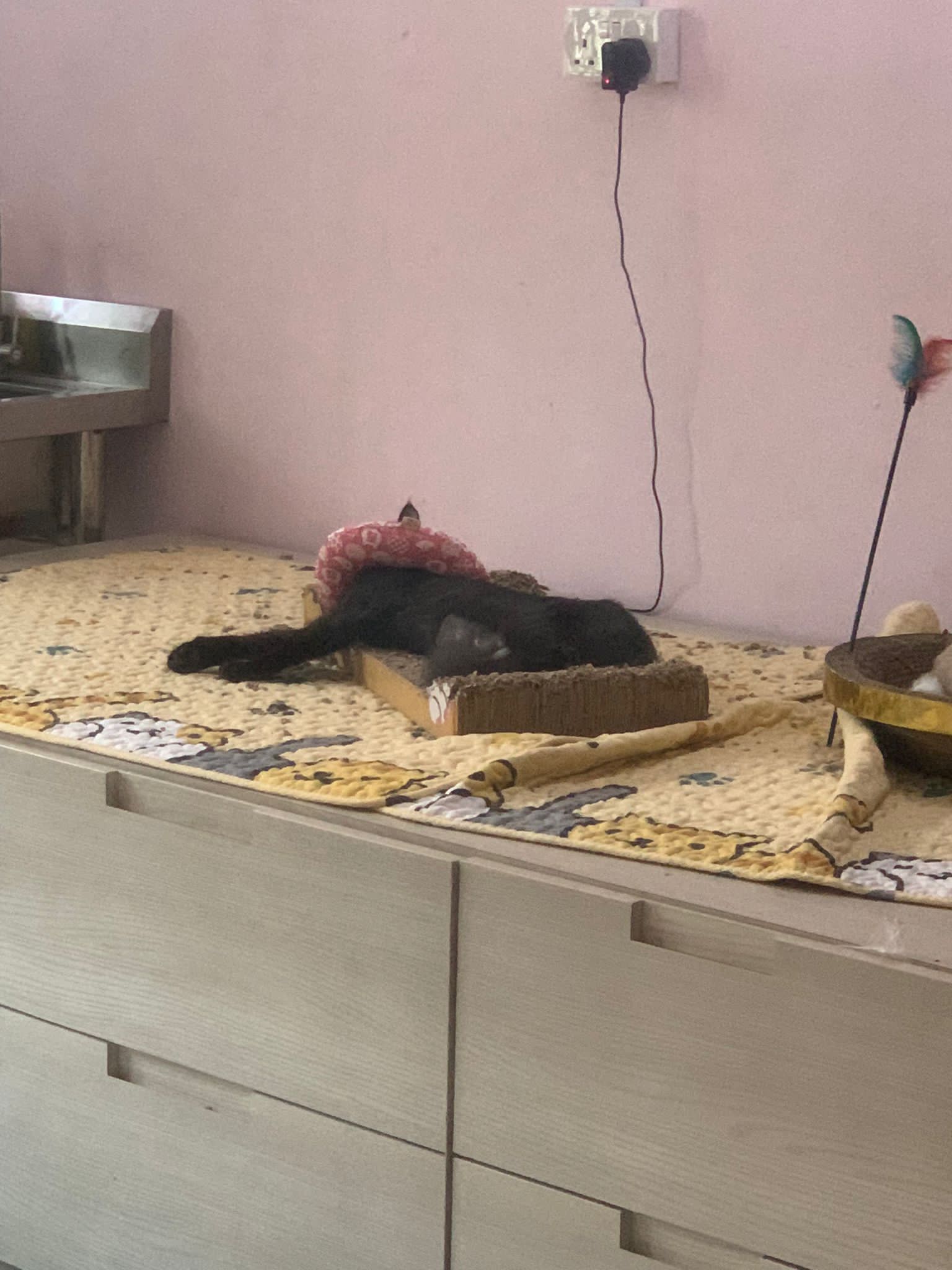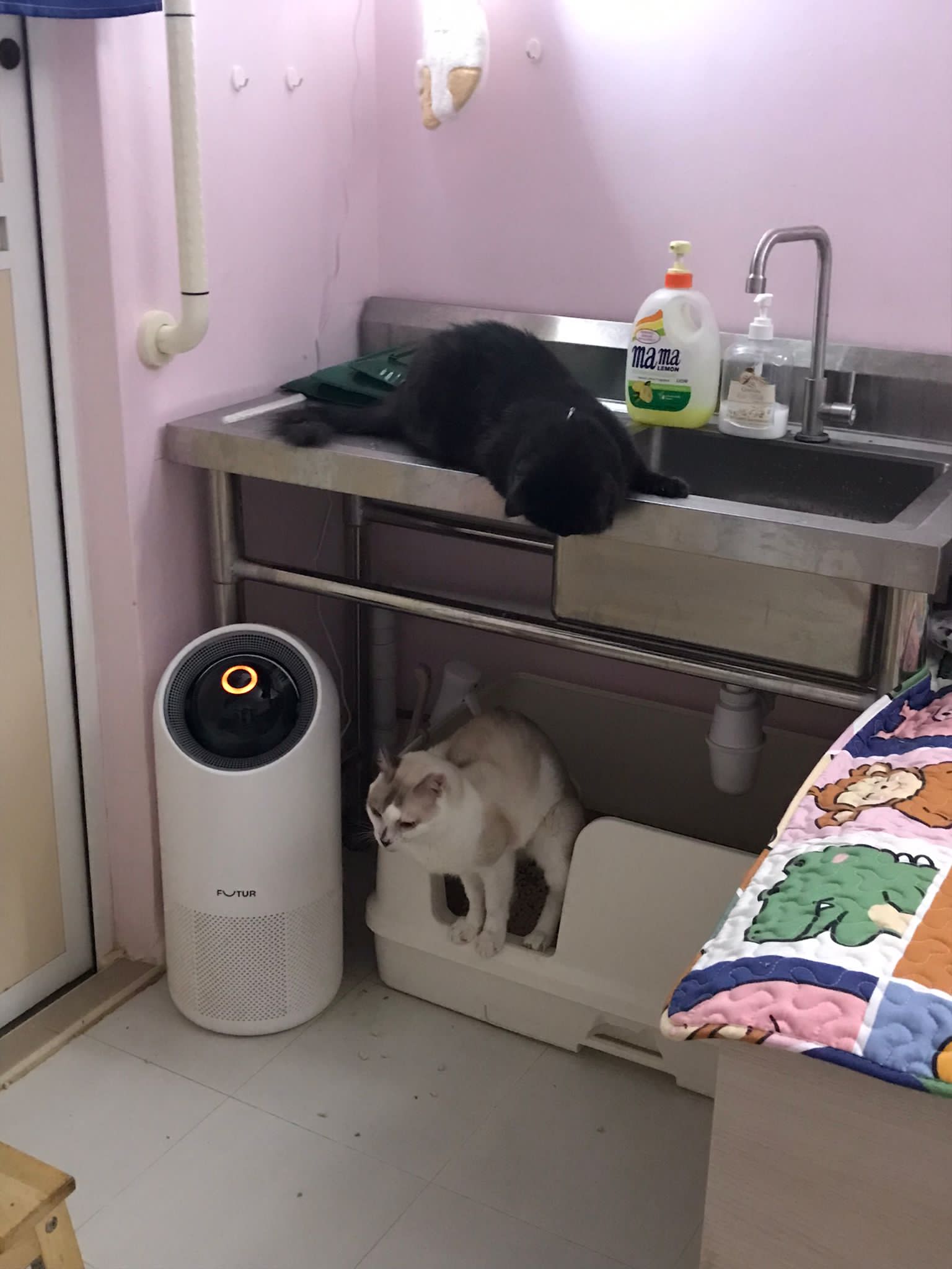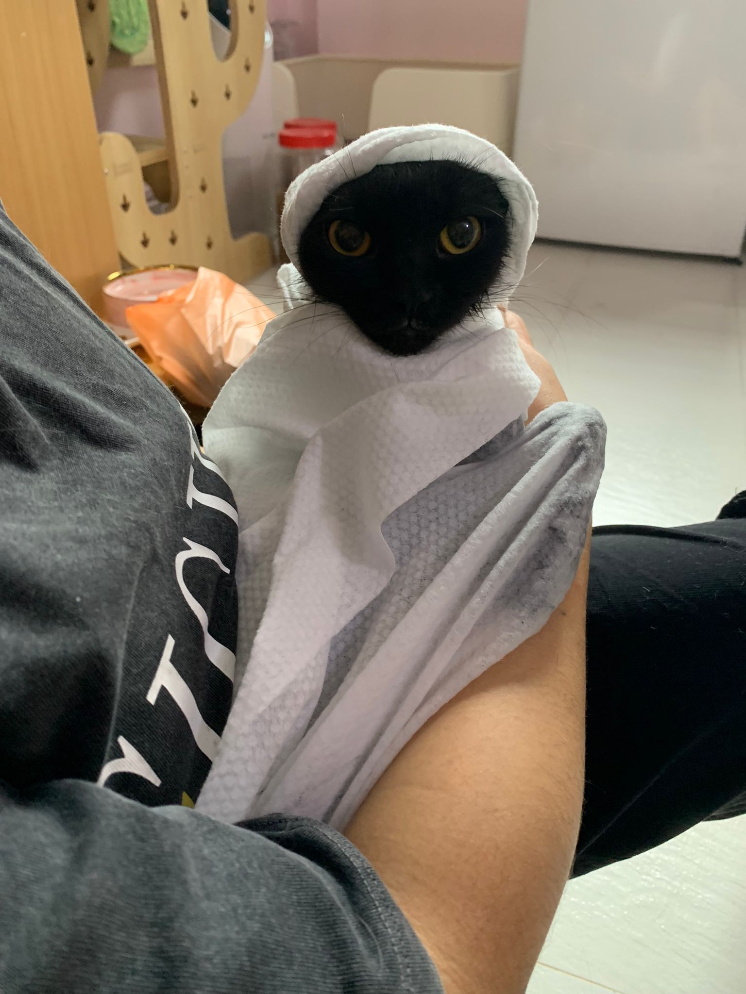 back in 猫房 – go straight to toilet cos haven’t receive her results. I unpacked the whole iso cage to filter a space for her. I think I need to buy more cabinets and throw the ratten chair and sauna box to make way.