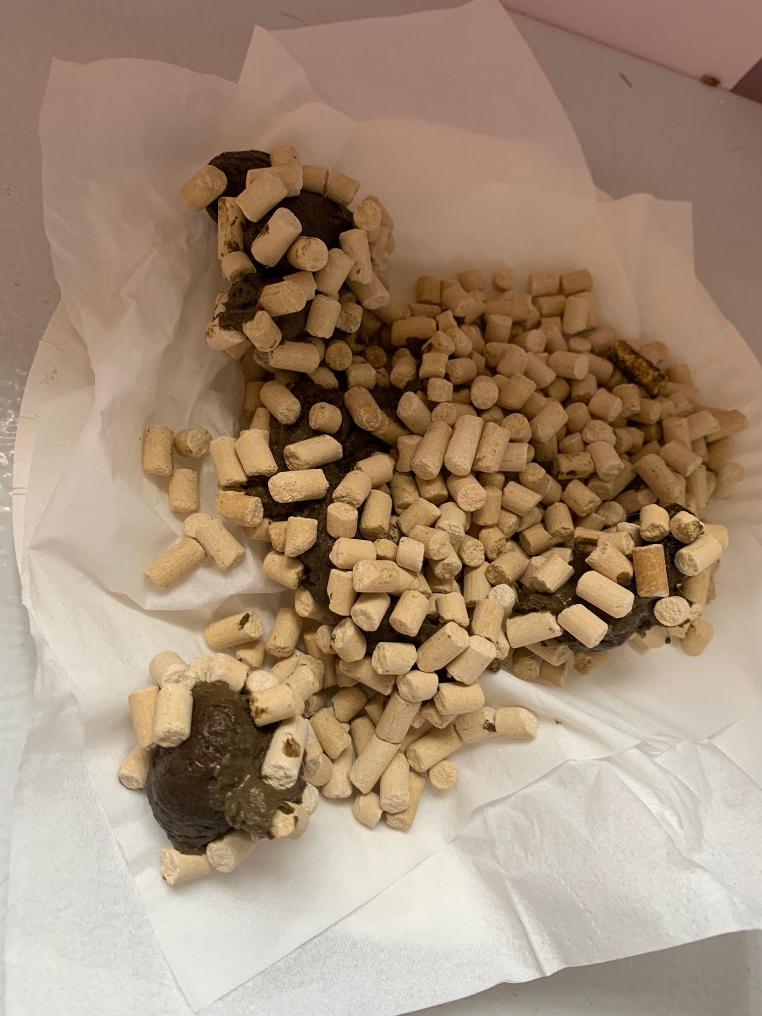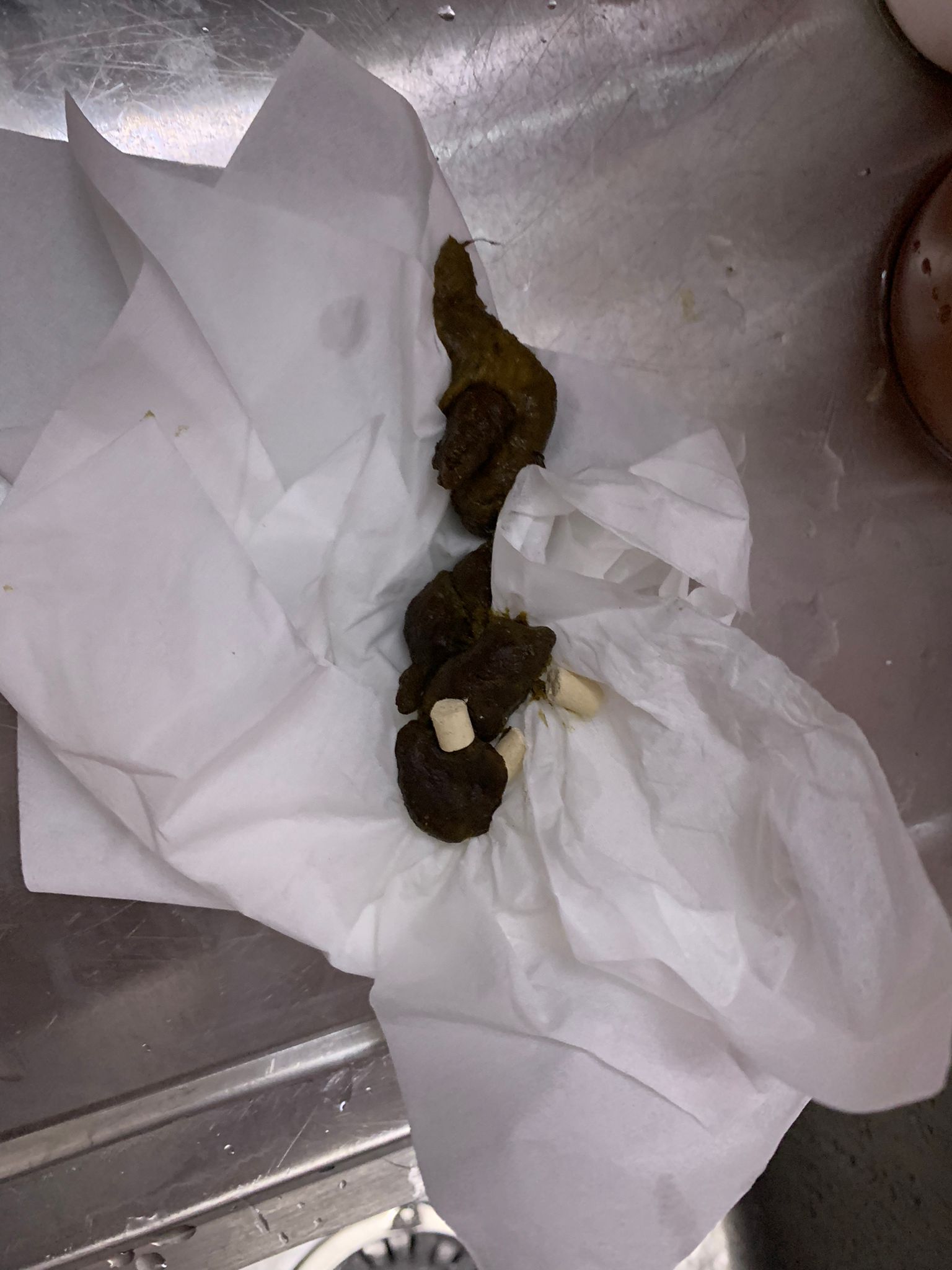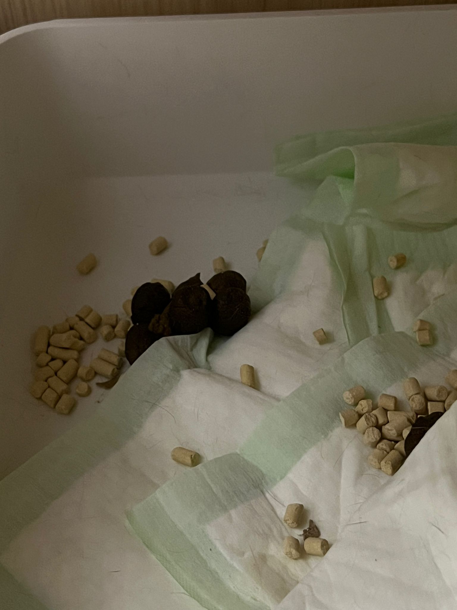Morning: got eat overnight. Got poo. Formed.