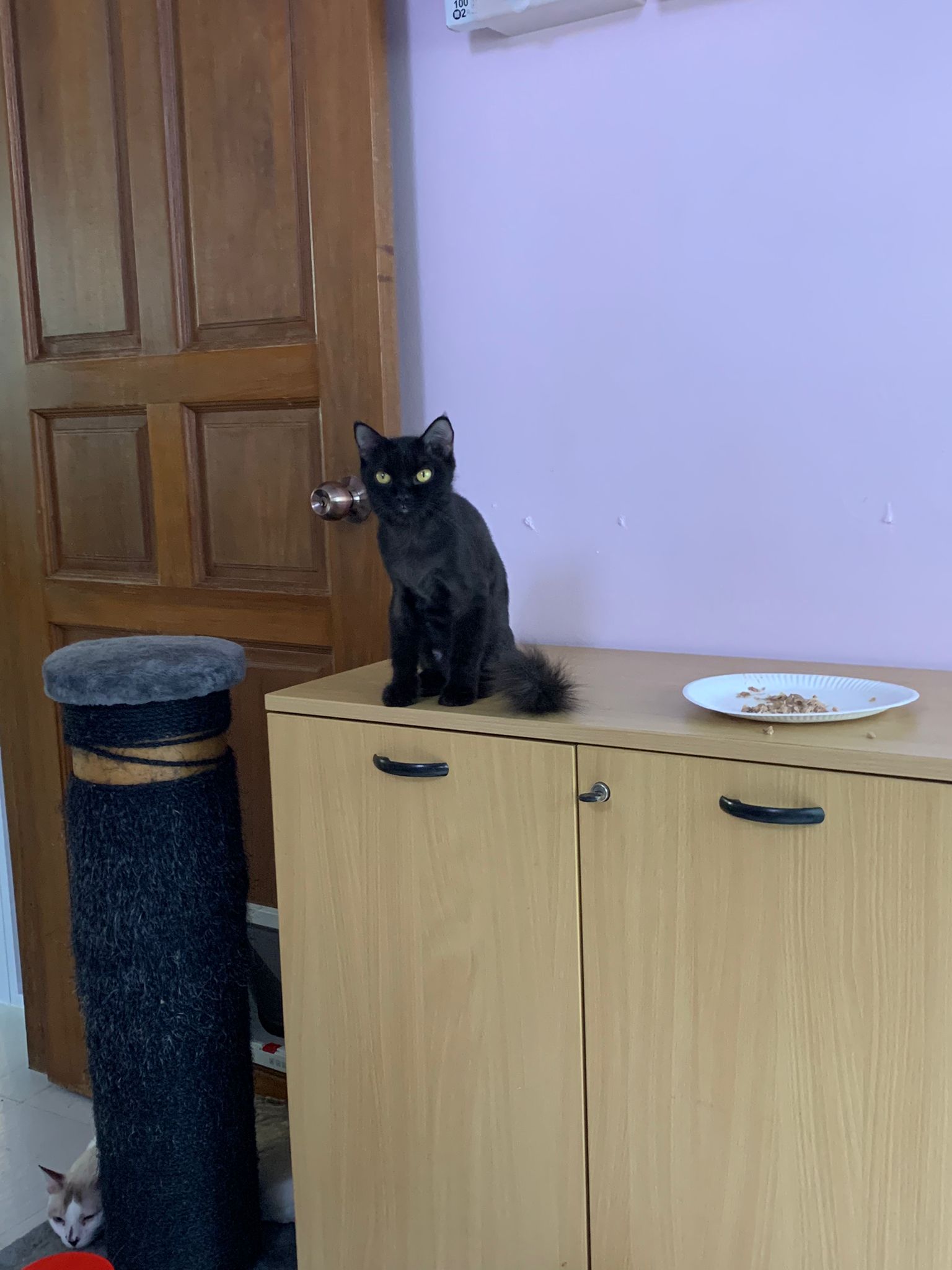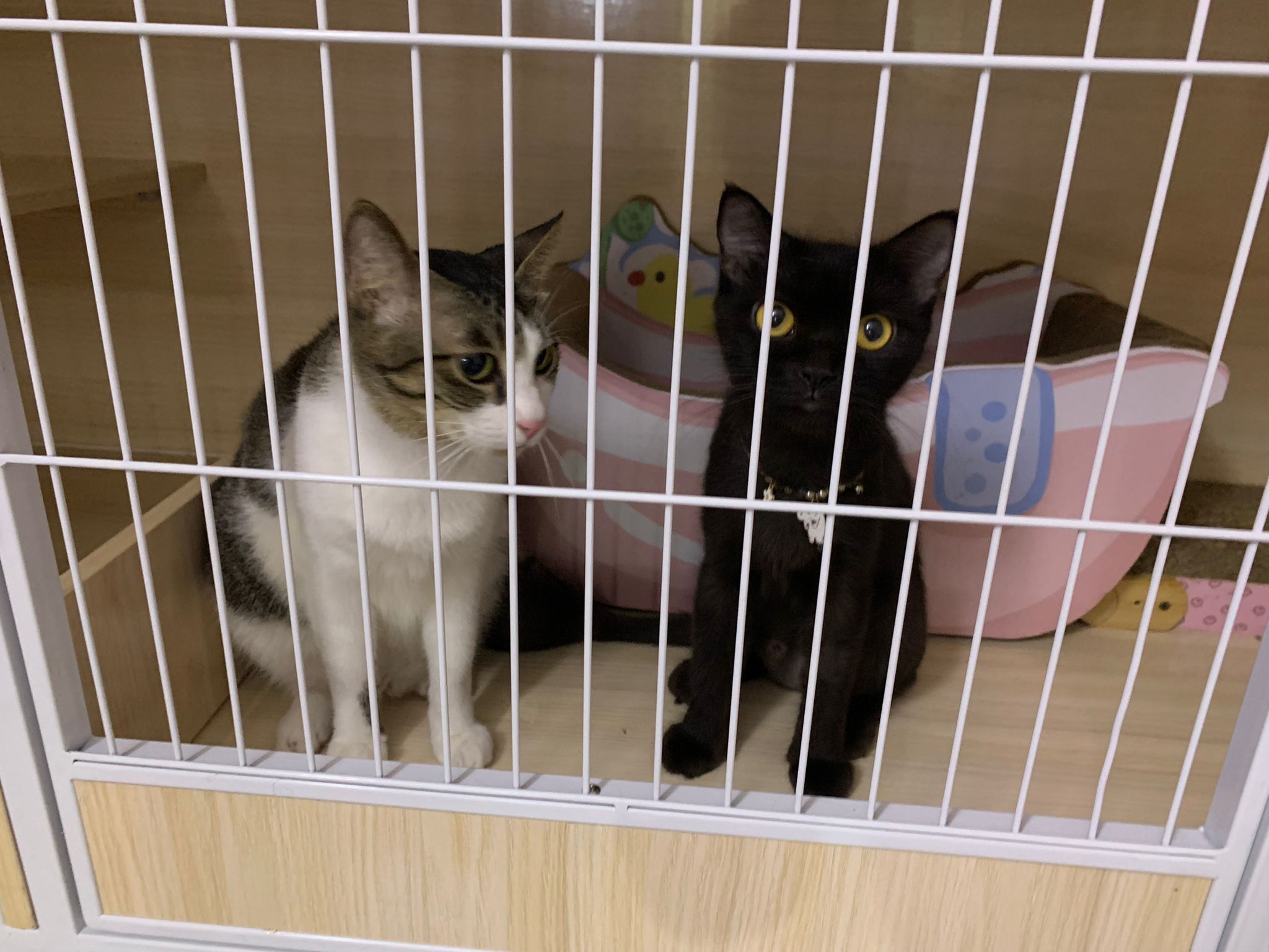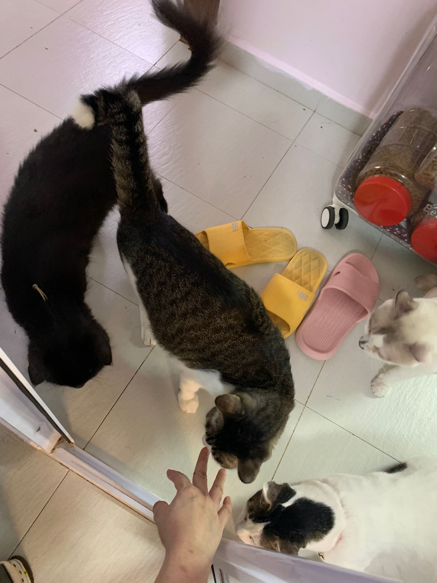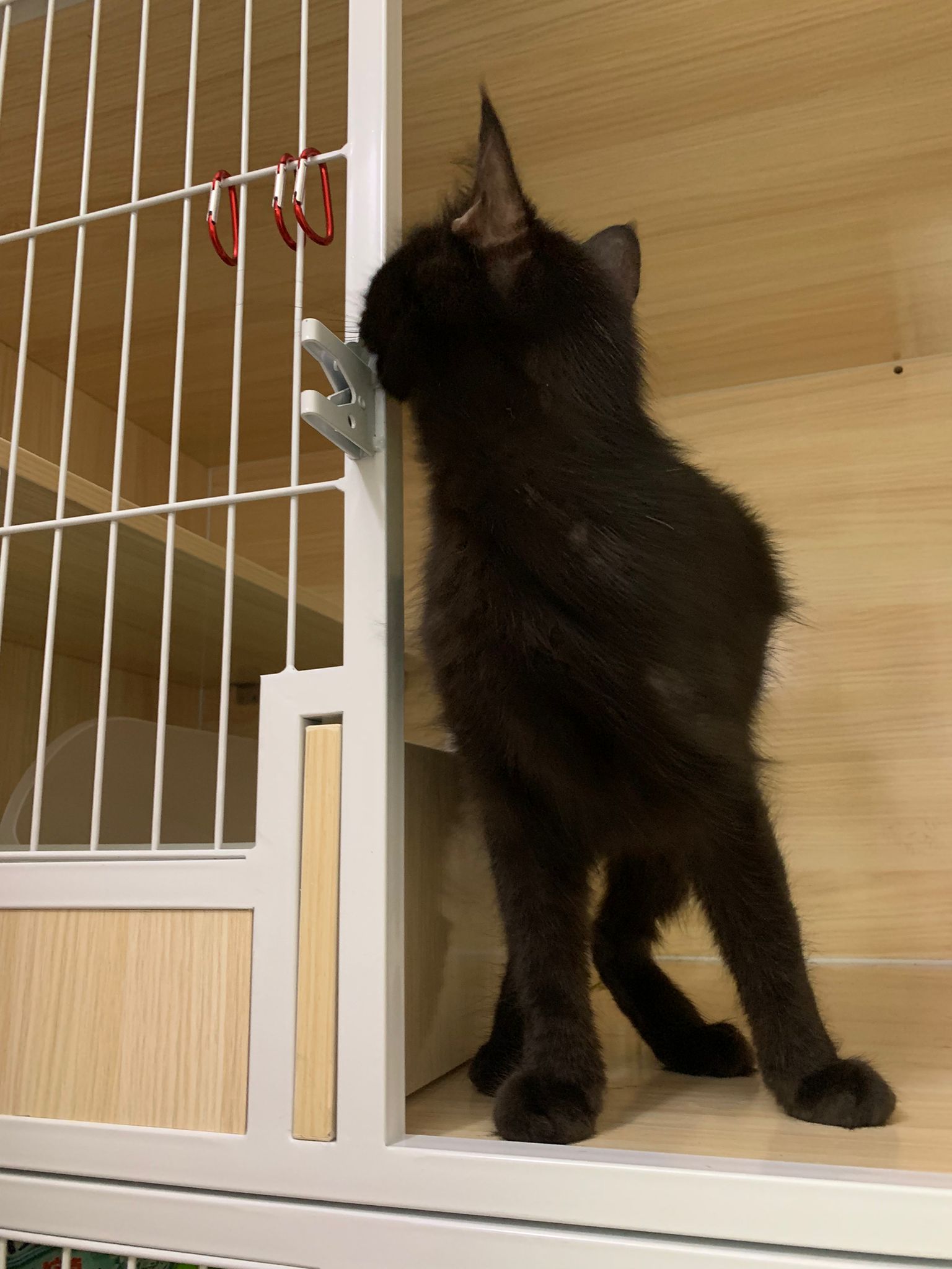 7am+: she know the routine of 猫房. No poo, food all cleared as usual. Gentle w sena and sena ok w her thru cage. Oly almost join in find this small girl. She also Guai won’t dash out. The words i think of right now is 有分寸