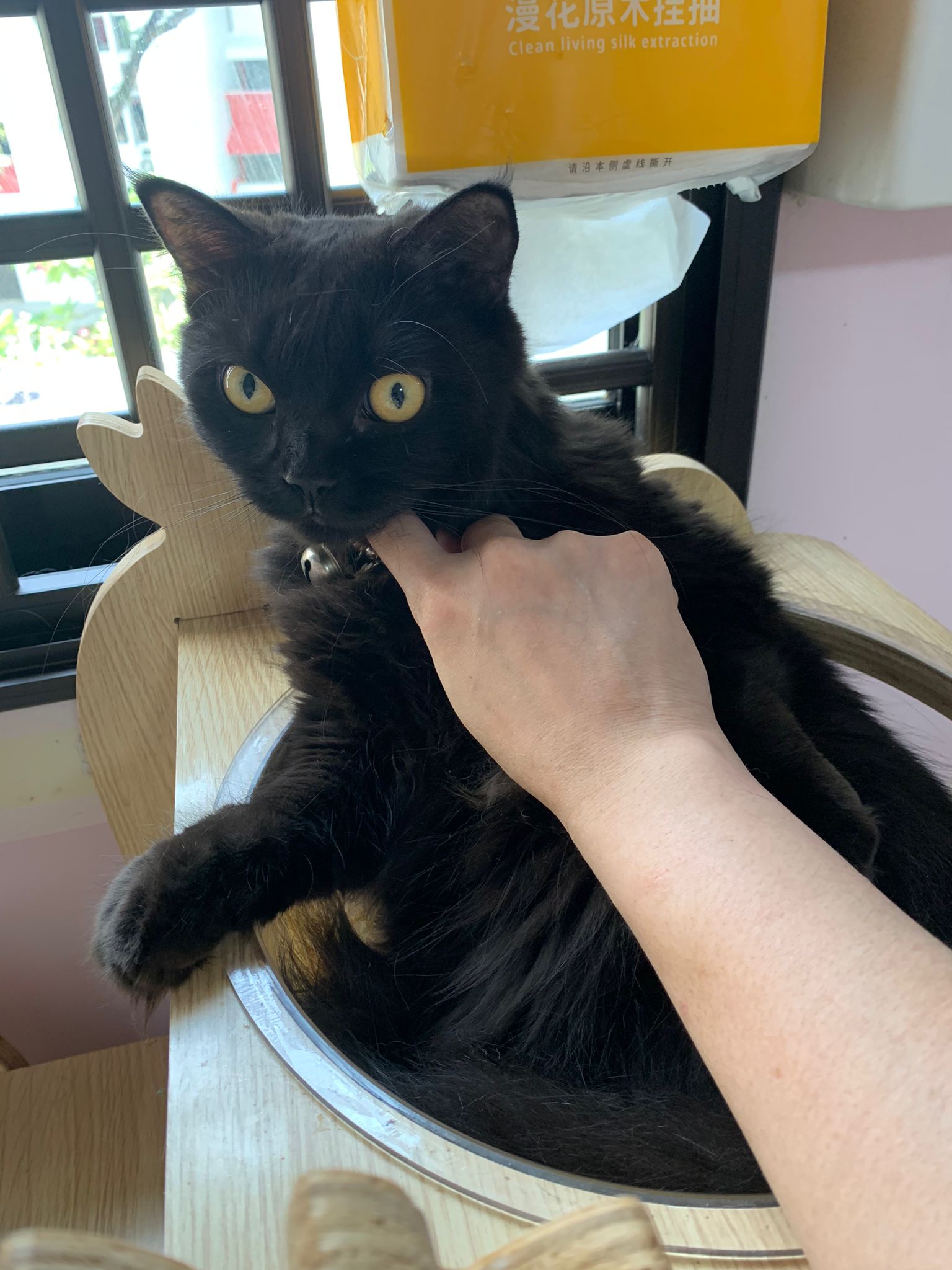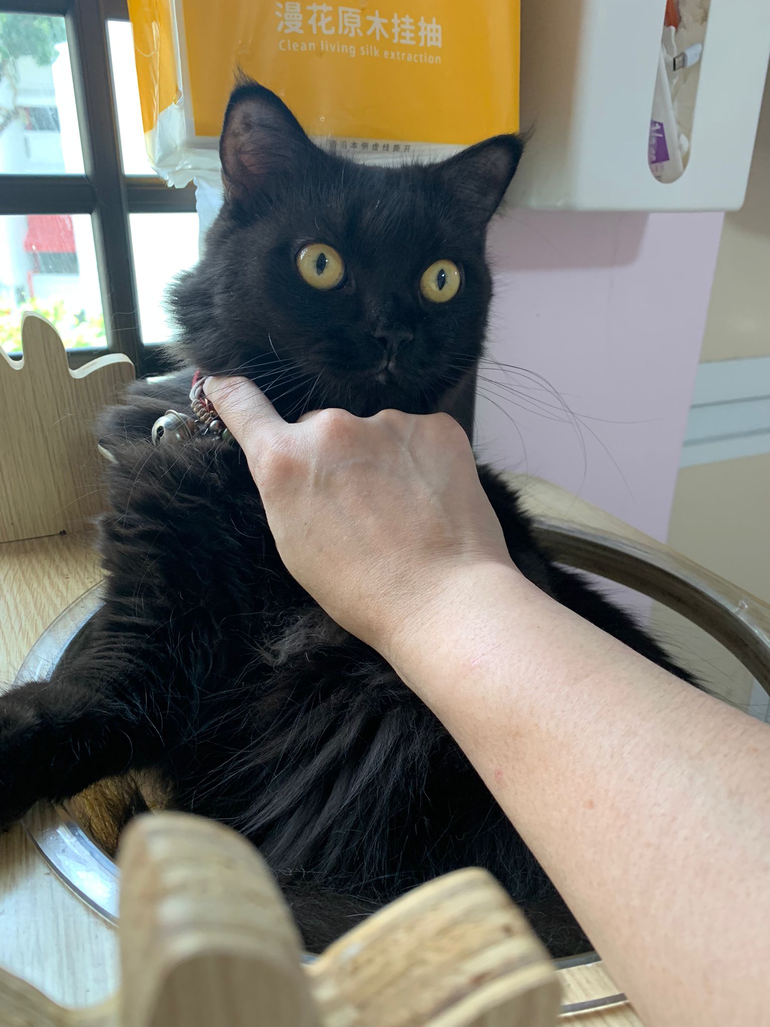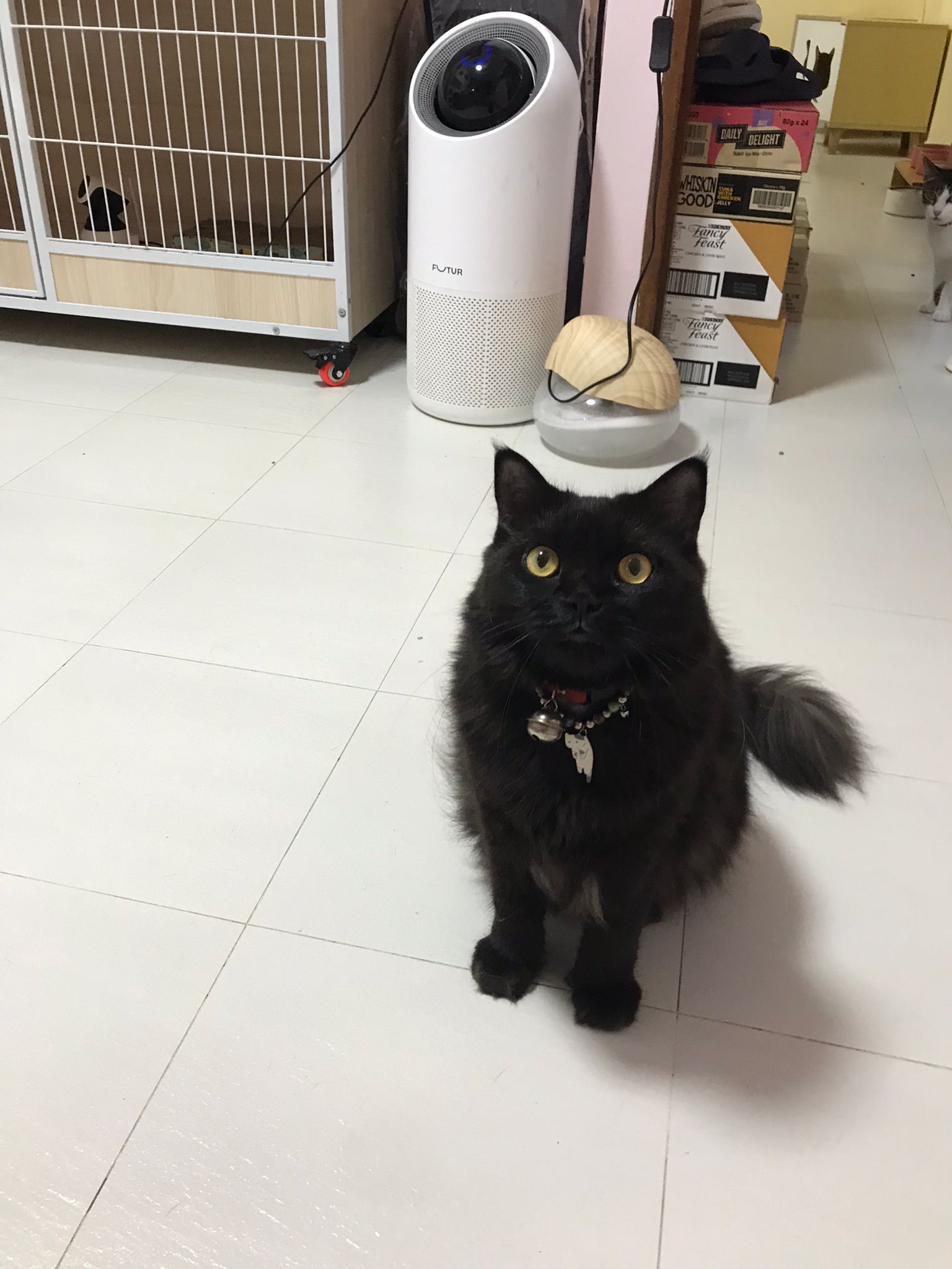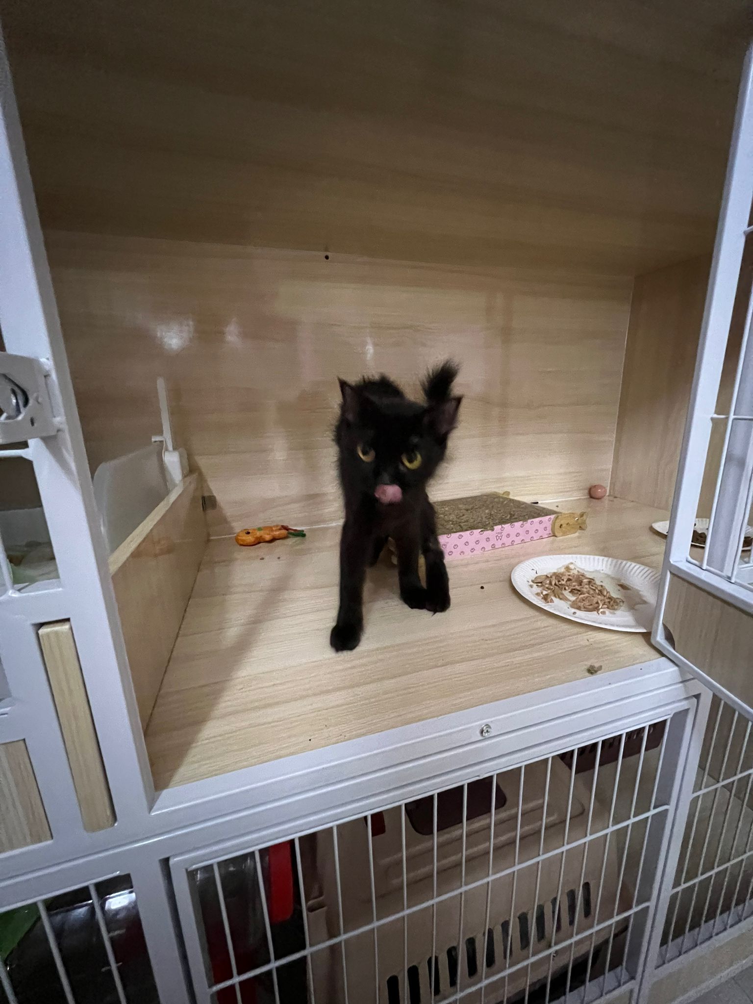 7am+: she know the routine of 猫房. No poo, food all cleared as usual. Gentle w sena and sena ok w her thru cage. Oly almost join in find this small girl. She also Guai won’t dash out. The words i think of right now is 有分寸