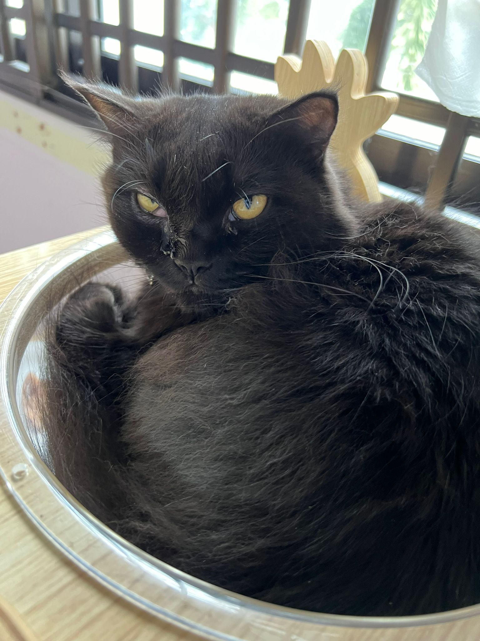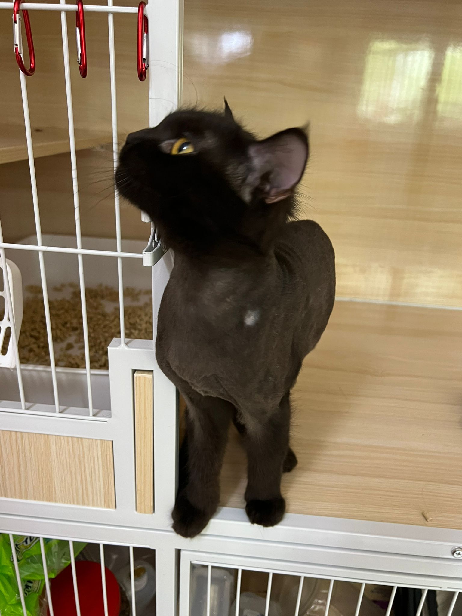 Morning: cage alr open up for days since her lion cut and vaccination done … she treat the cage as her comfort zone