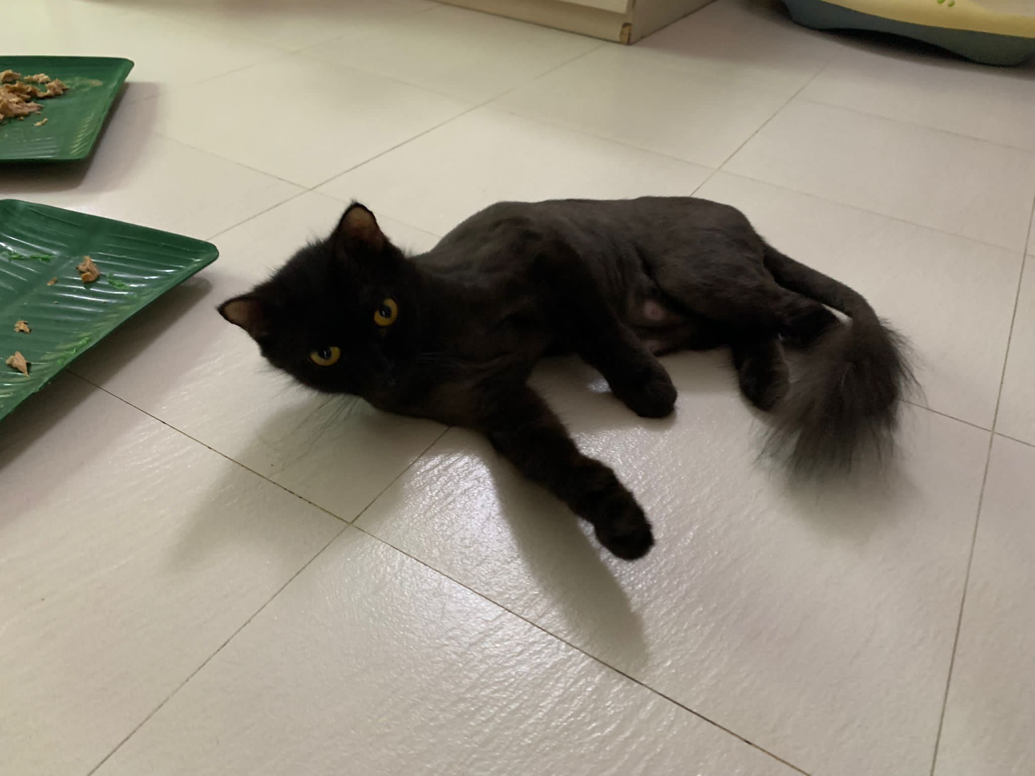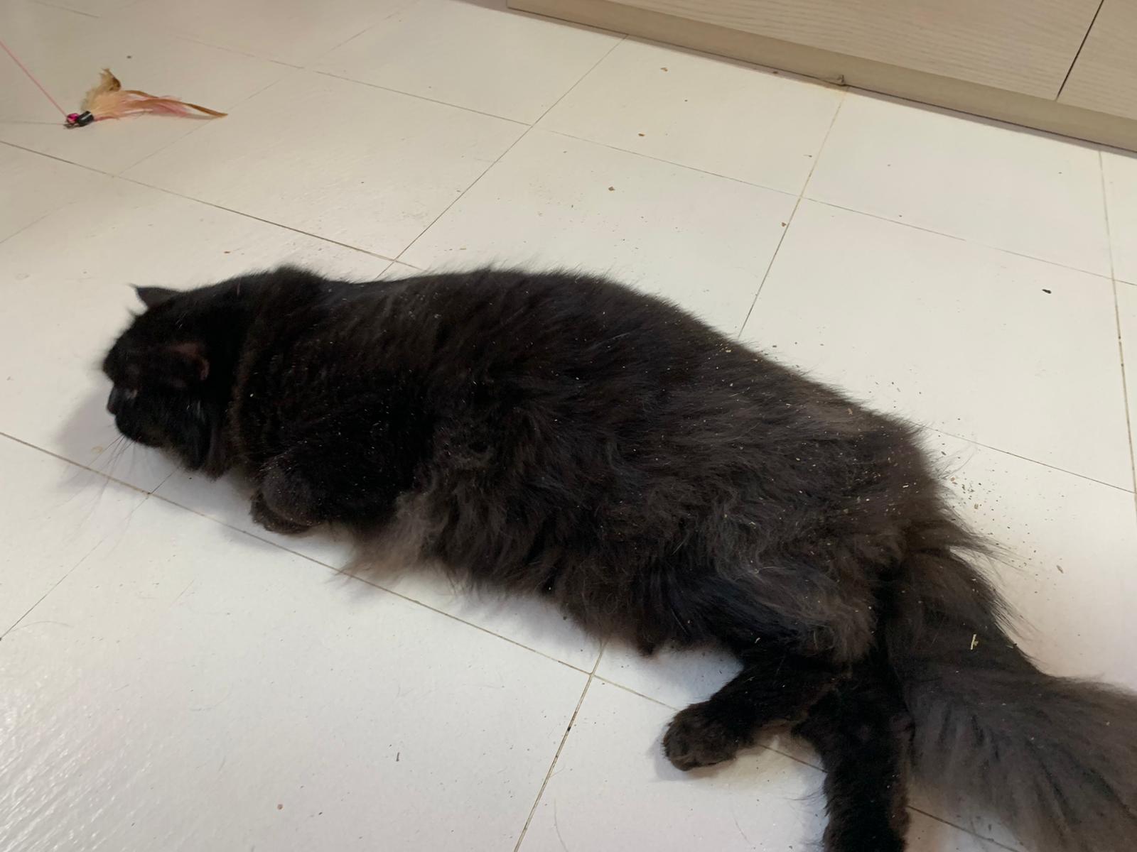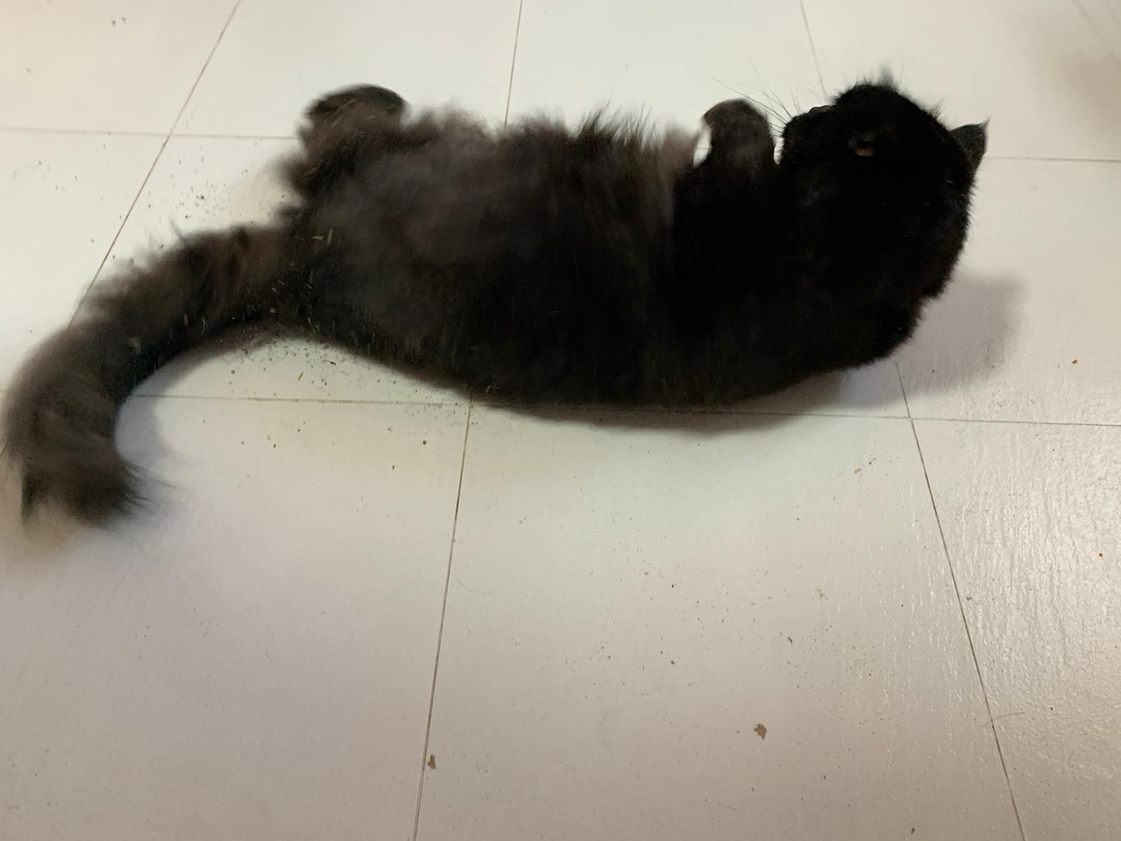Evening: happy even belly up position. But scare of me cos I wiped down her body. Clean her ears too she will struggle. She want to whack me. But soft. She ok w Oly. I fed her nutriplus gel she is ok w touching her orally but Not physically. I’m dead I’m v sick now. Cos of new fur? Got poo 7.5/10