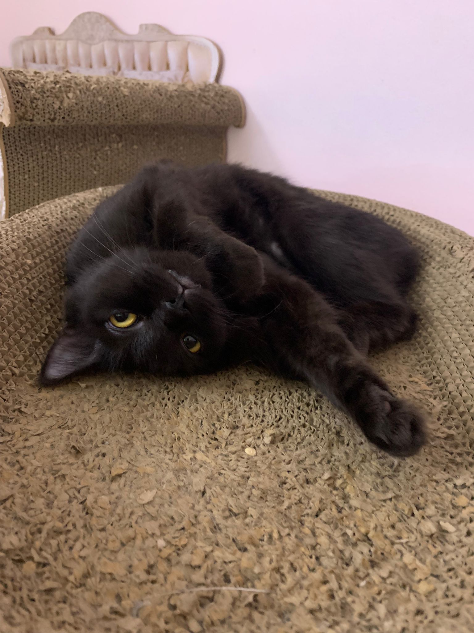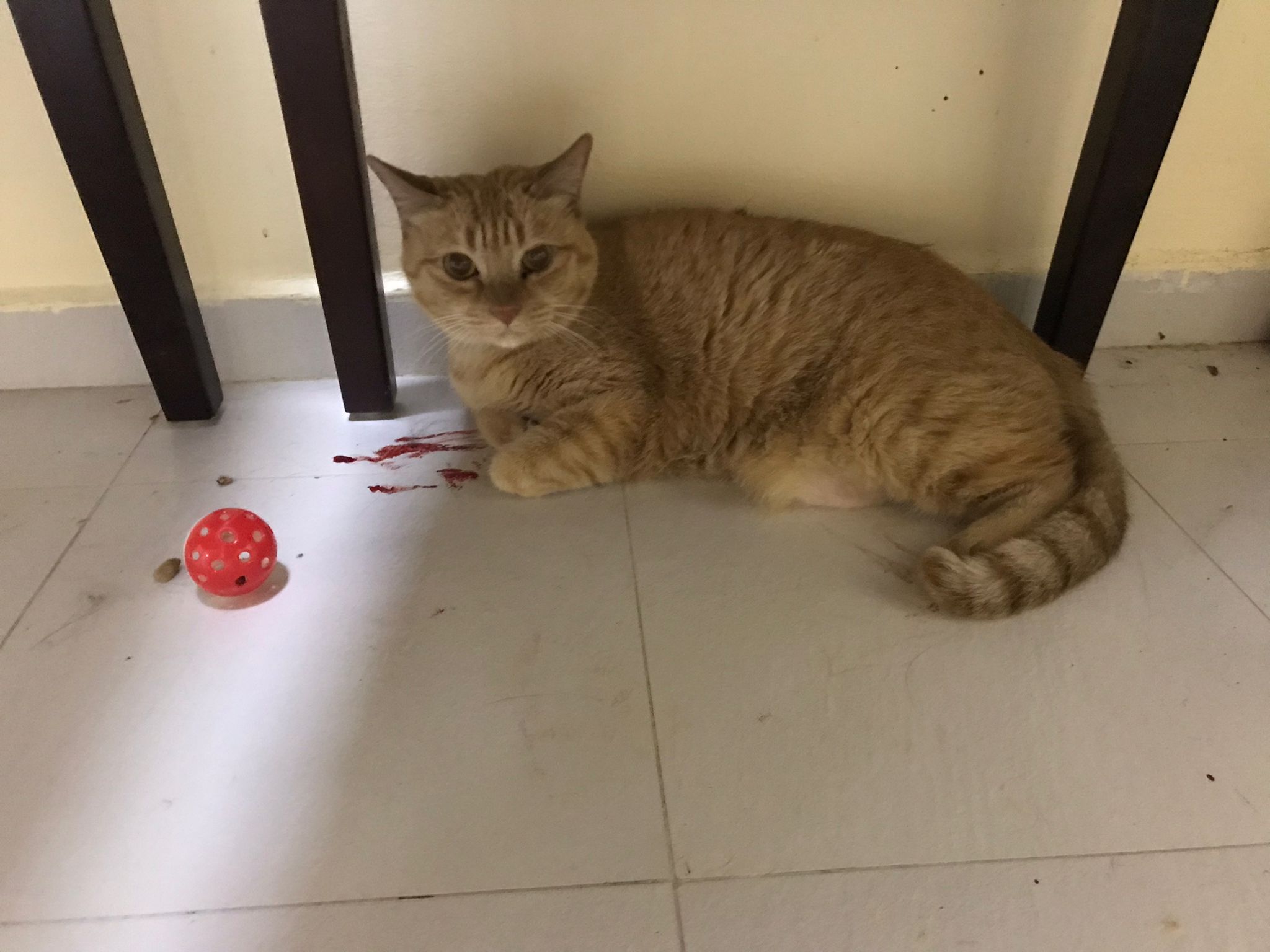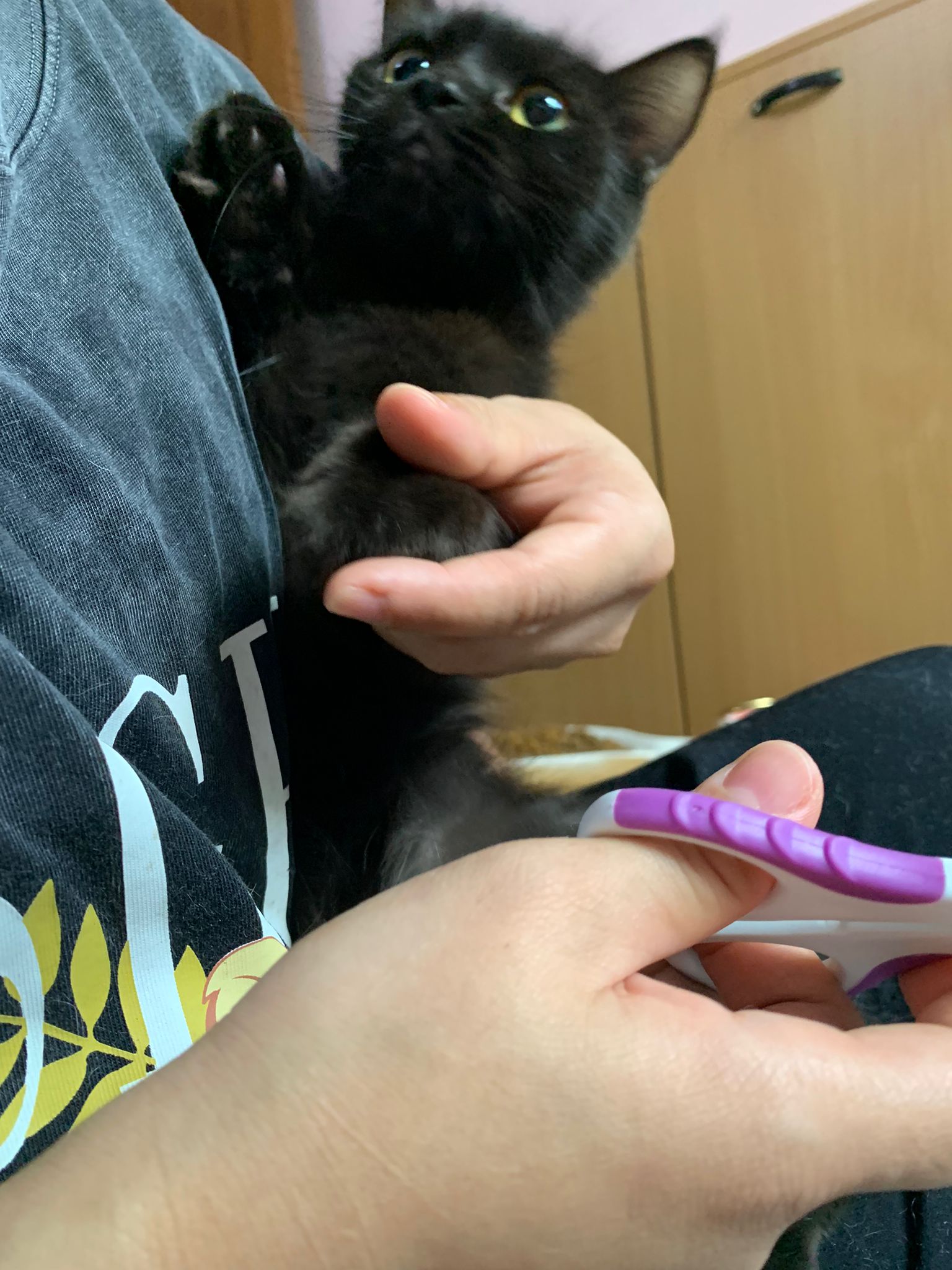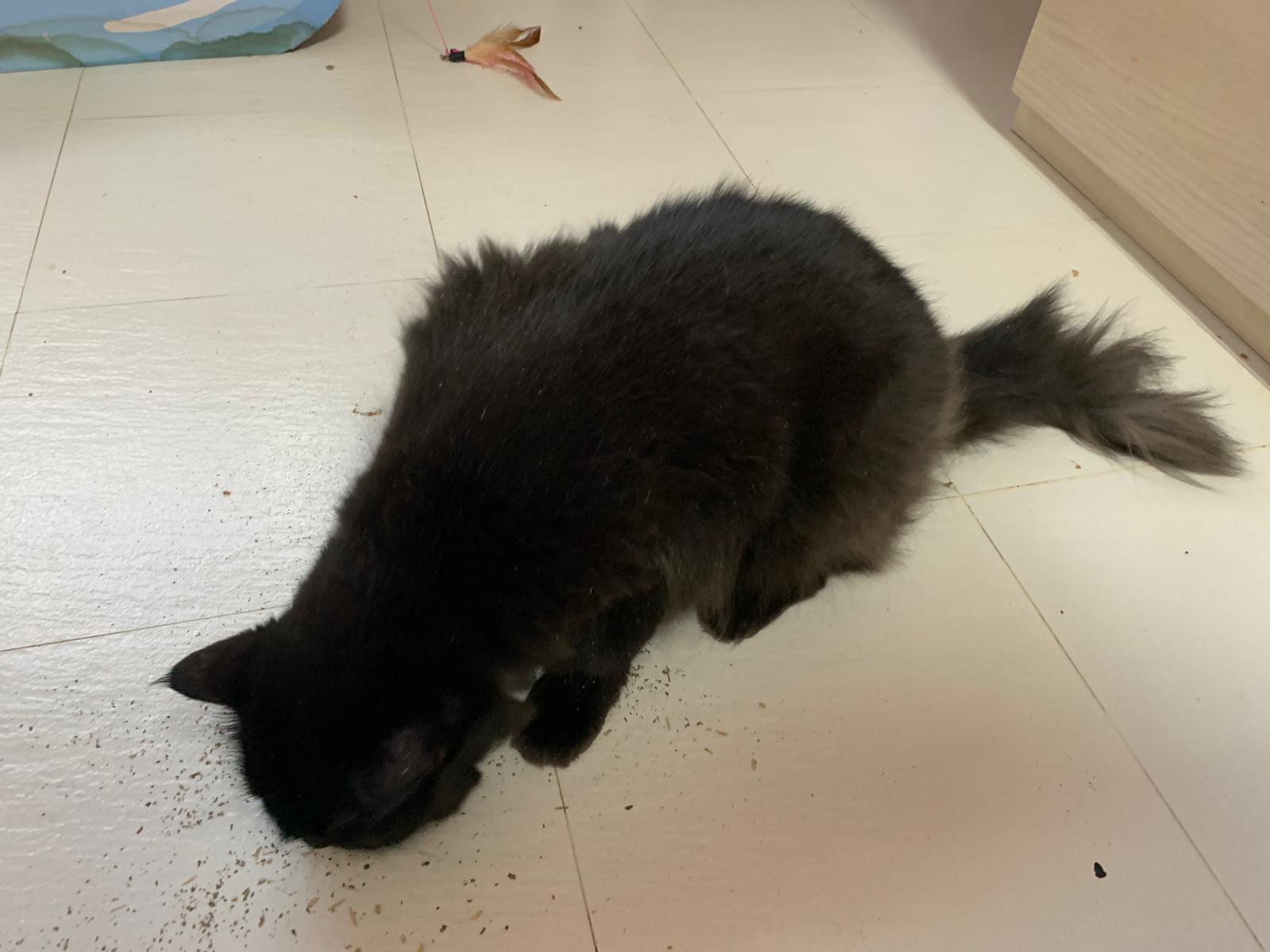 Evening: happy even belly up position. But scare of me cos I wiped down her body. Clean her ears too she will struggle. She want to whack me. But soft. She ok w Oly. I fed her nutriplus gel she is ok w touching her orally but Not physically. I’m dead I’m v sick now. Cos of new fur? Got poo 7.5/10