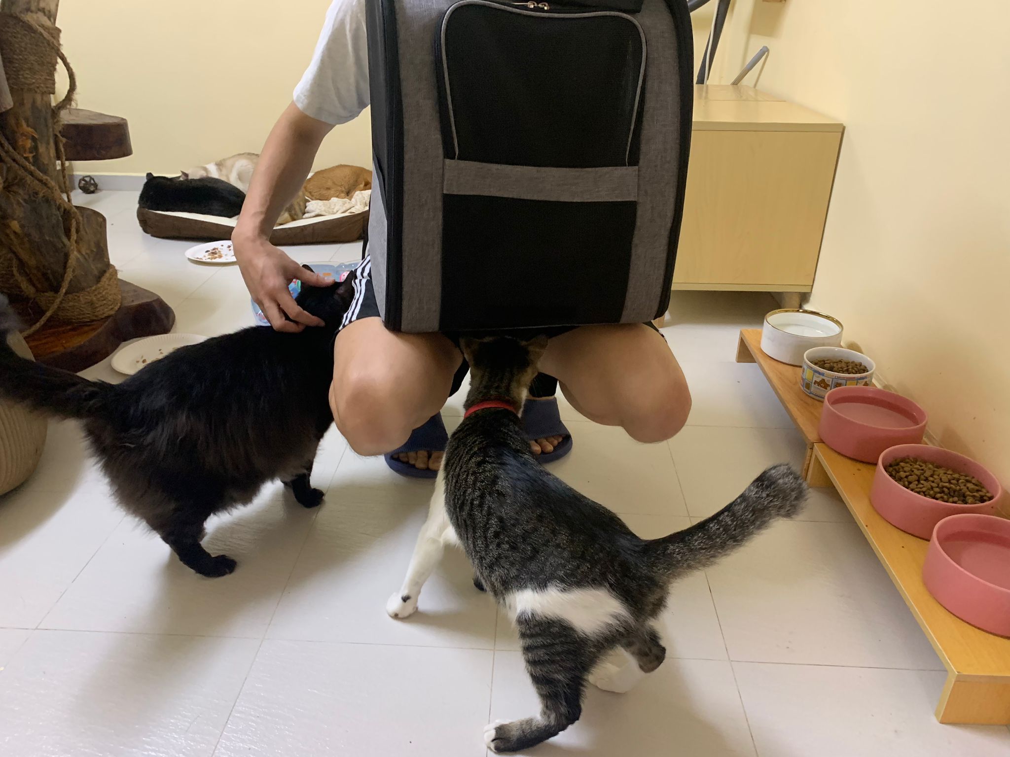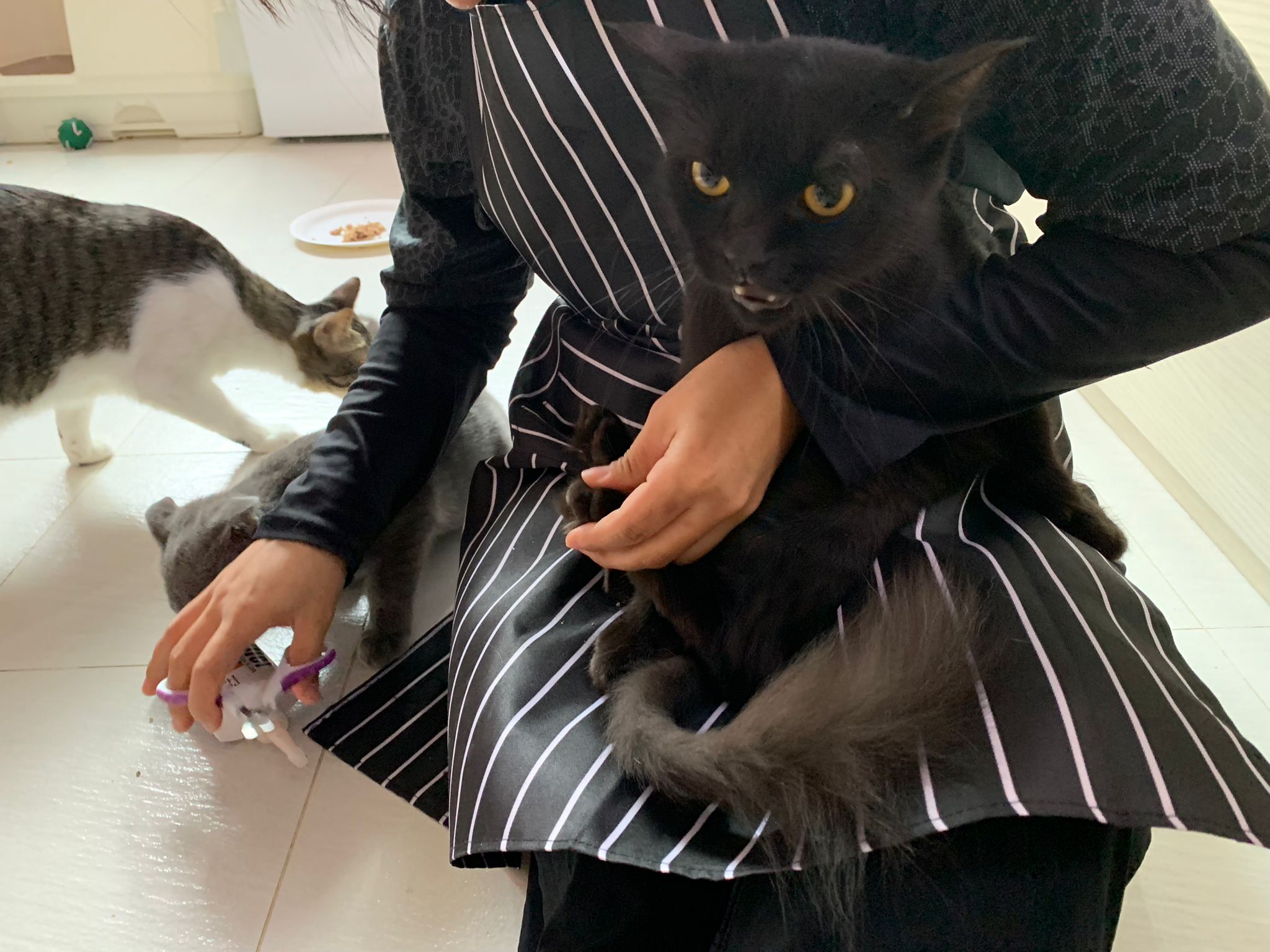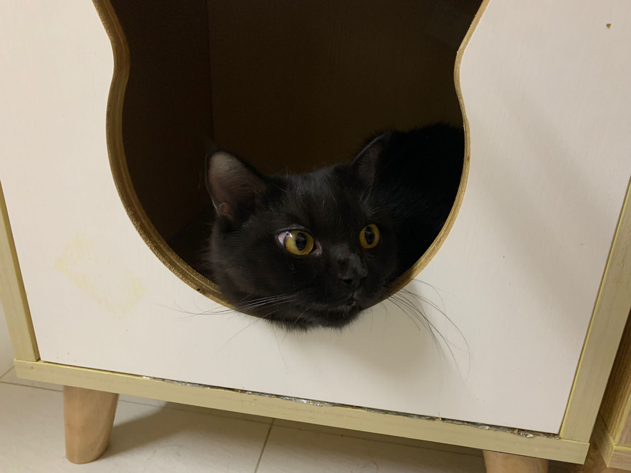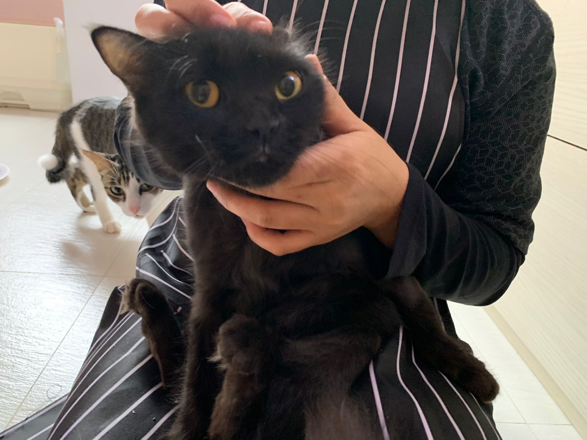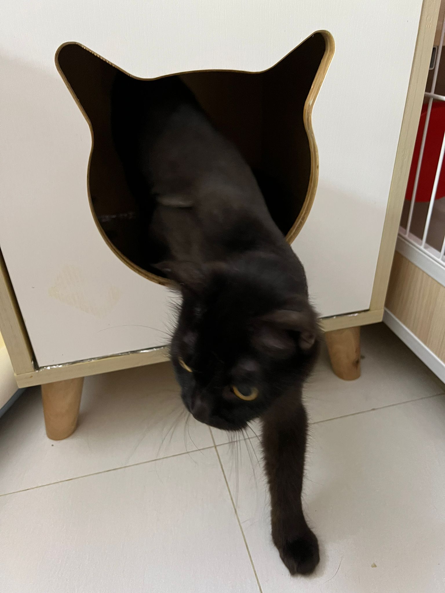 She is getting faster. Will look out for lobang between our legs to try to run out of 猫房