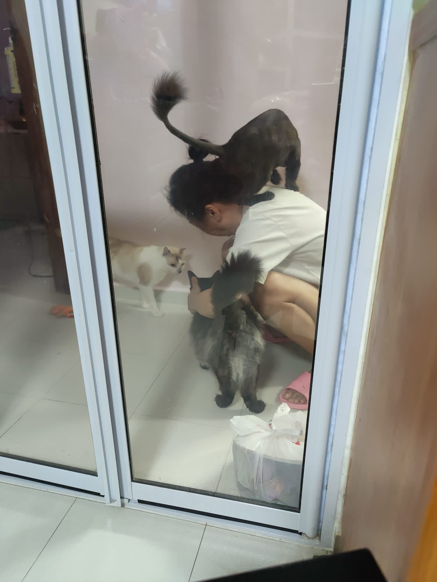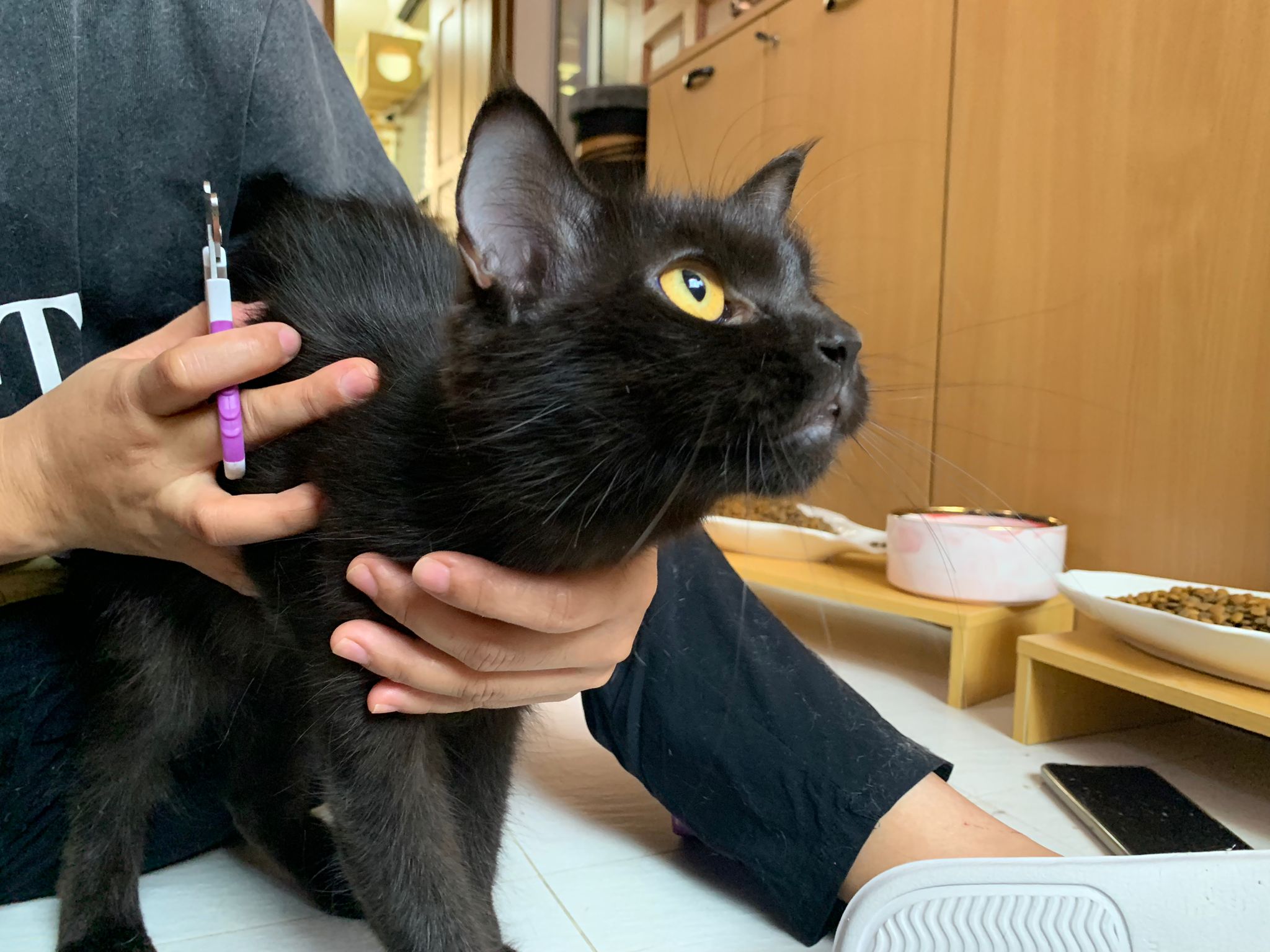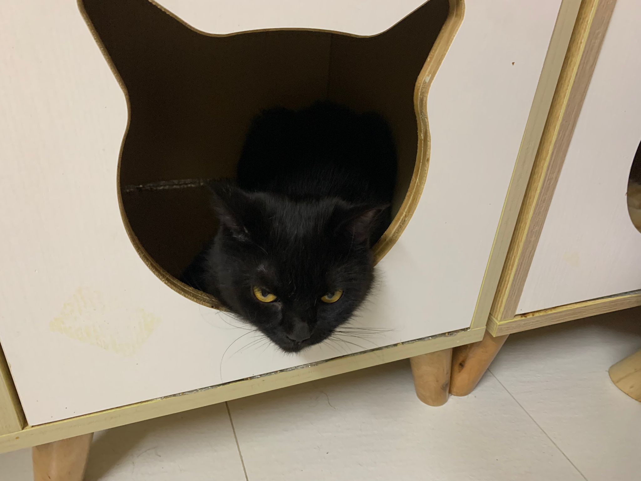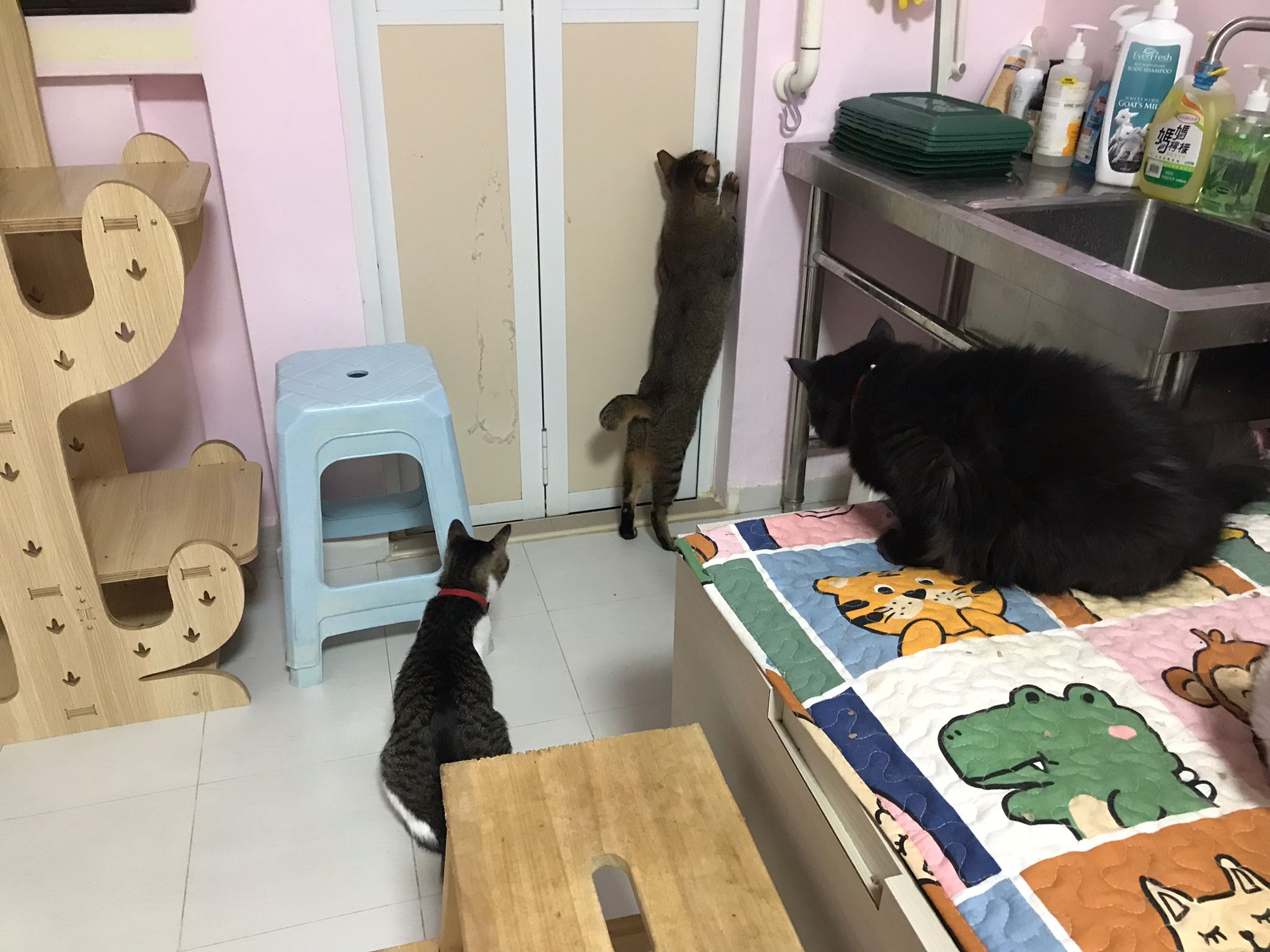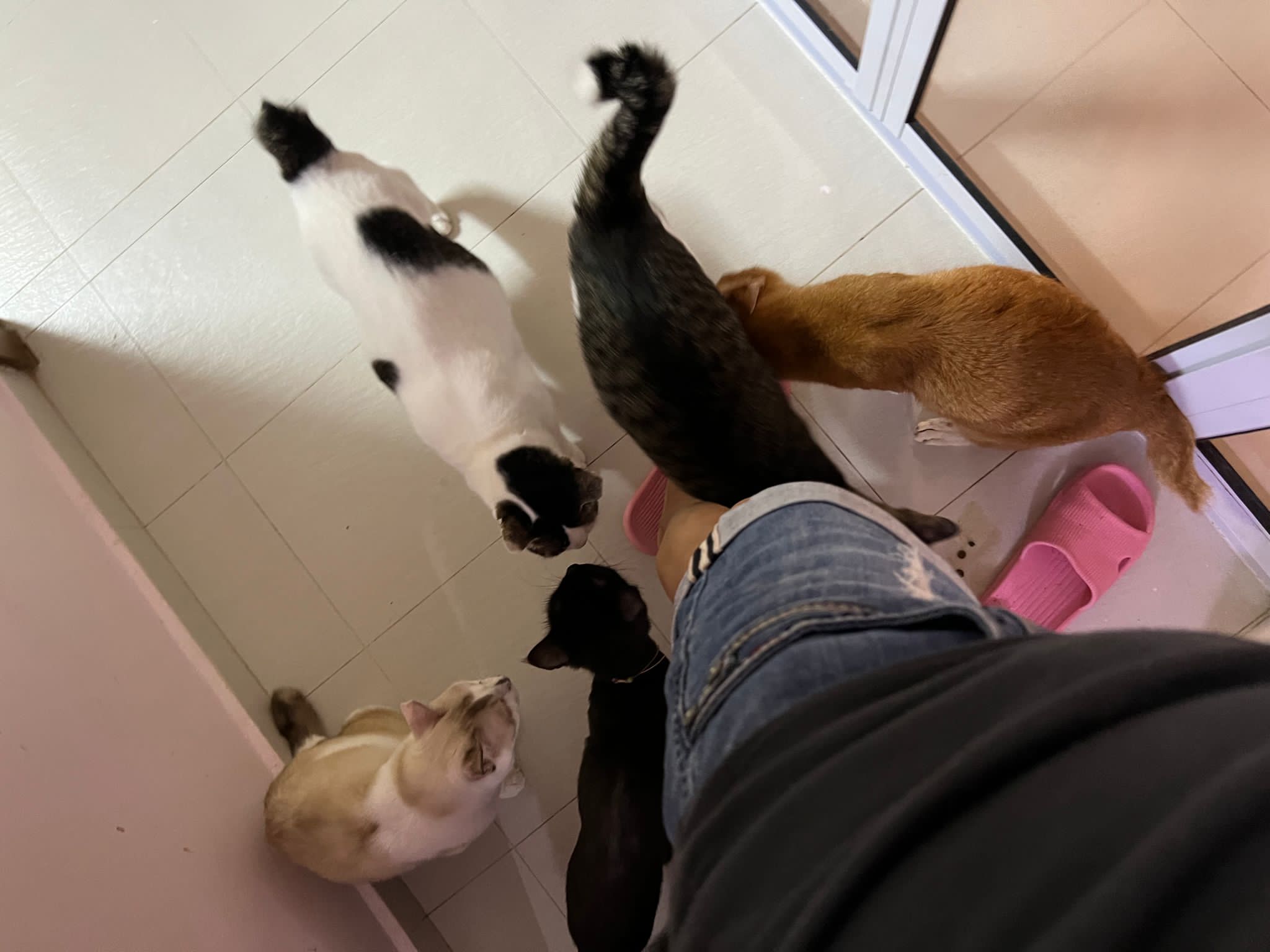 She is getting faster. Will look out for lobang between our legs to try to run out of 猫房