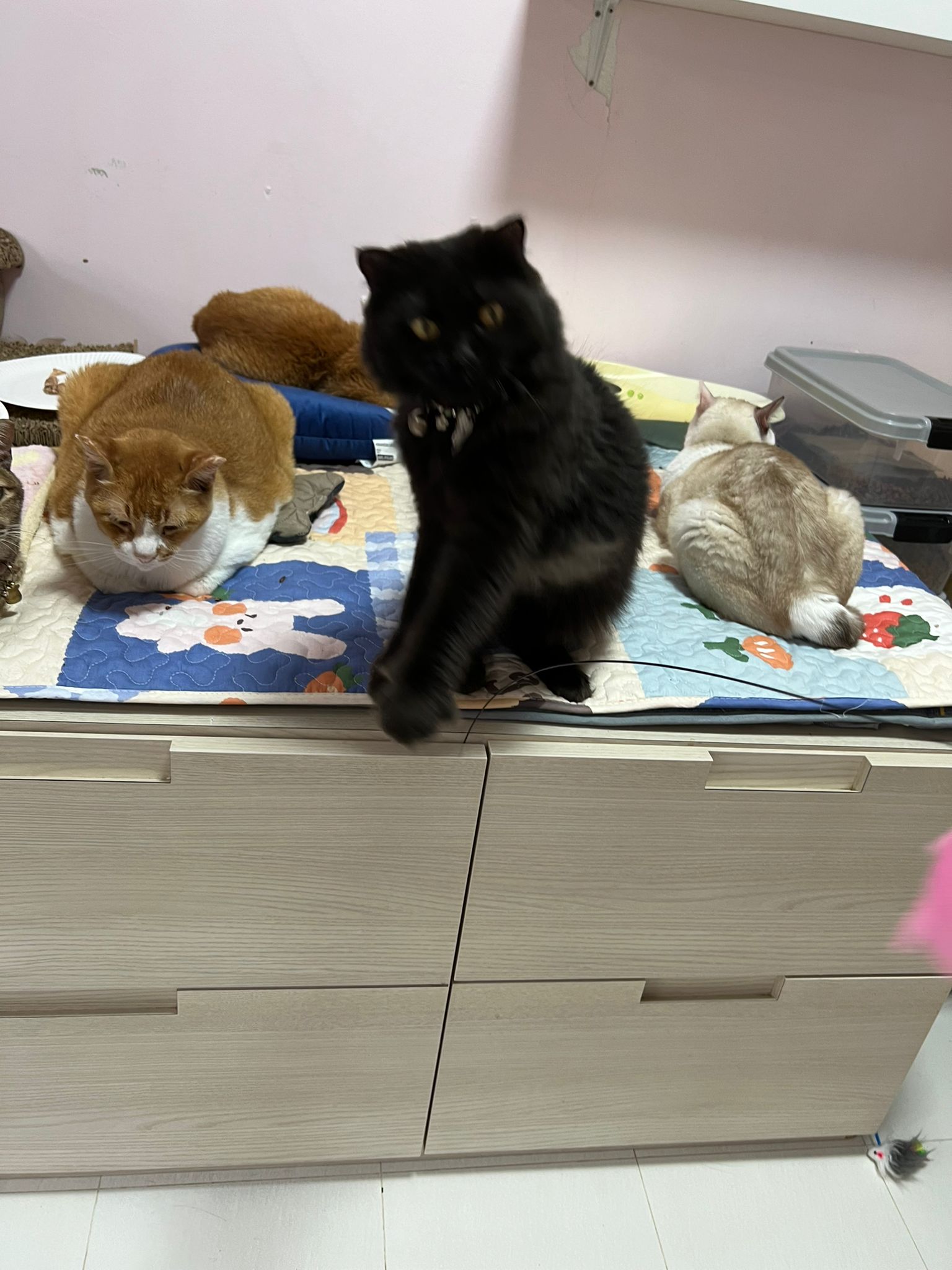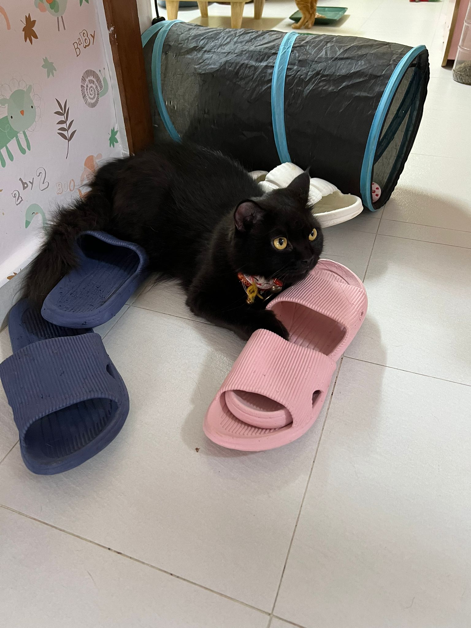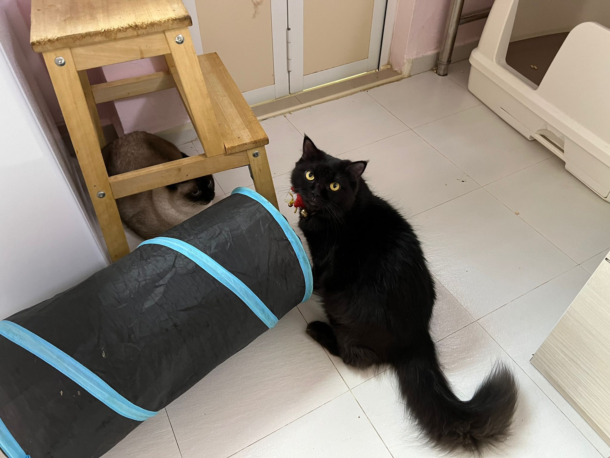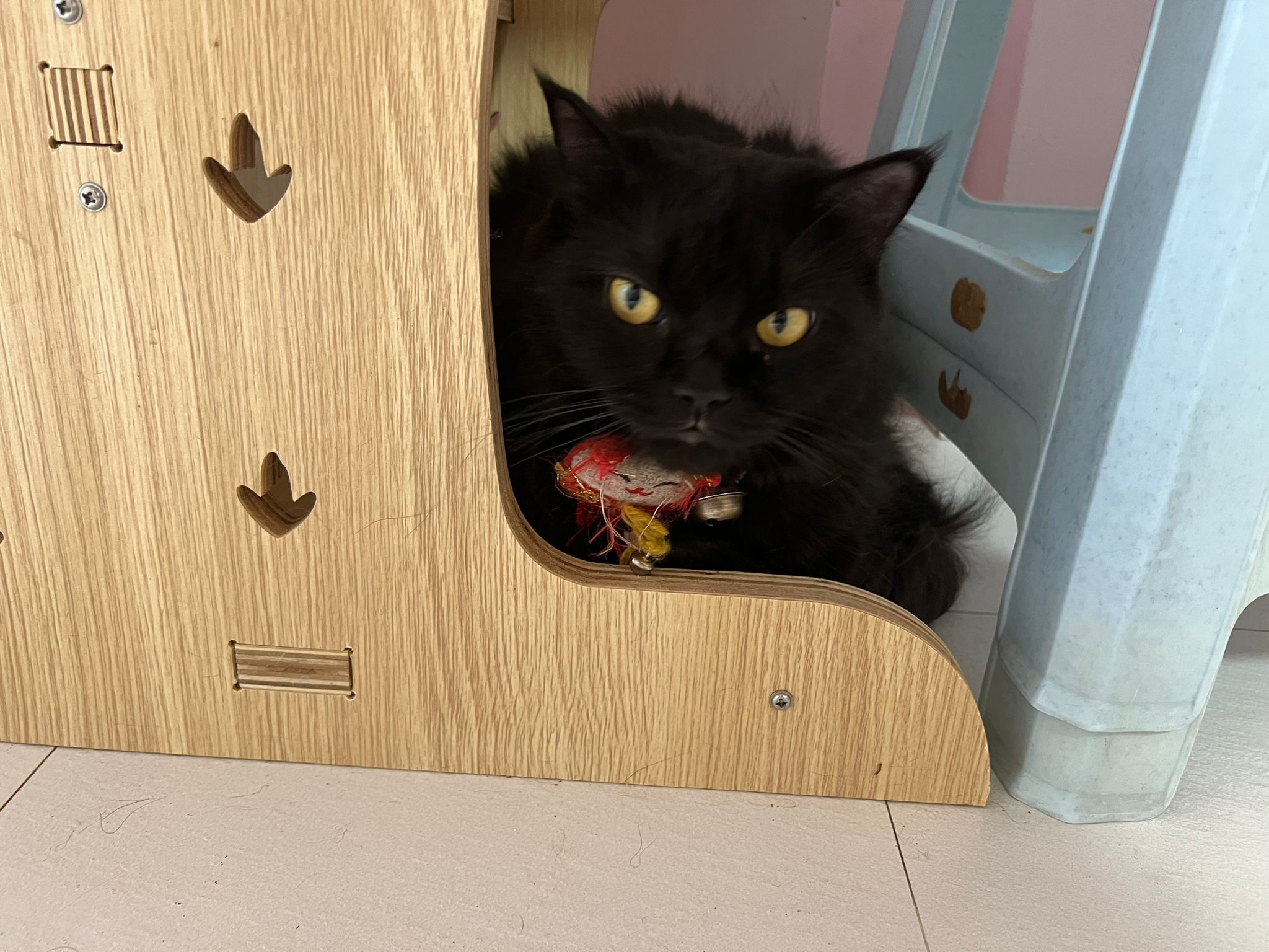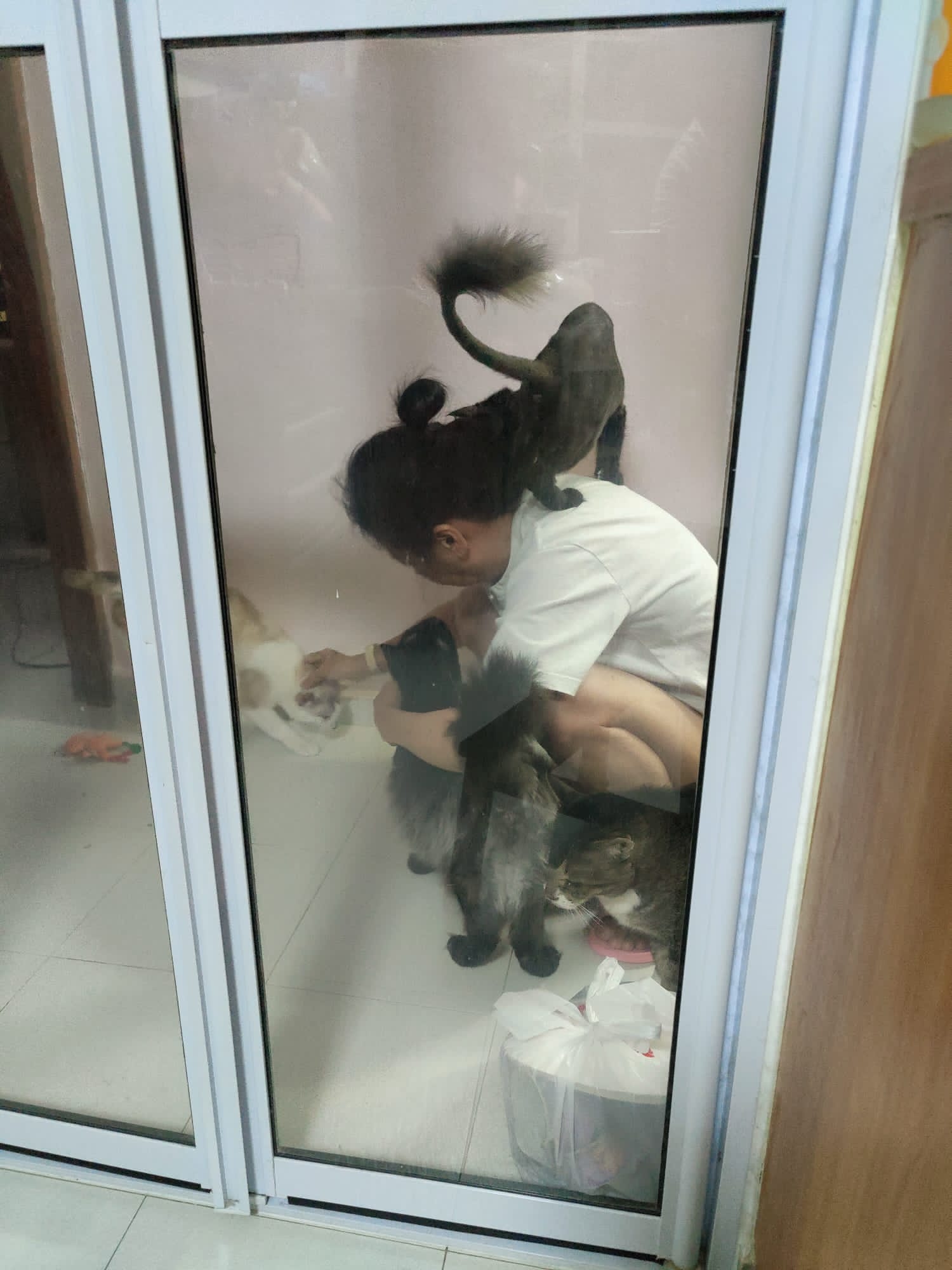 She is getting faster. Will look out for lobang between our legs to try to run out of 猫房