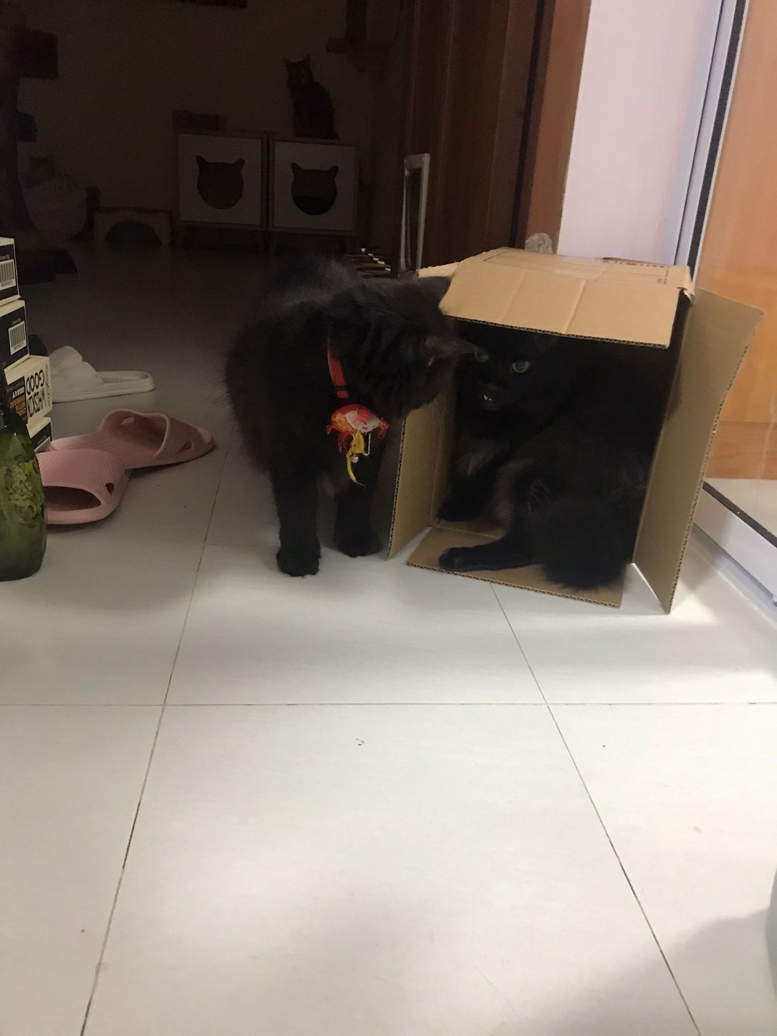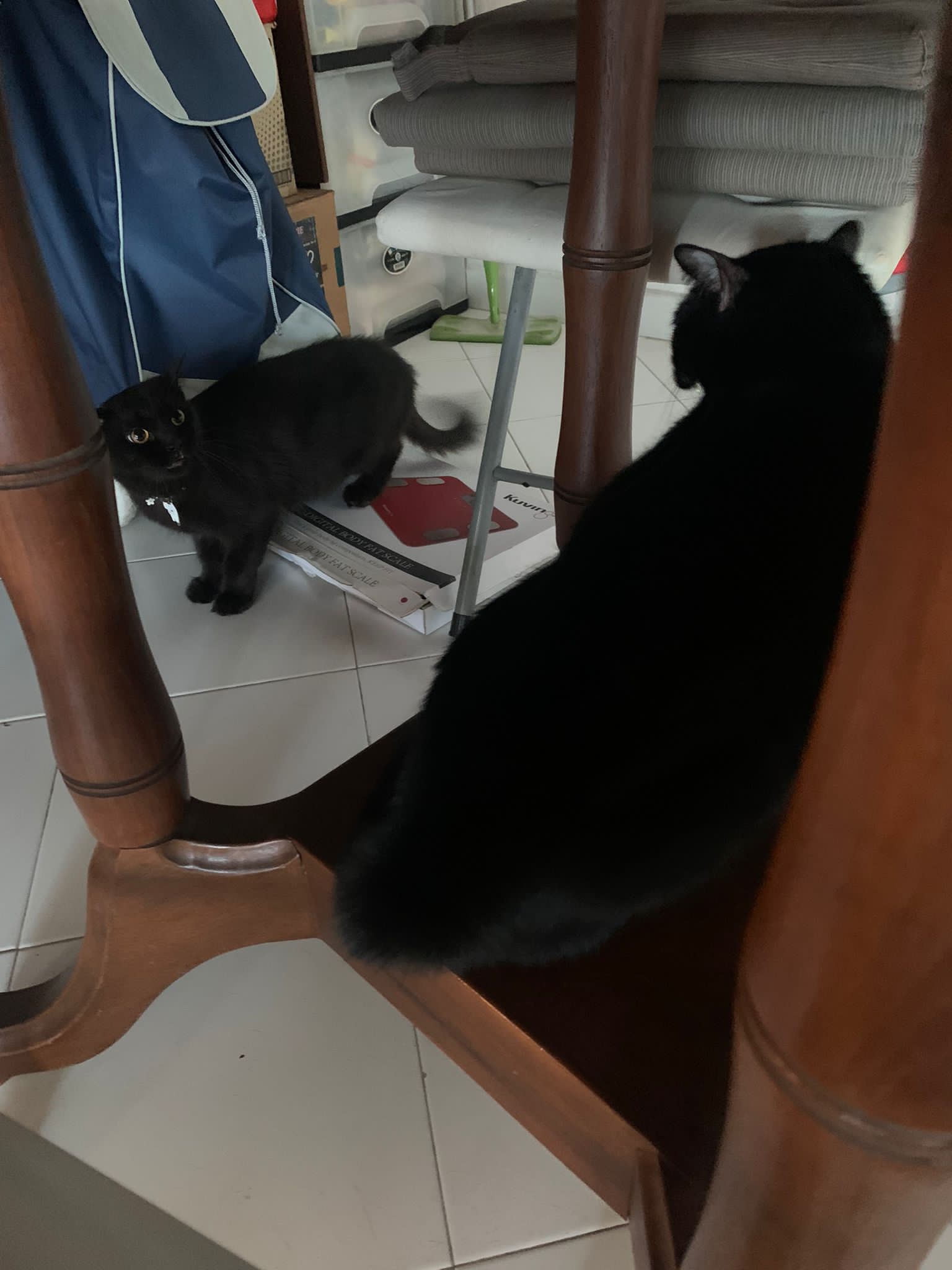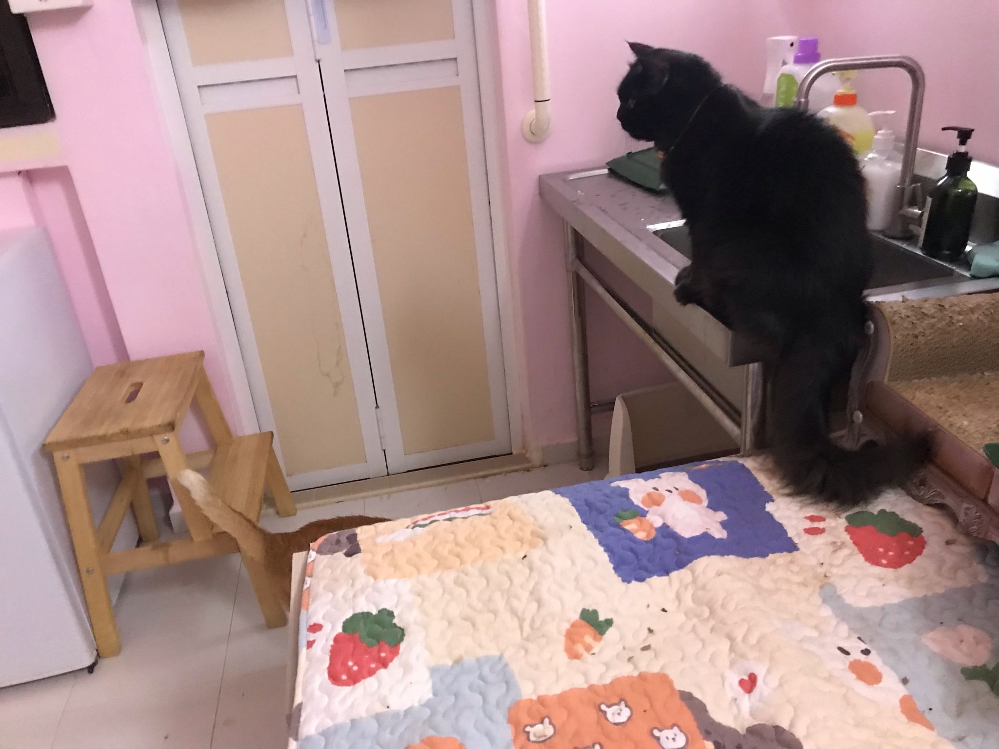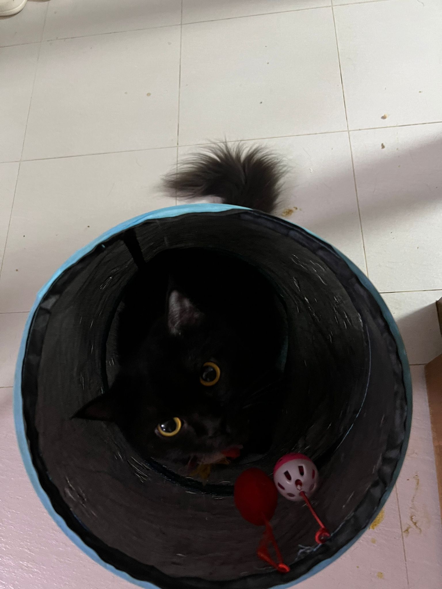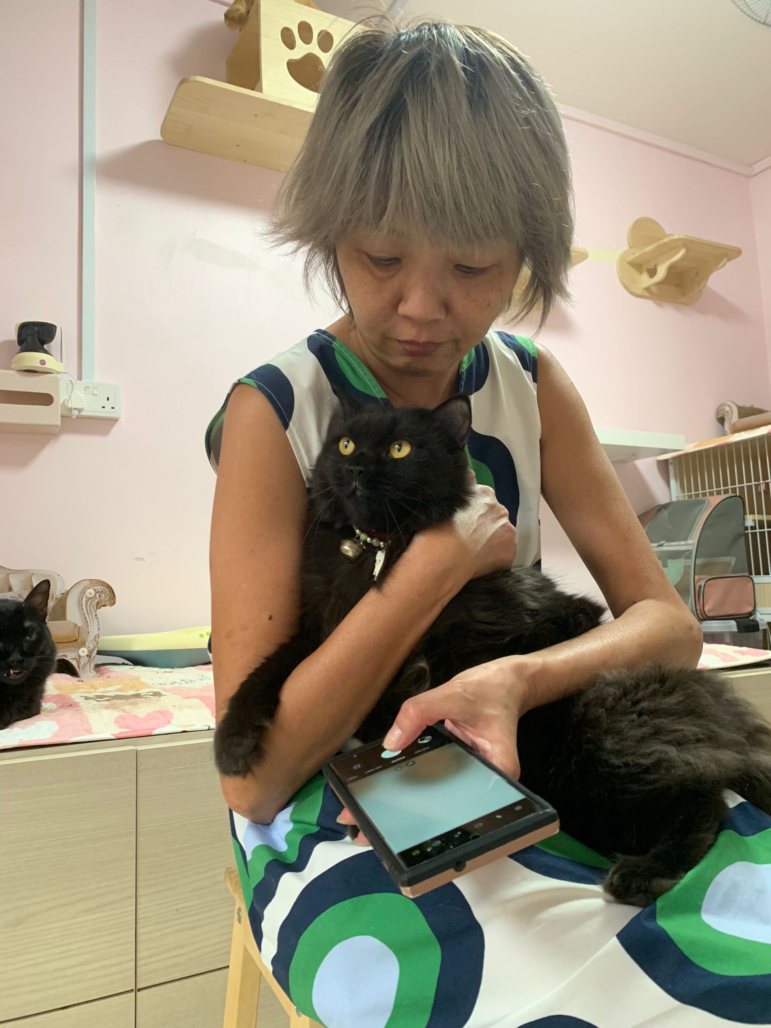 She is getting faster. Will look out for lobang between our legs to try to run out of 猫房