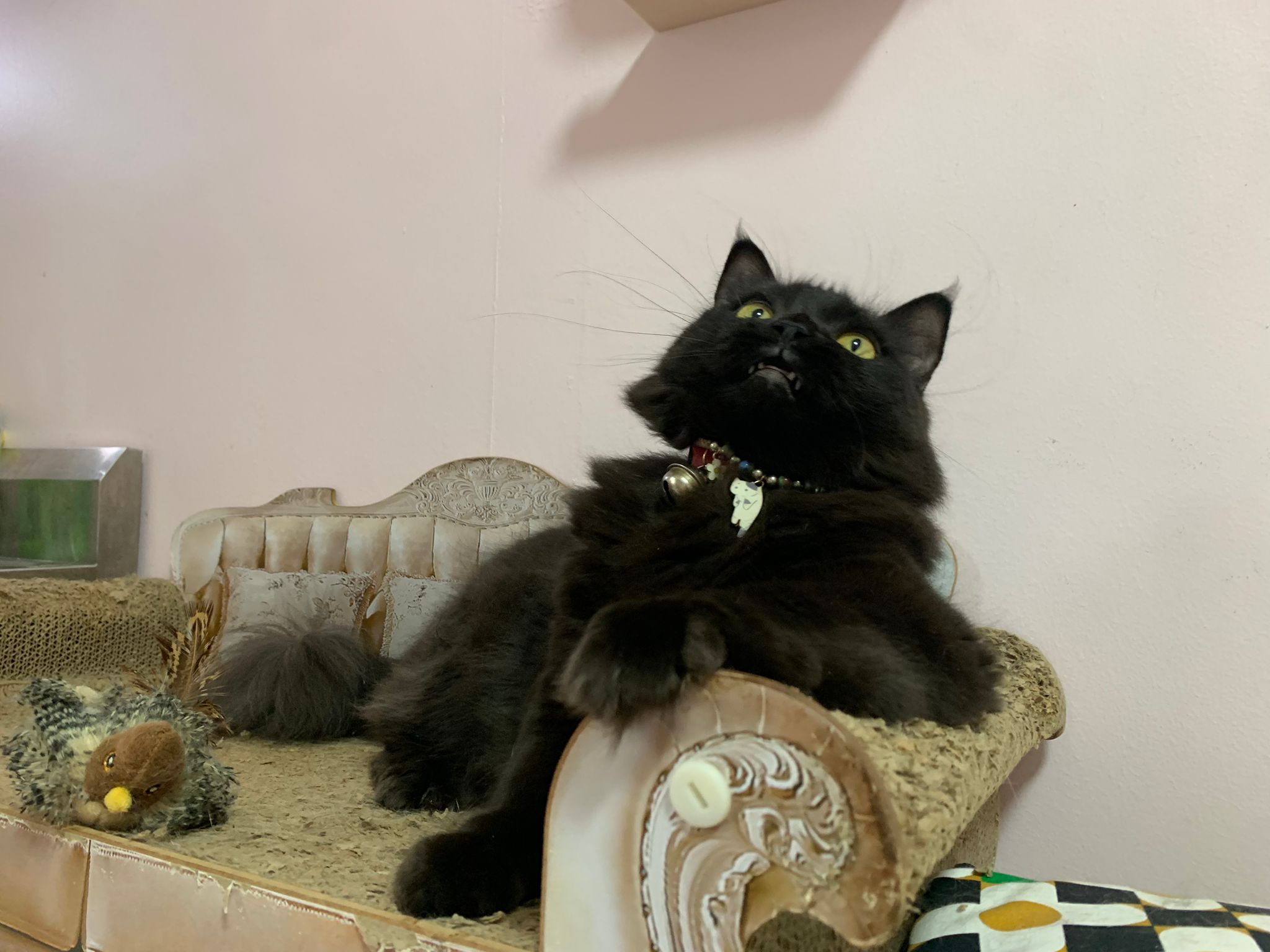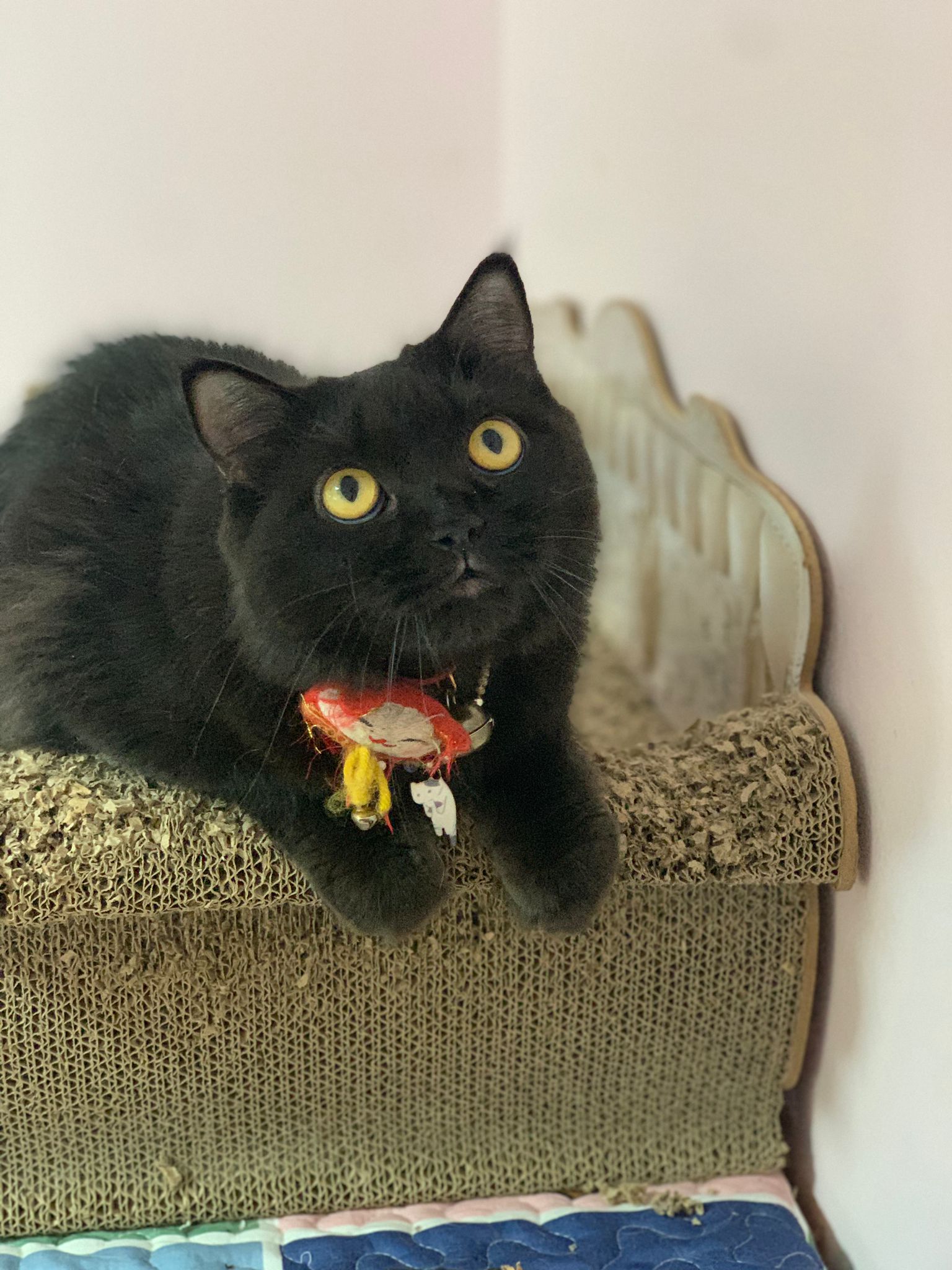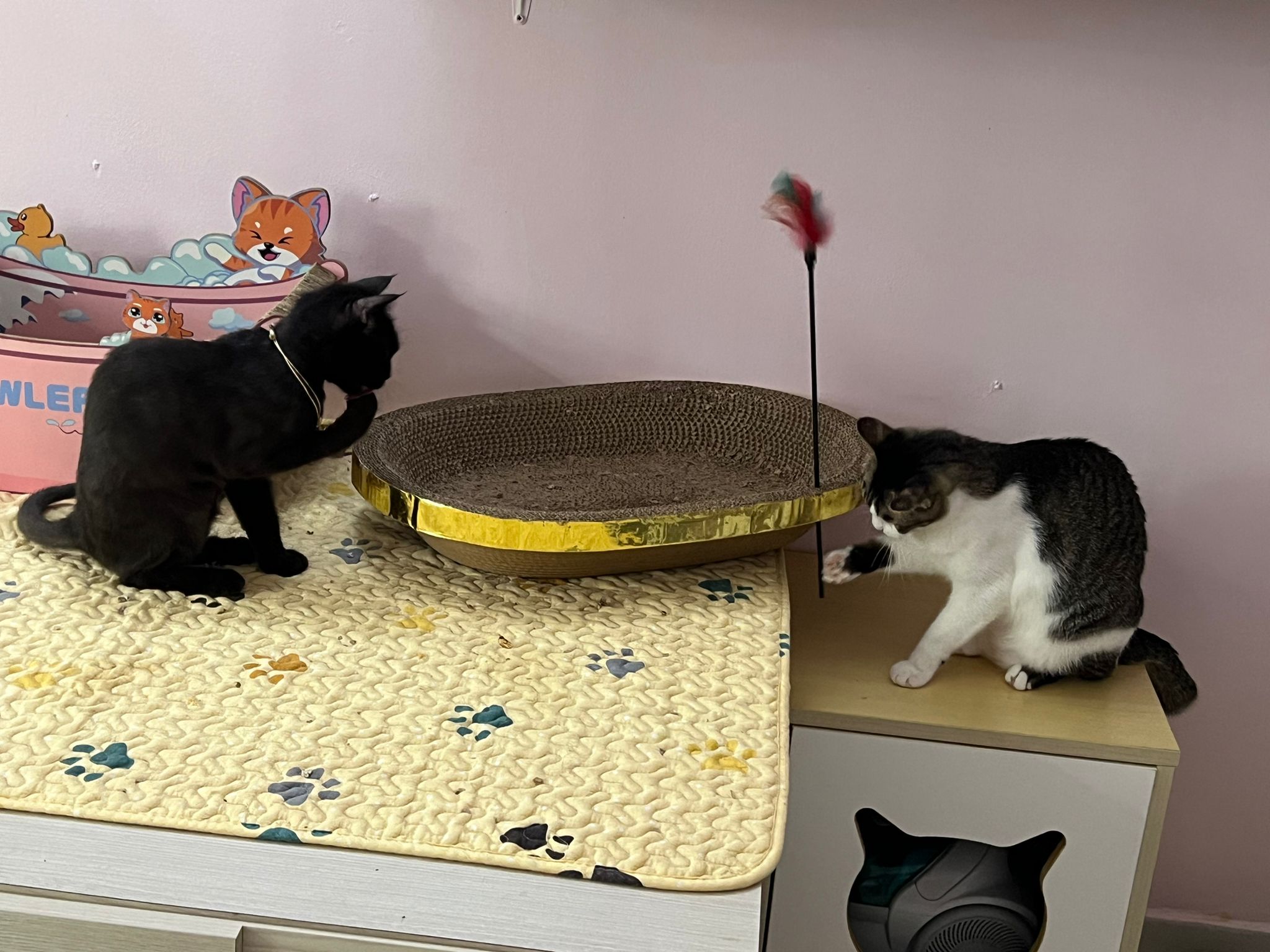Given her scratchboard, feather n etc – she like and she got play.