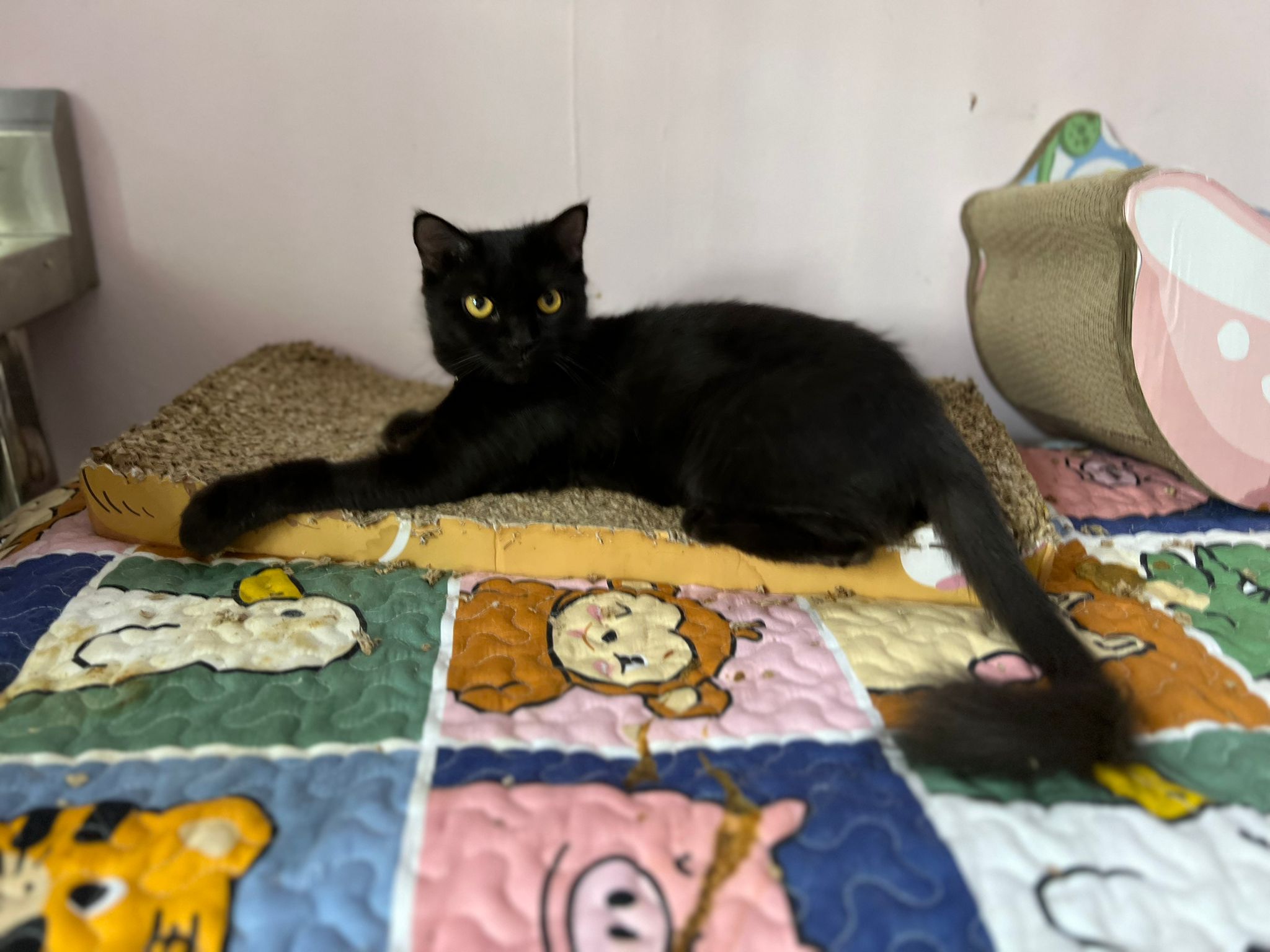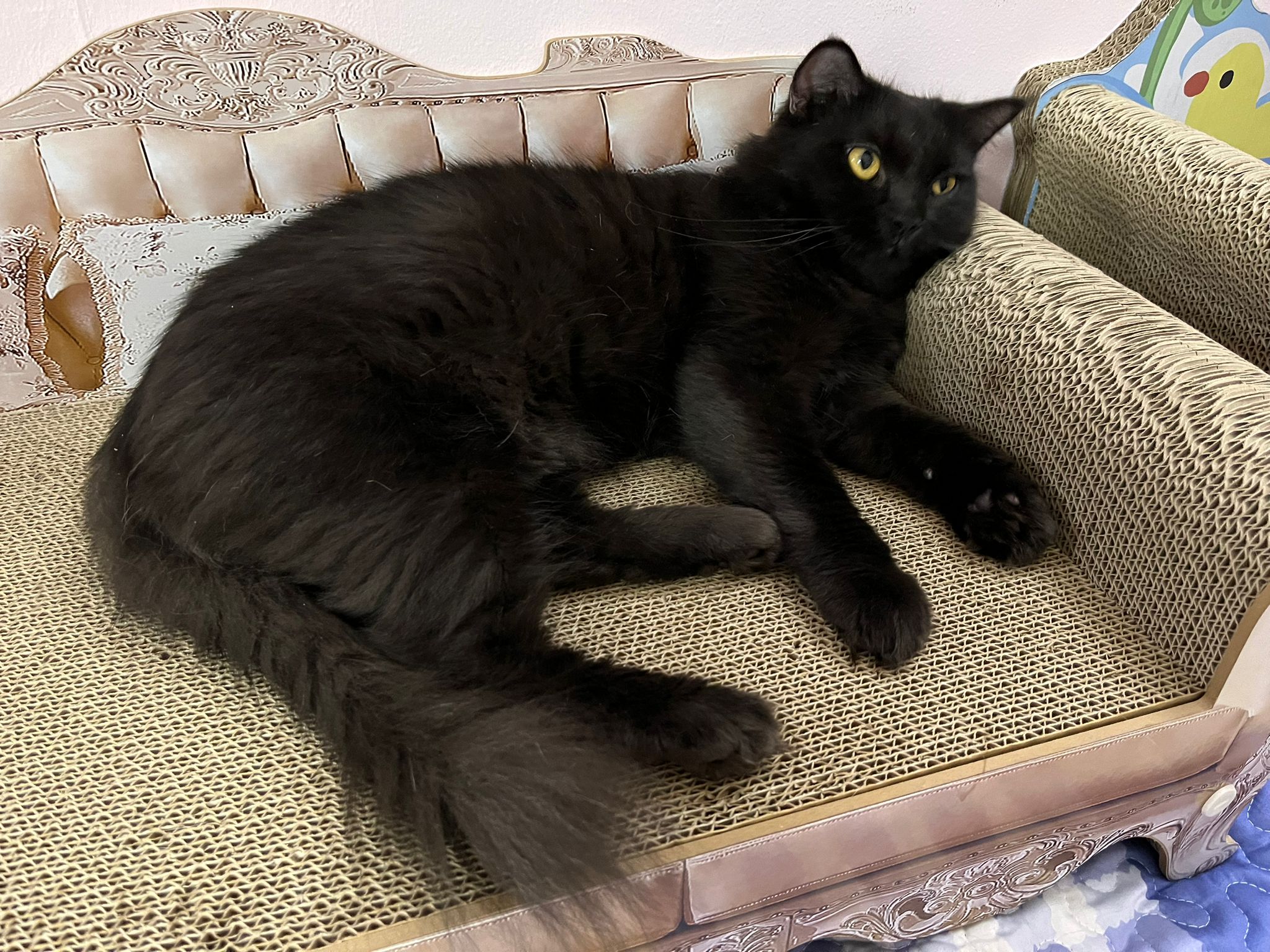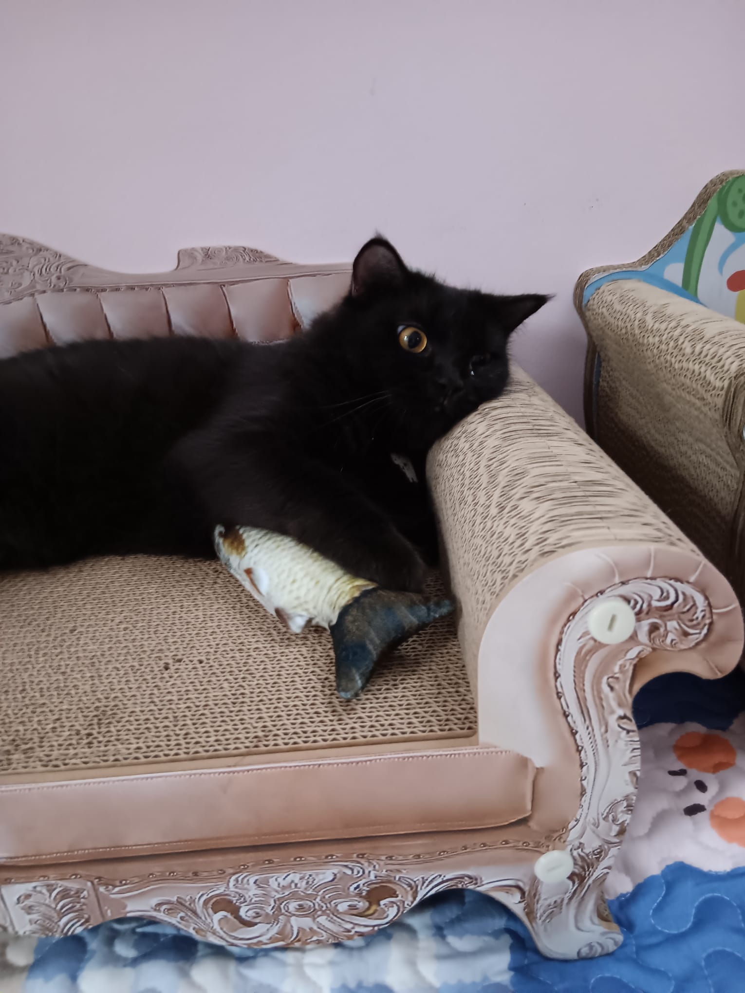 Given her scratchboard, feather n etc – she like and she got play.