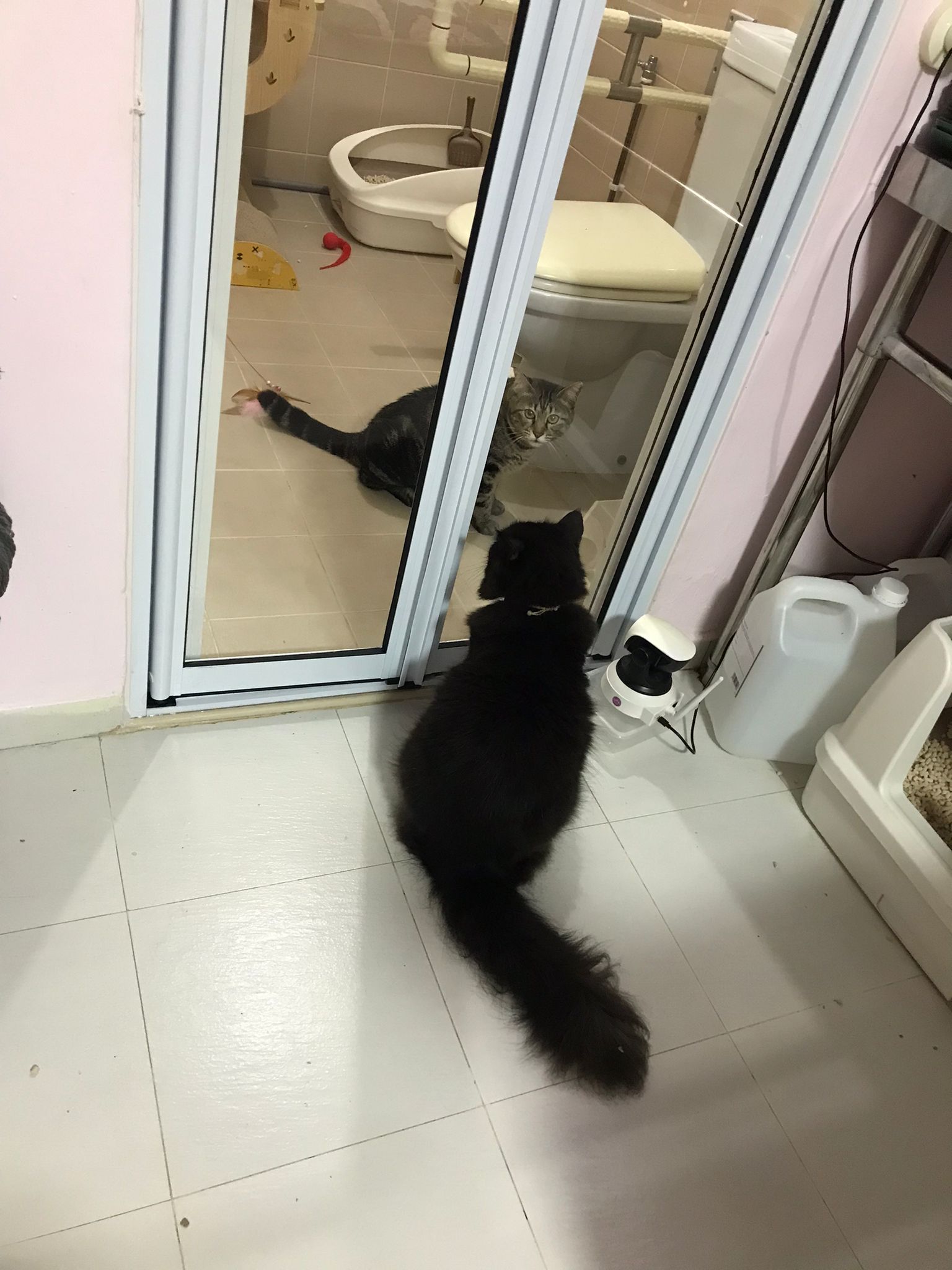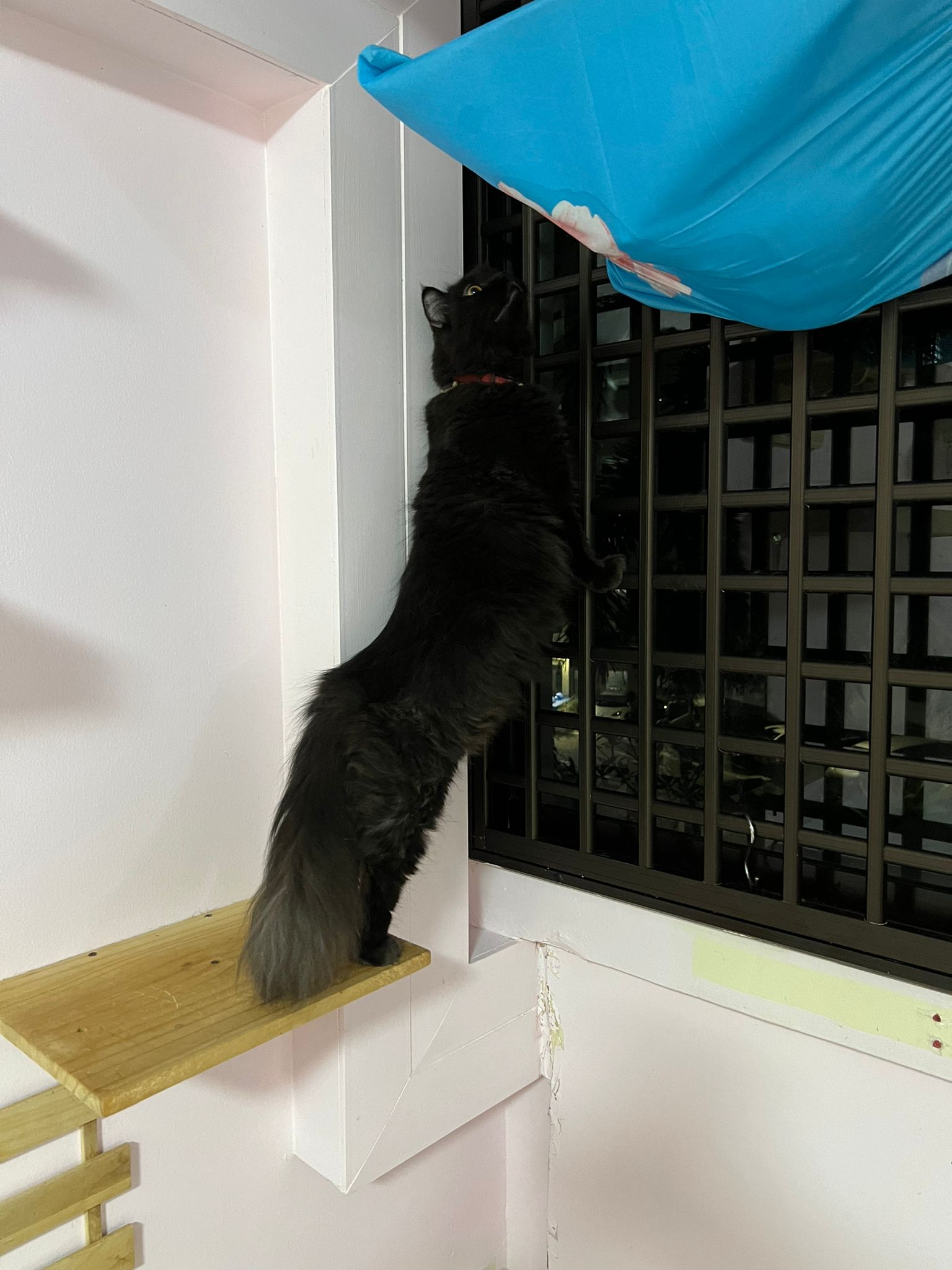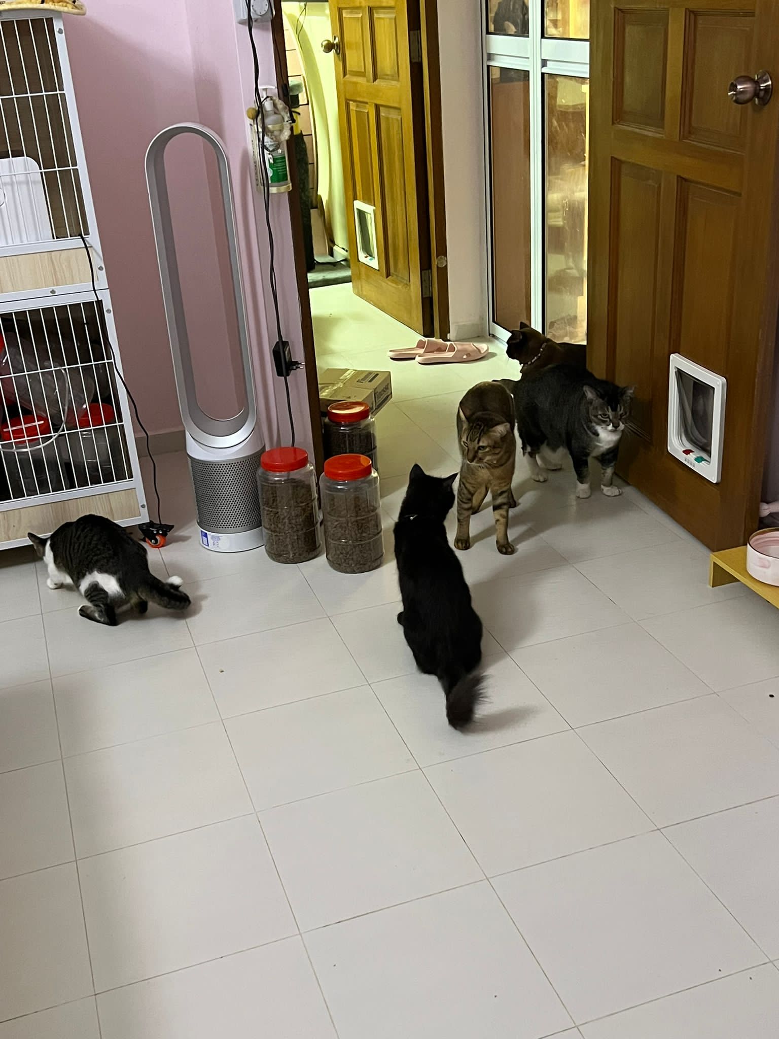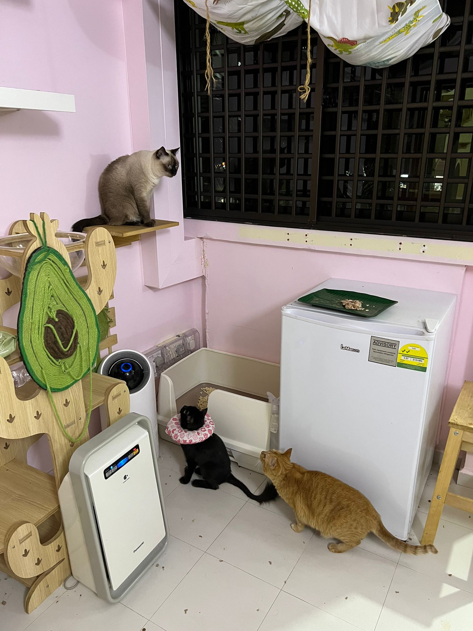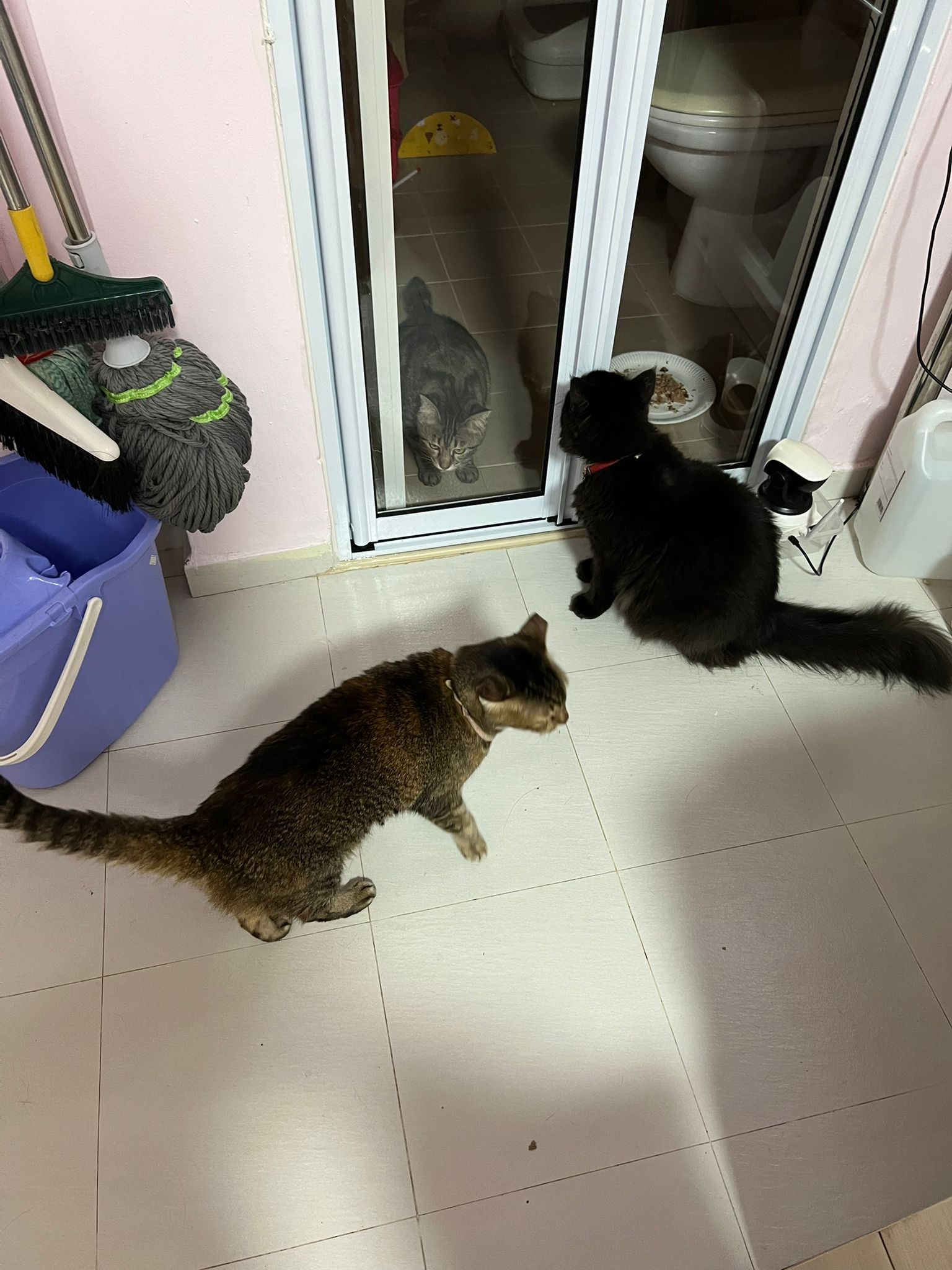 Just now what m I thinking, I forgot to check toilet, I did look at the door n yet I didn’t check. Tell pa mama to tell pa papa send me photo of it. Toilet window might be close most of the time, but if ever need to air for smell can be the most dangerous place since the cats love going toilet. Today noted that the cats can’t go to rooms (bed room and exercise room) – that’s safer. living room big enough to play dash and hide Liao