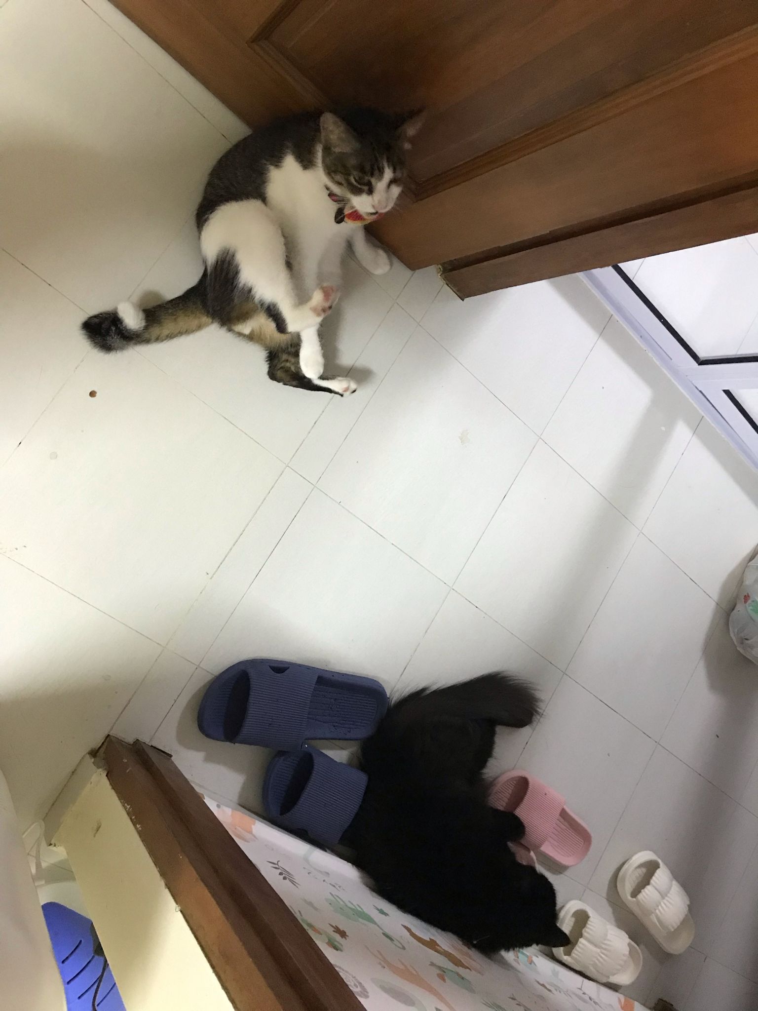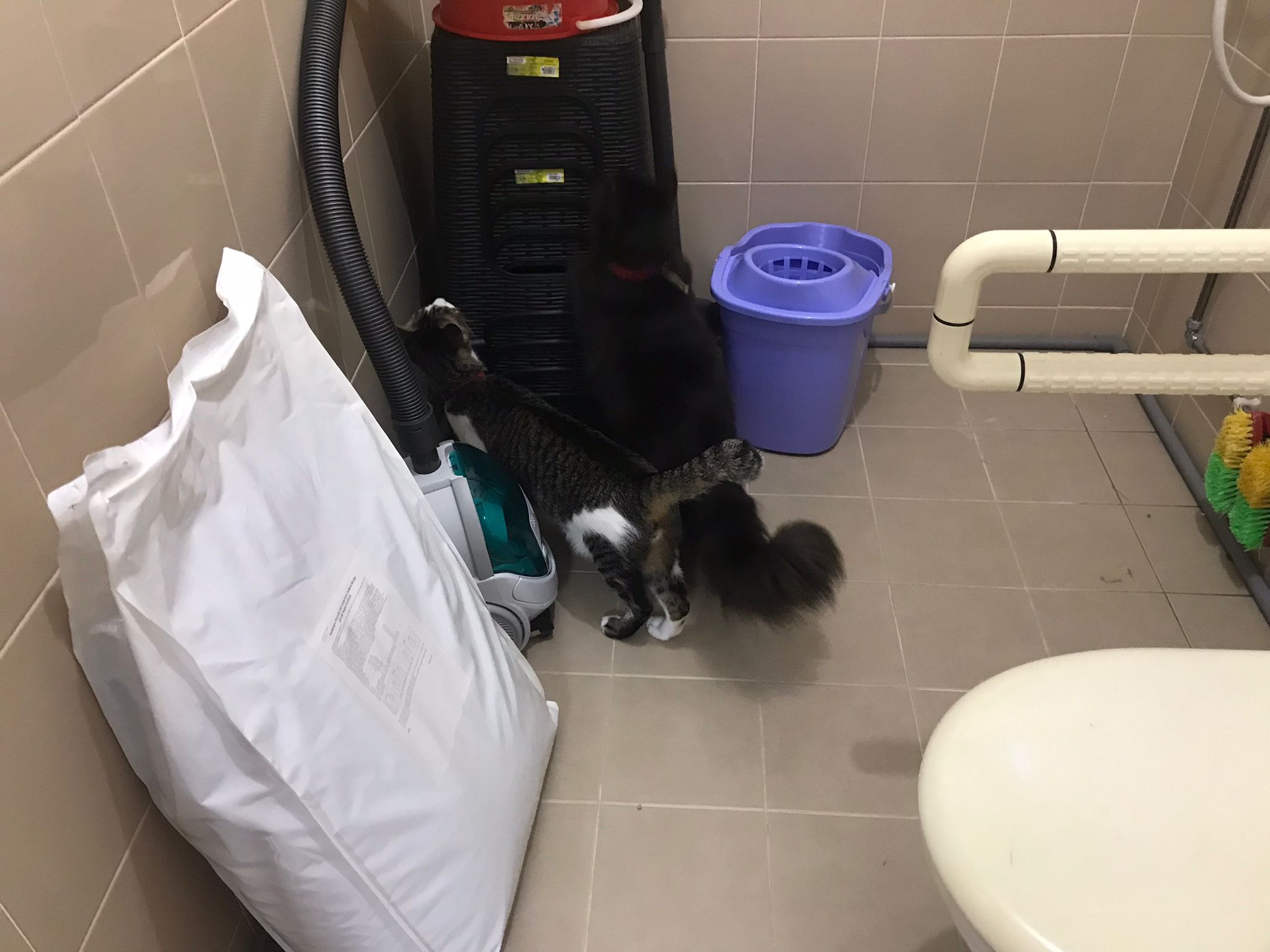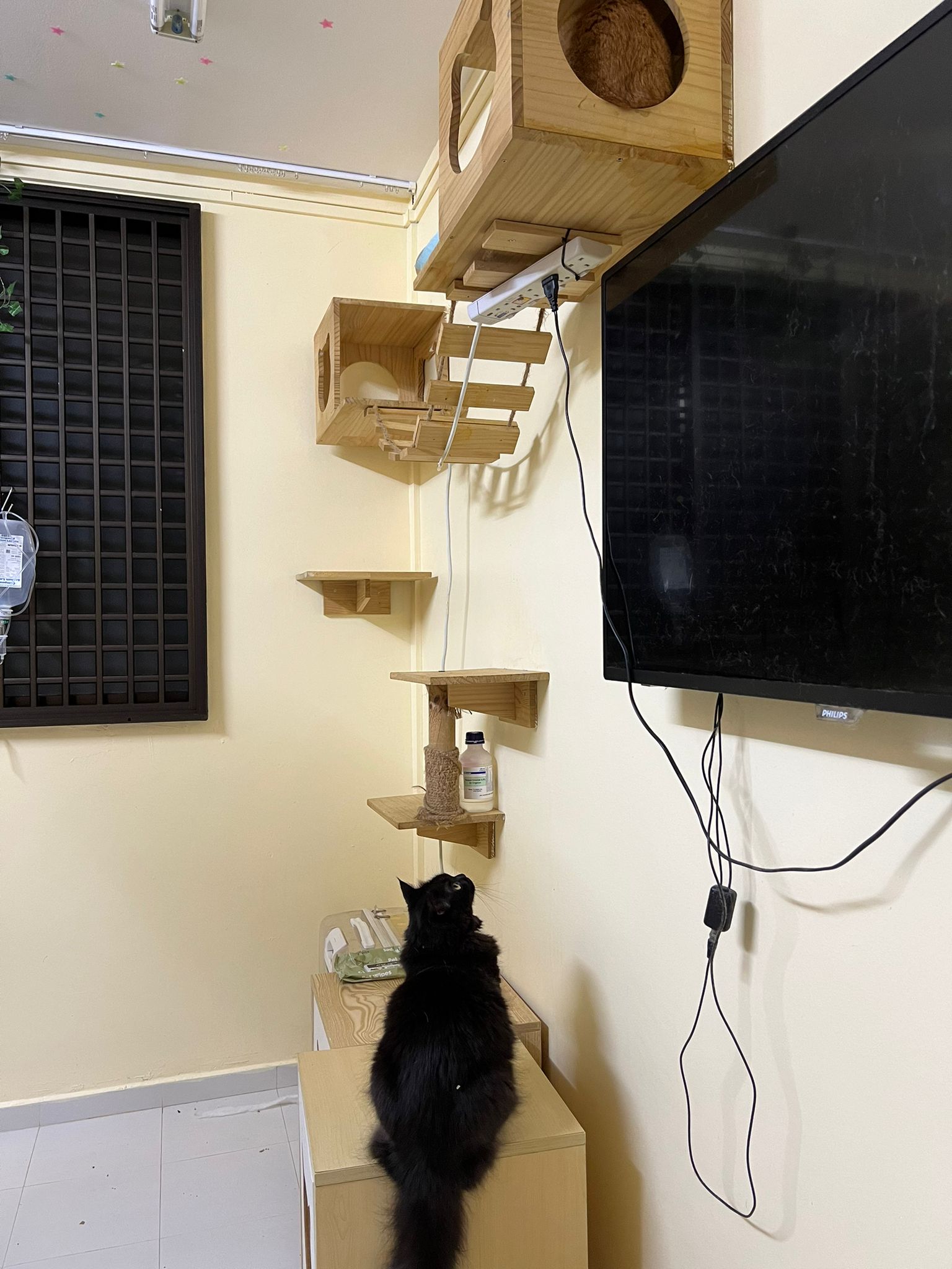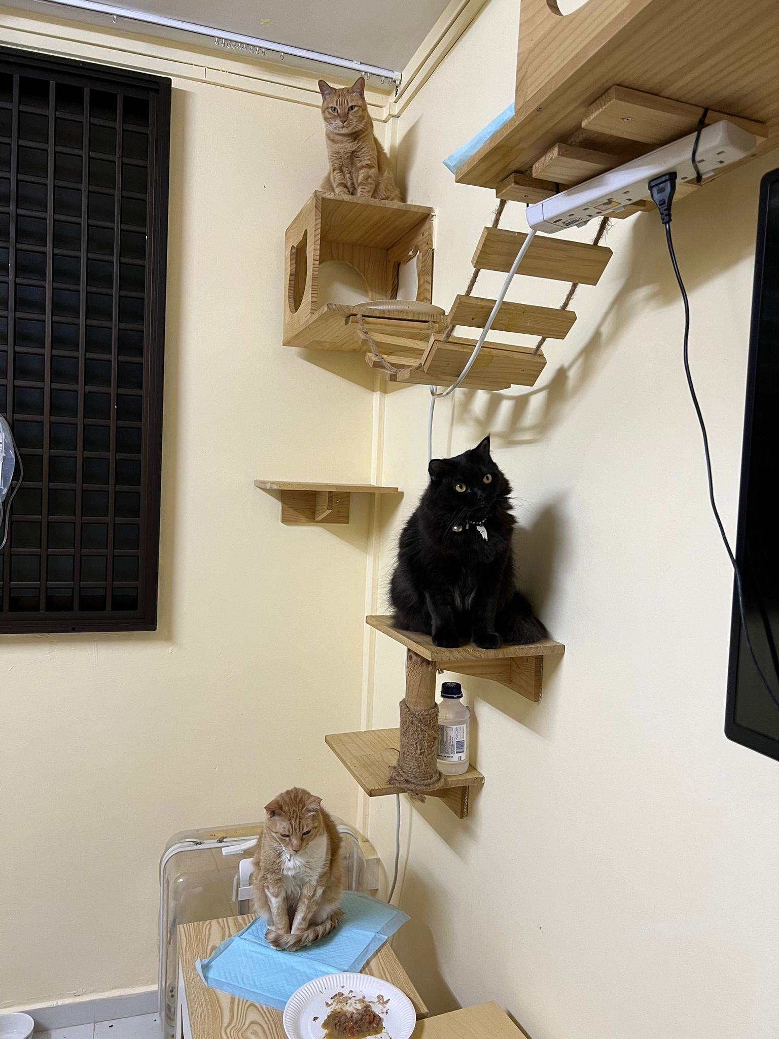 Just now what m I thinking, I forgot to check toilet, I did look at the door n yet I didn’t check. Tell pa mama to tell pa papa send me photo of it. Toilet window might be close most of the time, but if ever need to air for smell can be the most dangerous place since the cats love going toilet. Today noted that the cats can’t go to rooms (bed room and exercise room) – that’s safer. living room big enough to play dash and hide Liao