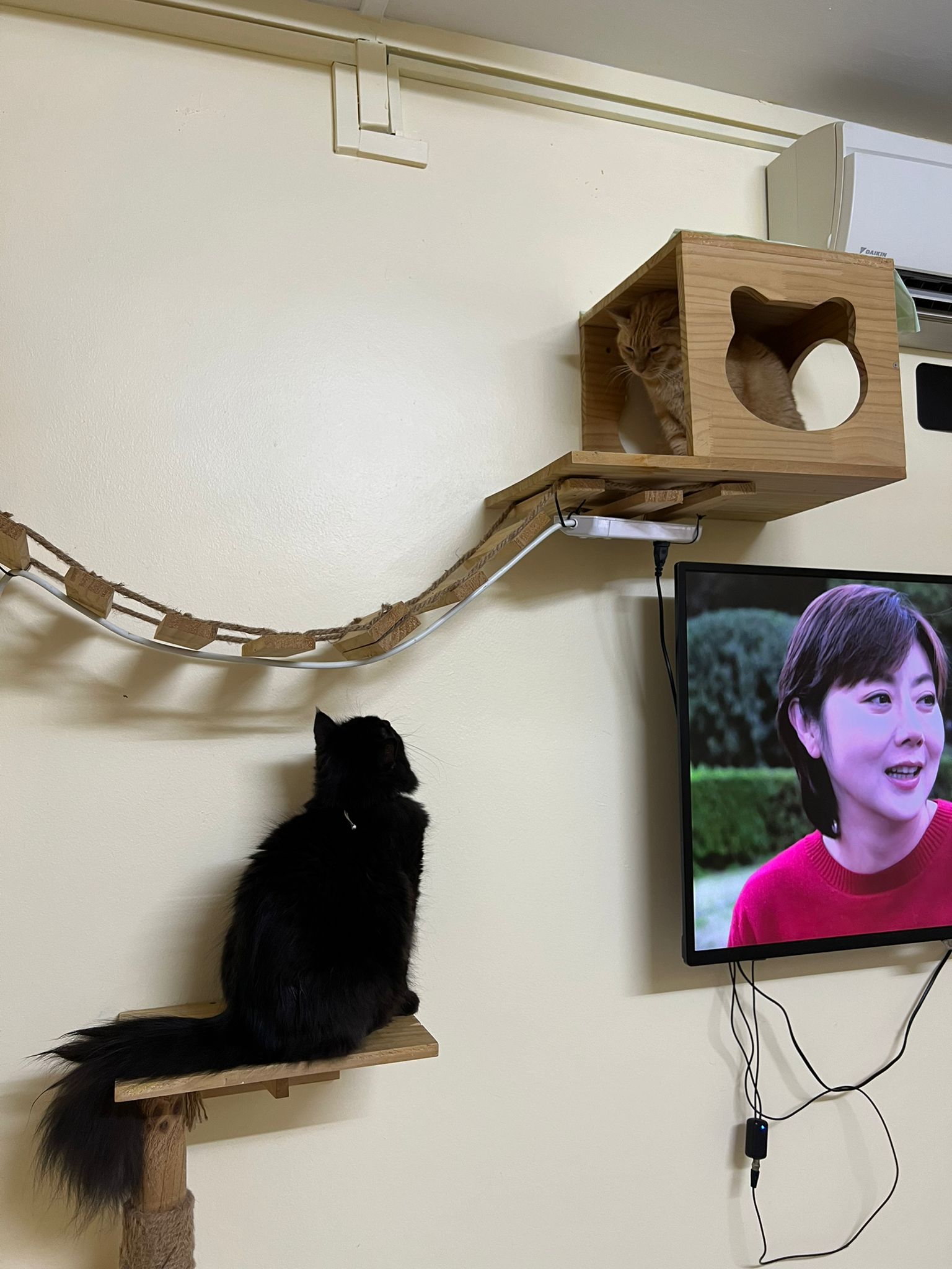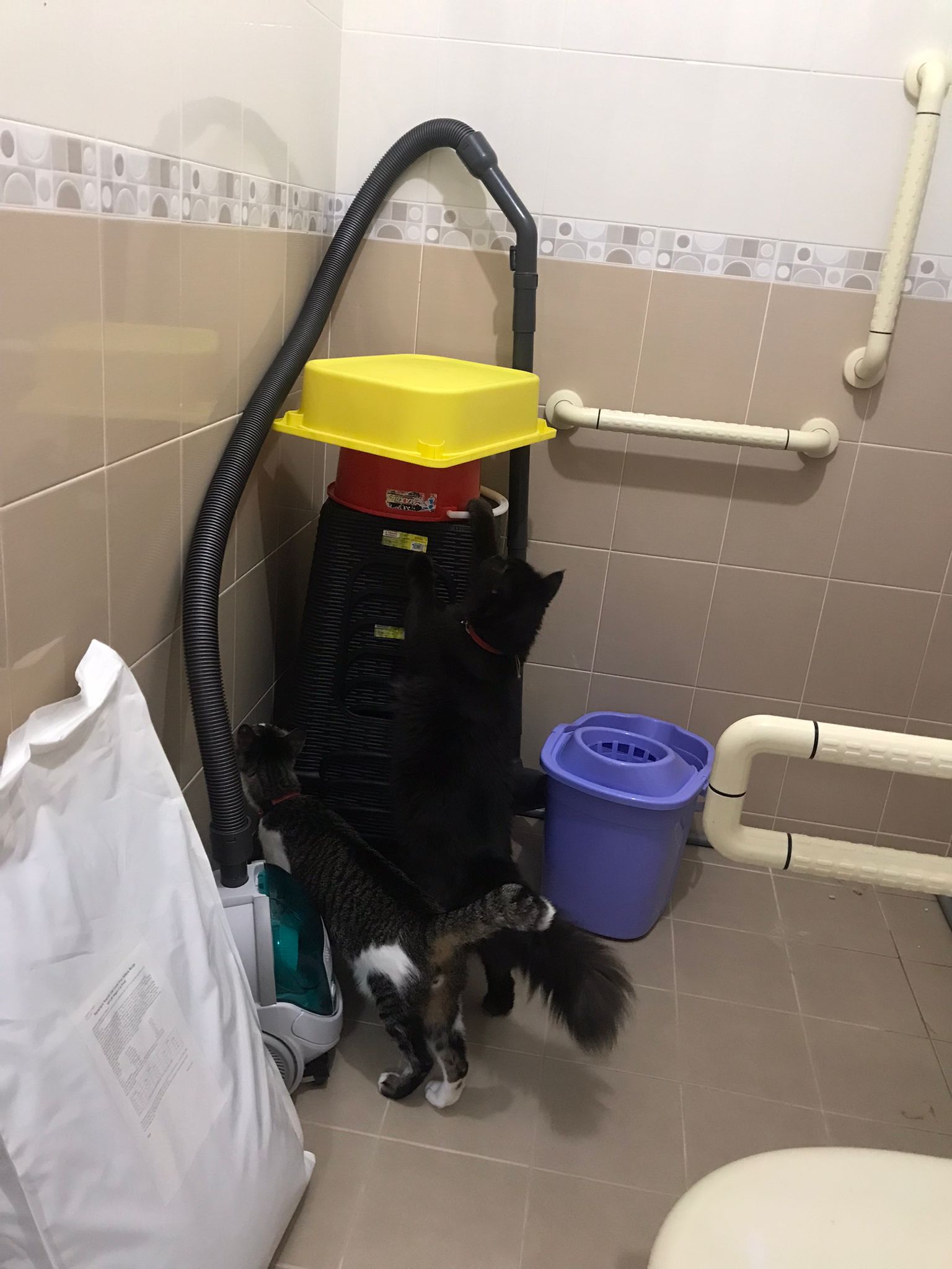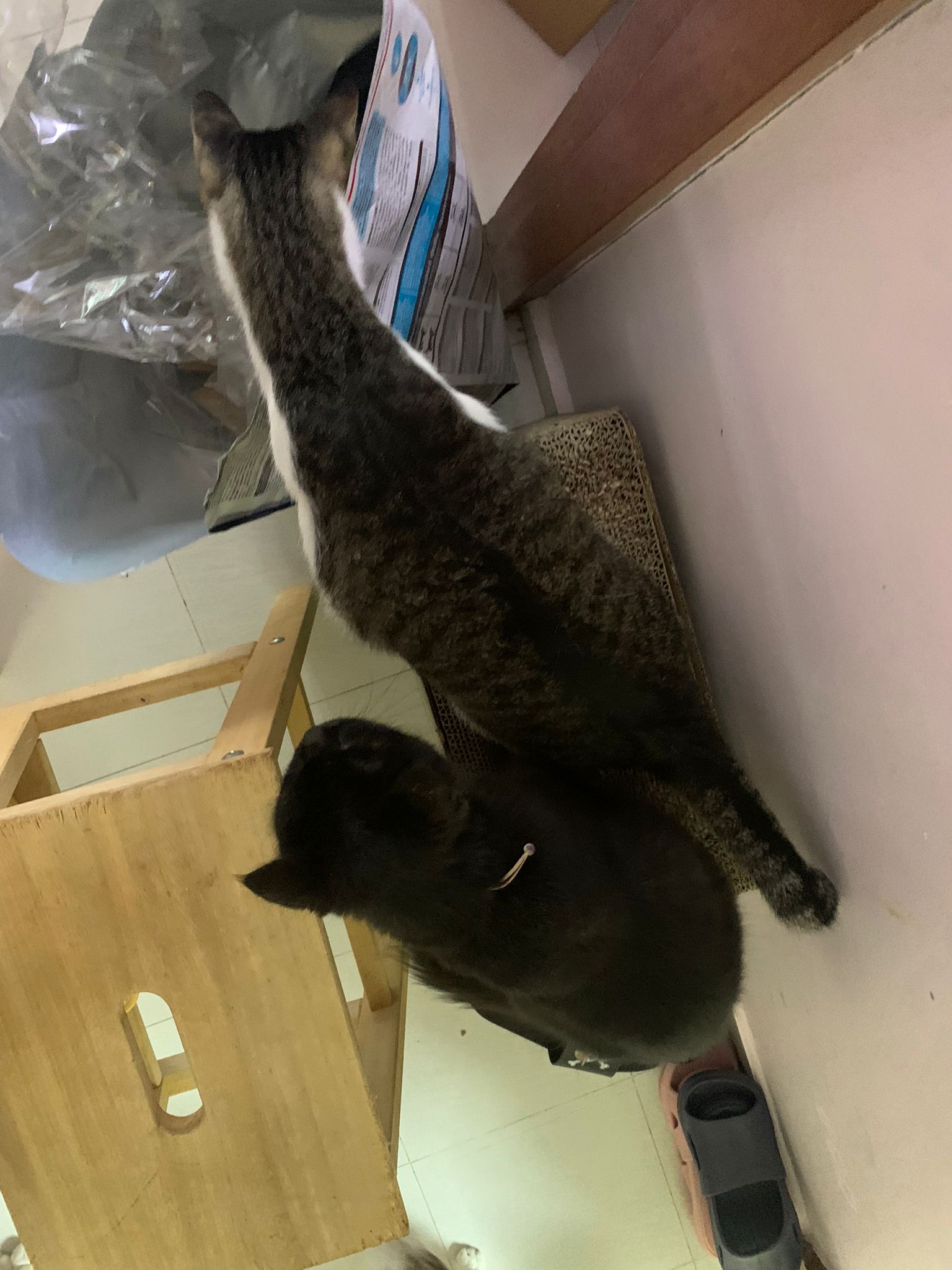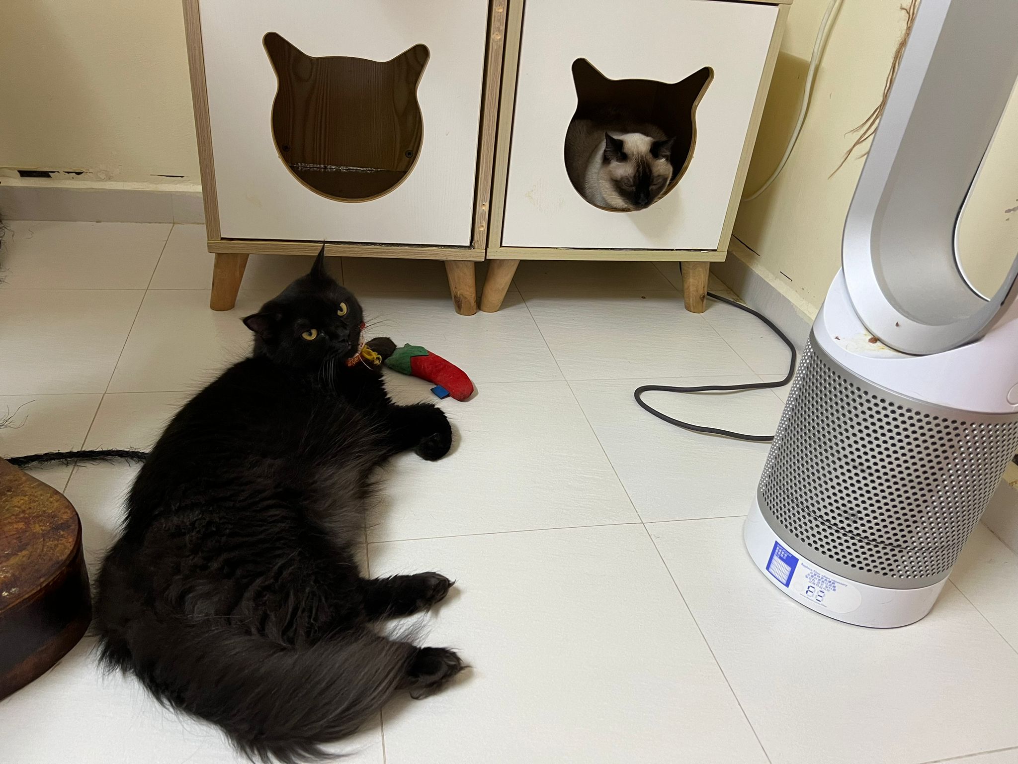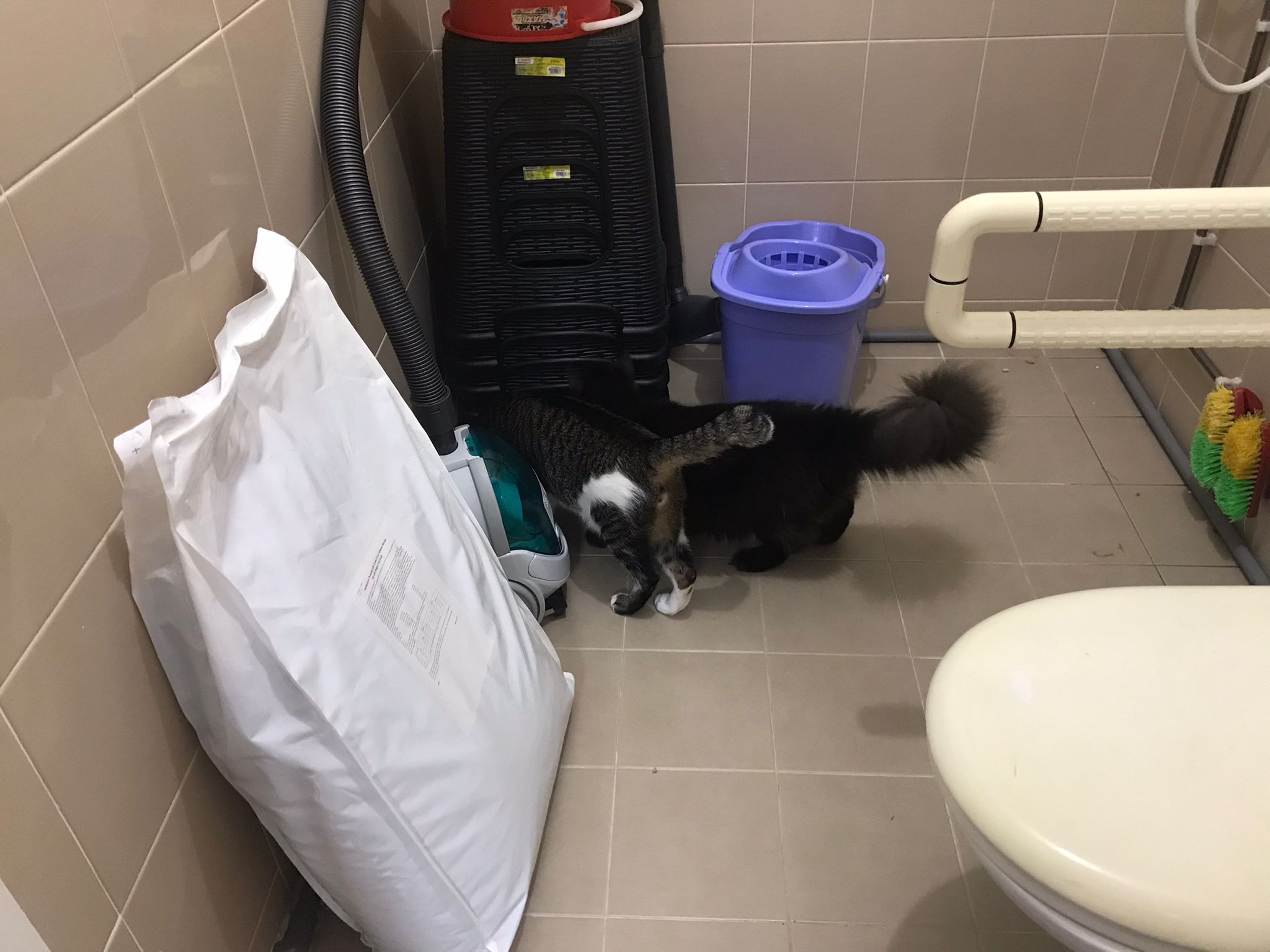 Just now what m I thinking, I forgot to check toilet, I did look at the door n yet I didn’t check. Tell pa mama to tell pa papa send me photo of it. Toilet window might be close most of the time, but if ever need to air for smell can be the most dangerous place since the cats love going toilet. Today noted that the cats can’t go to rooms (bed room and exercise room) – that’s safer. living room big enough to play dash and hide Liao