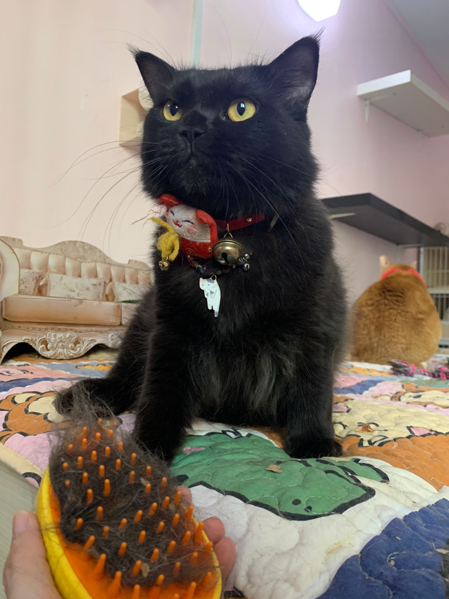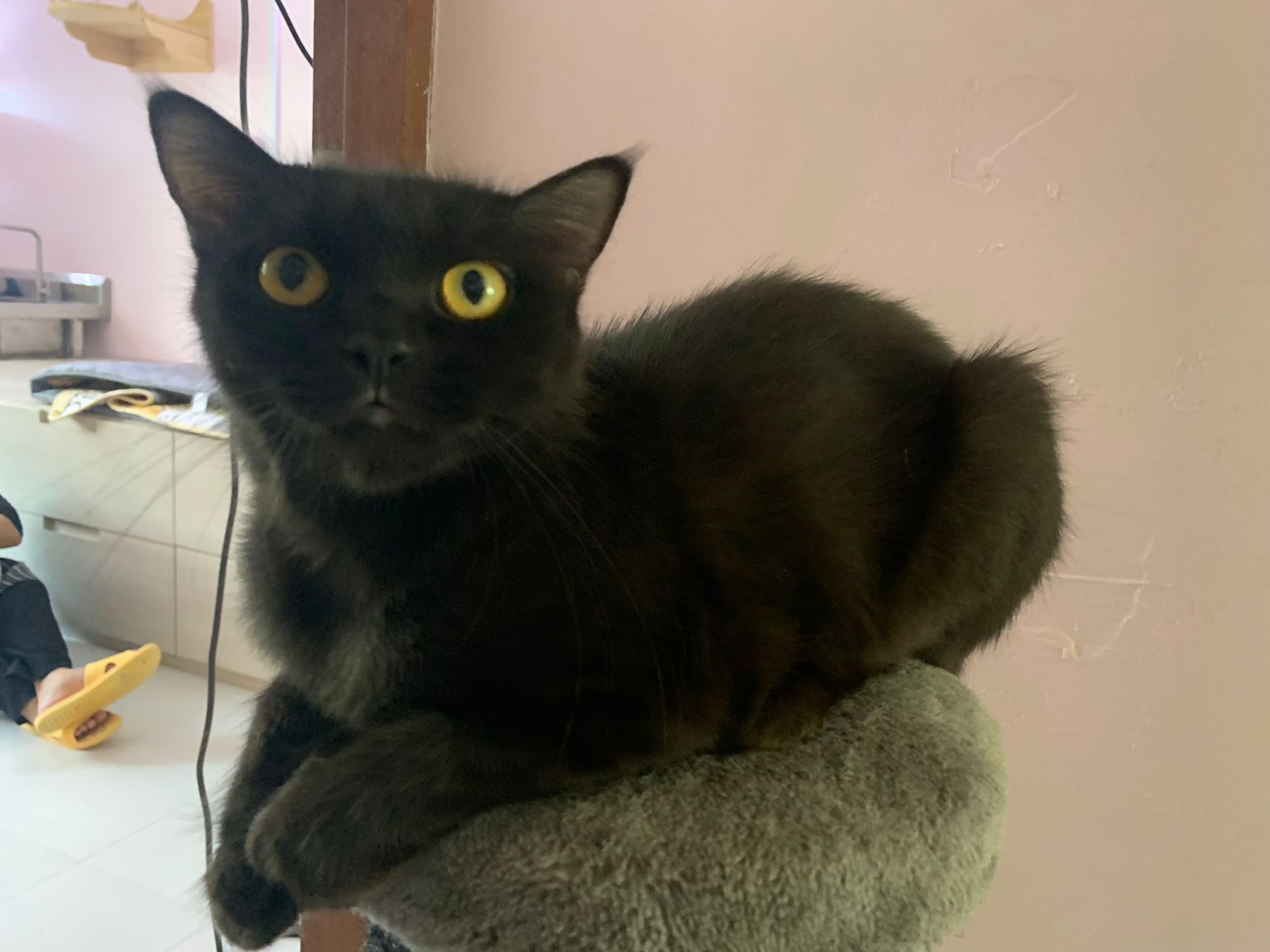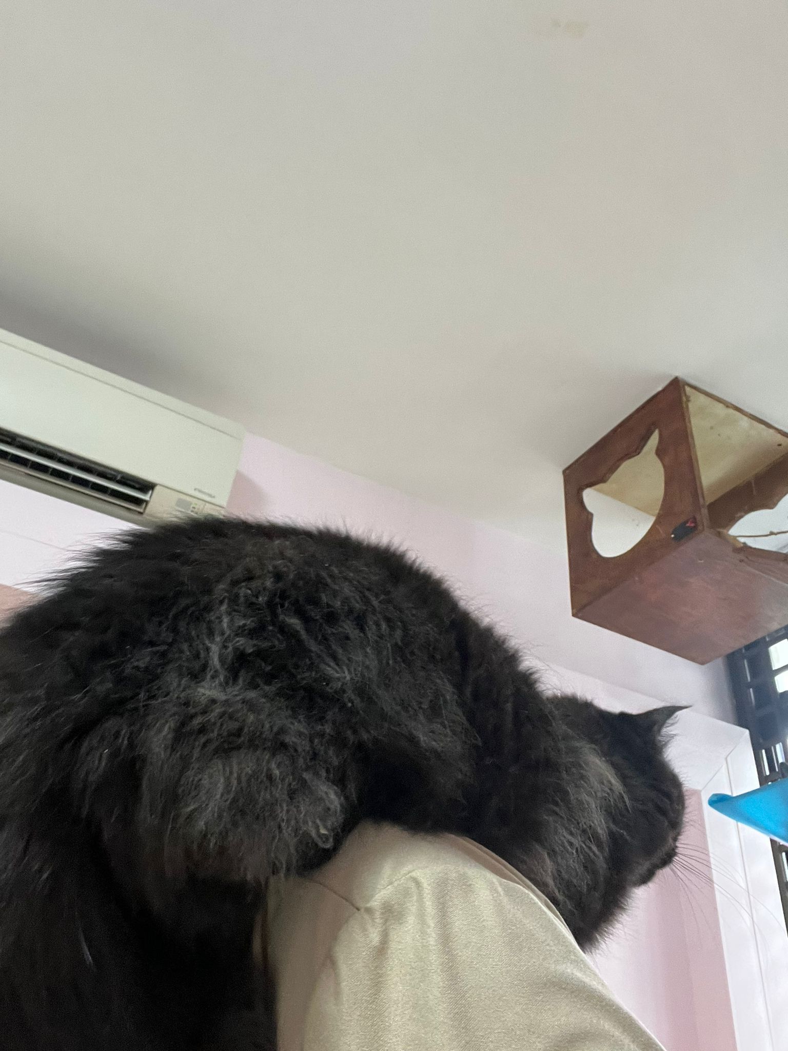 she is comfy and meow is cute. sigh grooming is on 12.9, so most prob 12.9 after grooming I’ll still iso her to 13.9 then will let her free roam alr .