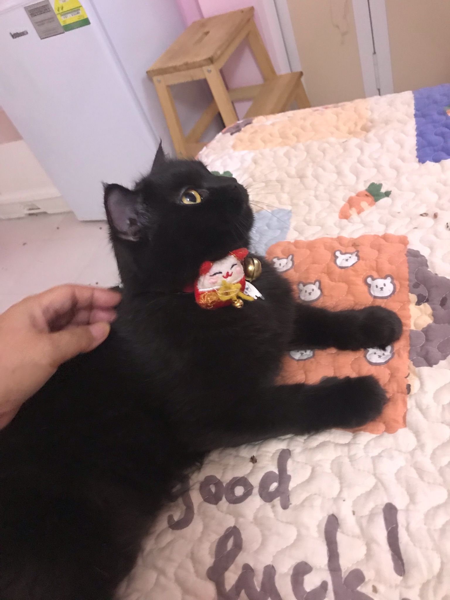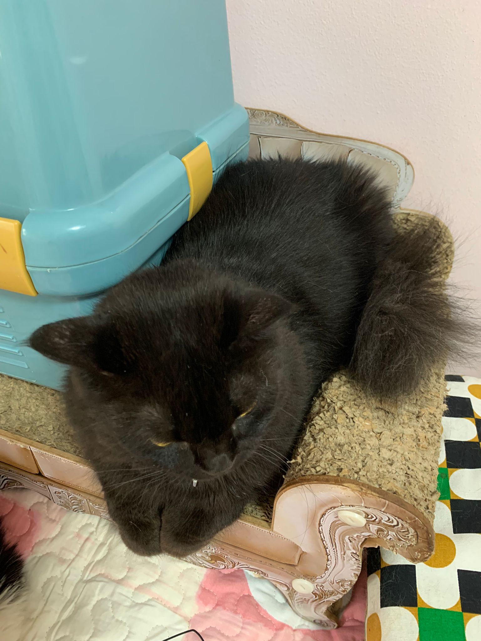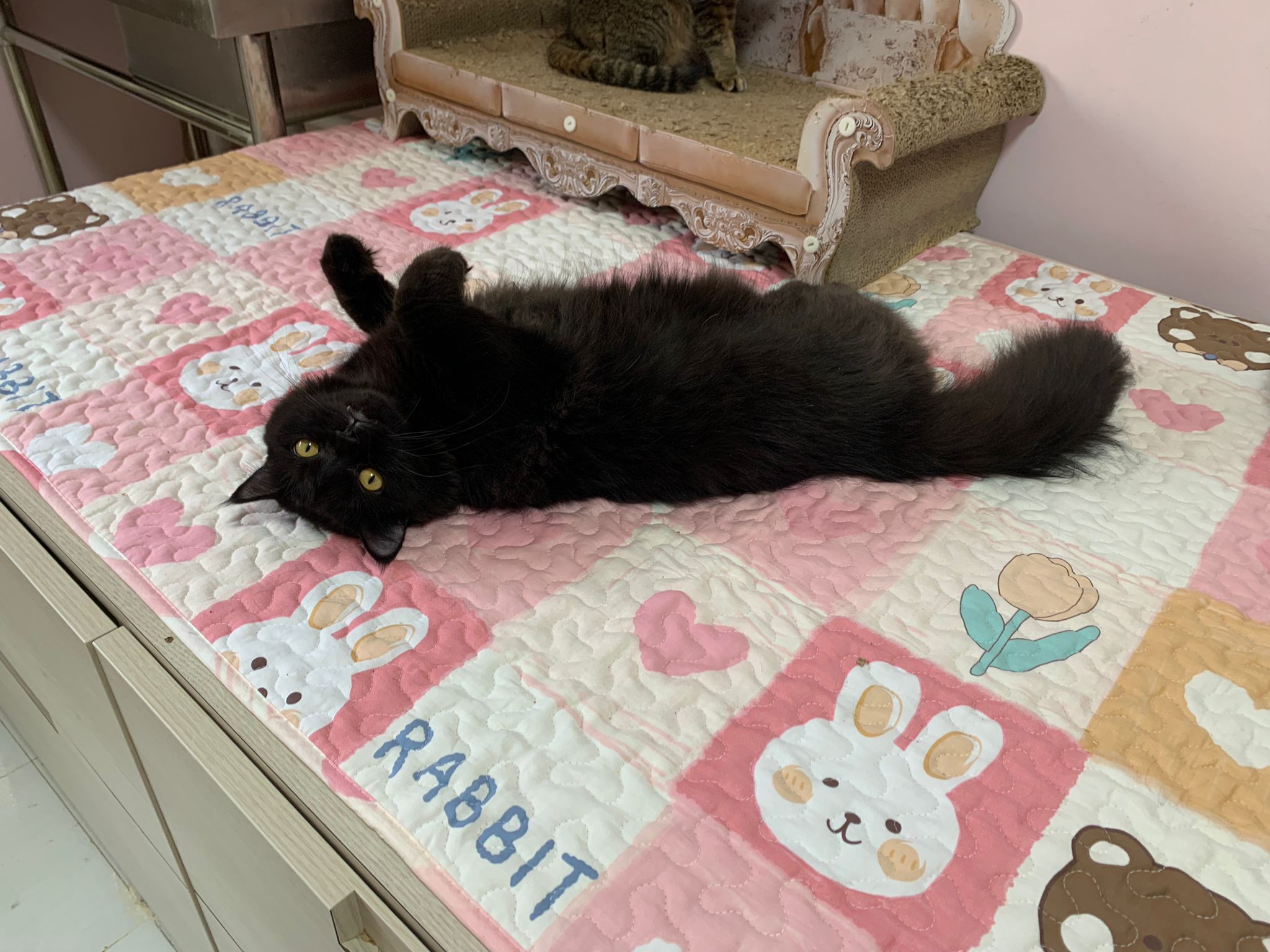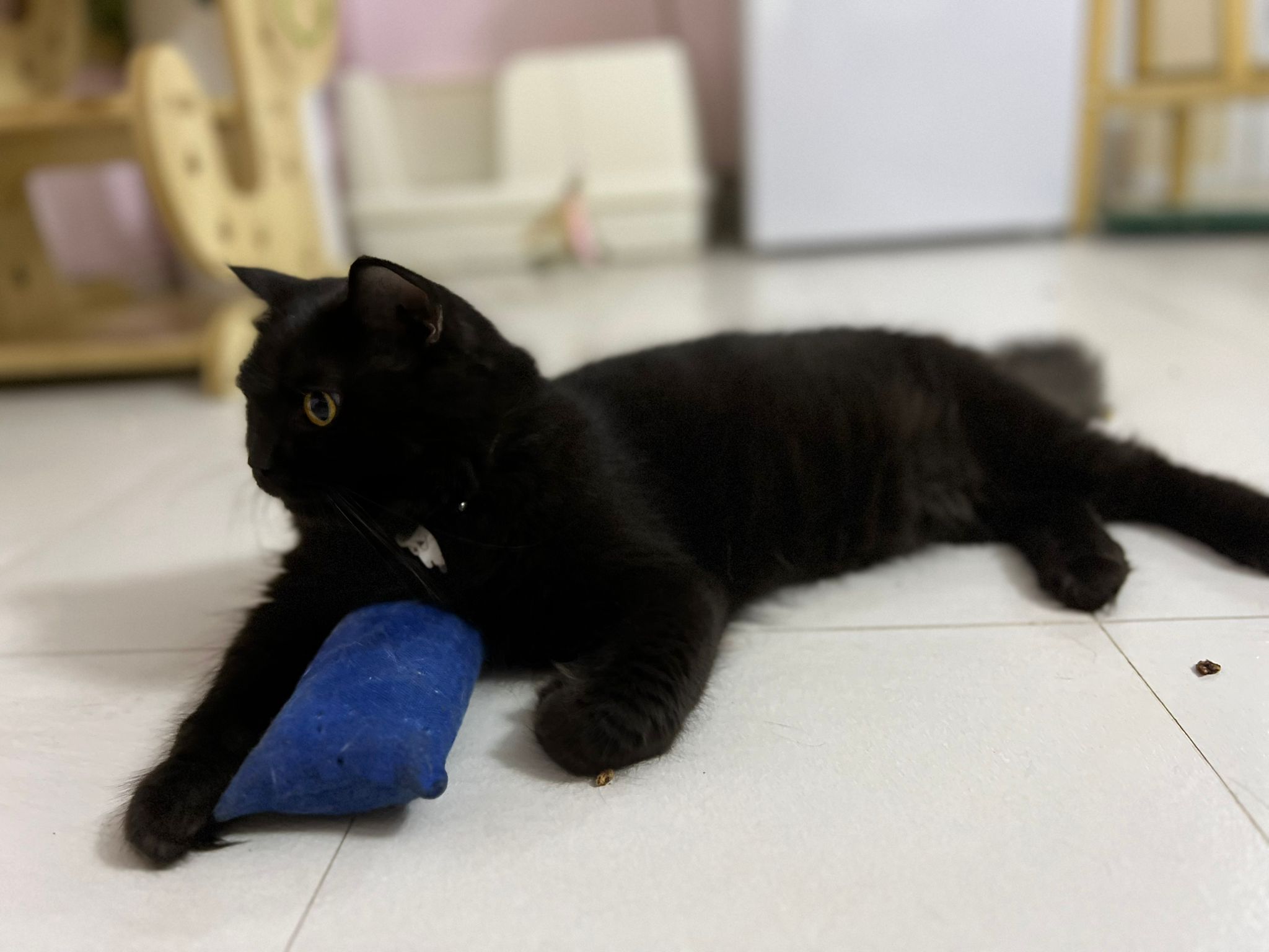she is comfy and meow is cute. sigh grooming is on 12.9, so most prob 12.9 after grooming I’ll still iso her to 13.9 then will let her free roam alr .