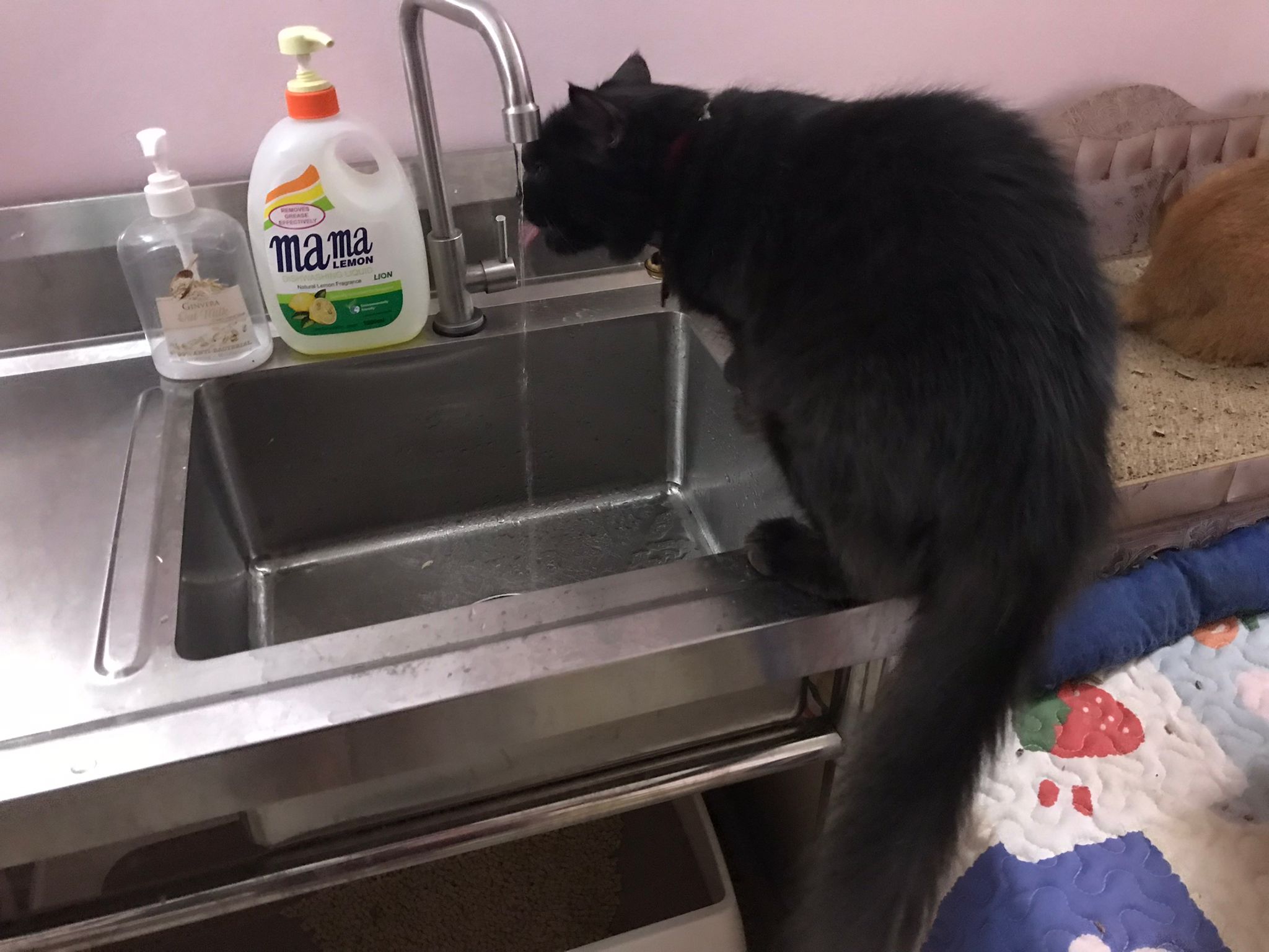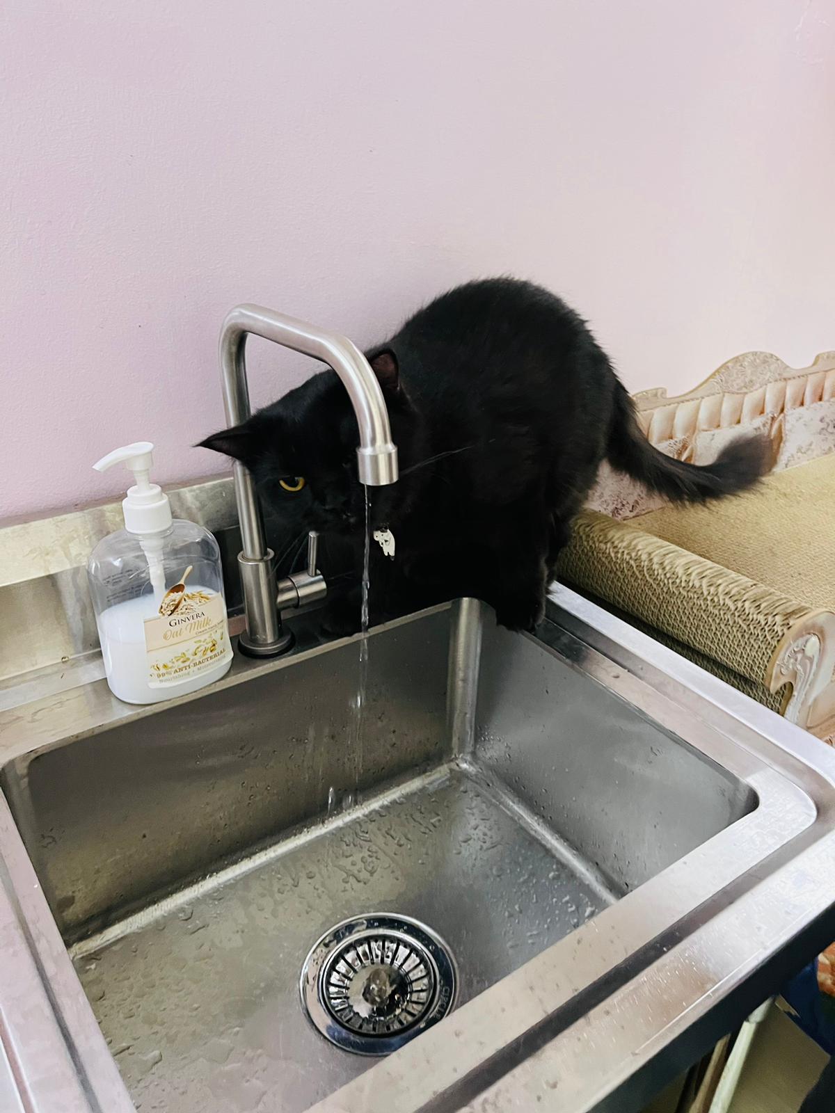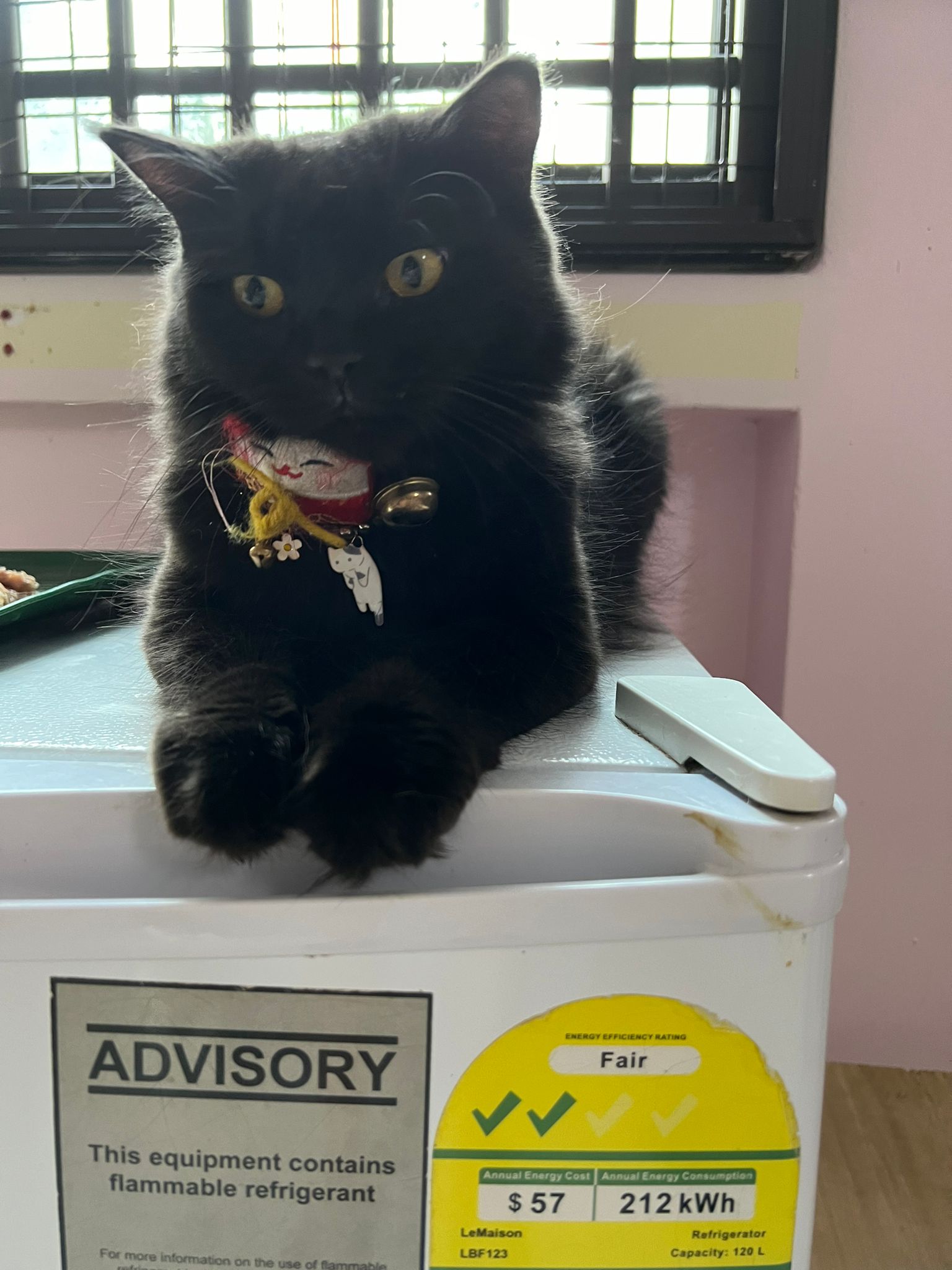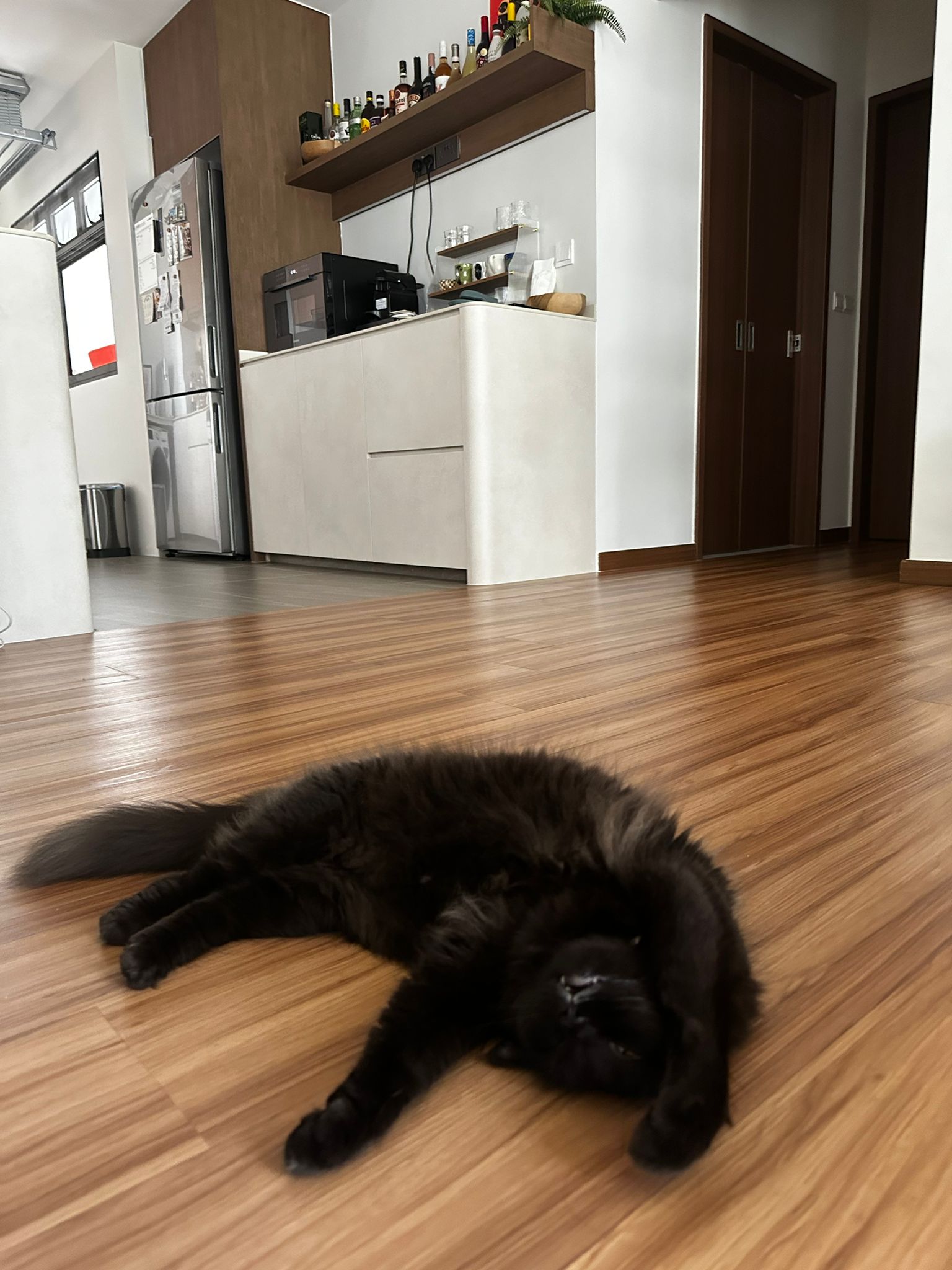 12pm+: she jump up the fridge when I’m preparing med but she is a soft jumper, so manage to carry her to the bed without ruining my med plate