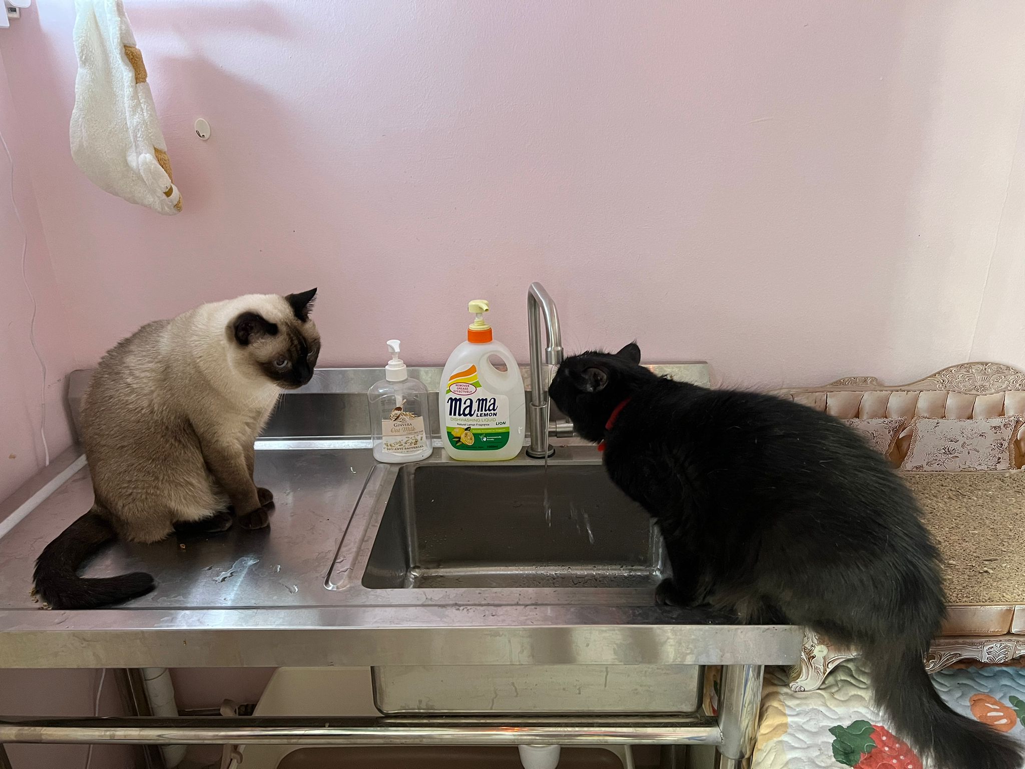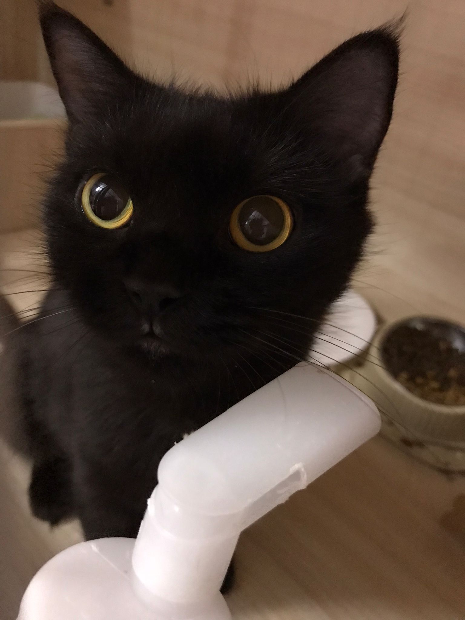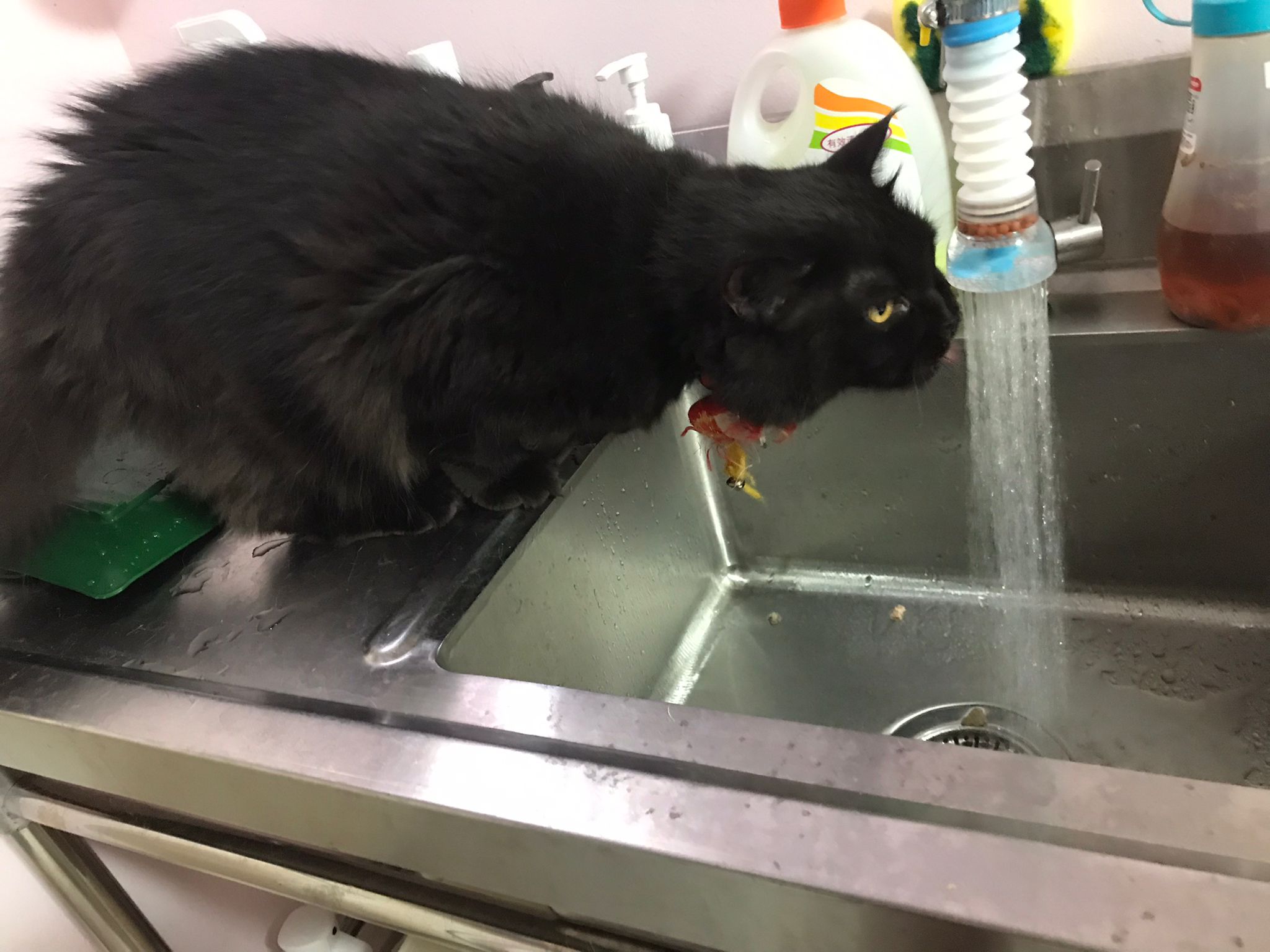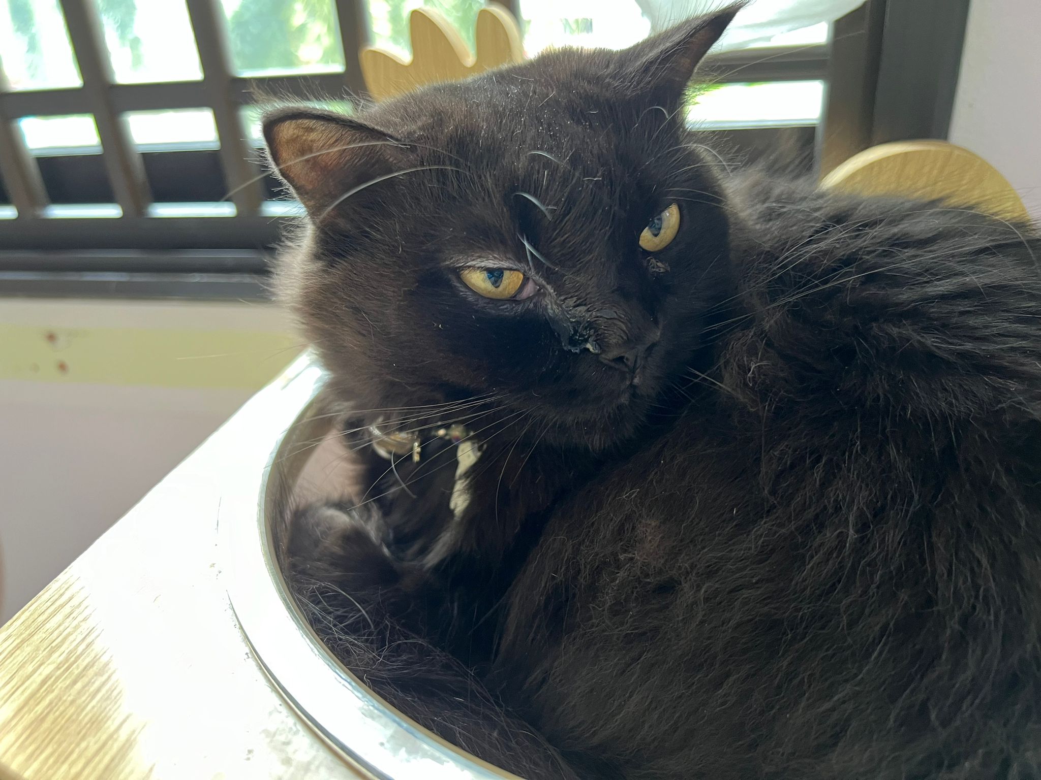 12pm+: she jump up the fridge when I’m preparing med but she is a soft jumper, so manage to carry her to the bed without ruining my med plate