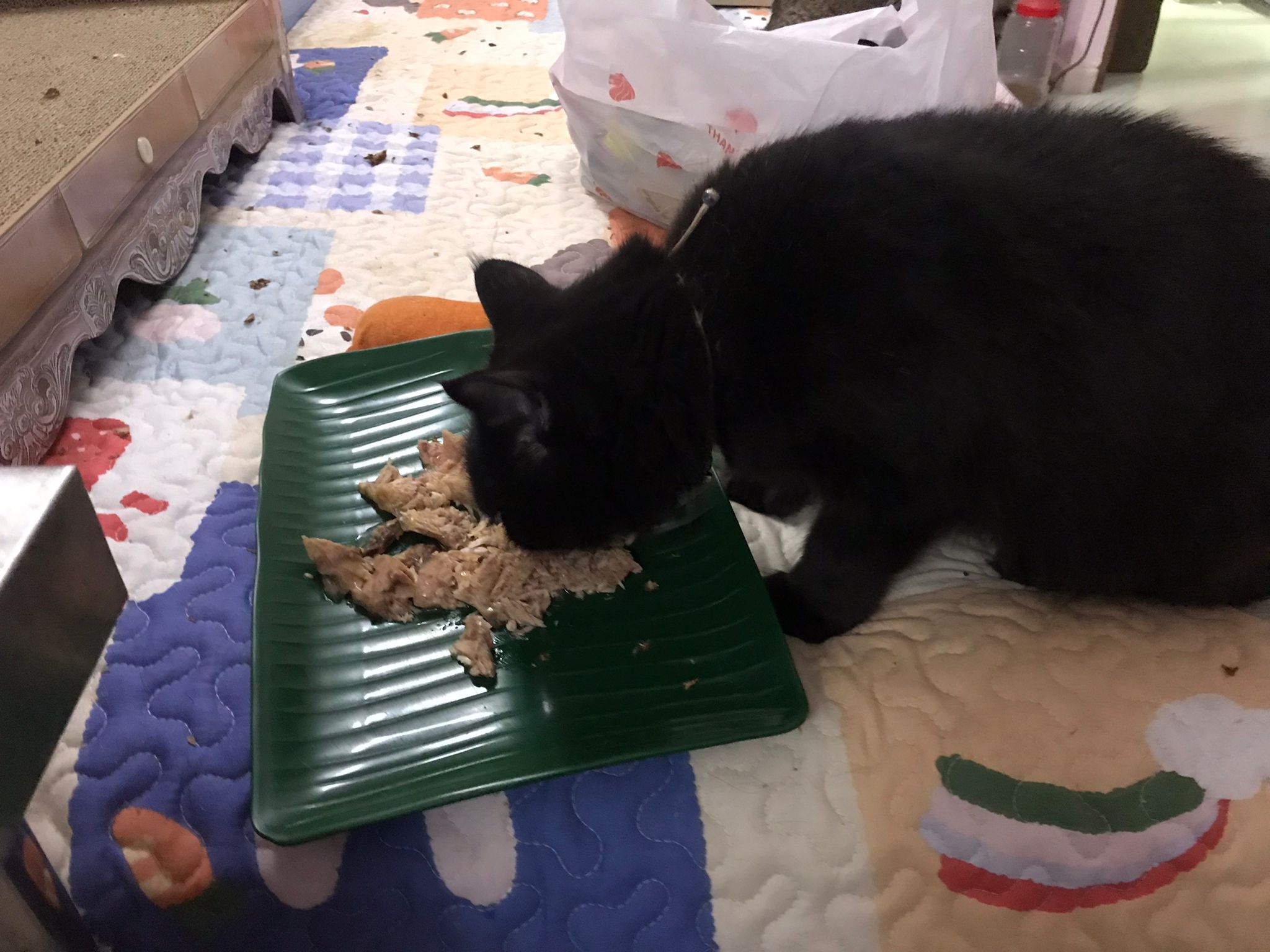Jo give her 2 serving cos she finish one serving of tuna.