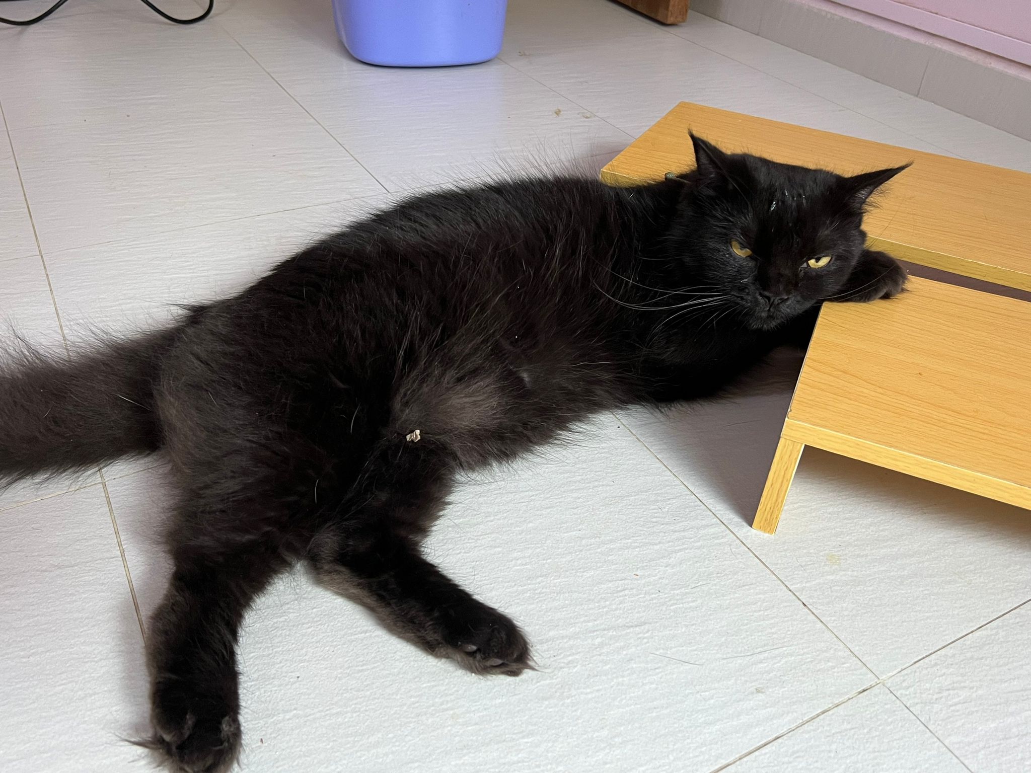 8pm+: jialat one auntie told me a new cat at the stairs since morning. Didn’t move. Sigh. Looks old/ sick, abandoned one la. Sigh I can’t touch the cat, later then see how. Sigh.
